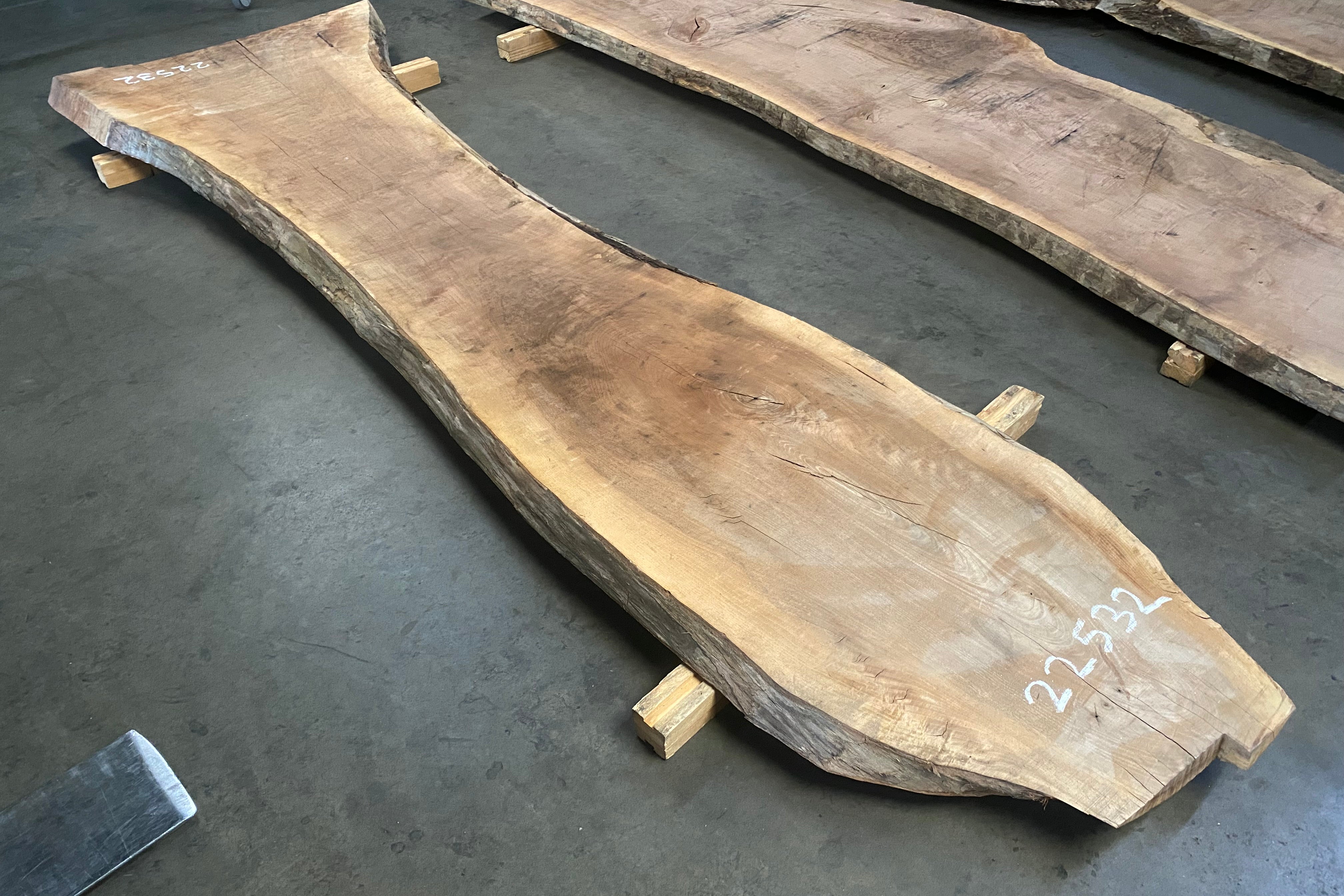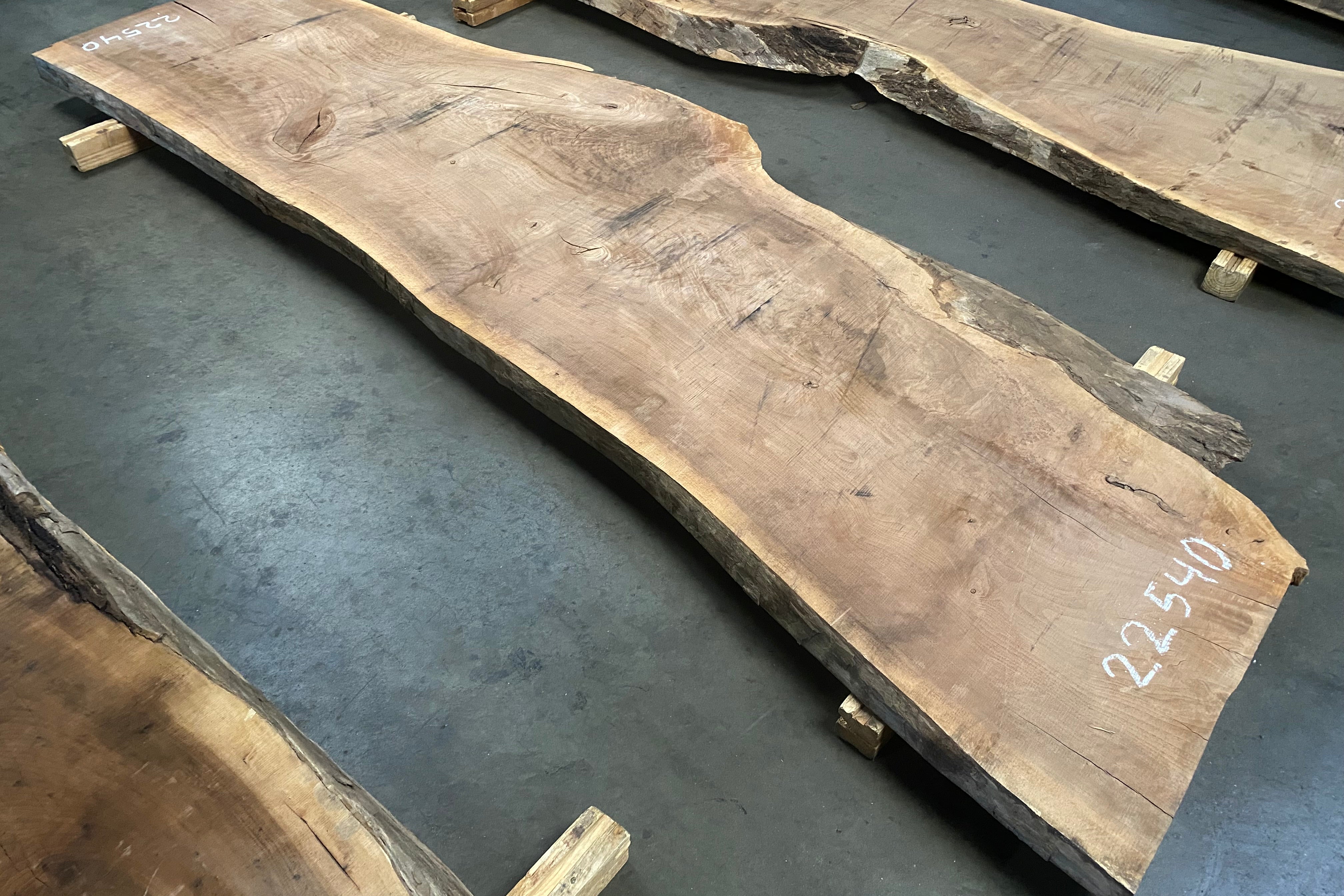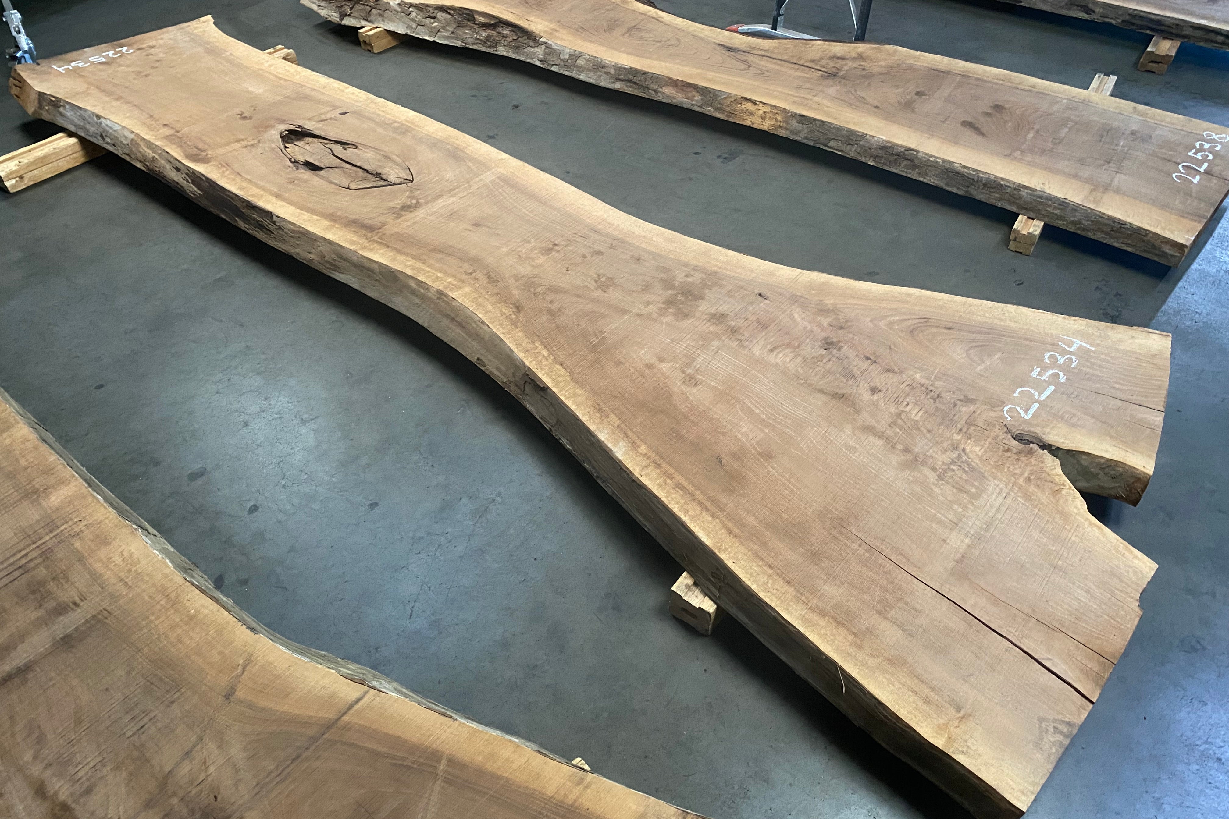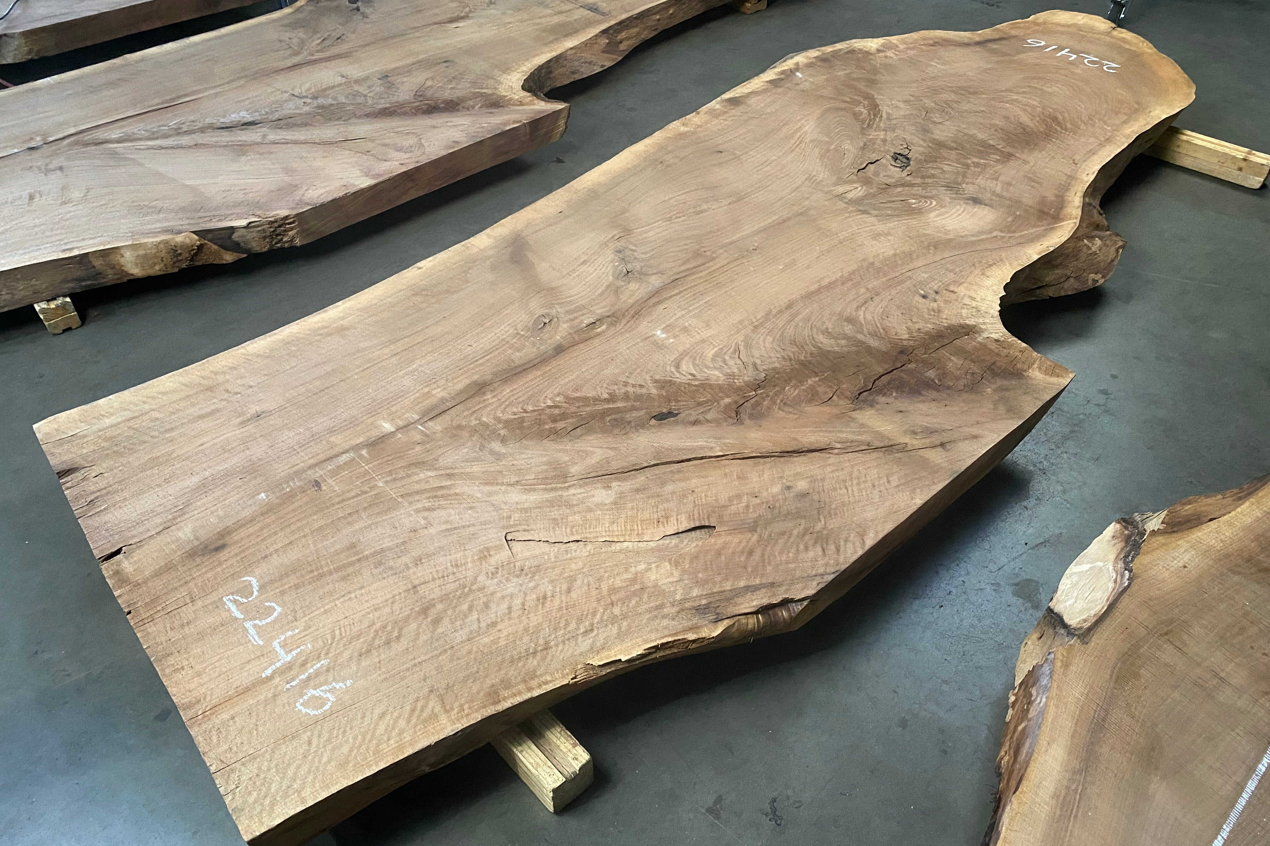 Discover the timeless beauty of walnut slabs, each a unique work of art by nature. These slabs are made from sustainably sourced walnut wood and feature deep, shiny colors and fascinating grain patterns that combine sophistication with rustic appeal for any woodworking project.