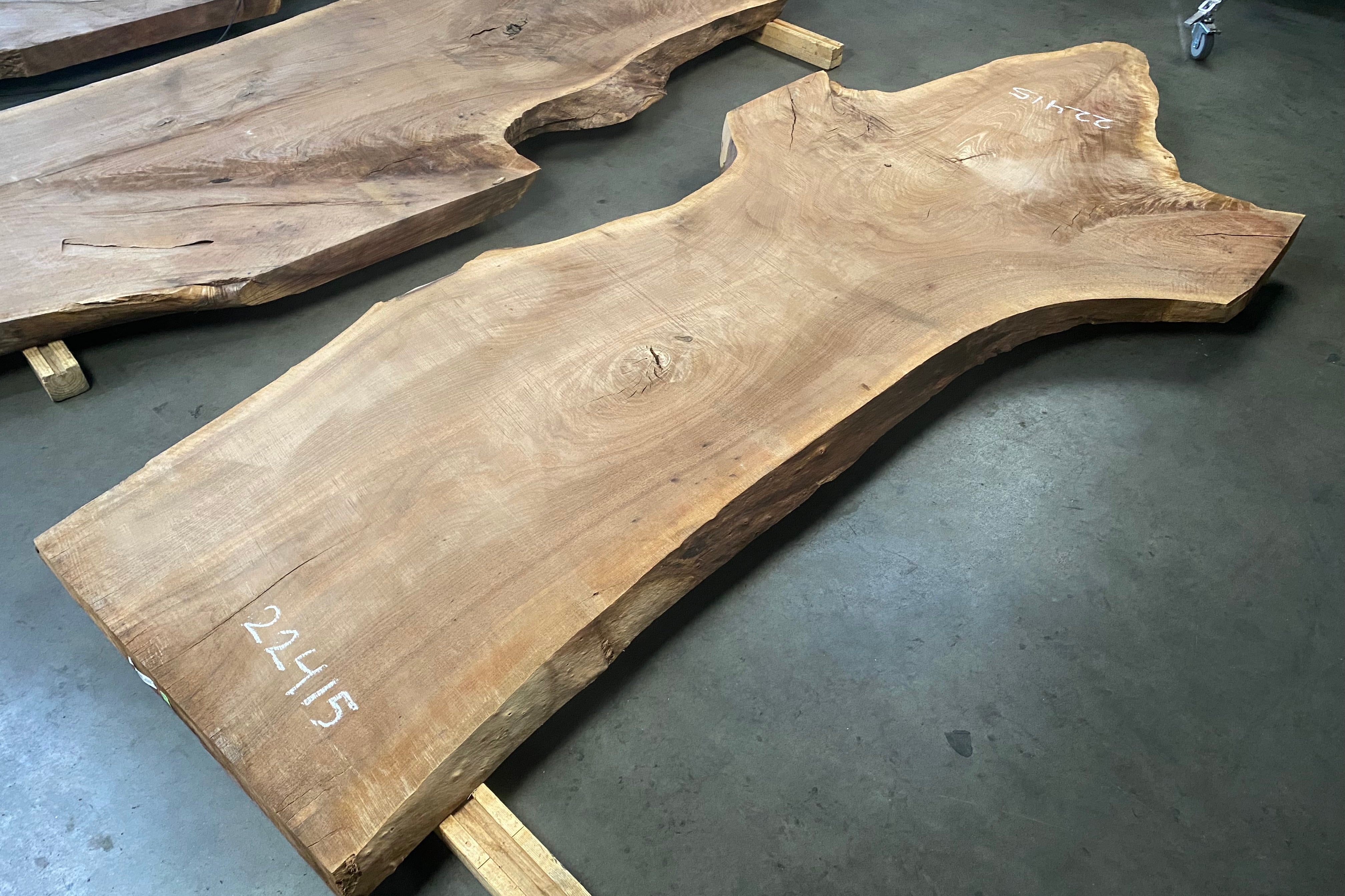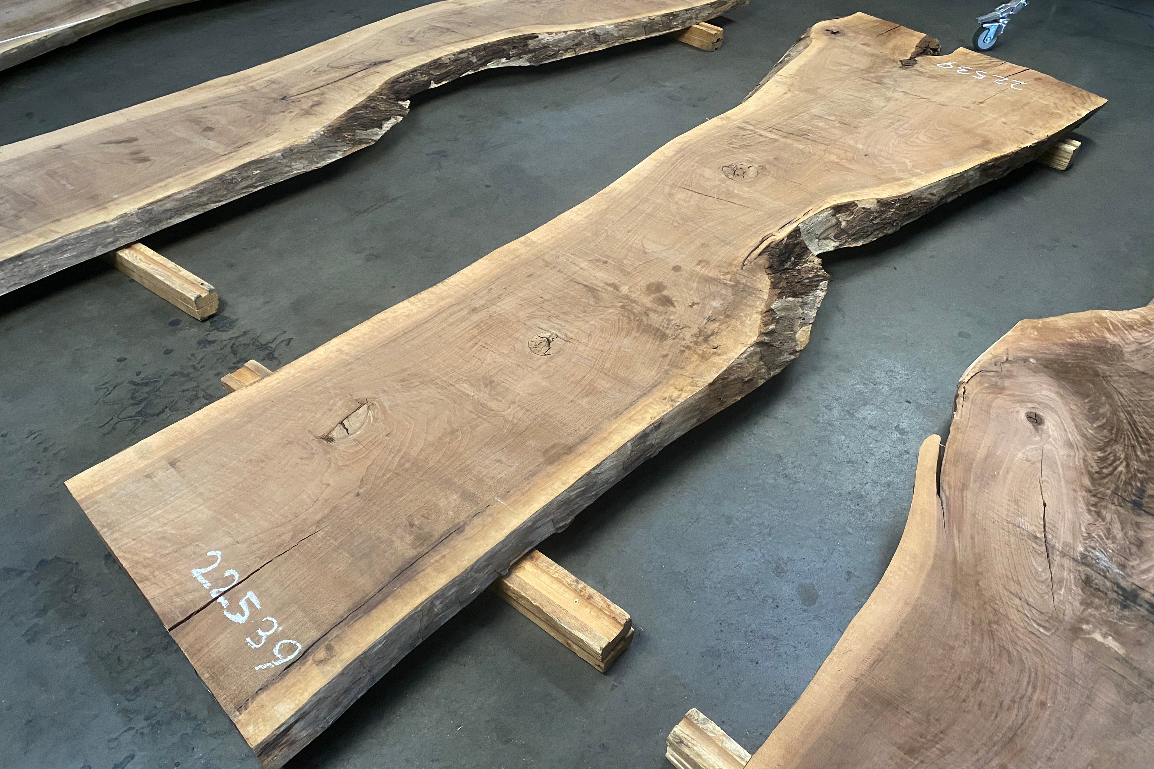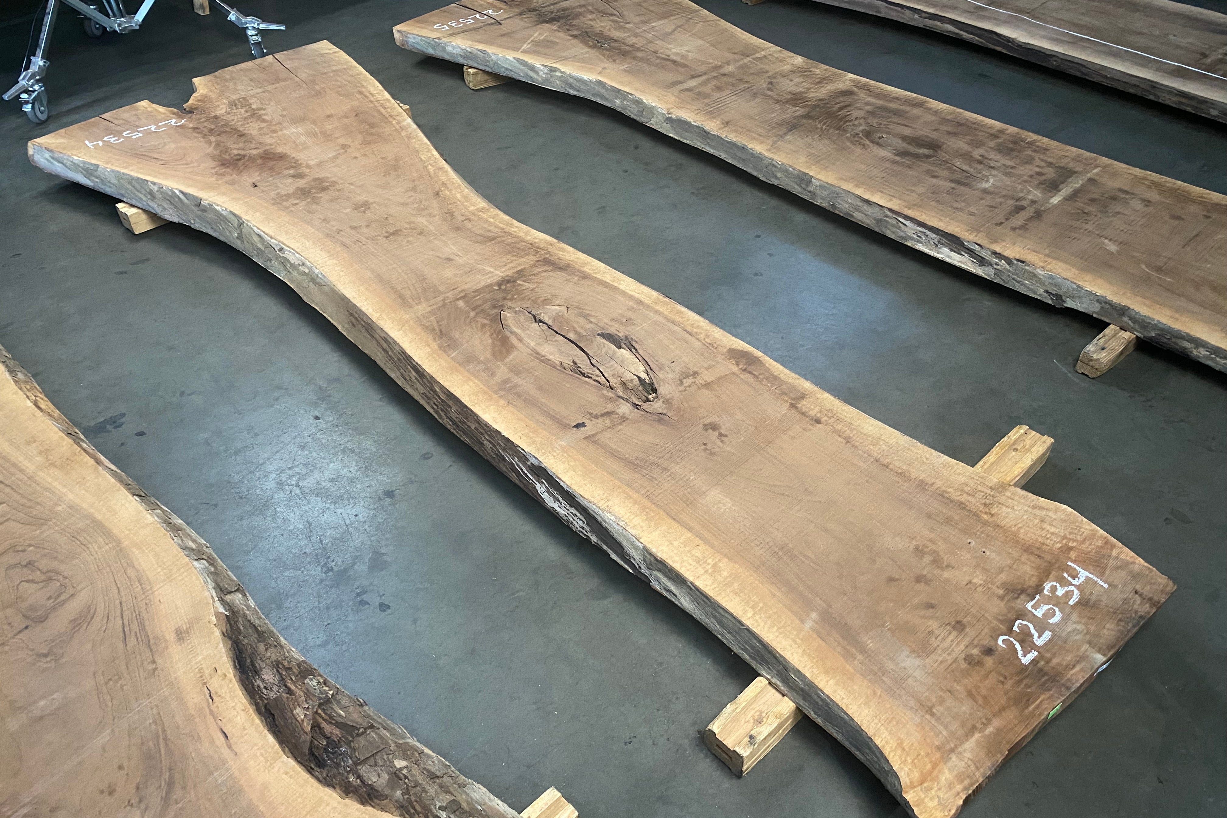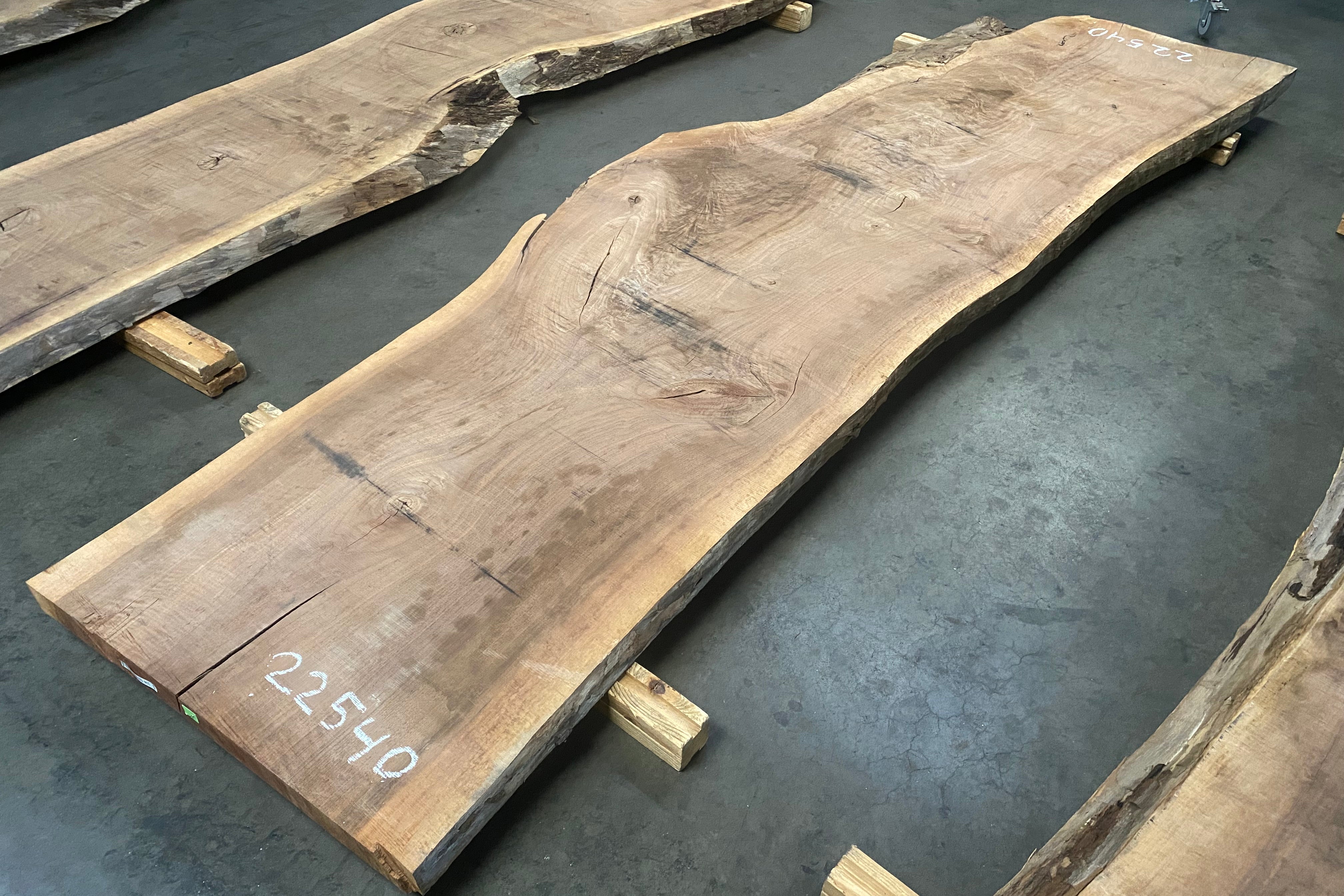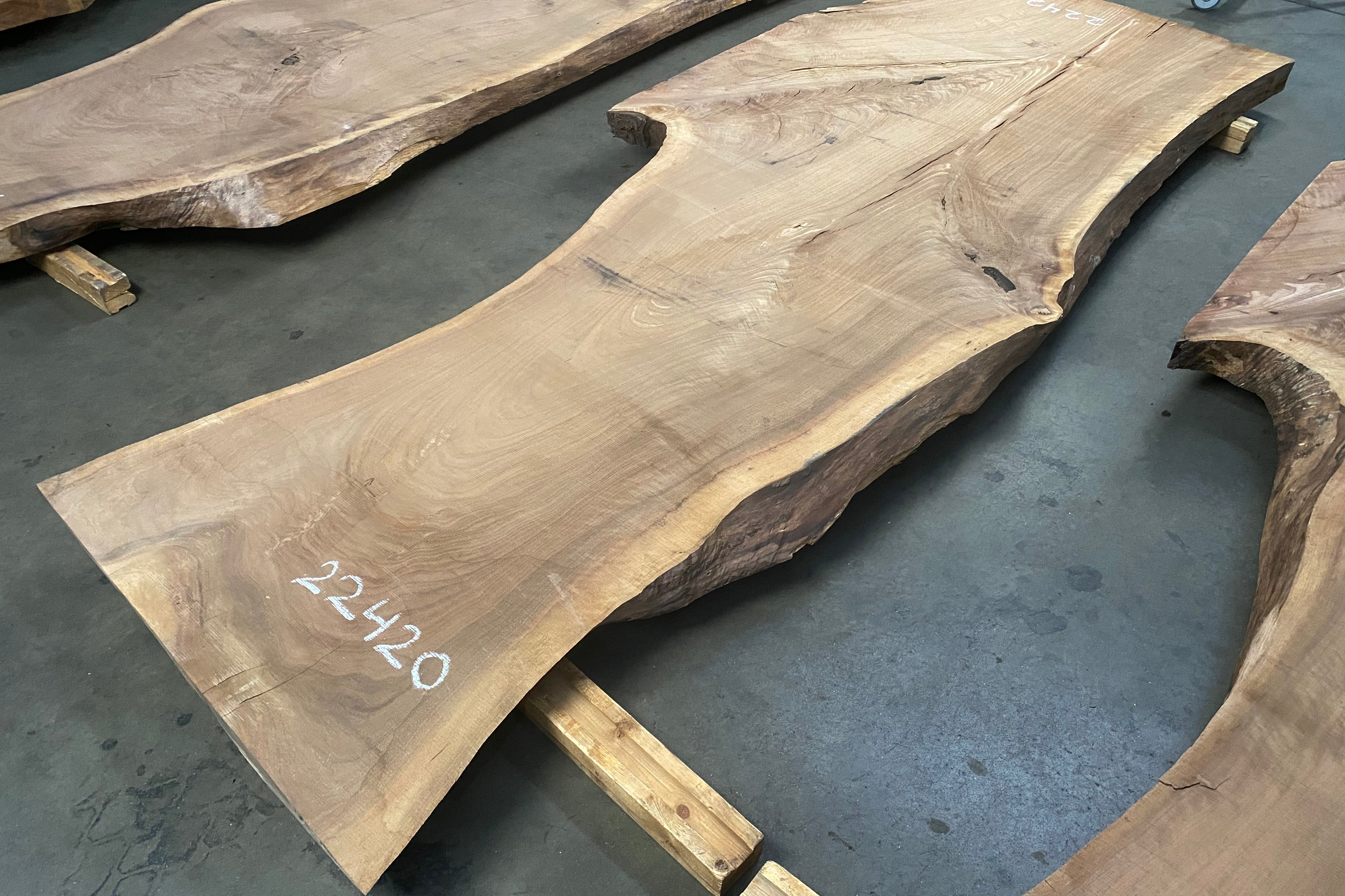 Discover the timeless beauty of walnut slabs, each a unique work of art by nature. These slabs are made from sustainably sourced walnut wood and feature deep, shiny colors and fascinating grain patterns that combine sophistication with rustic appeal for any woodworking project.