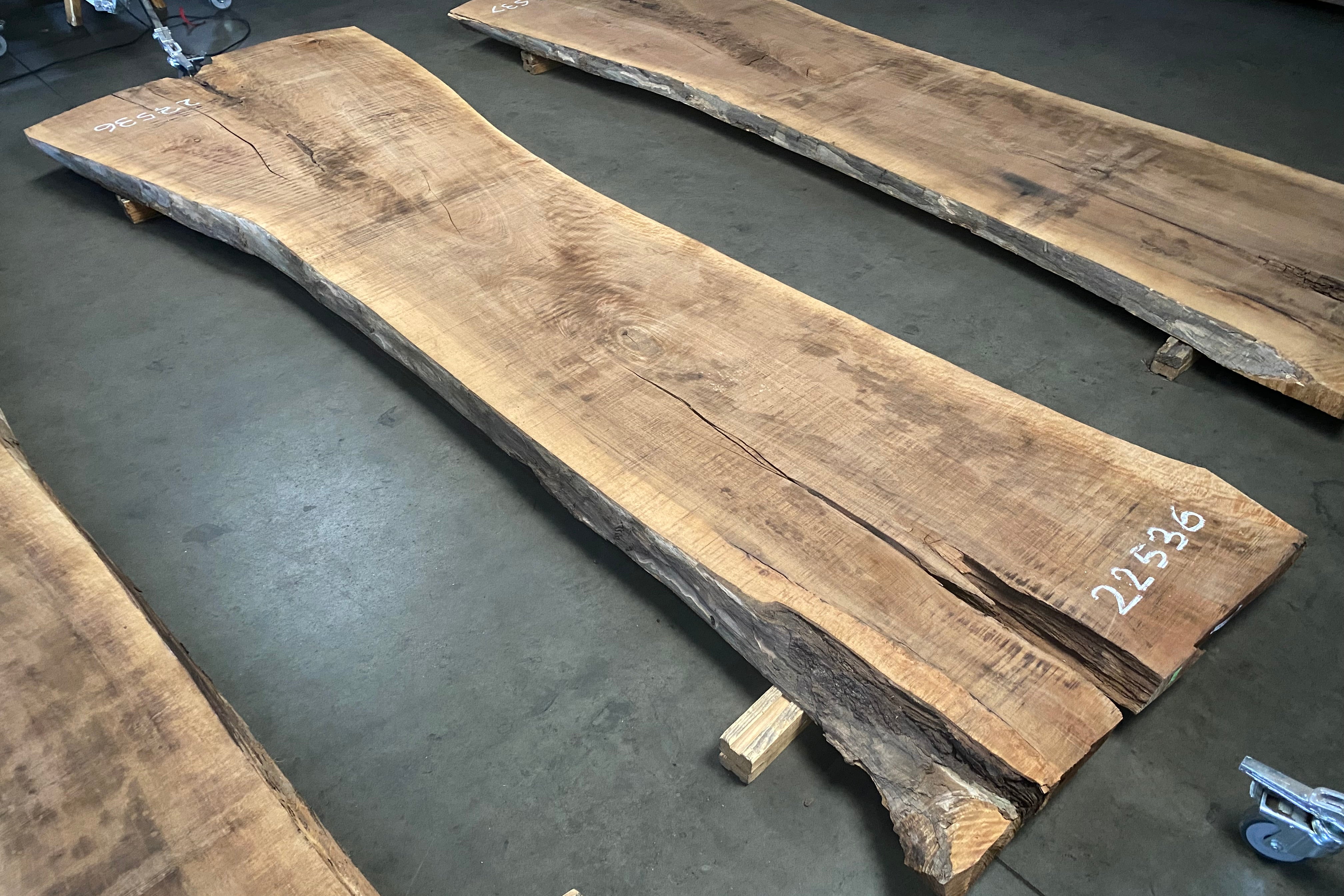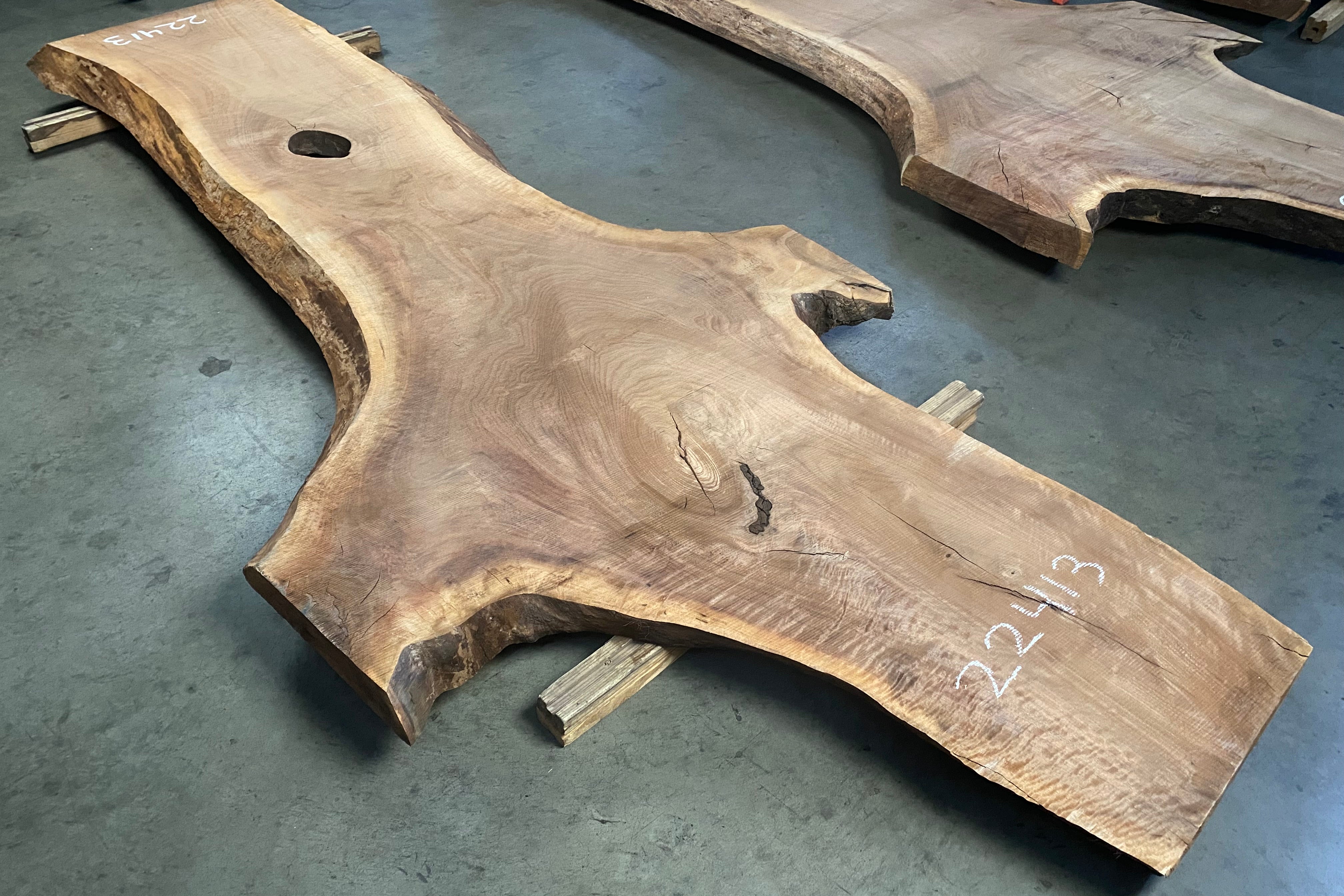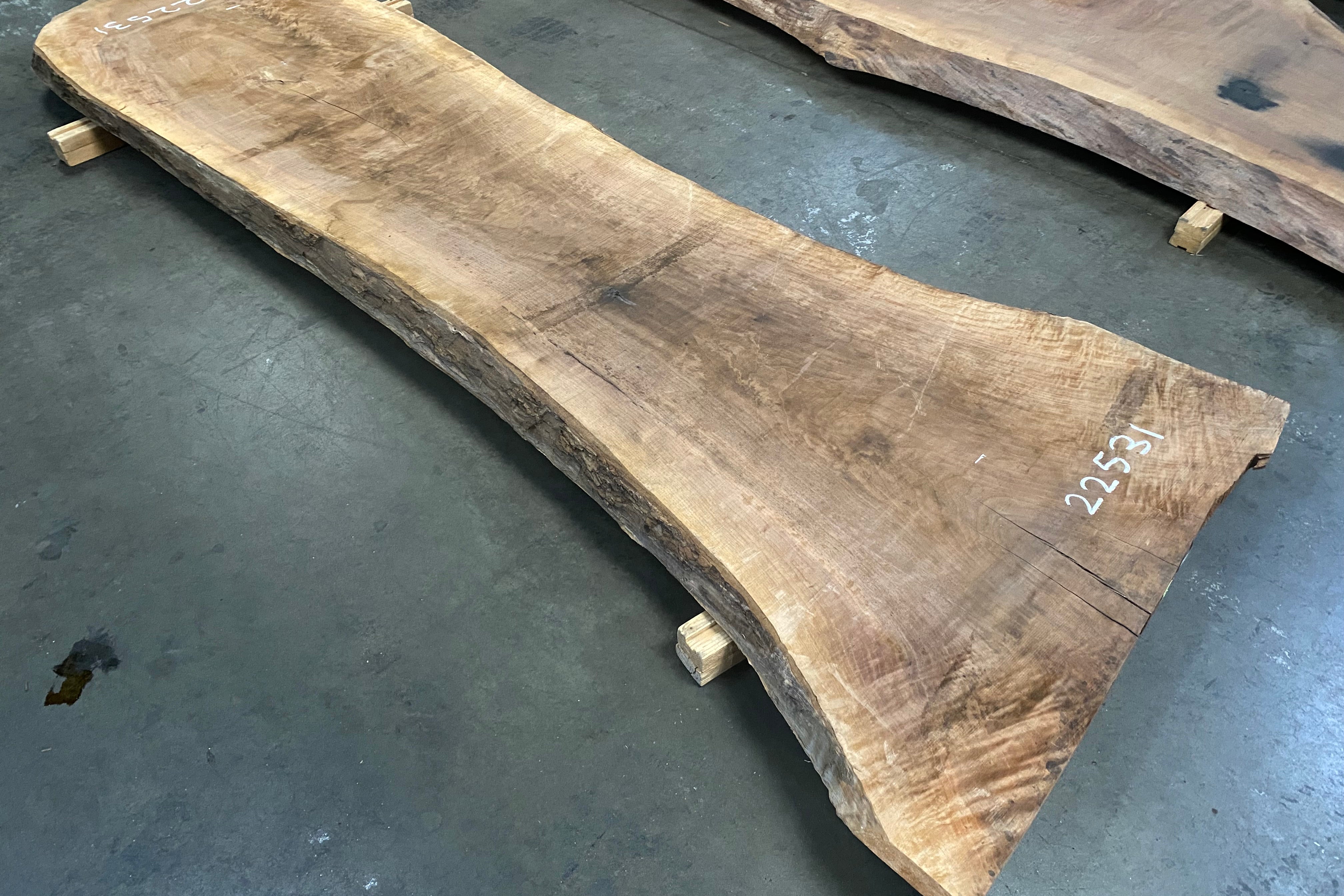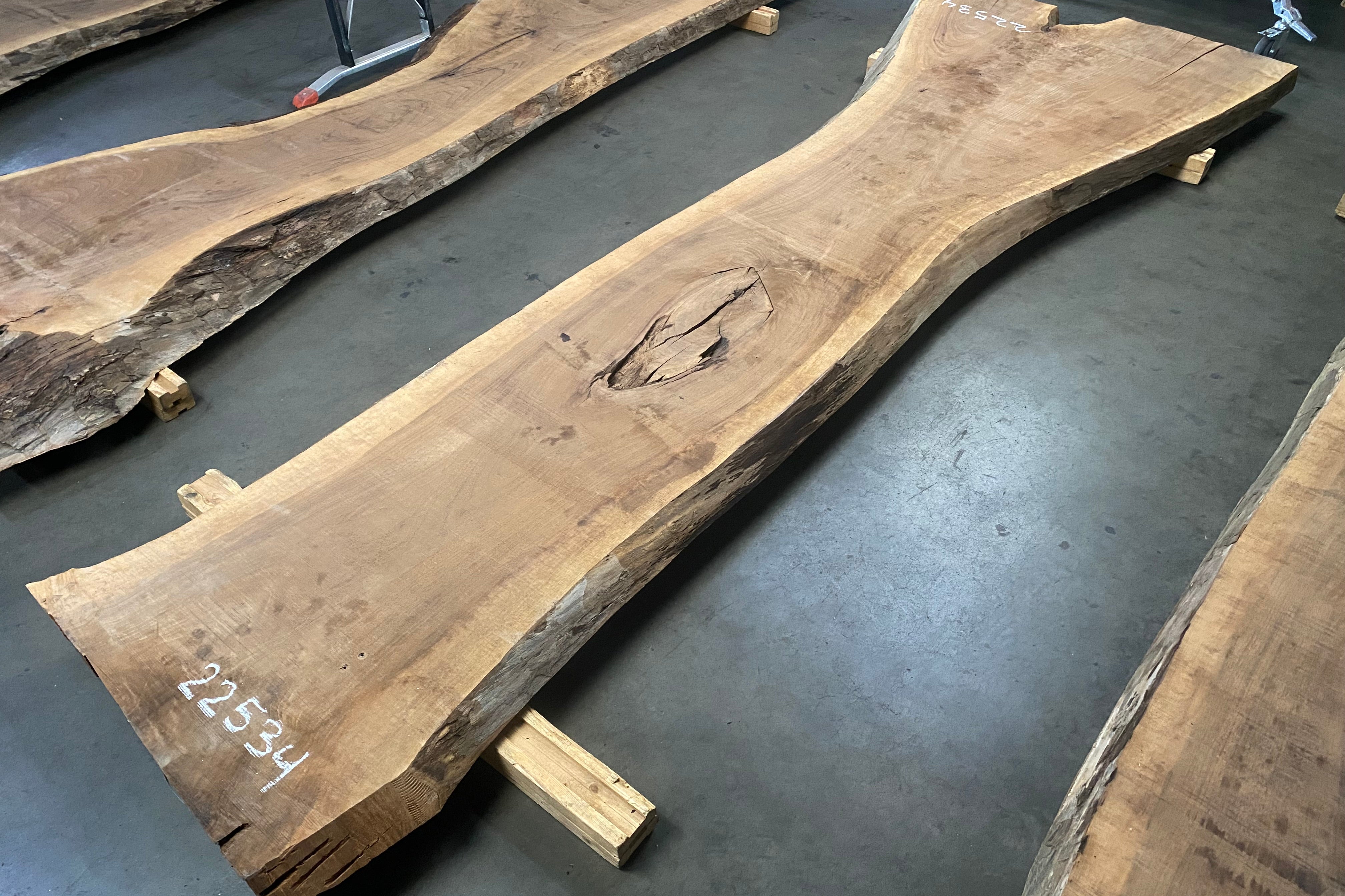 Discover the timeless beauty of walnut slabs, each a unique work of art by nature. These slabs are made from sustainably sourced walnut wood and feature deep, shiny colors and fascinating grain patterns that combine sophistication with rustic appeal for any woodworking project.