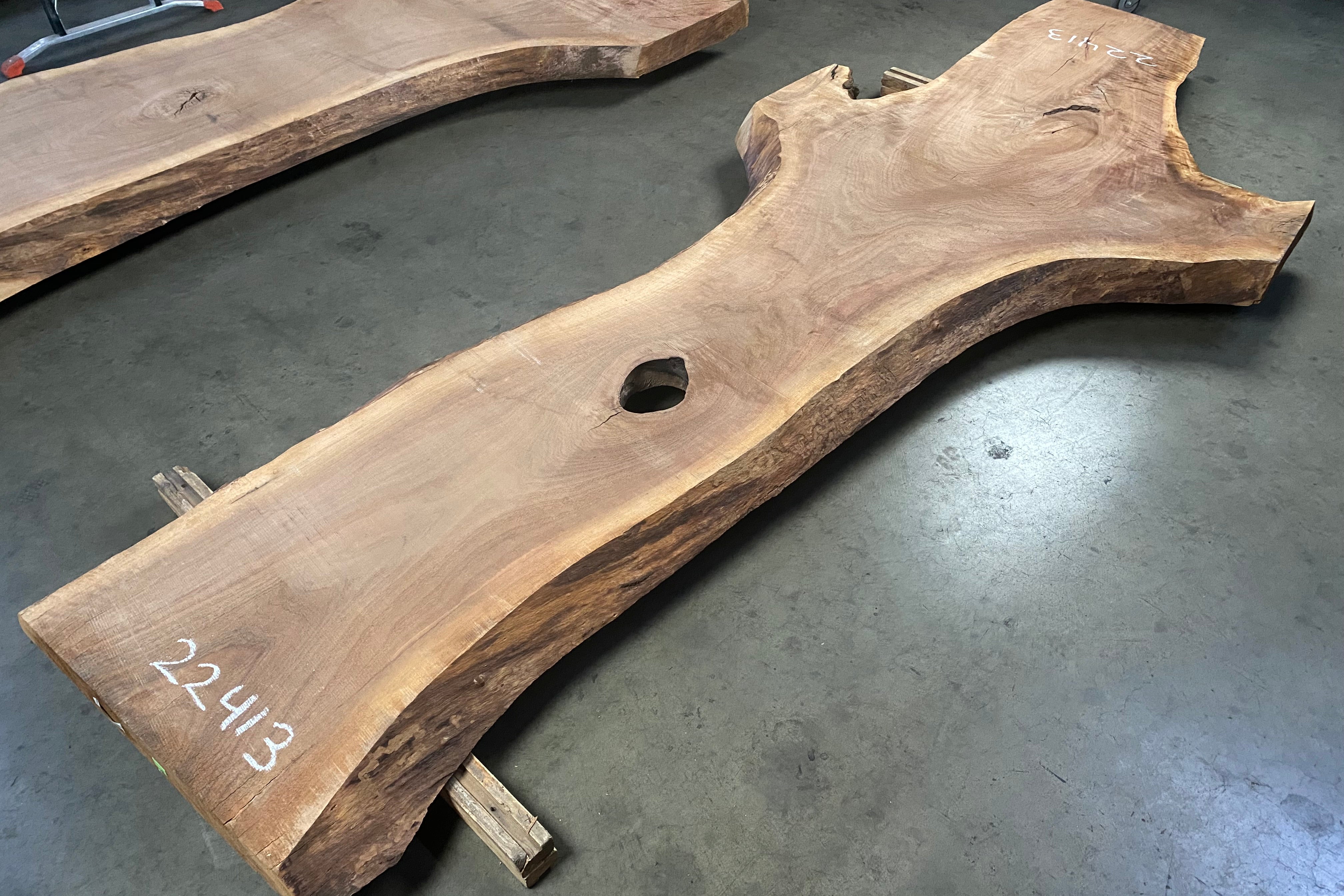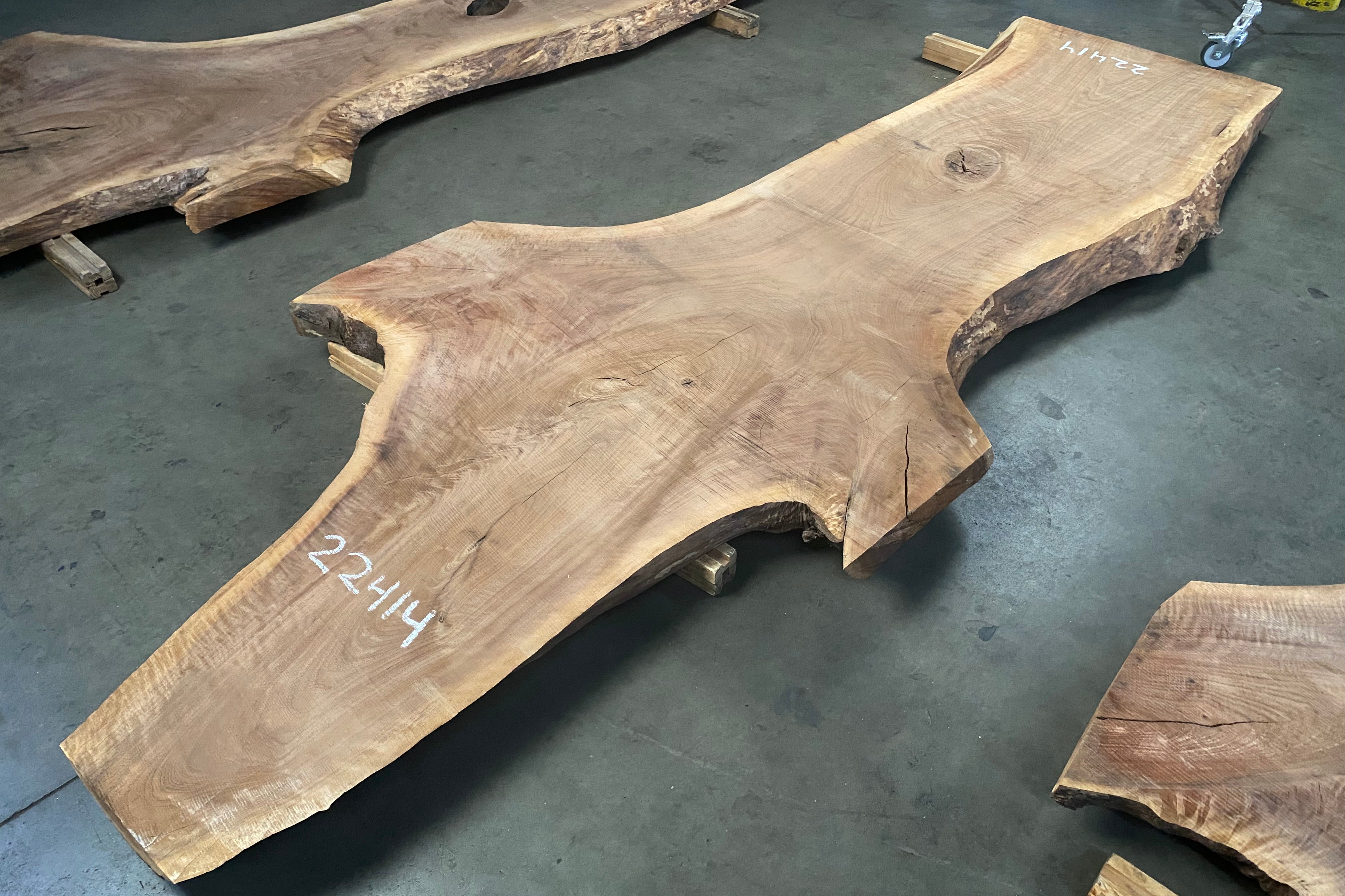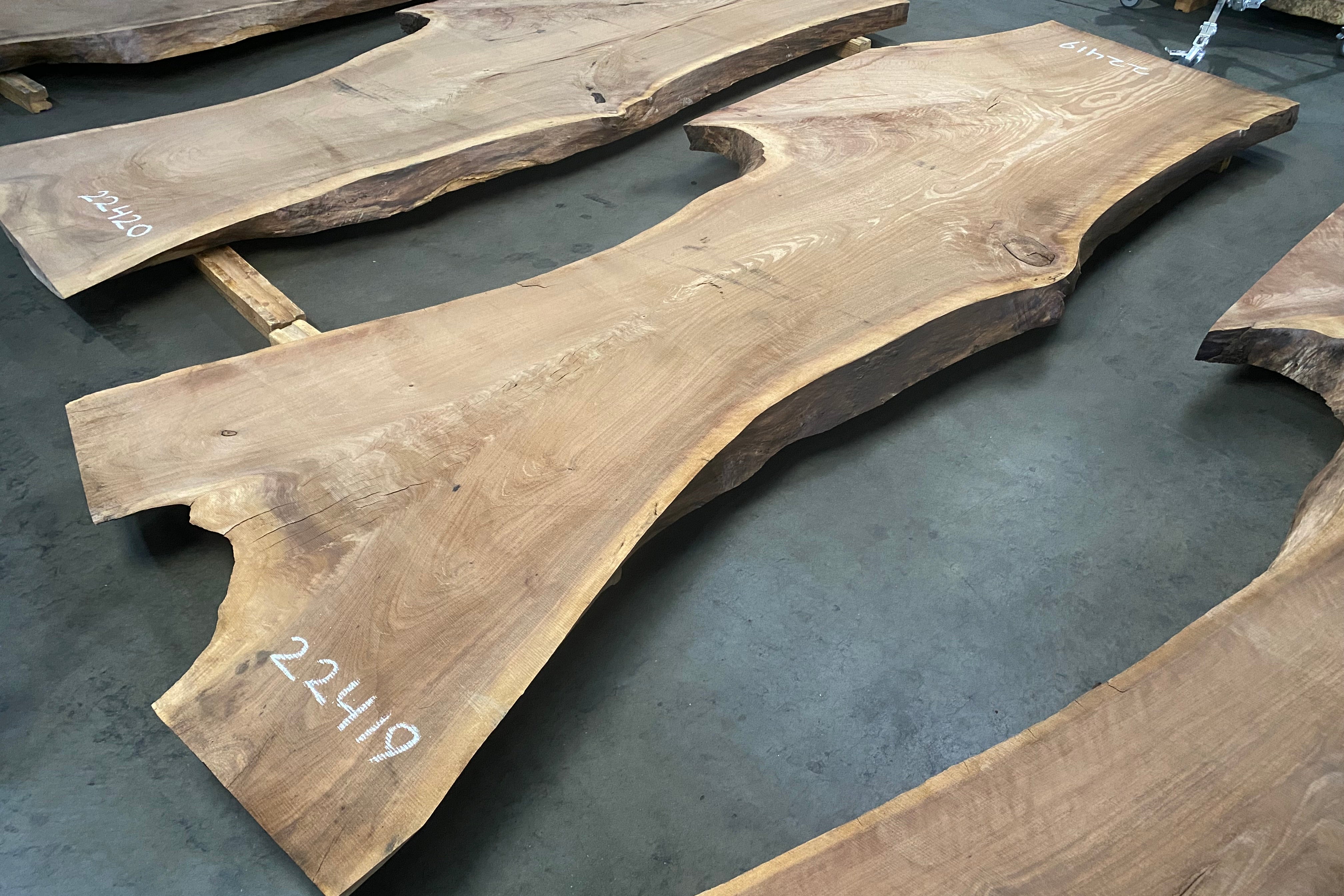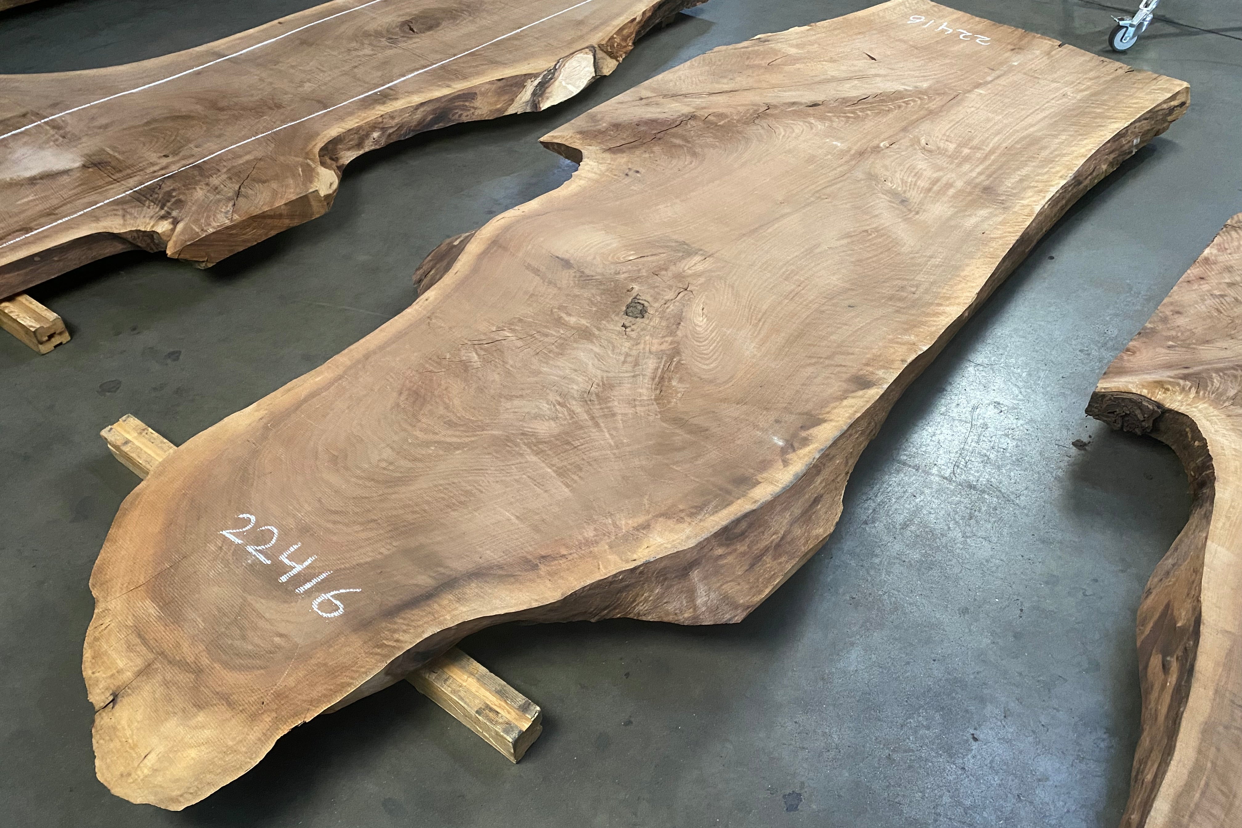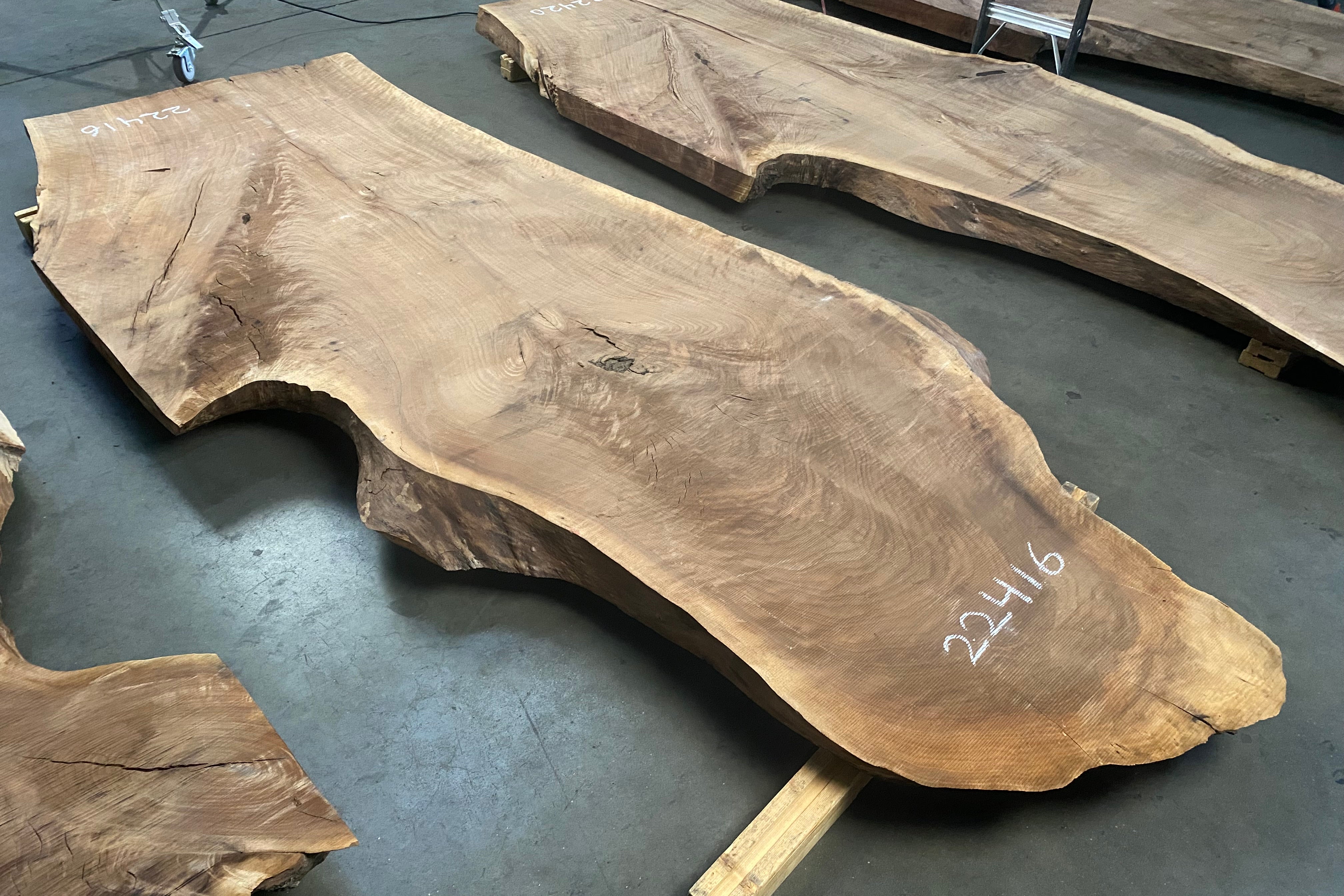 Discover the timeless beauty of walnut slabs, each a unique work of art by nature. These slabs are made from sustainably sourced walnut wood and feature deep, shiny colors and fascinating grain patterns that combine sophistication with rustic appeal for any woodworking project.