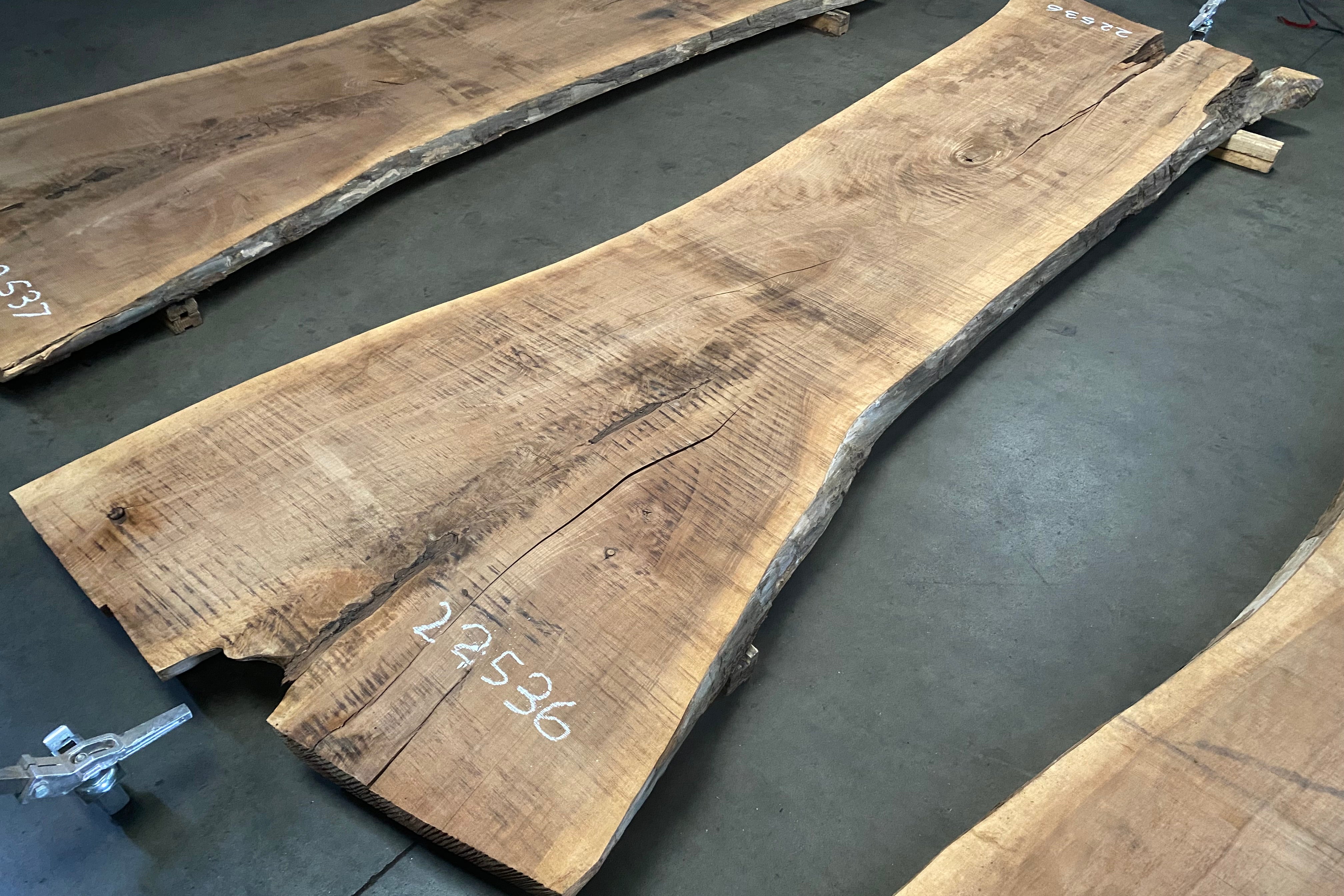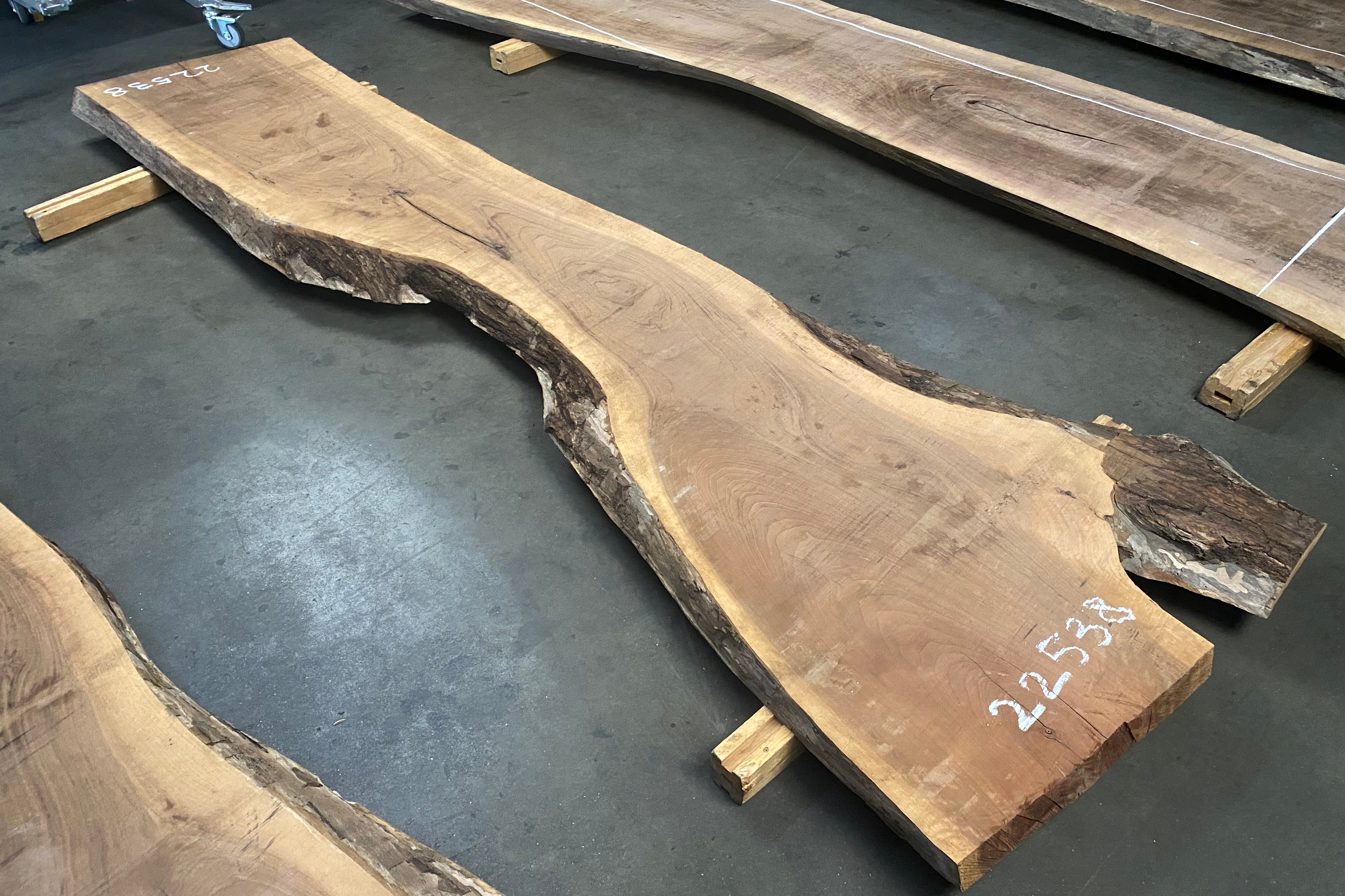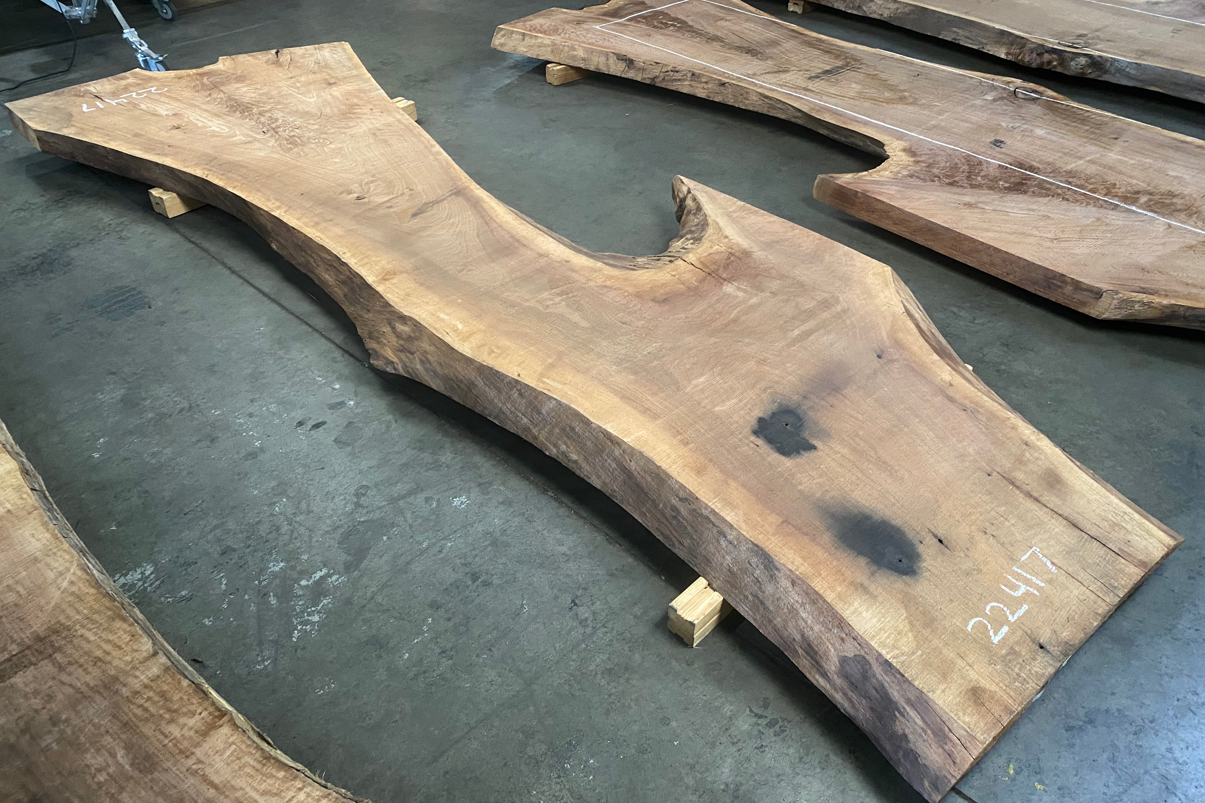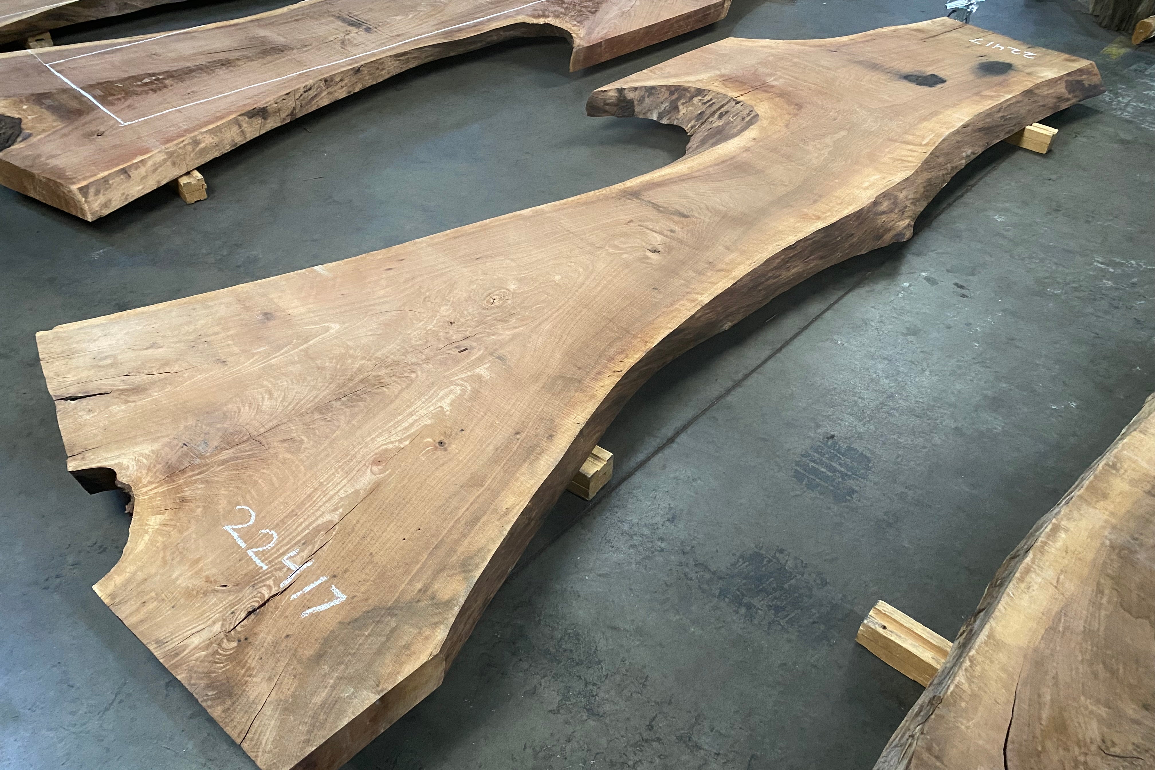 Discover the timeless beauty of walnut slabs, each a unique work of art by nature. These slabs are made from sustainably sourced walnut wood and feature deep, shiny colors and fascinating grain patterns that combine sophistication with rustic appeal for any woodworking project.