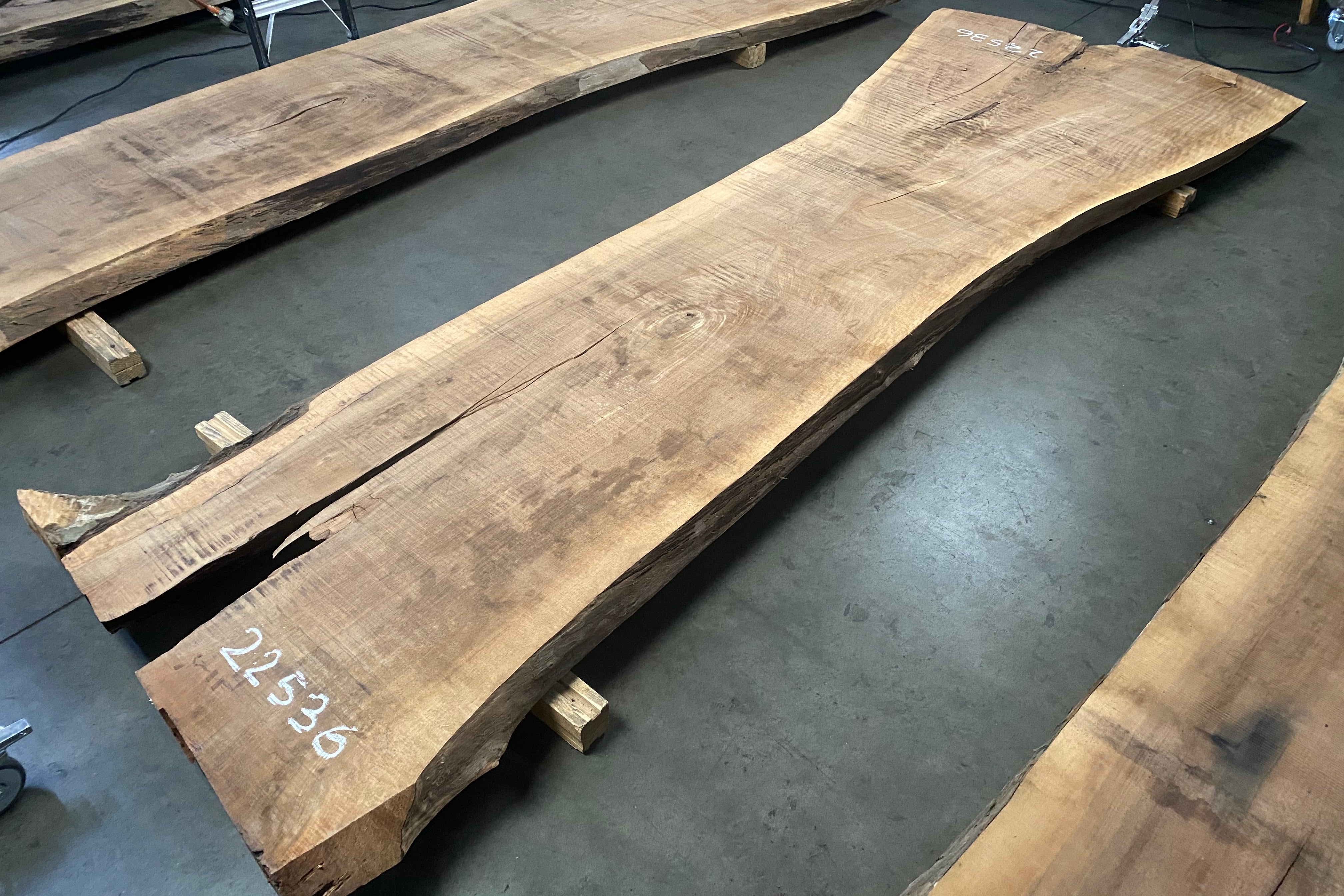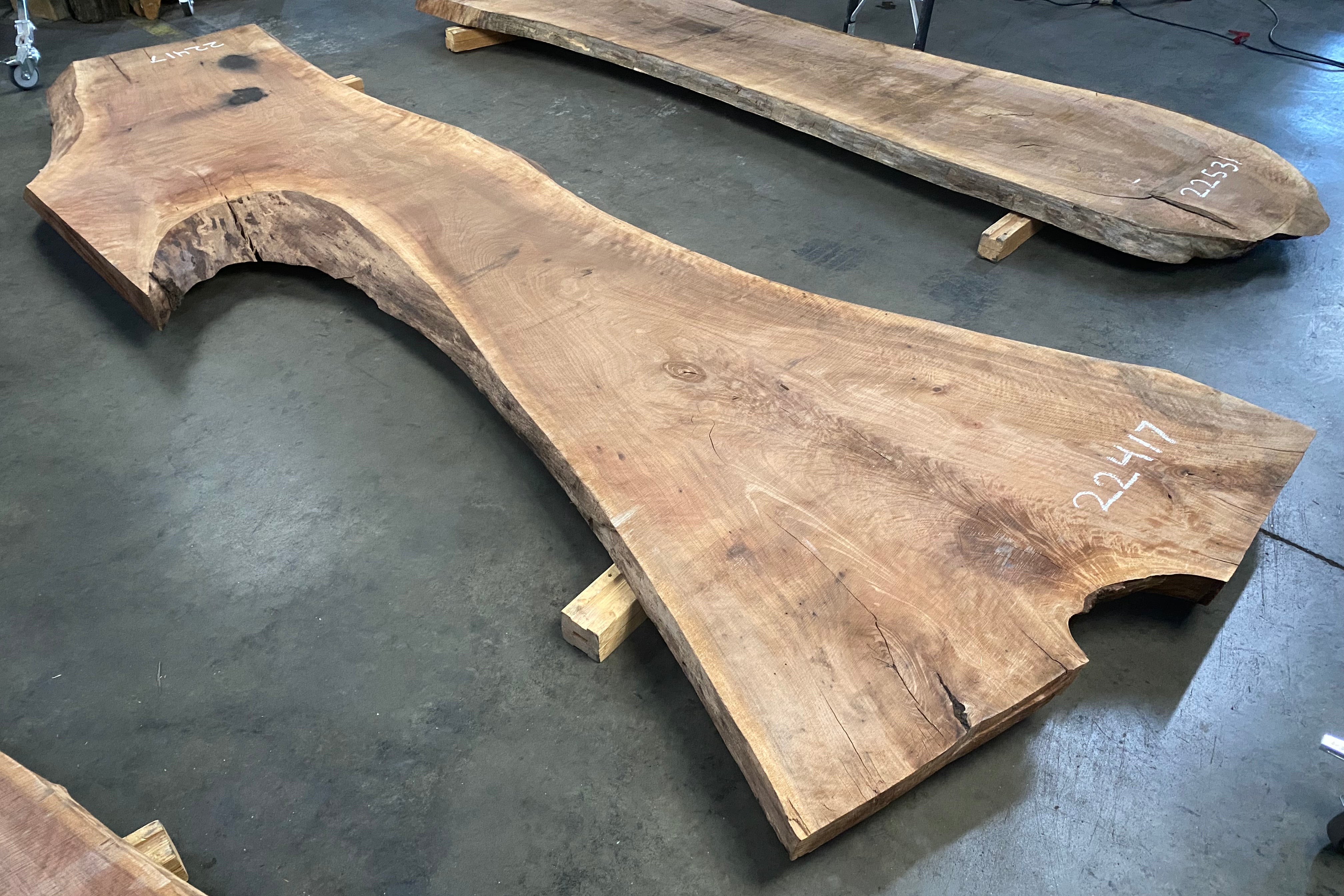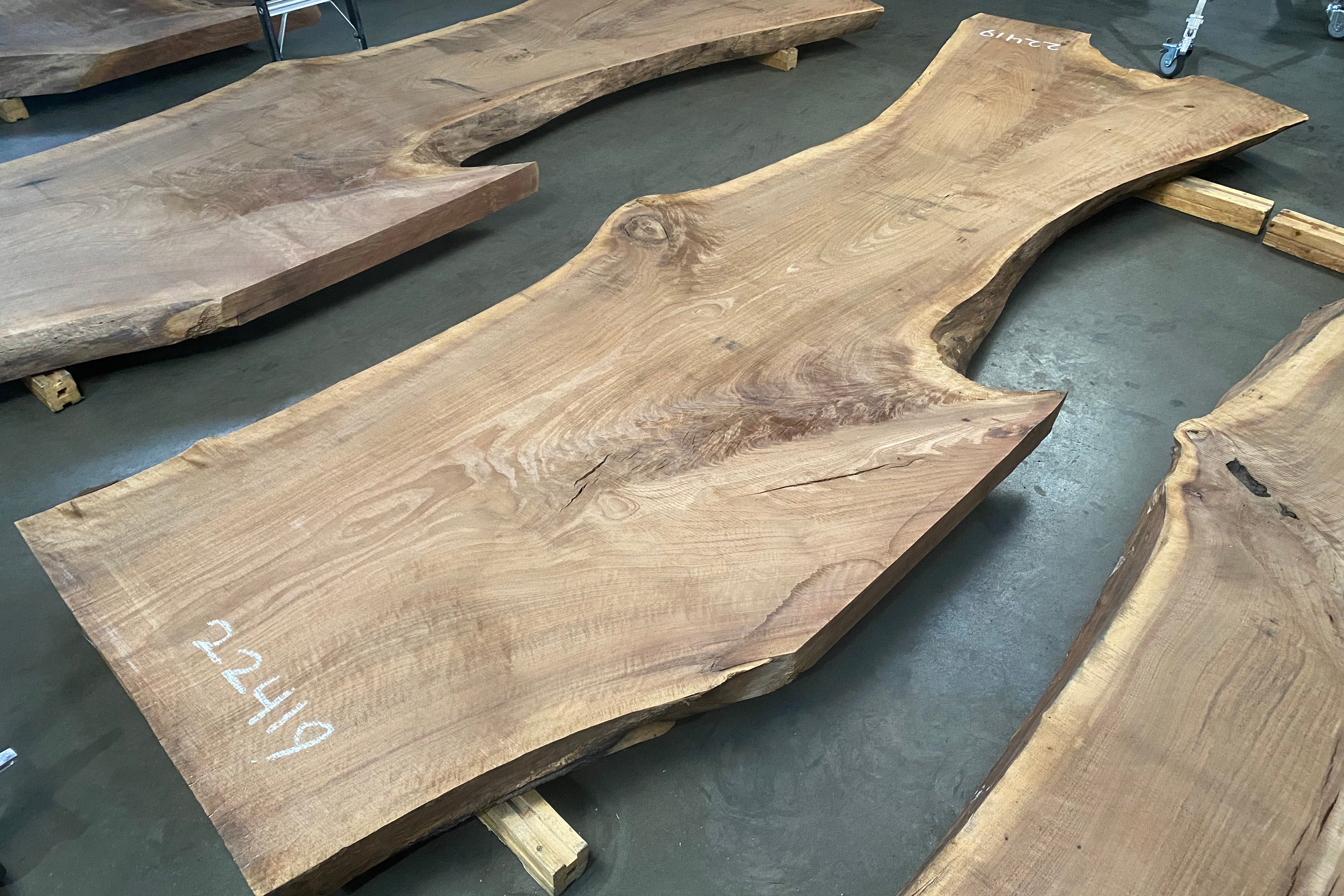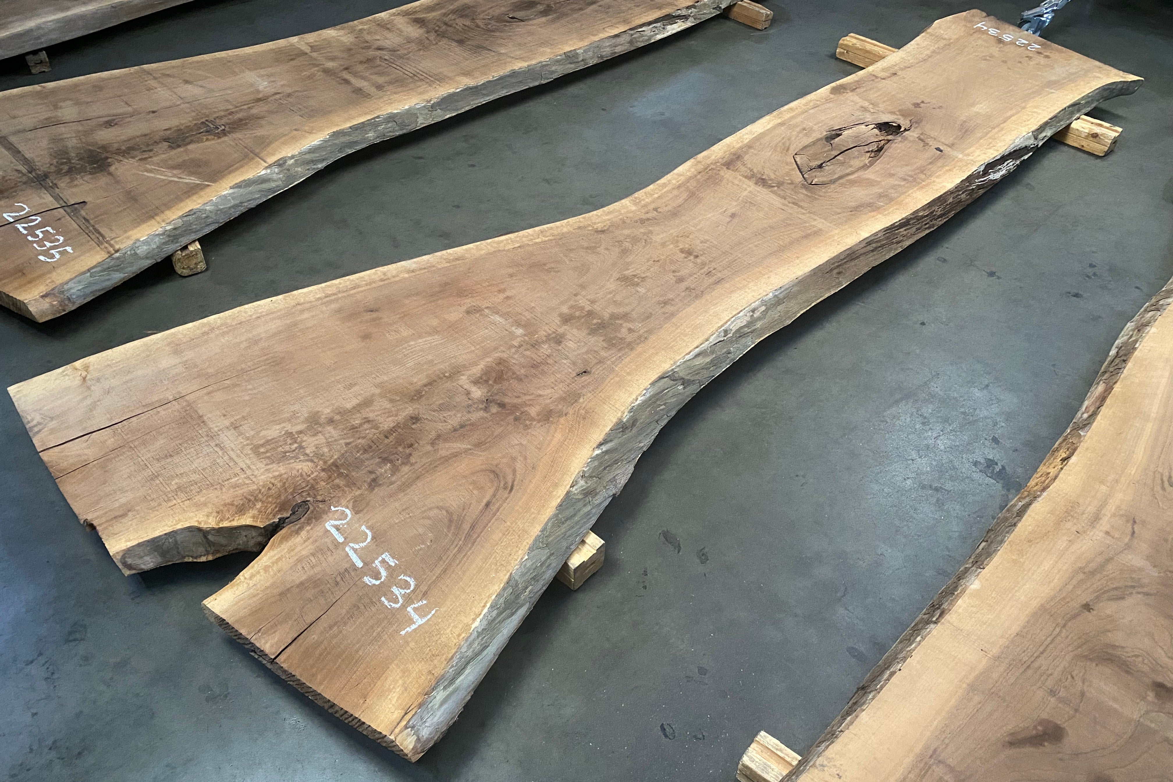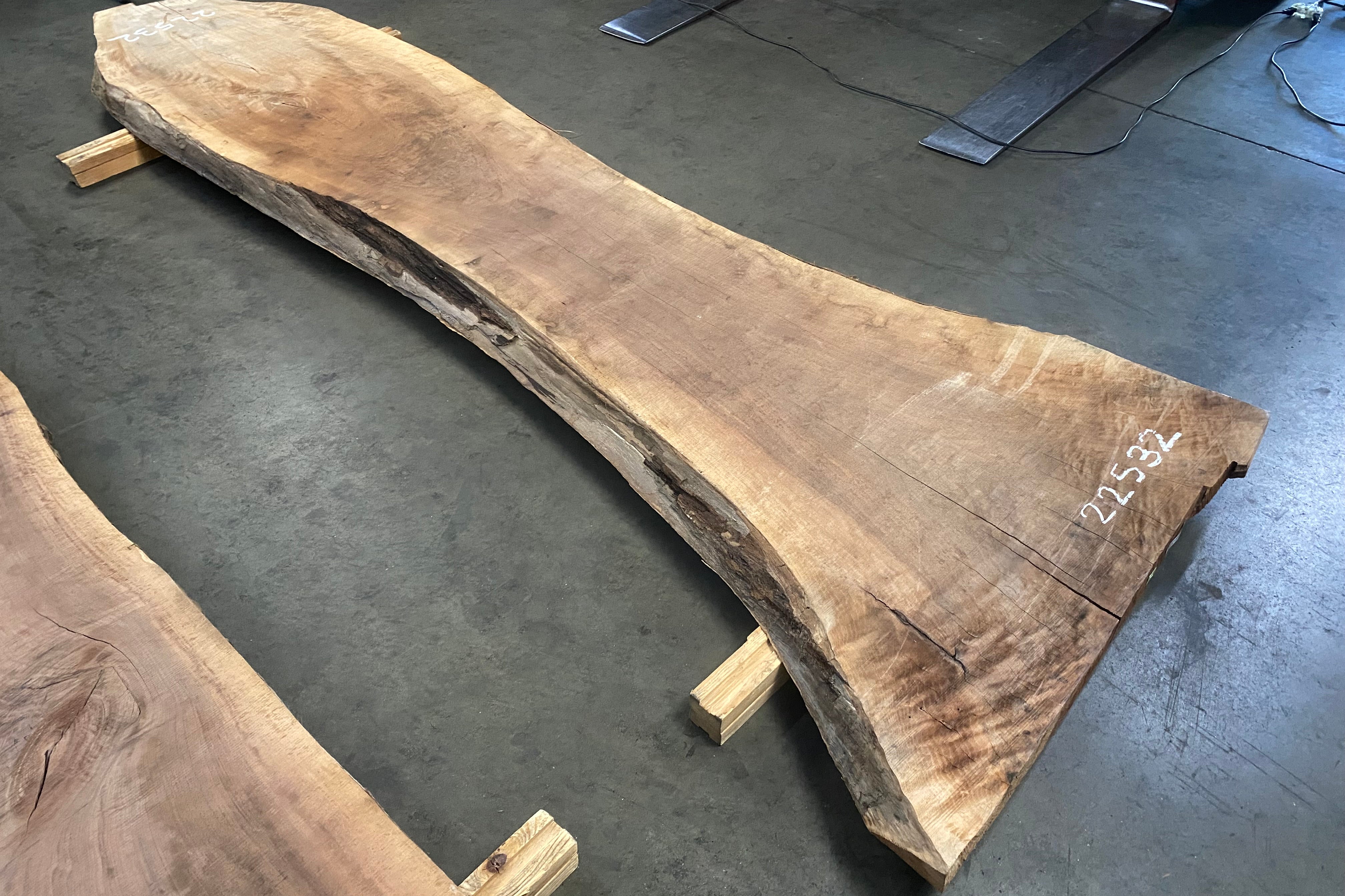Discover the timeless beauty of walnut slabs, each a unique work of art by nature. These slabs are made from sustainably sourced walnut wood and feature deep, shiny colors and fascinating grain patterns that combine sophistication with rustic appeal for any woodworking project.