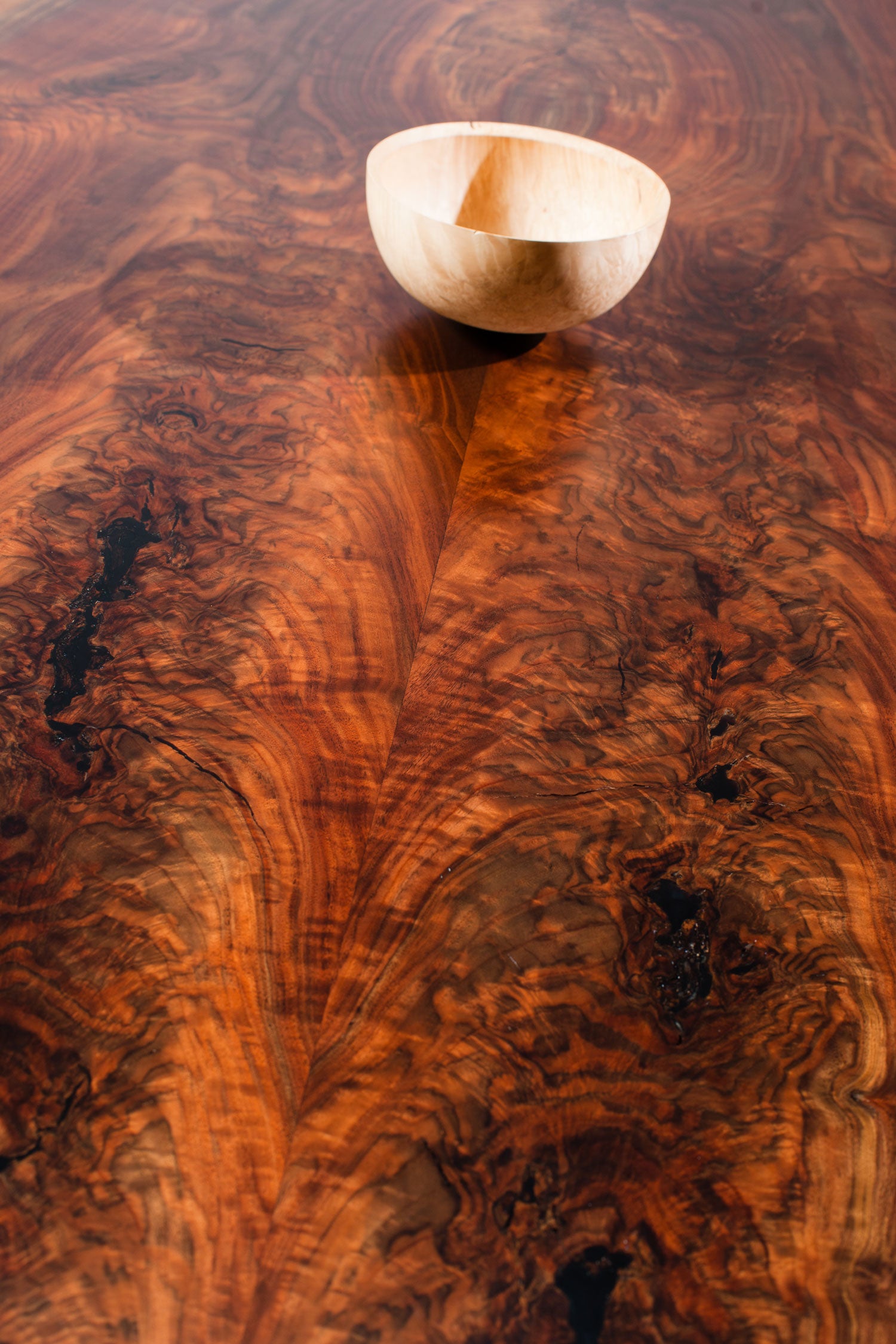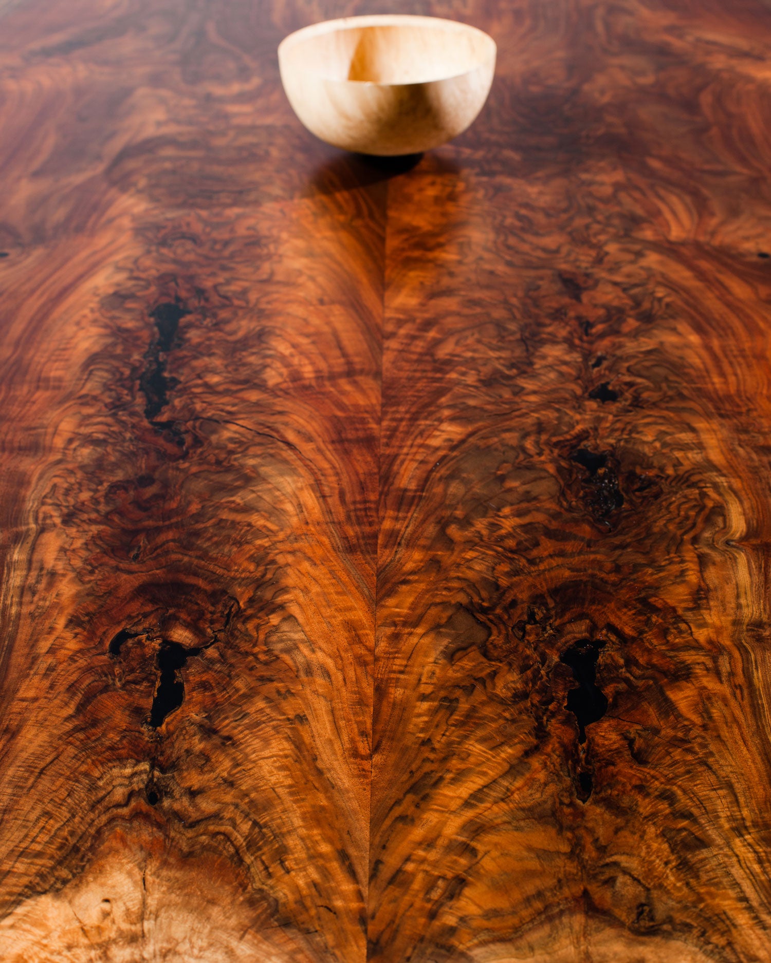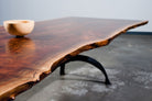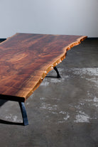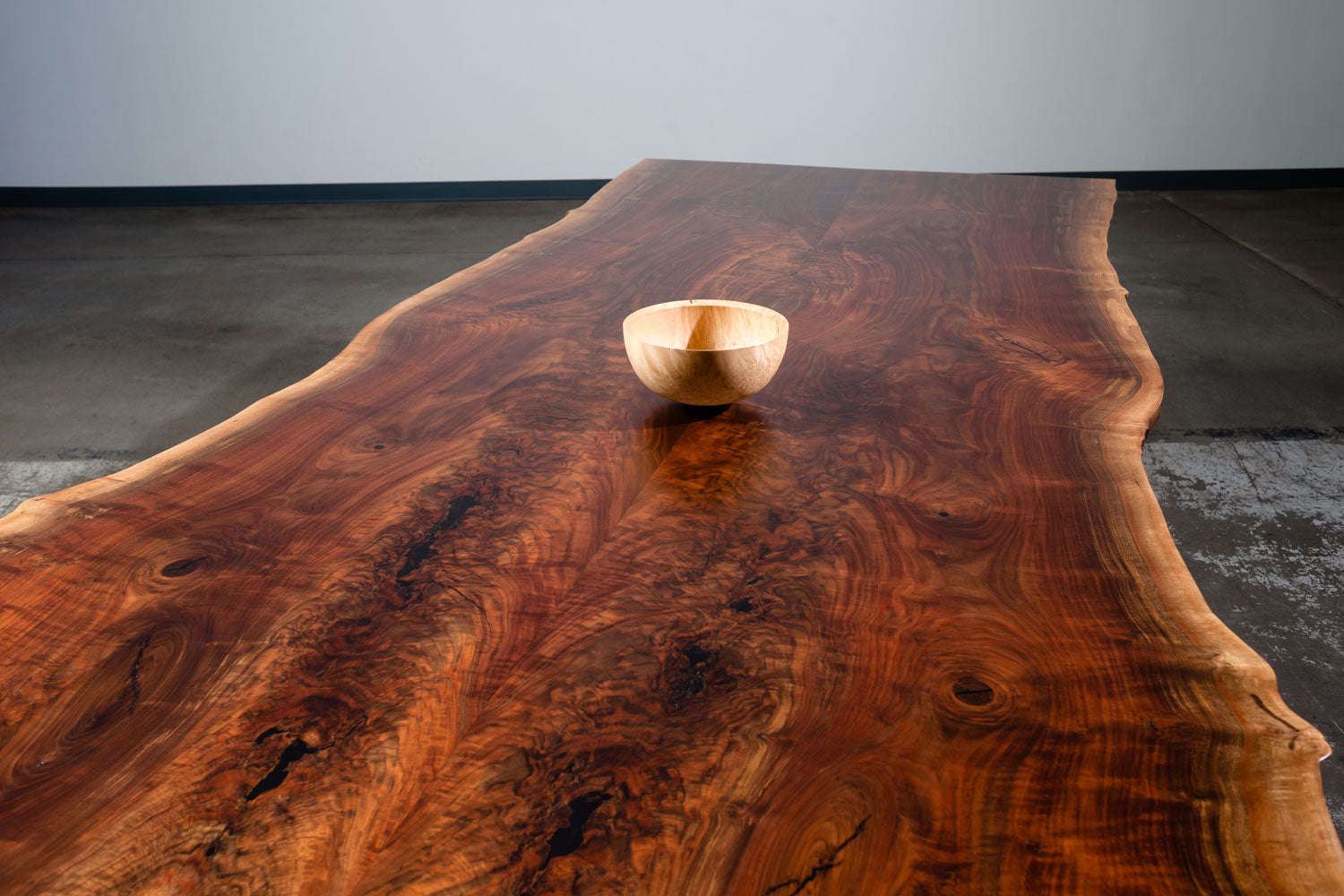 Large bookmatched claro walnut live edge table top perfect for business or entertaining. A great statement piece! We handcrafted this table from North American urban reclaimed slabs we hand-selected and had custom milled. We Rocky Mountain kiln dried them in Colorado. This table will comfortably seat 14. It is finished with a two part polymerized tung oil finish that enhances the grain definition while maintaining a natural, matte look. Durable and resistant to water and alcohol the surface is cleaned easily with water and mild soap. No other upkeep needed.