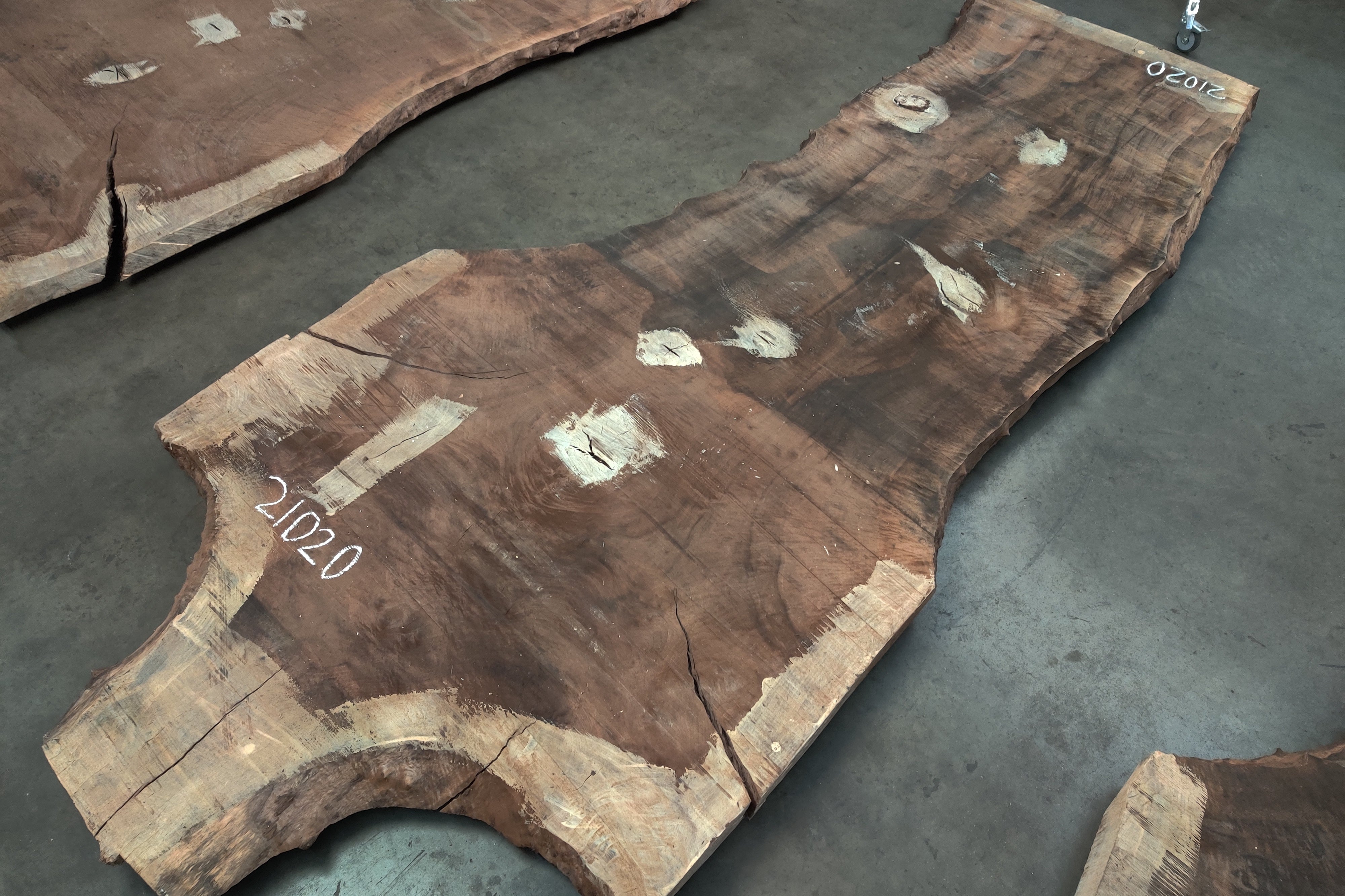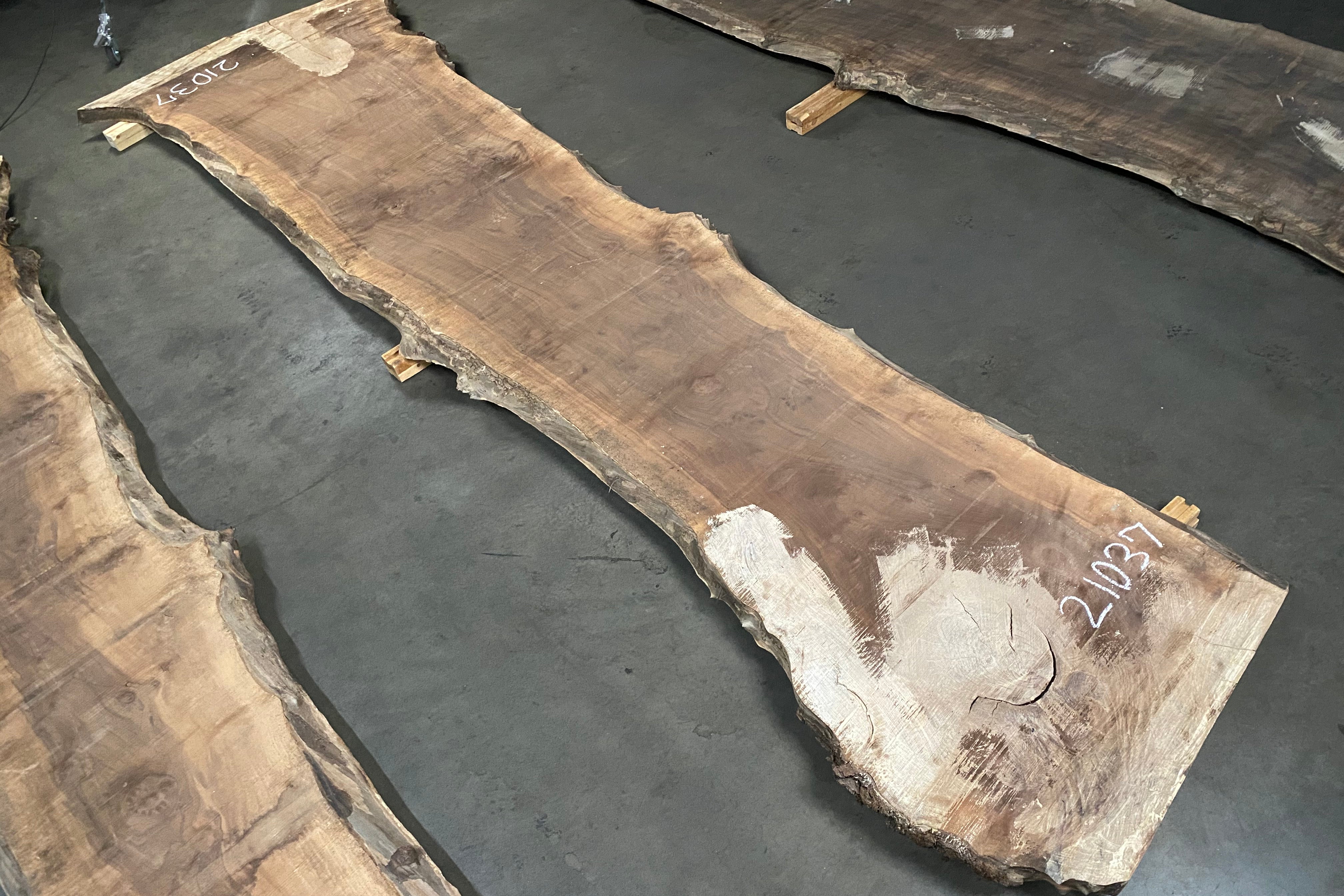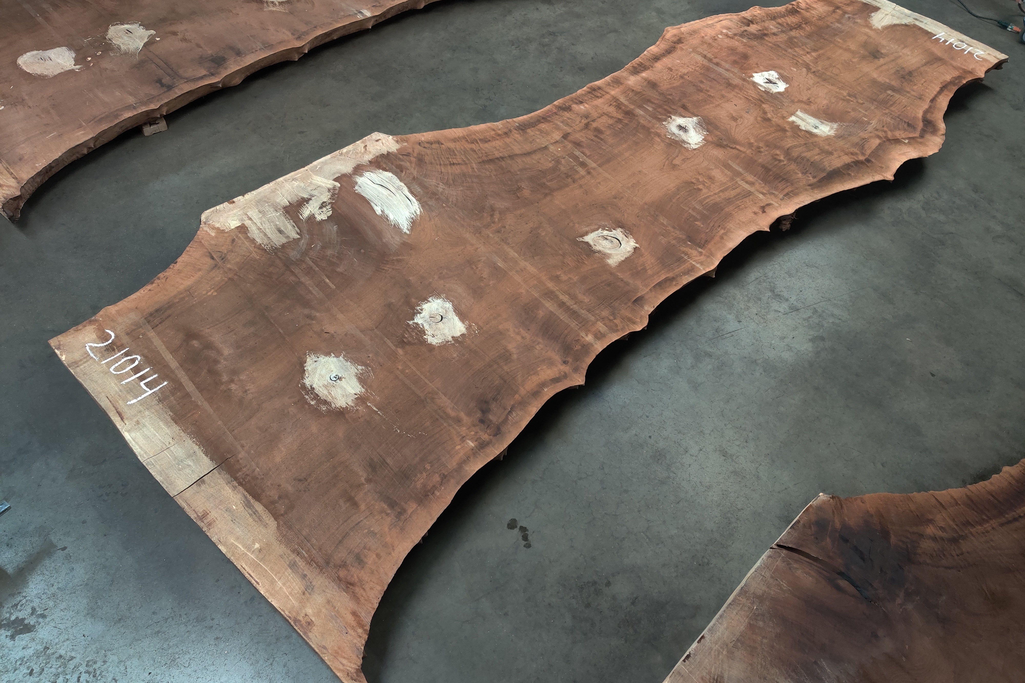 Discover the timeless beauty of walnut slabs, each a unique work of art by nature. These slabs are made from sustainably sourced walnut wood and feature deep, shiny colors and fascinating grain patterns that combine sophistication with rustic appeal for any woodworking project.