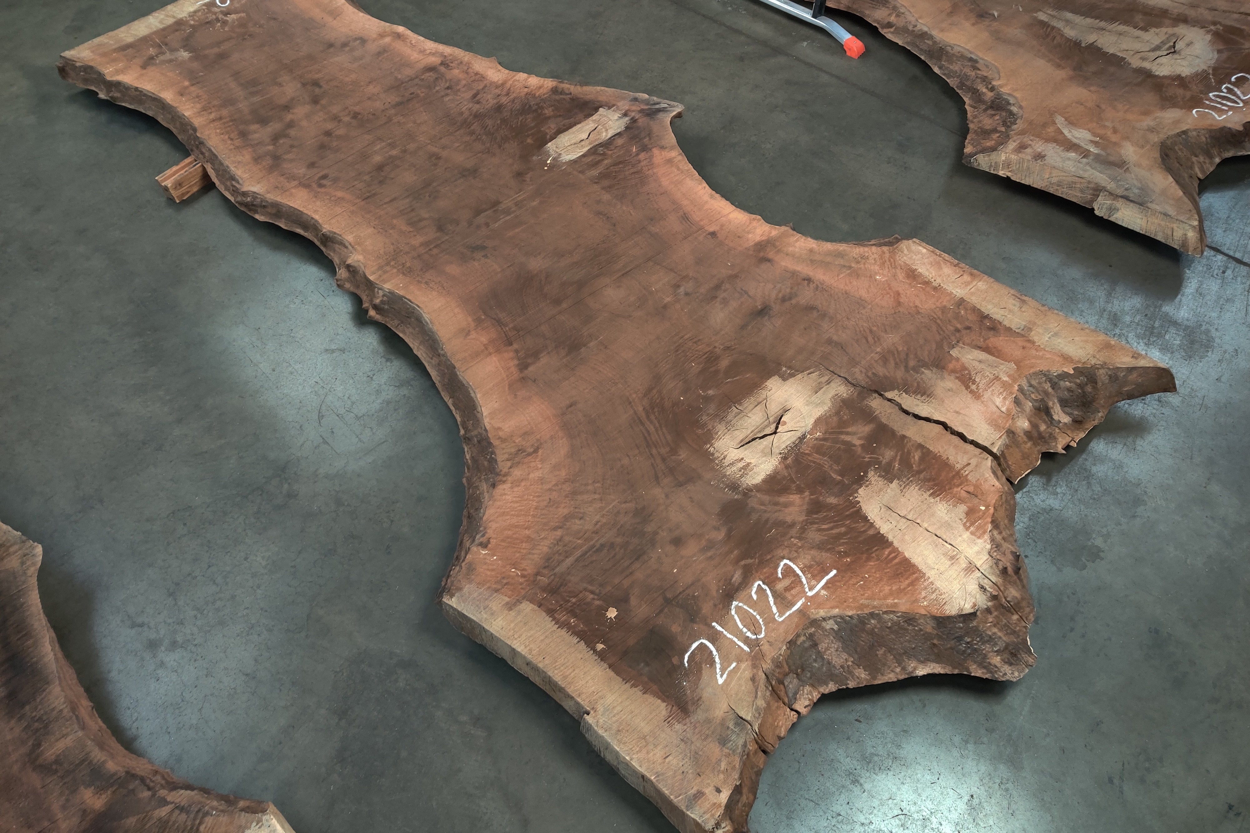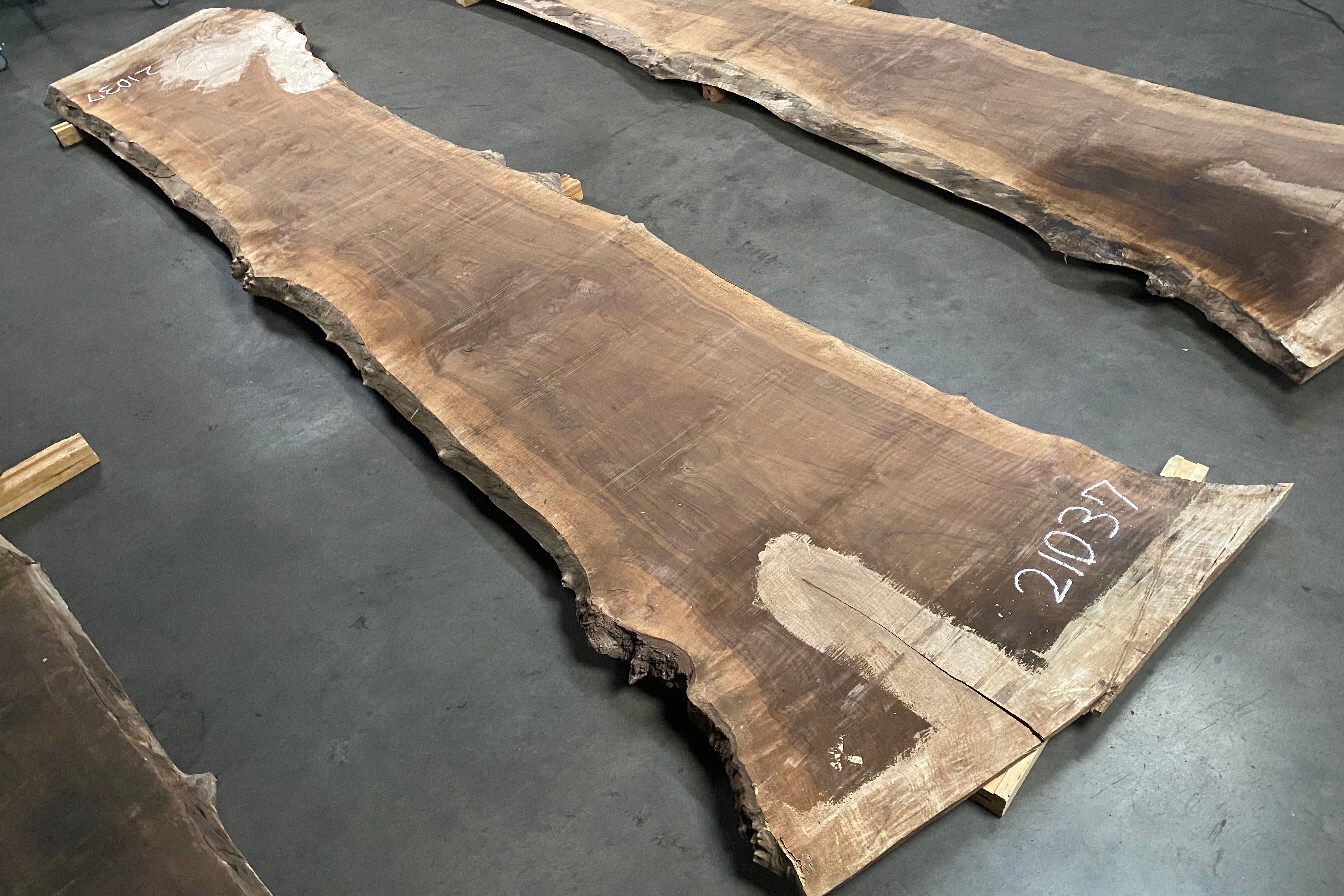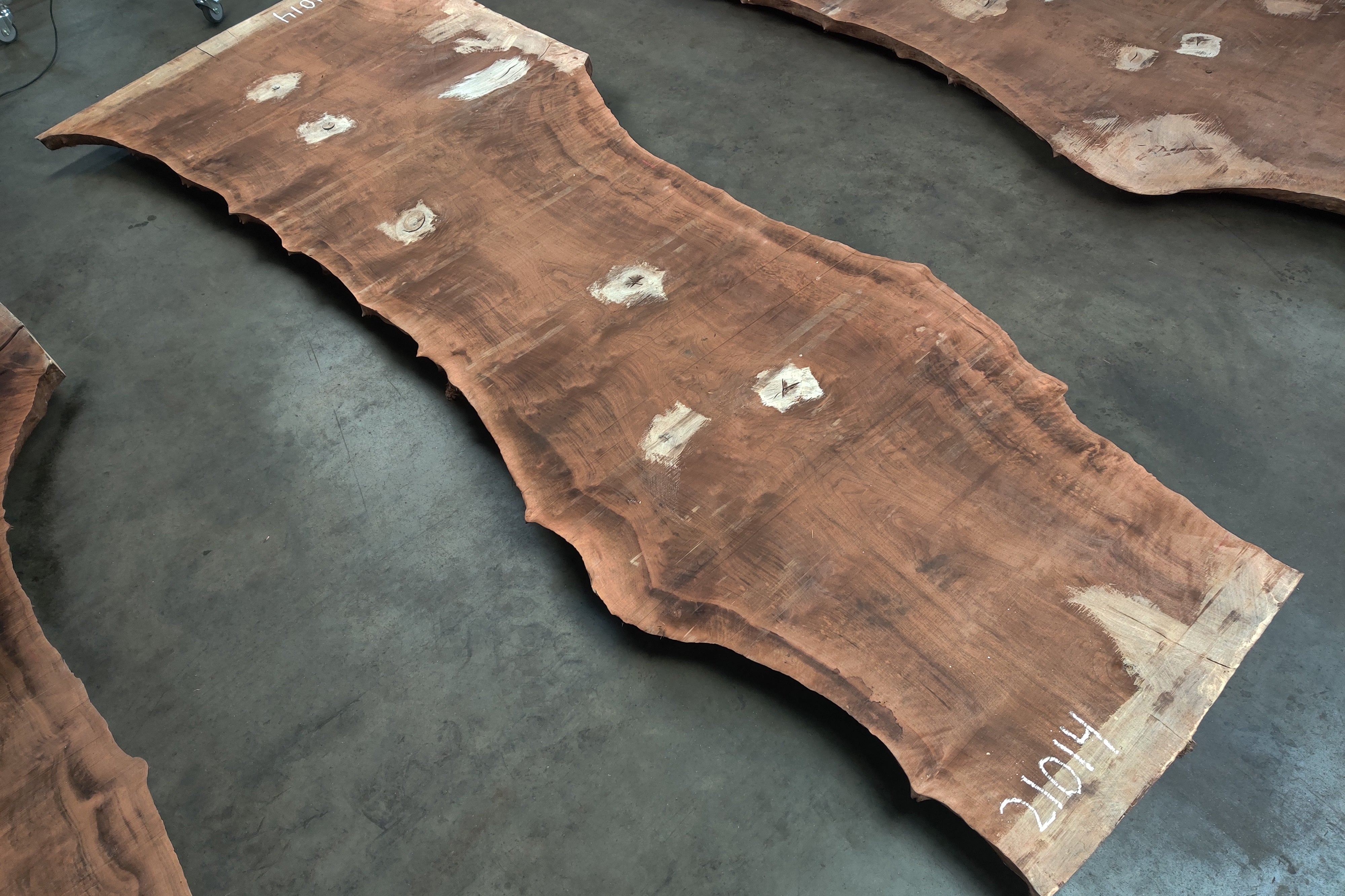 Discover the timeless beauty of walnut slabs, each a unique work of art by nature. These slabs are made from sustainably sourced walnut wood and feature deep, shiny colors and fascinating grain patterns that combine sophistication with rustic appeal for any woodworking project.