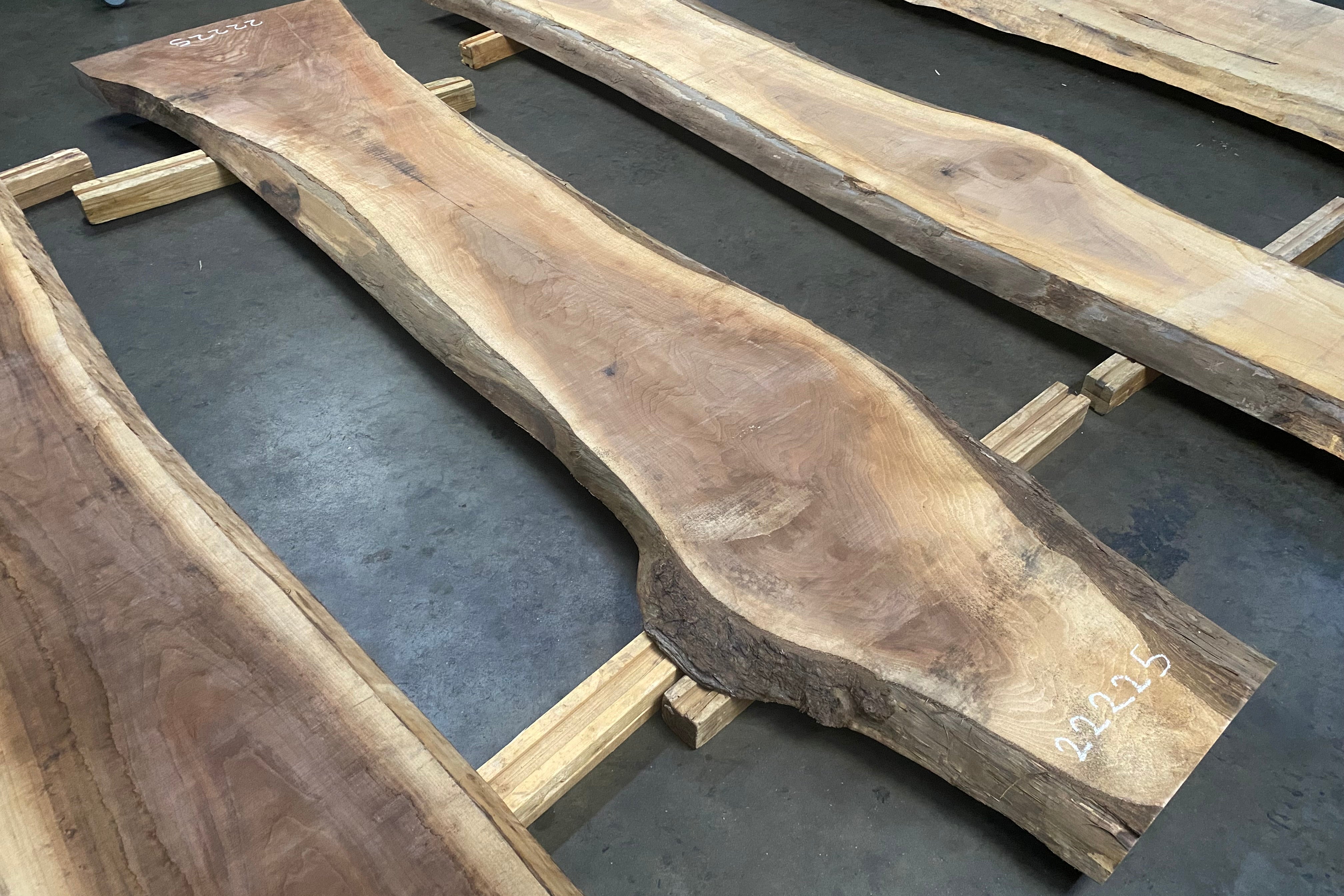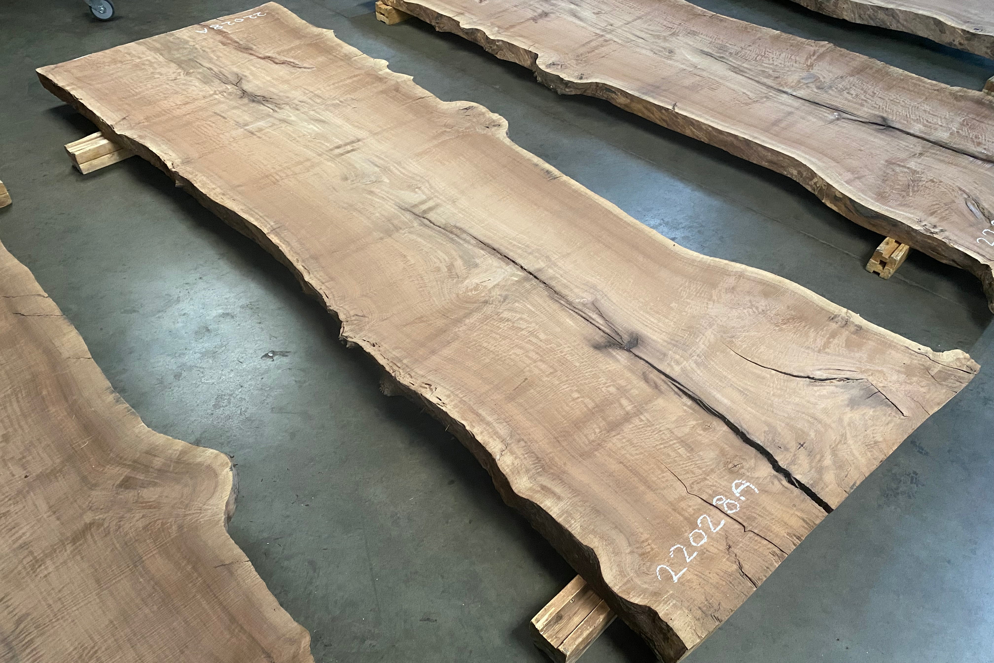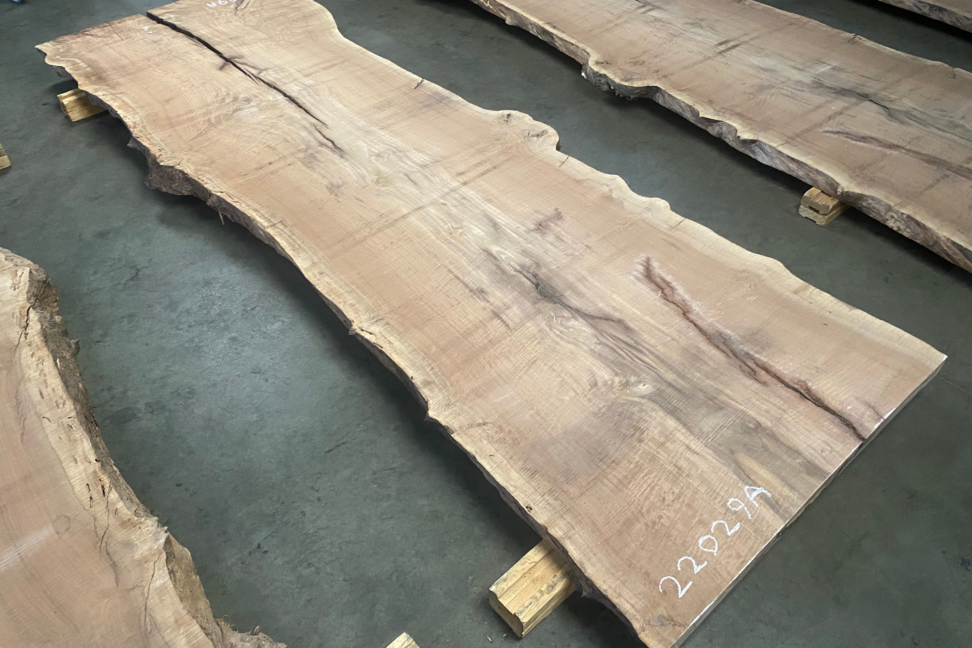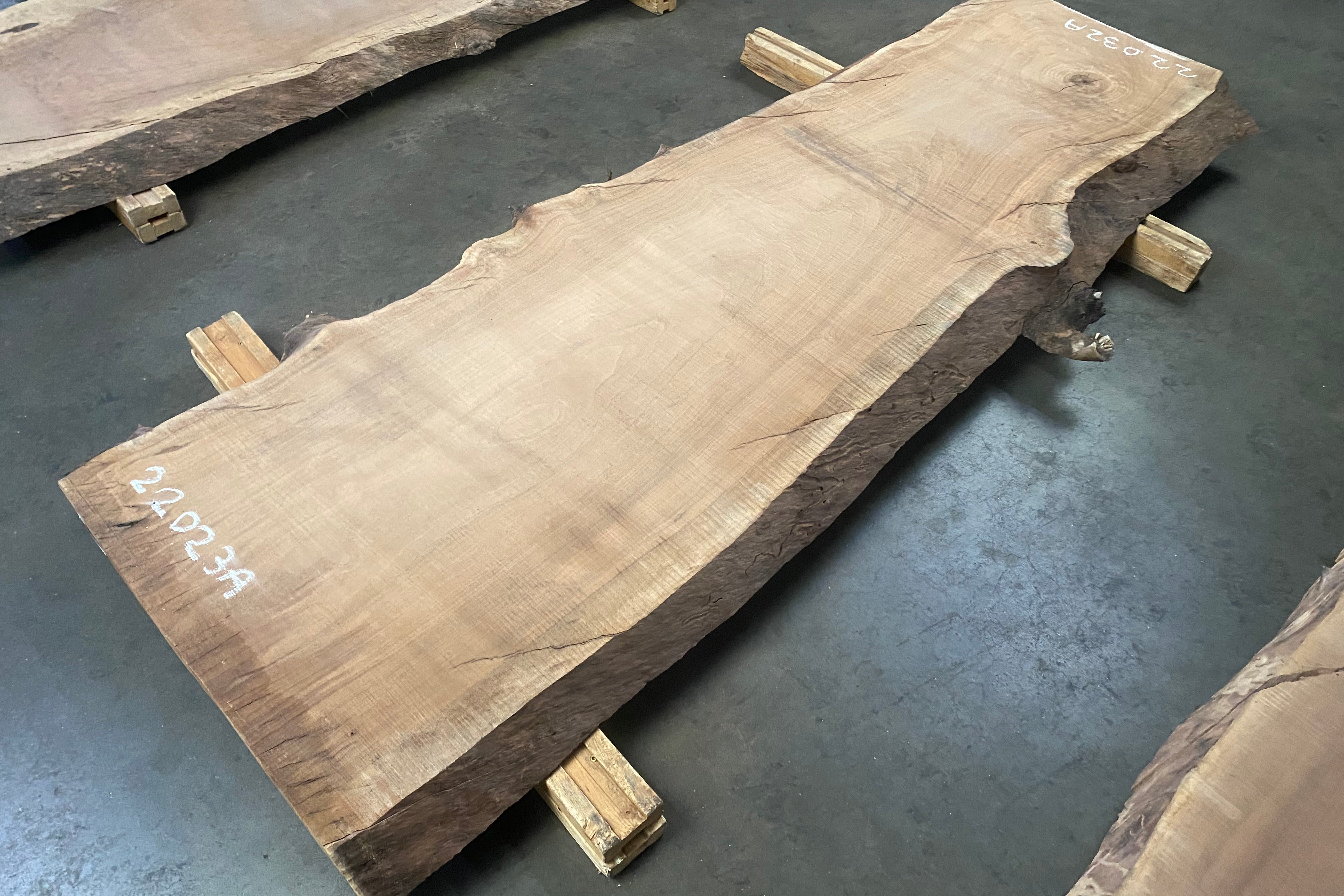 Discover the timeless beauty of walnut slabs, each a unique work of art by nature. These slabs are made from sustainably sourced walnut wood and feature deep, shiny colors and fascinating grain patterns that combine sophistication with rustic appeal for any woodworking project.