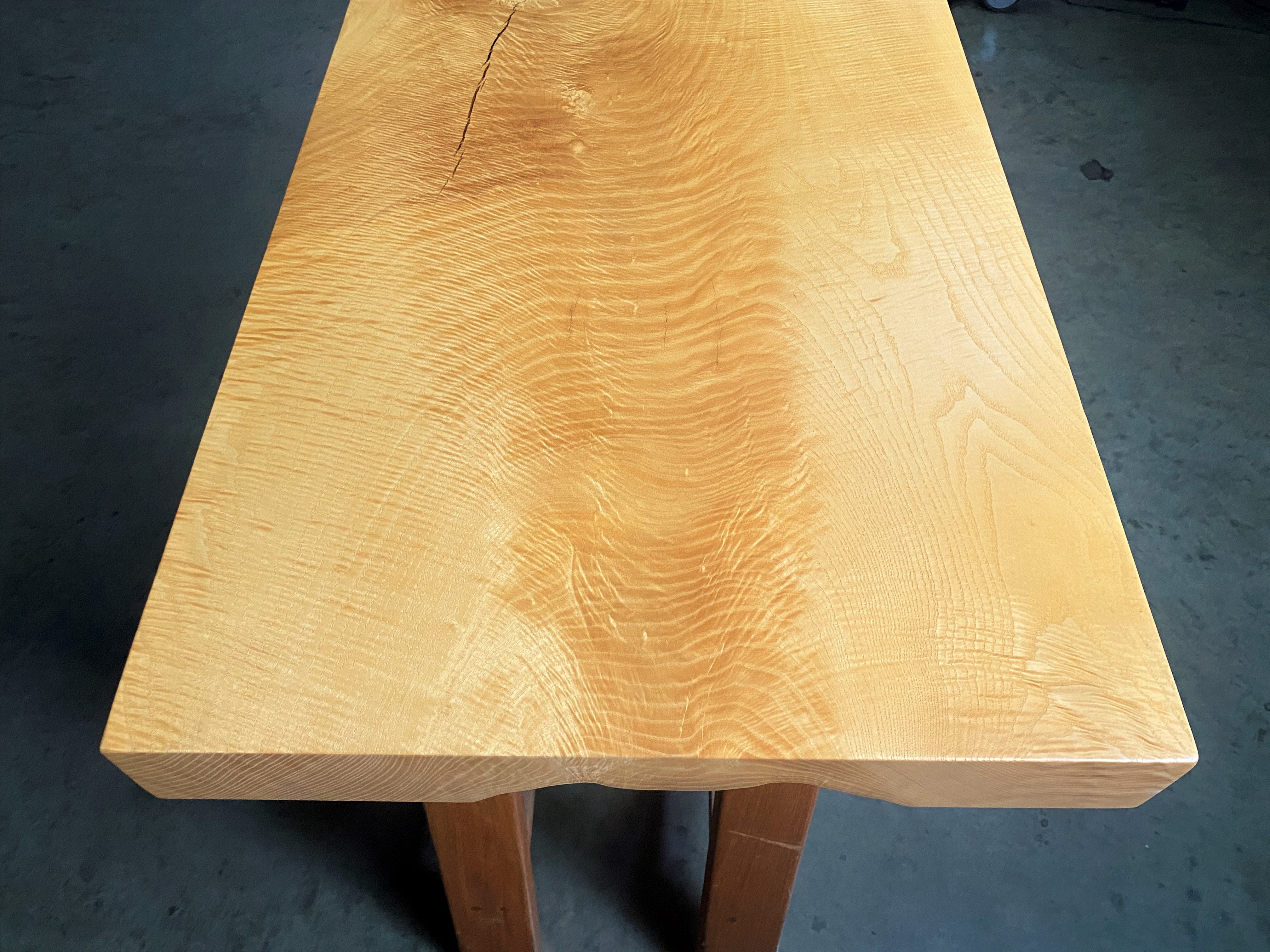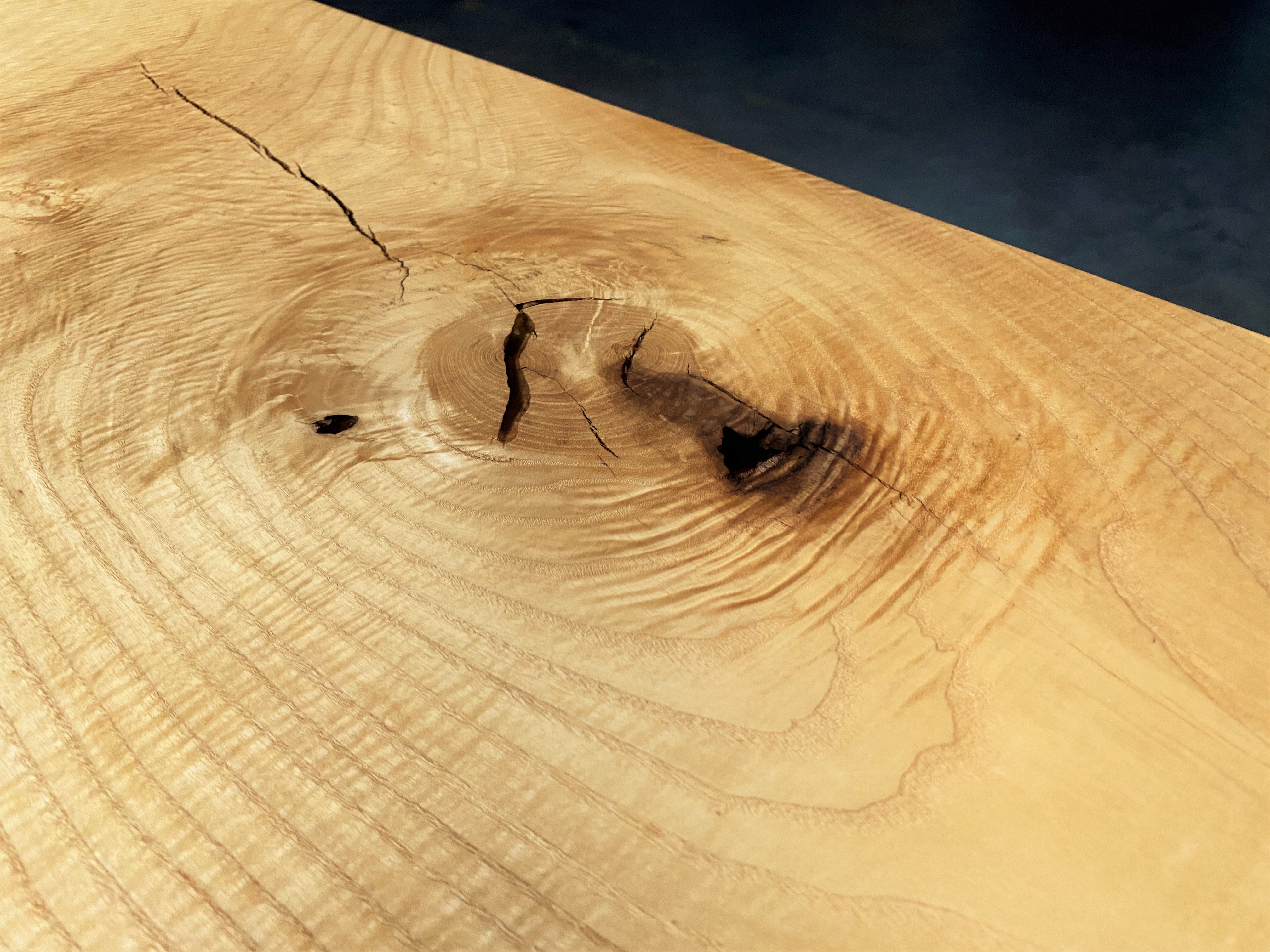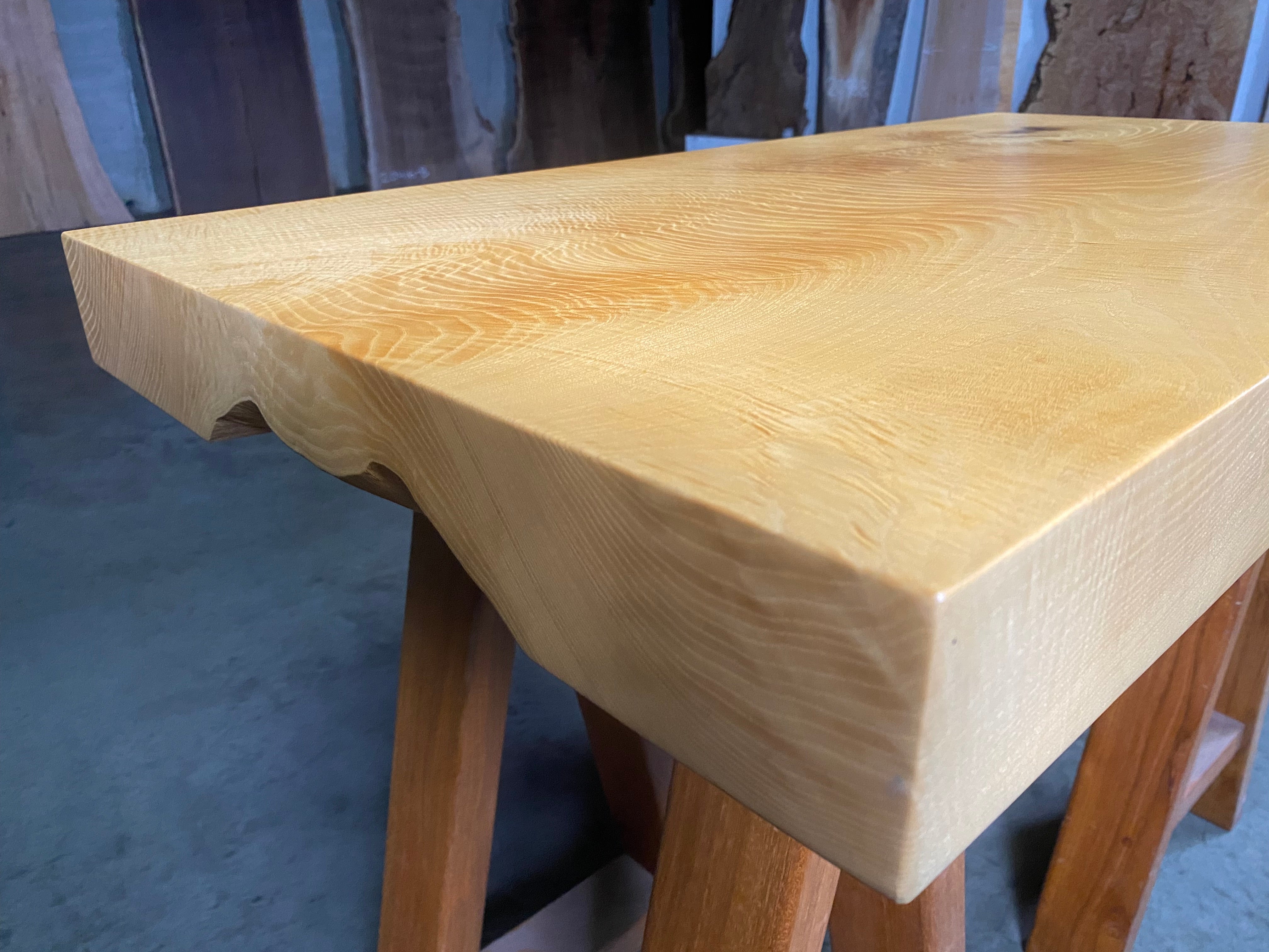 - Description:  This thick cut slab of White Ash is a hard and durable cutting surface. There is an open knot with a few small surface checks that are both filled with clear epoxy.  High Figure.