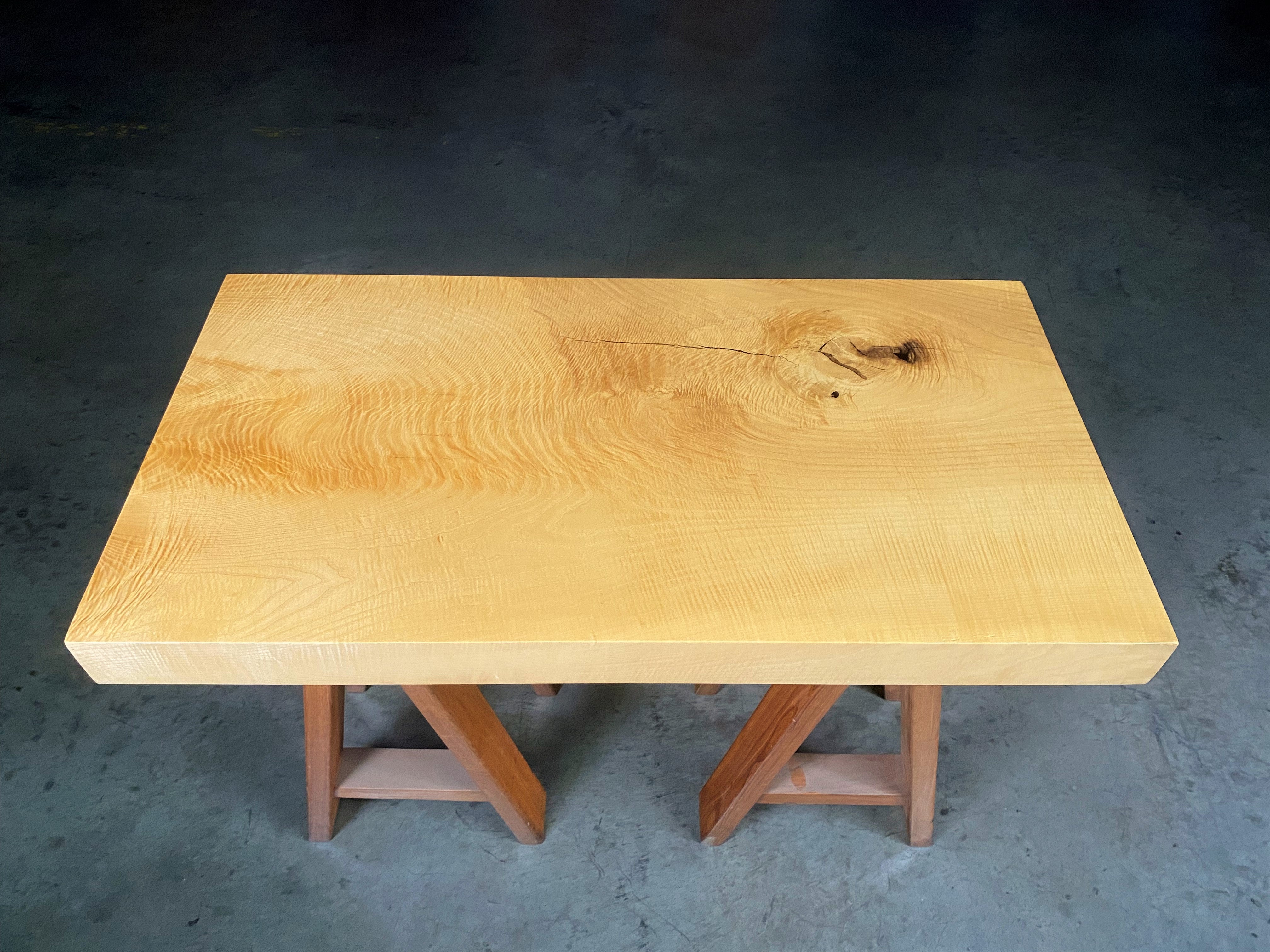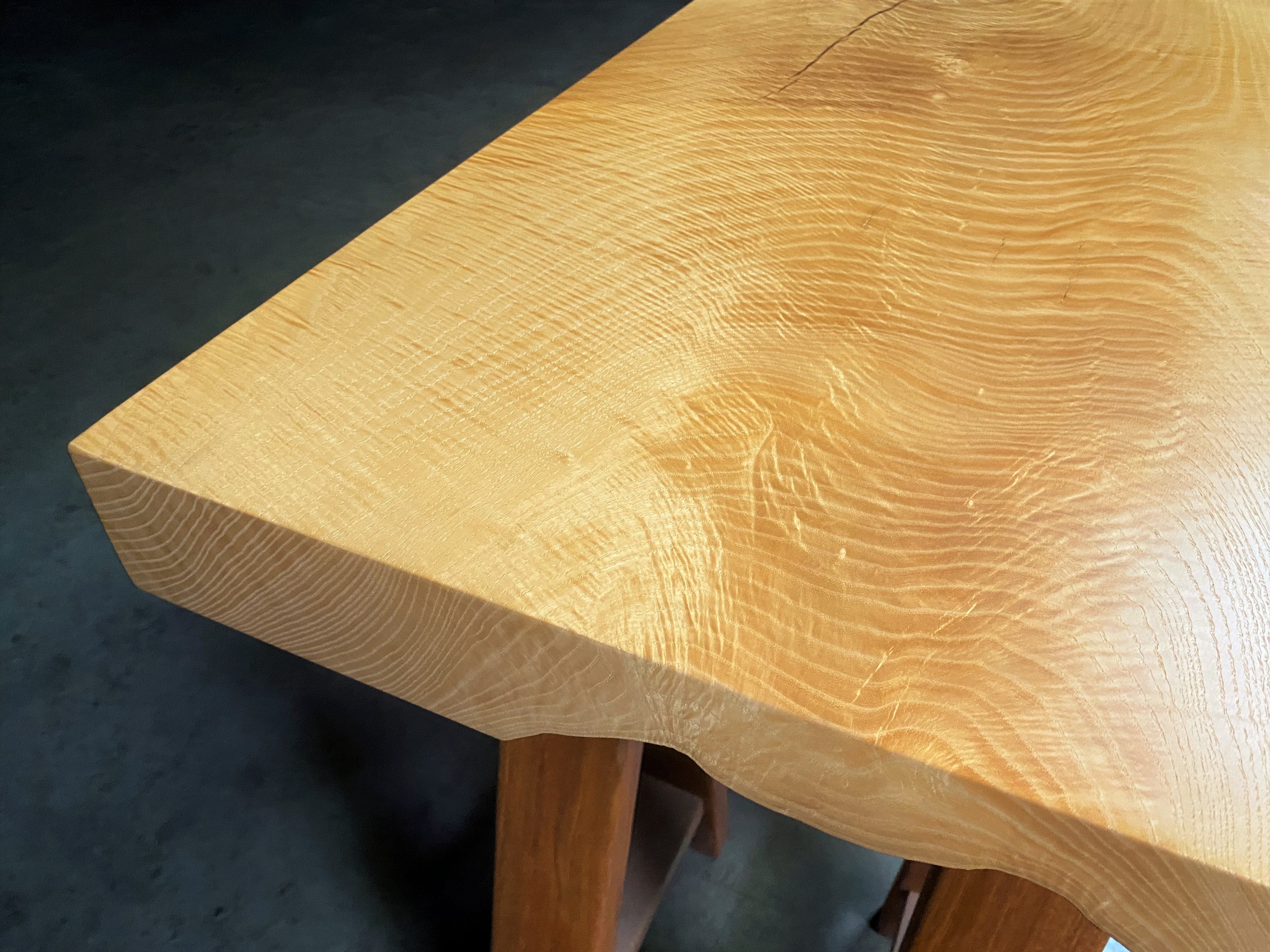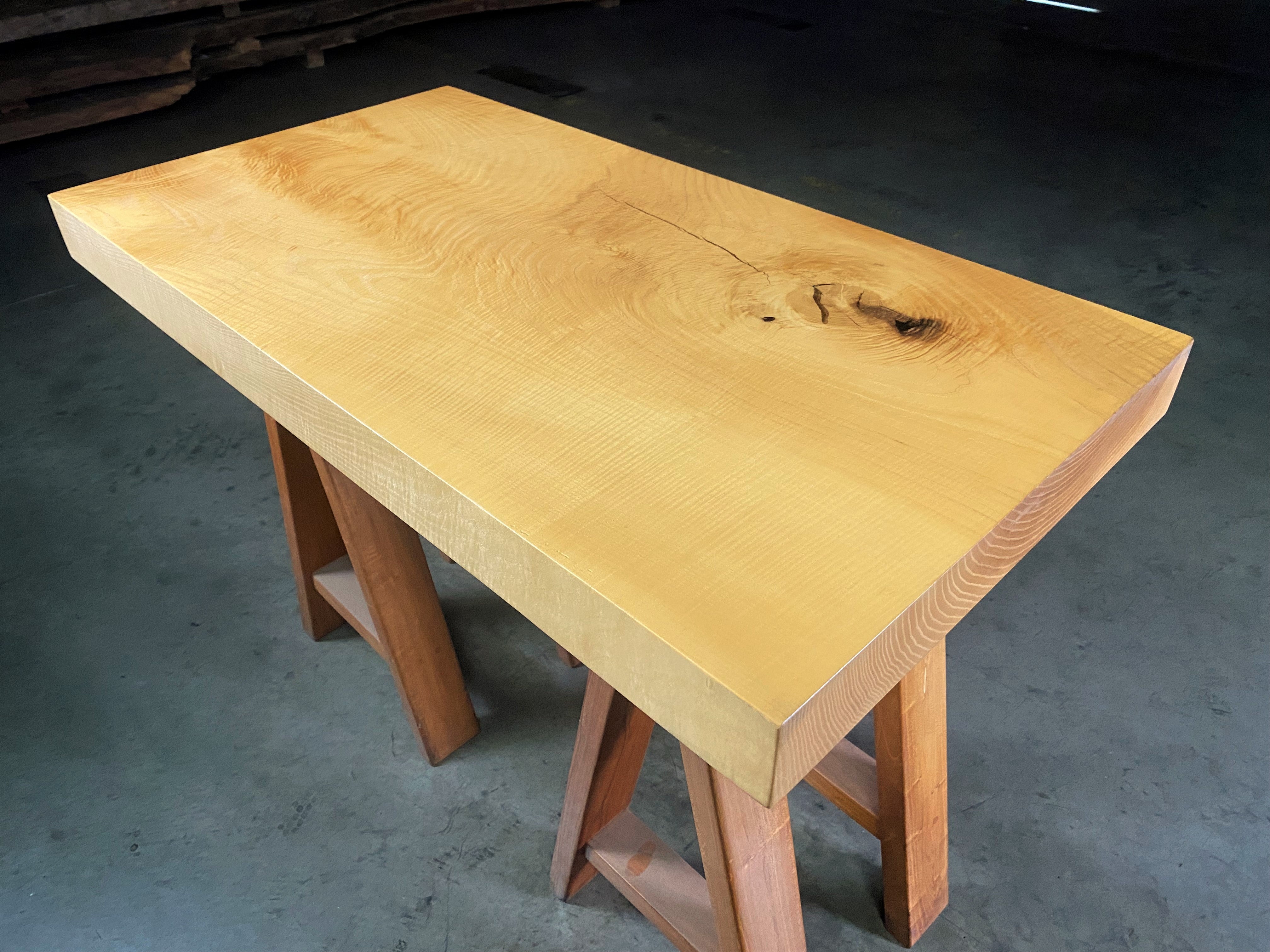 - Description:  This thick cut slab of White Ash is a hard and durable cutting surface. There is an open knot with a few small surface checks that are both filled with clear epoxy.  High Figure.
