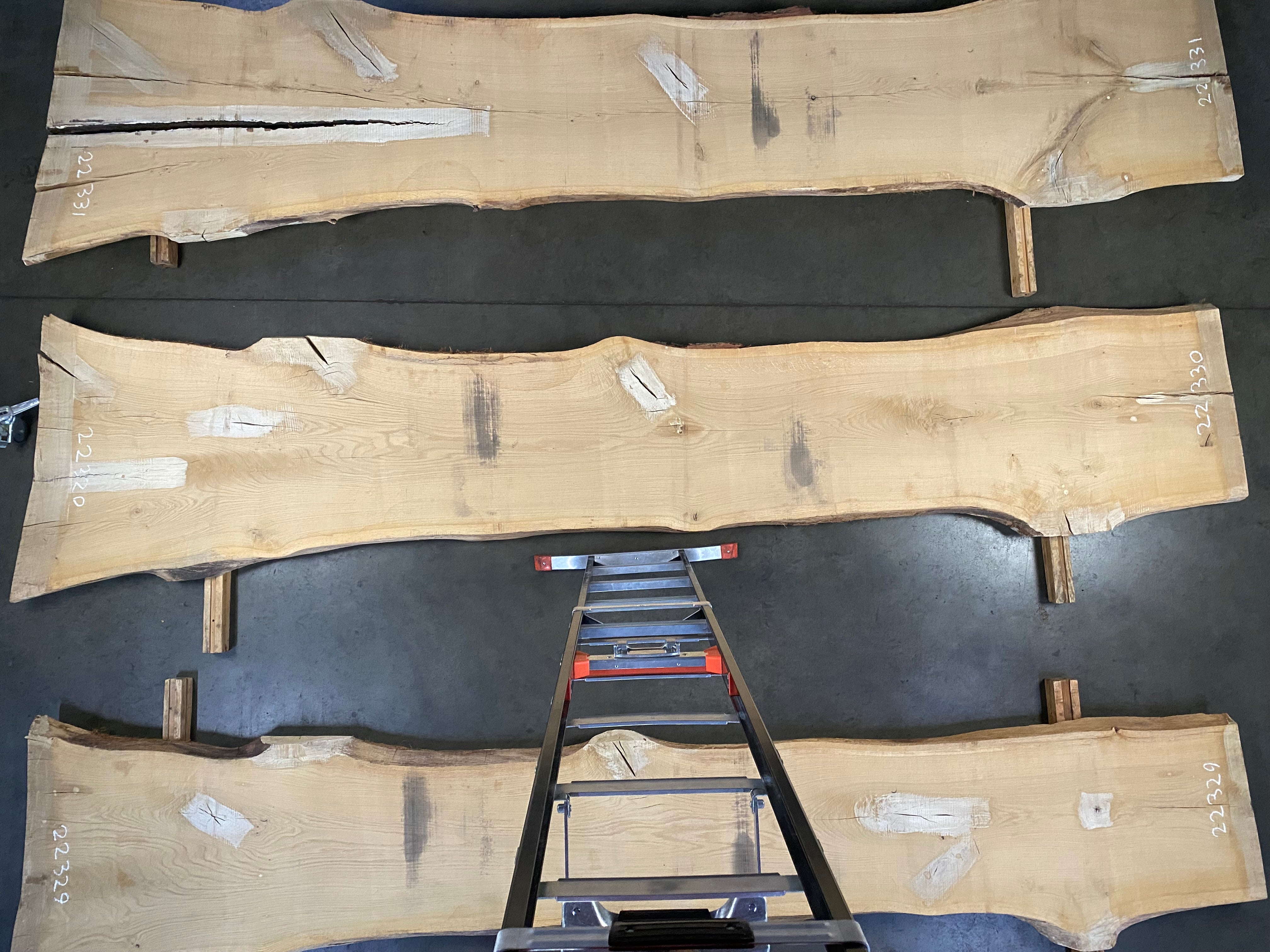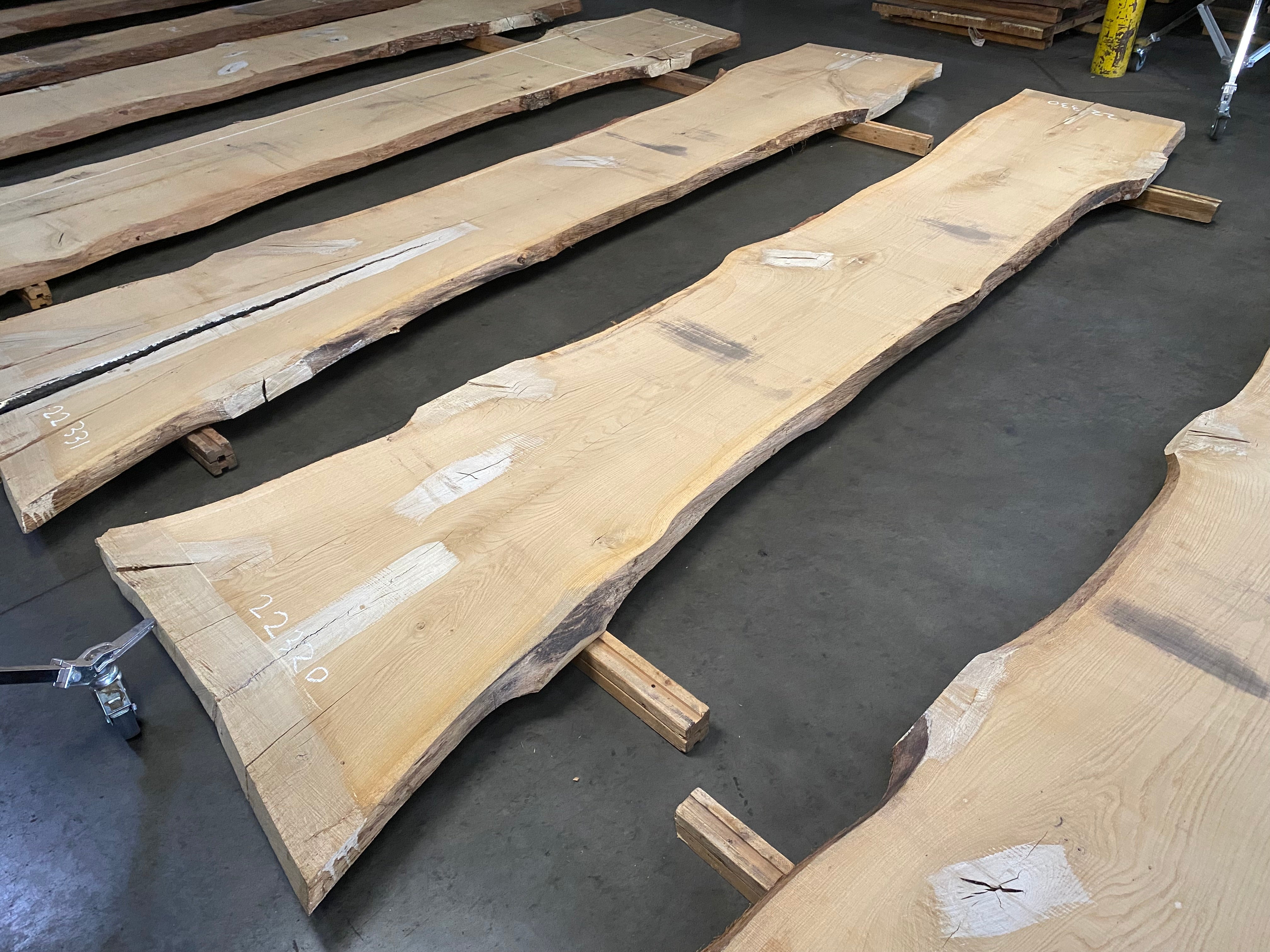 ● Rough sawn, slight cup, slight bow, open knots, end splits, limb trim, bookmatch with 22329