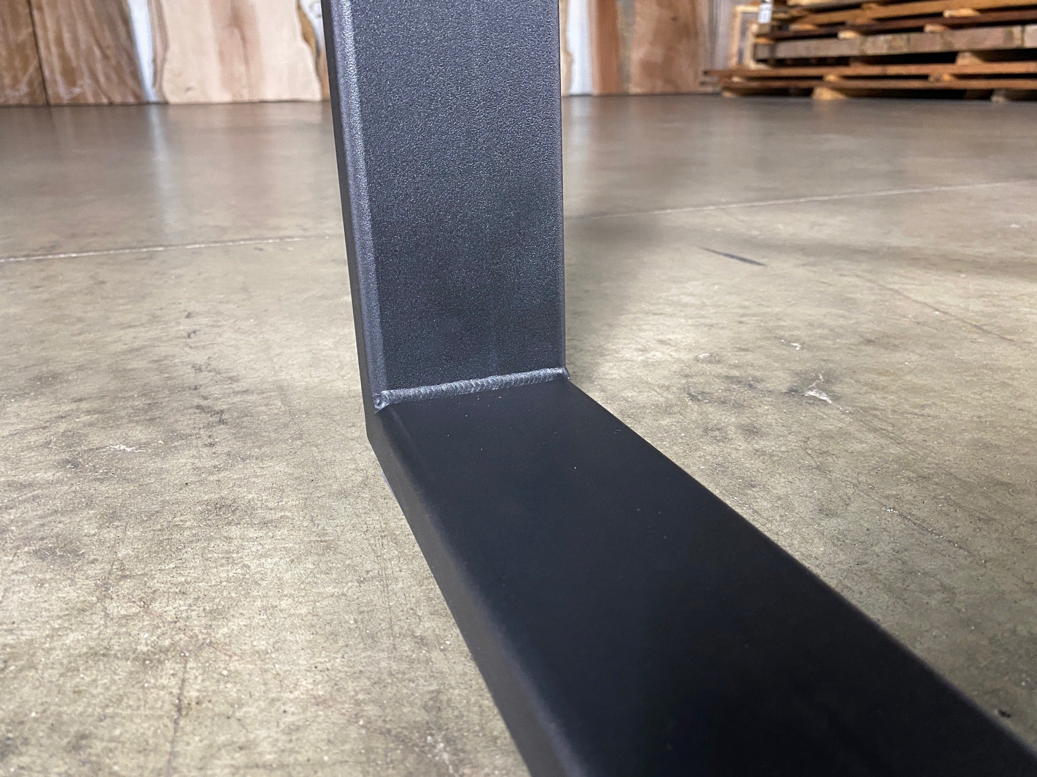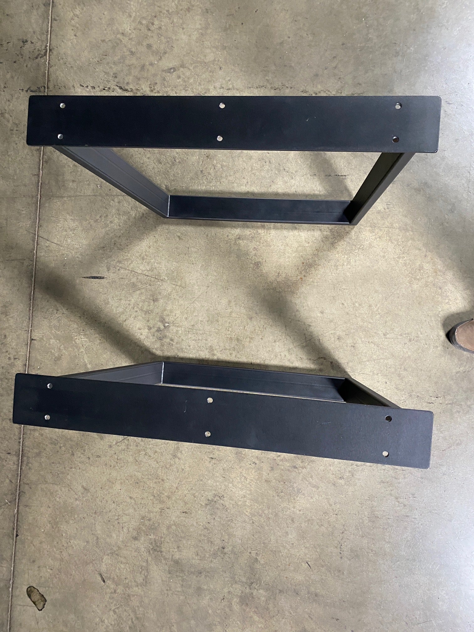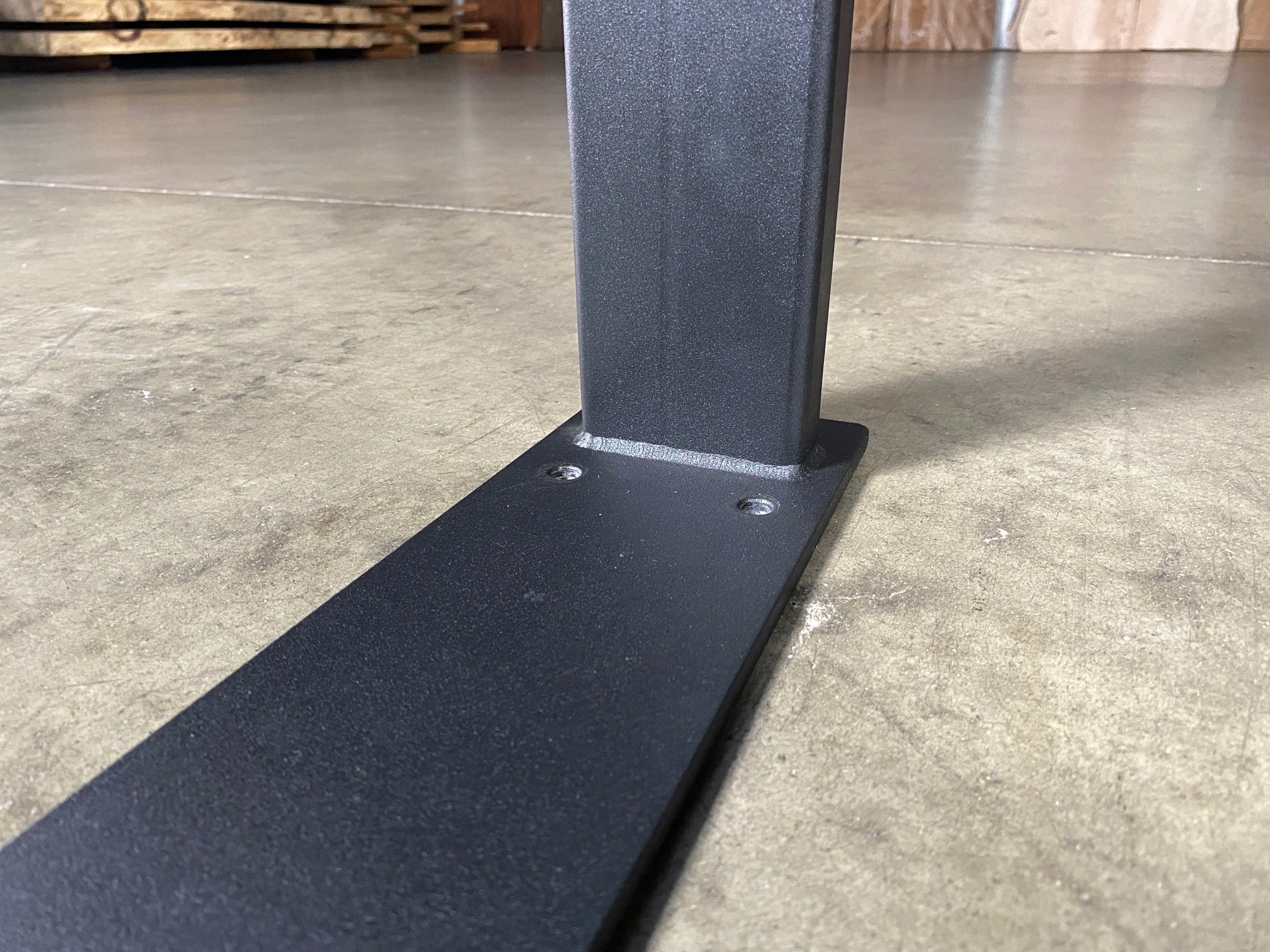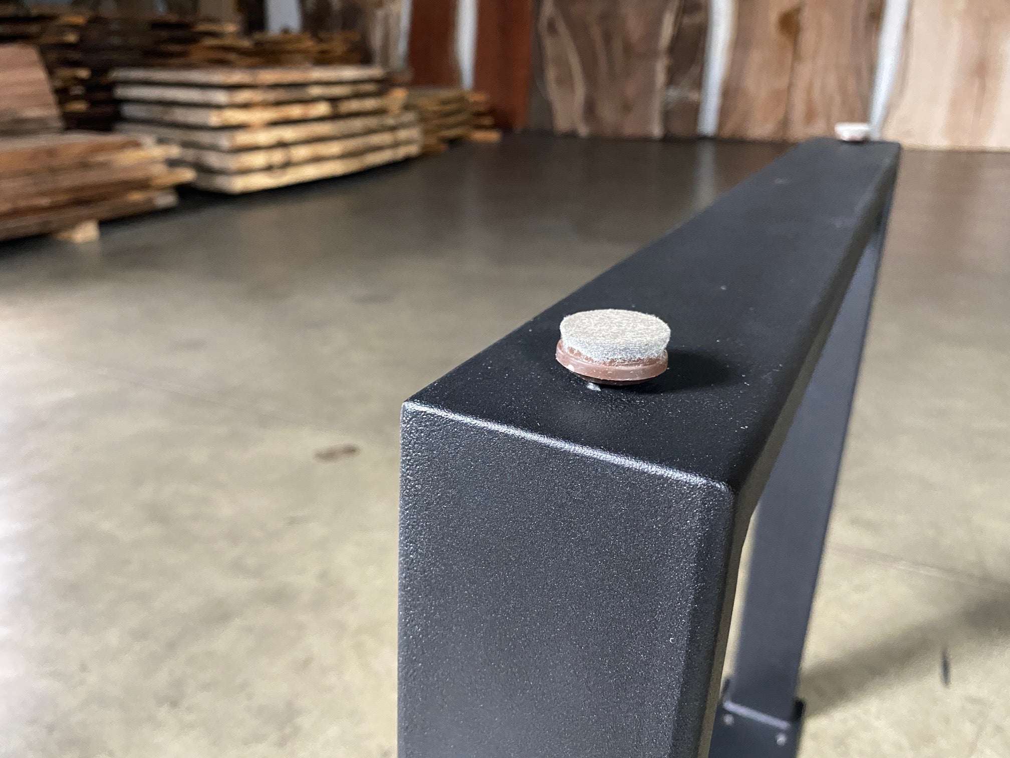 - Description: black steel with adjustable height levelers