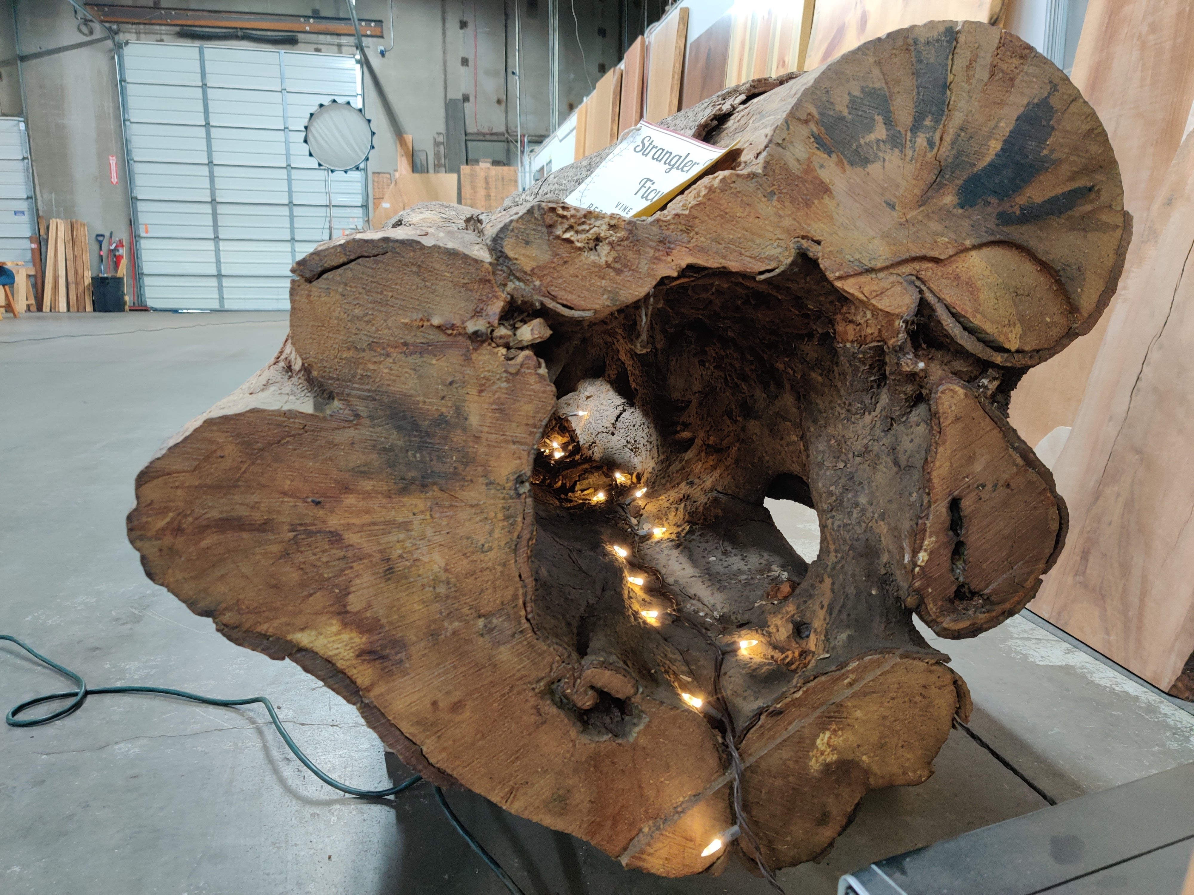 - Description: A vine structure that grows around a host tree. The strangler fig is an epiphyte that starts from high branches and slowly grows roots down the trunk of a tree. This strangler fig outlasted its host, making it a hollow standalone structure.