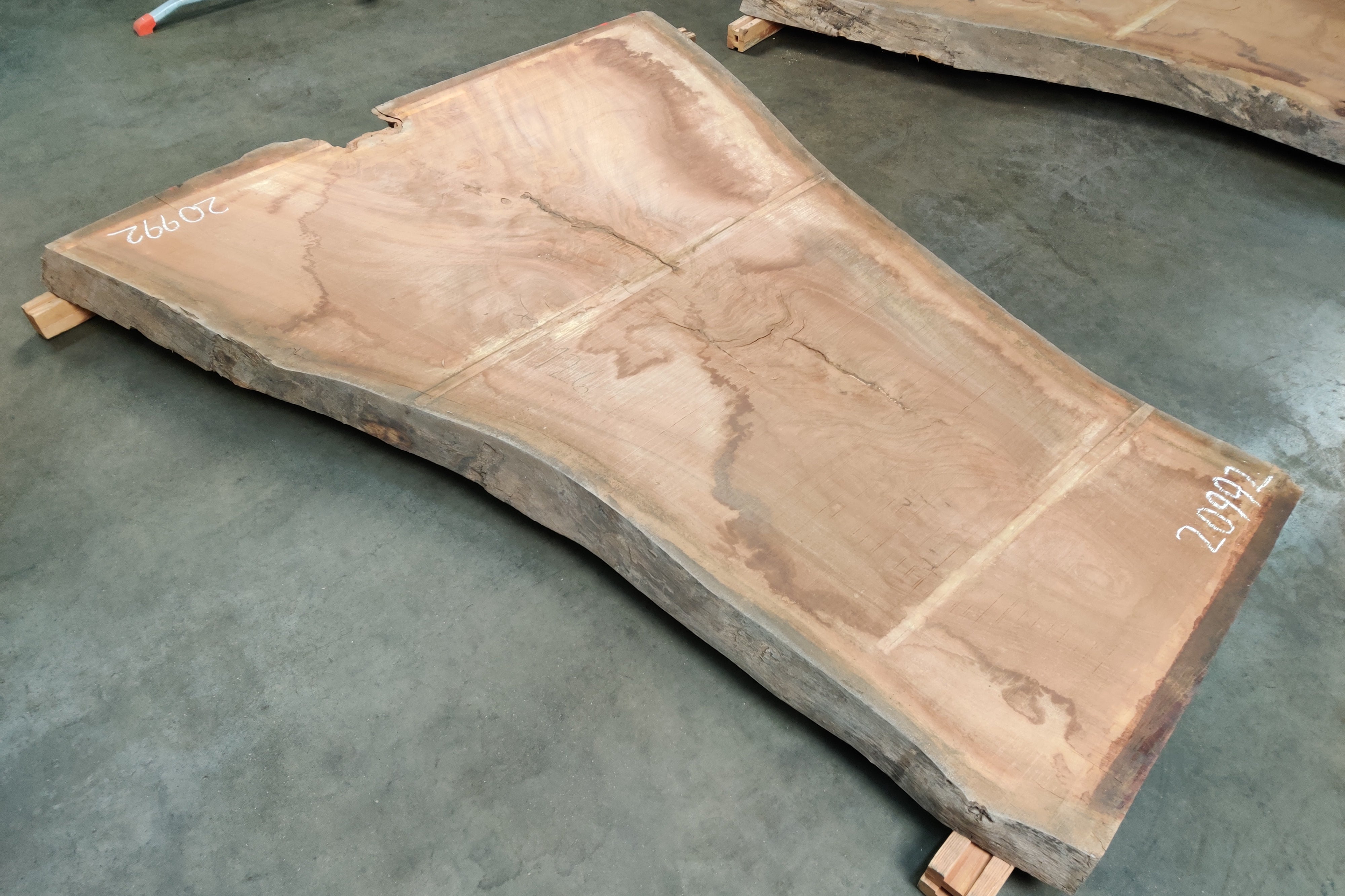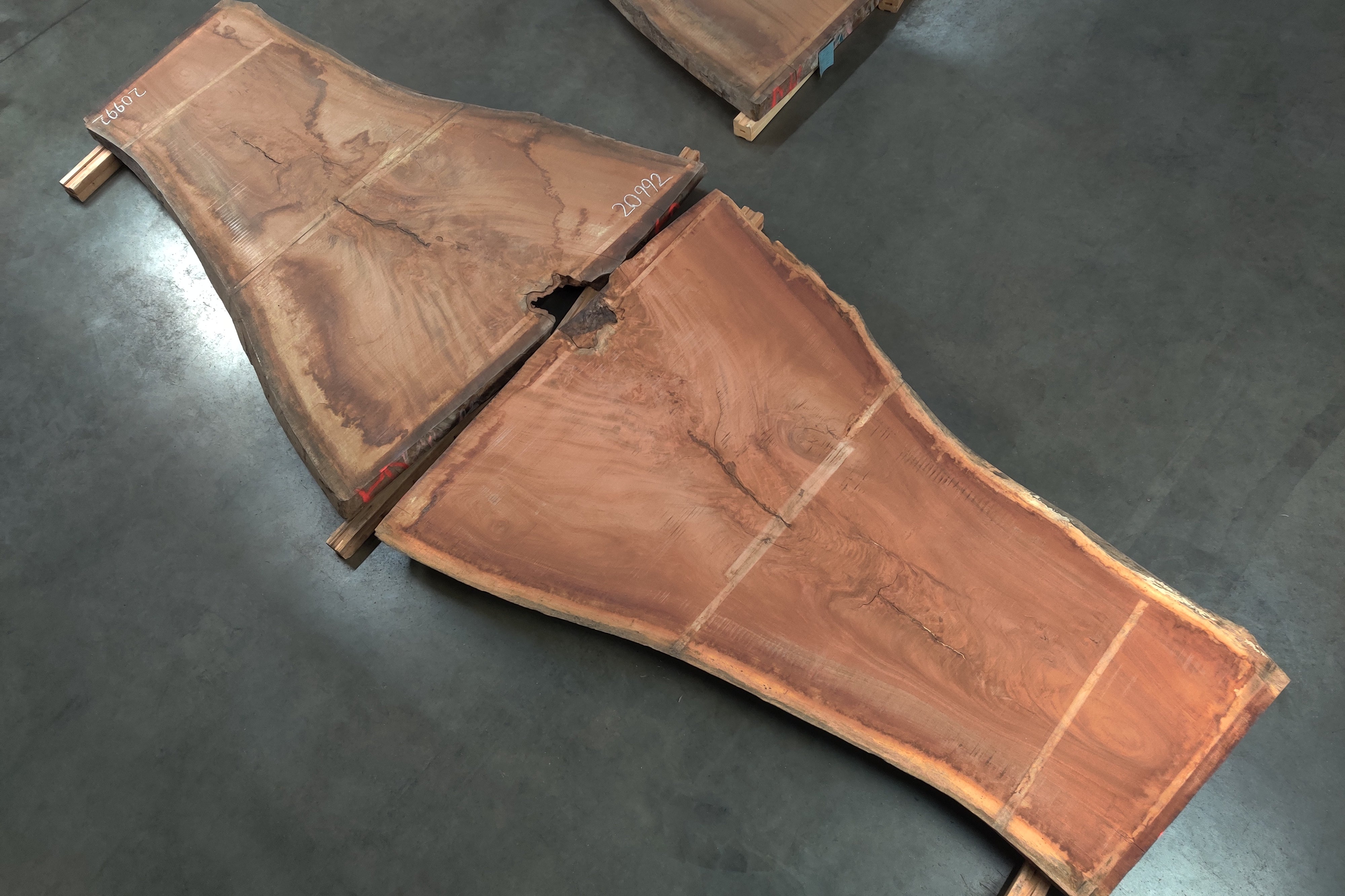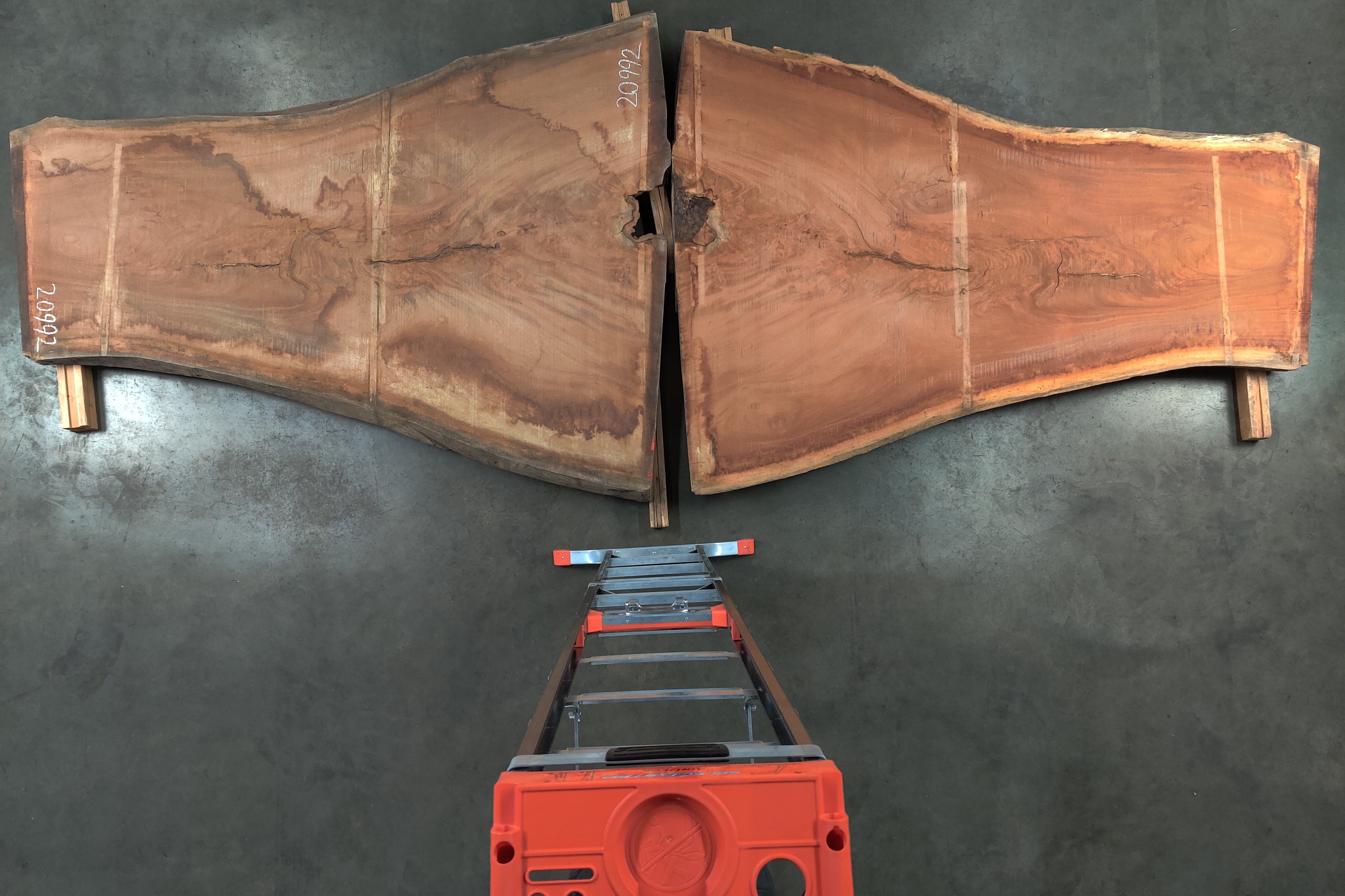 Bookmatched wood slabs are made by joining two slabs together and lining up their surfaces so that the grain of the wood reflects along a middle line. Usually, these pieces are cut from the same piece of wood. What makes the bookmatch effect more valuable is the variance from each half to the other, and the better the bookmatch, the more impressive it looks.
