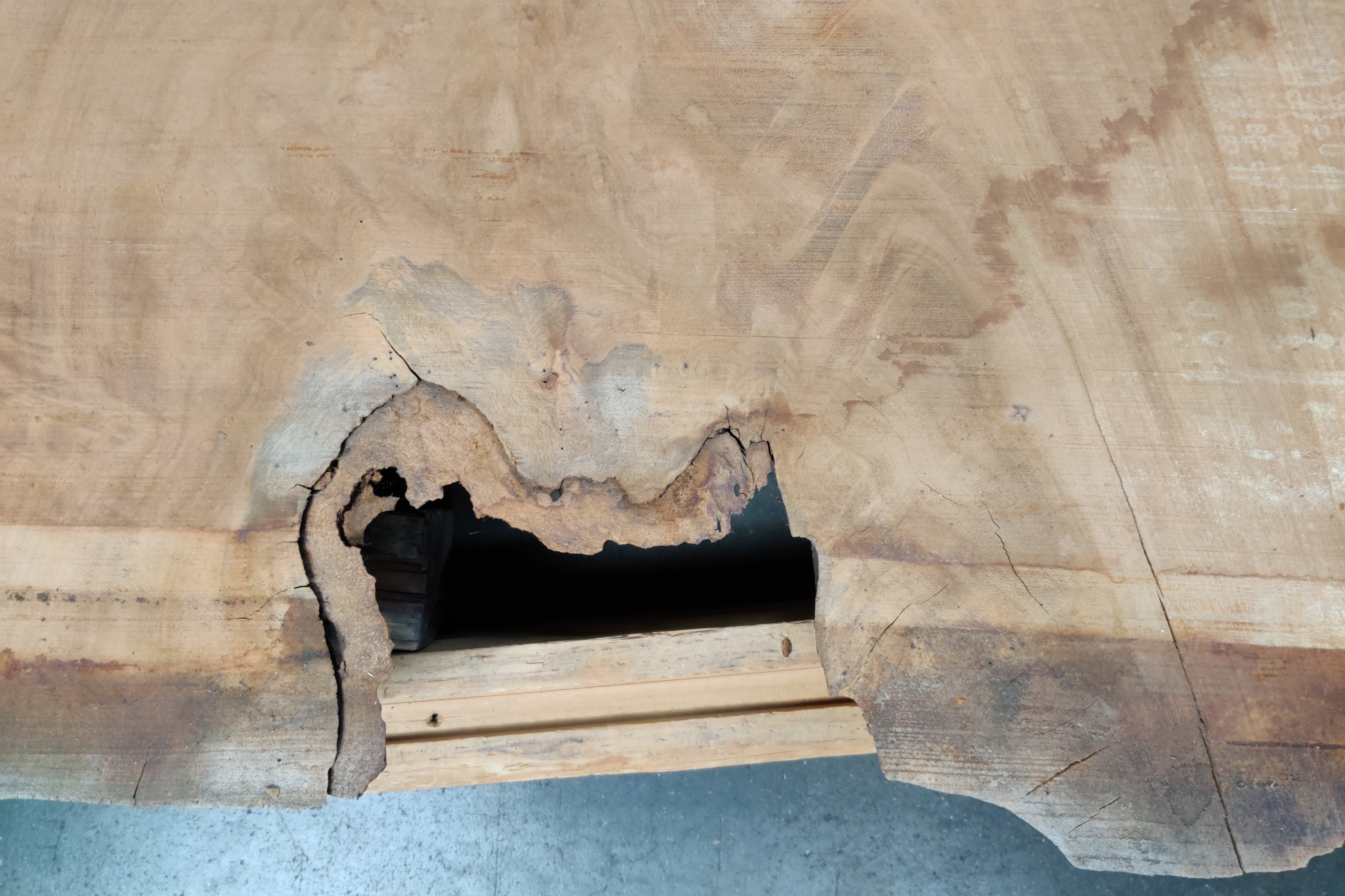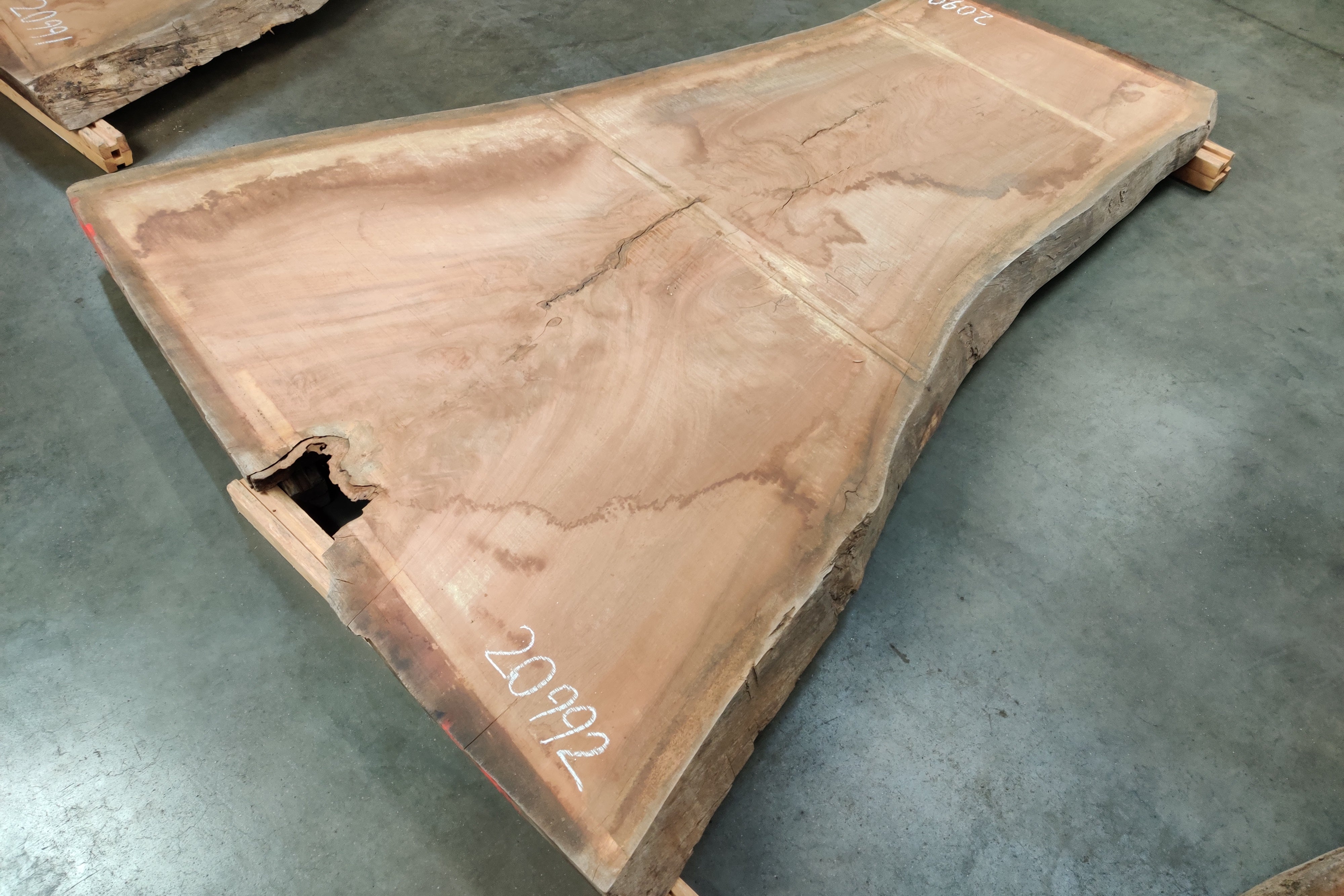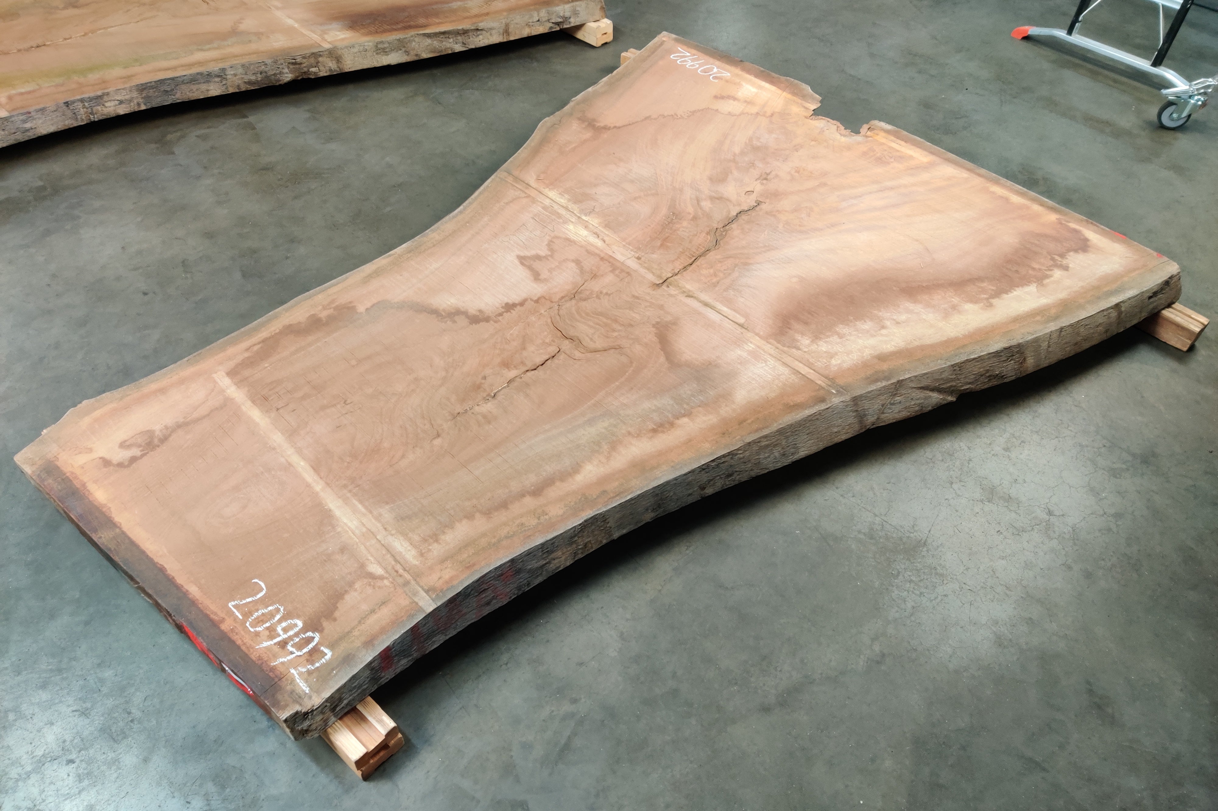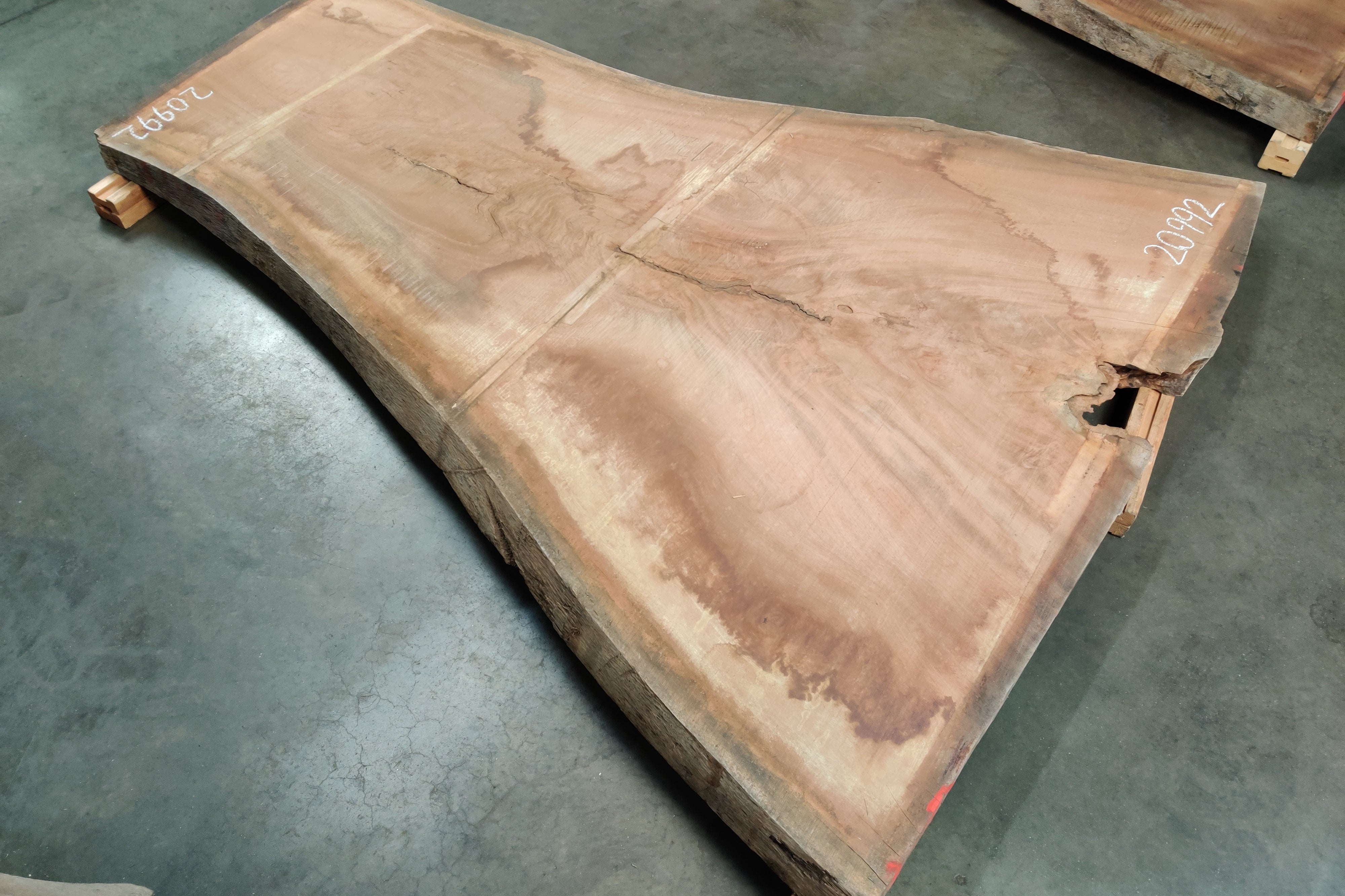 Bookmatched wood slabs are made by joining two slabs together and lining up their surfaces so that the grain of the wood reflects along a middle line. Usually, these pieces are cut from the same piece of wood. What makes the bookmatch effect more valuable is the variance from each half to the other, and the better the bookmatch, the more impressive it looks.
