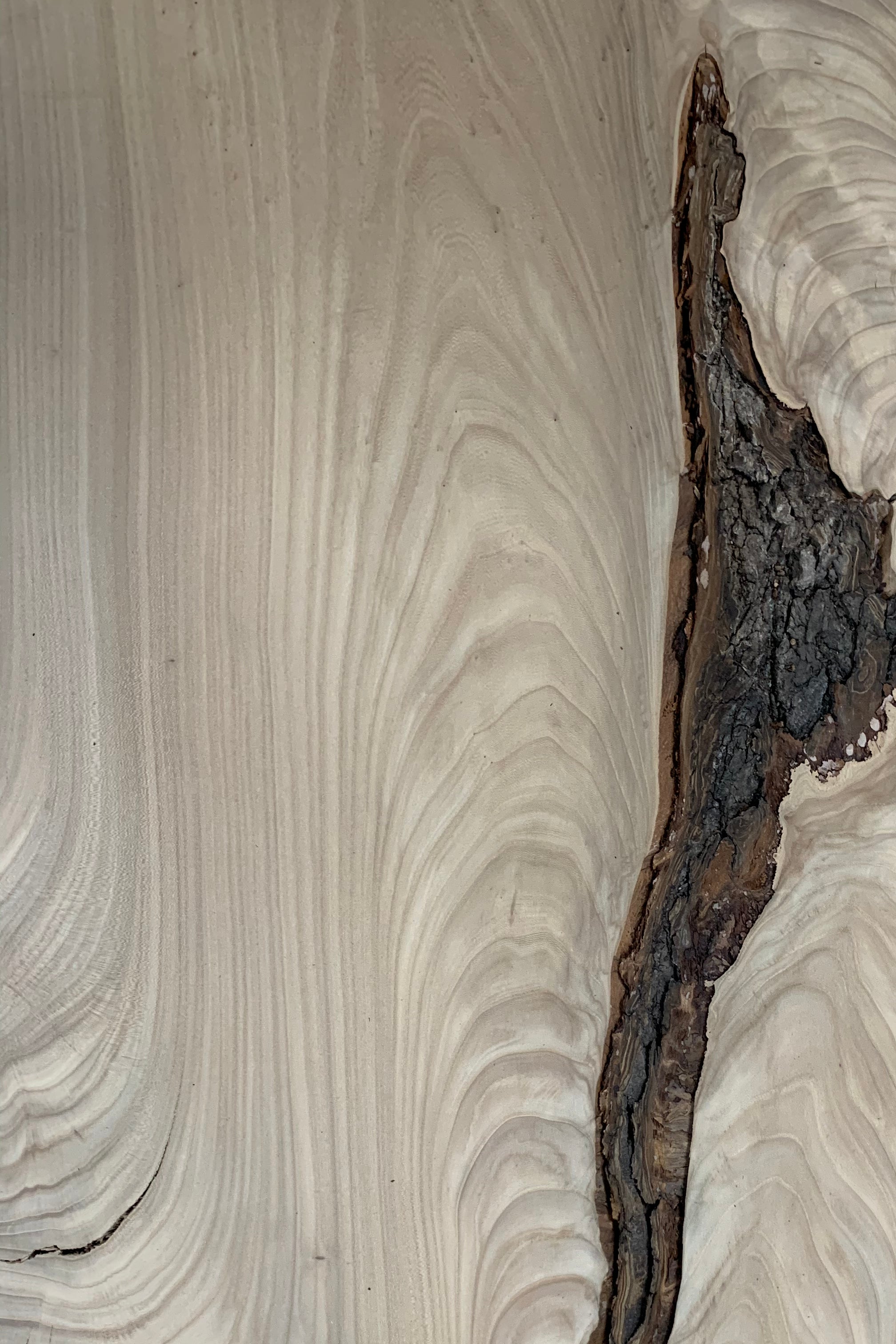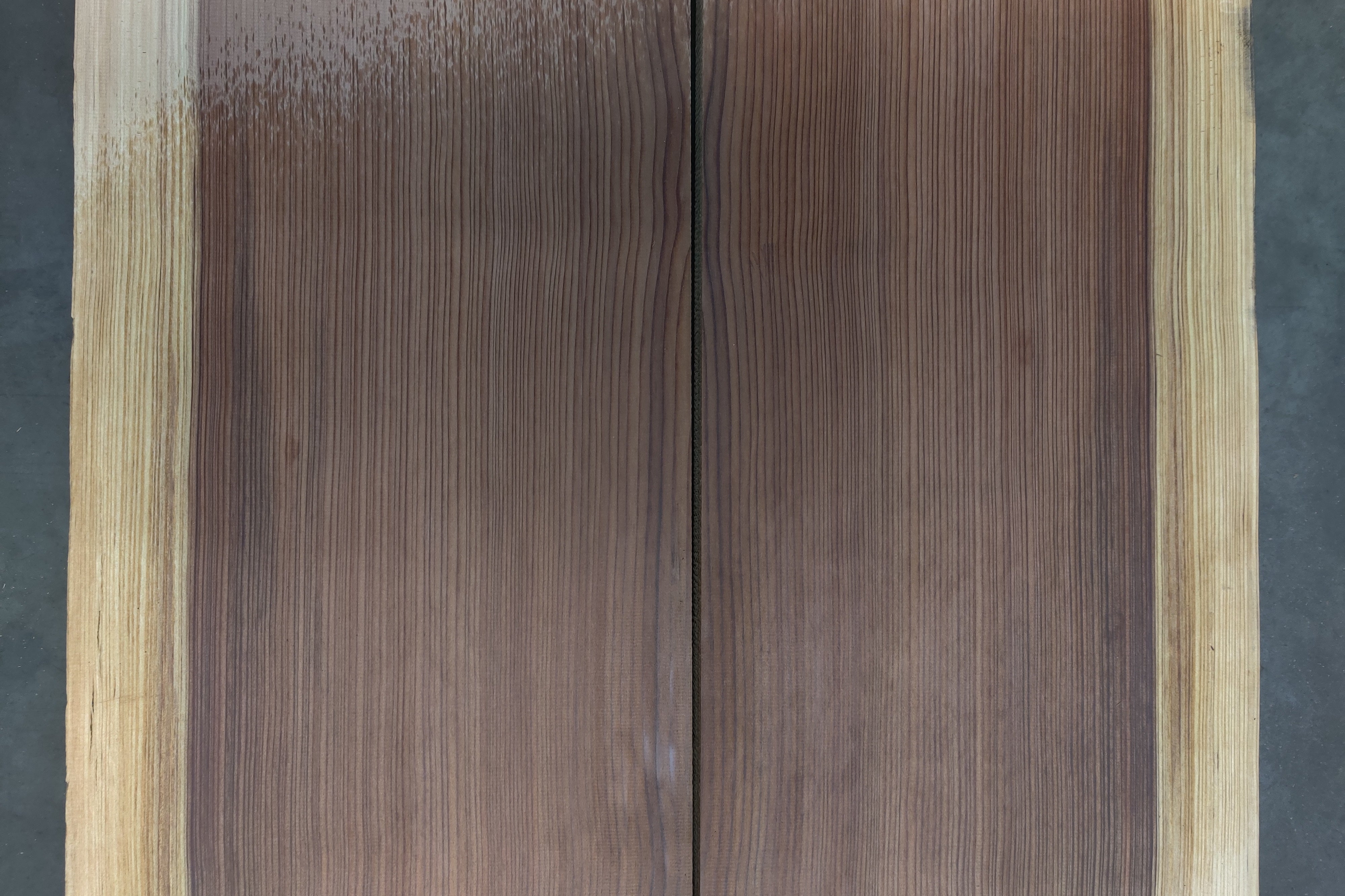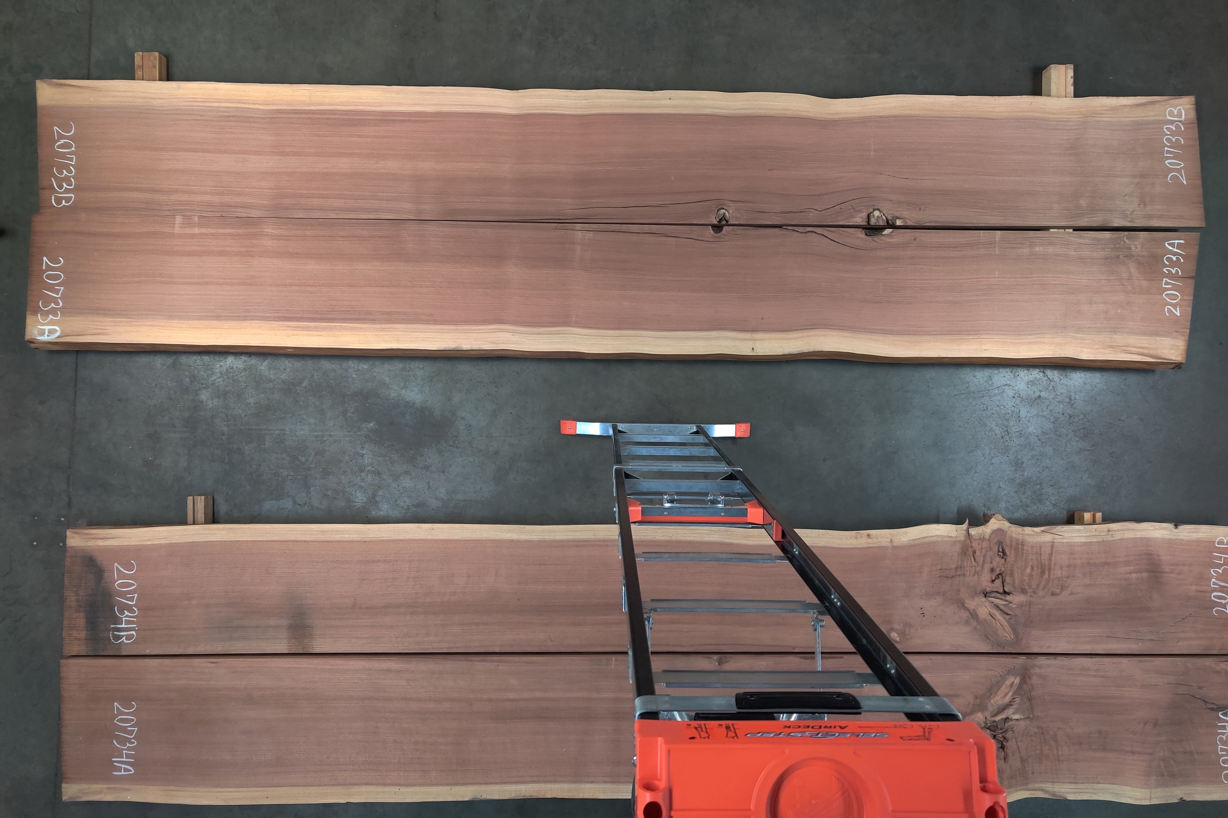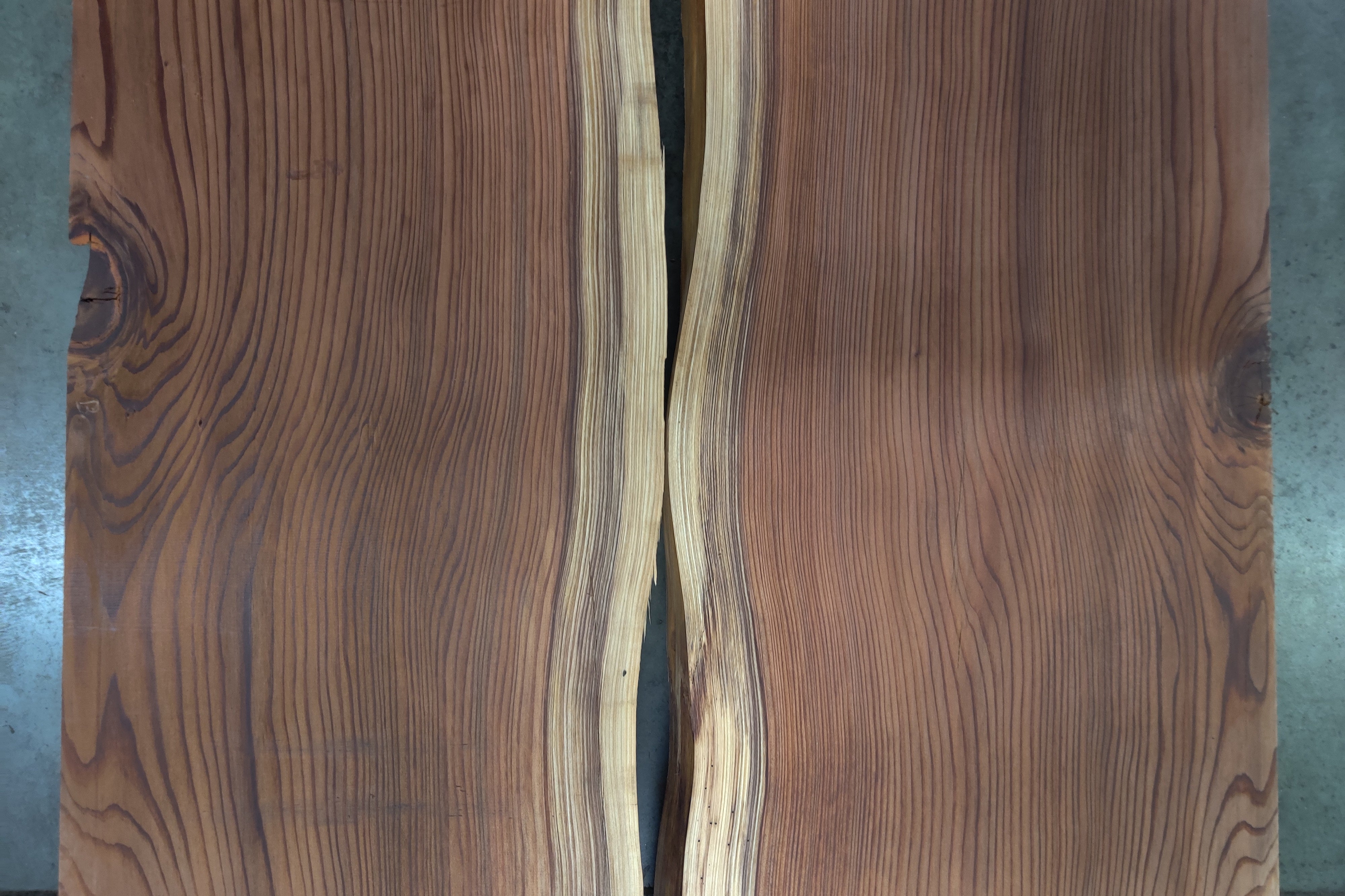 Bookmatched wood slabs are made by joining two slabs together and lining up their surfaces so that the grain of the wood reflects along a middle line. Usually, these pieces are cut from the same piece of wood. What makes the bookmatch effect more valuable is the variance from each half to the other, and the better the bookmatch, the more impressive it looks.