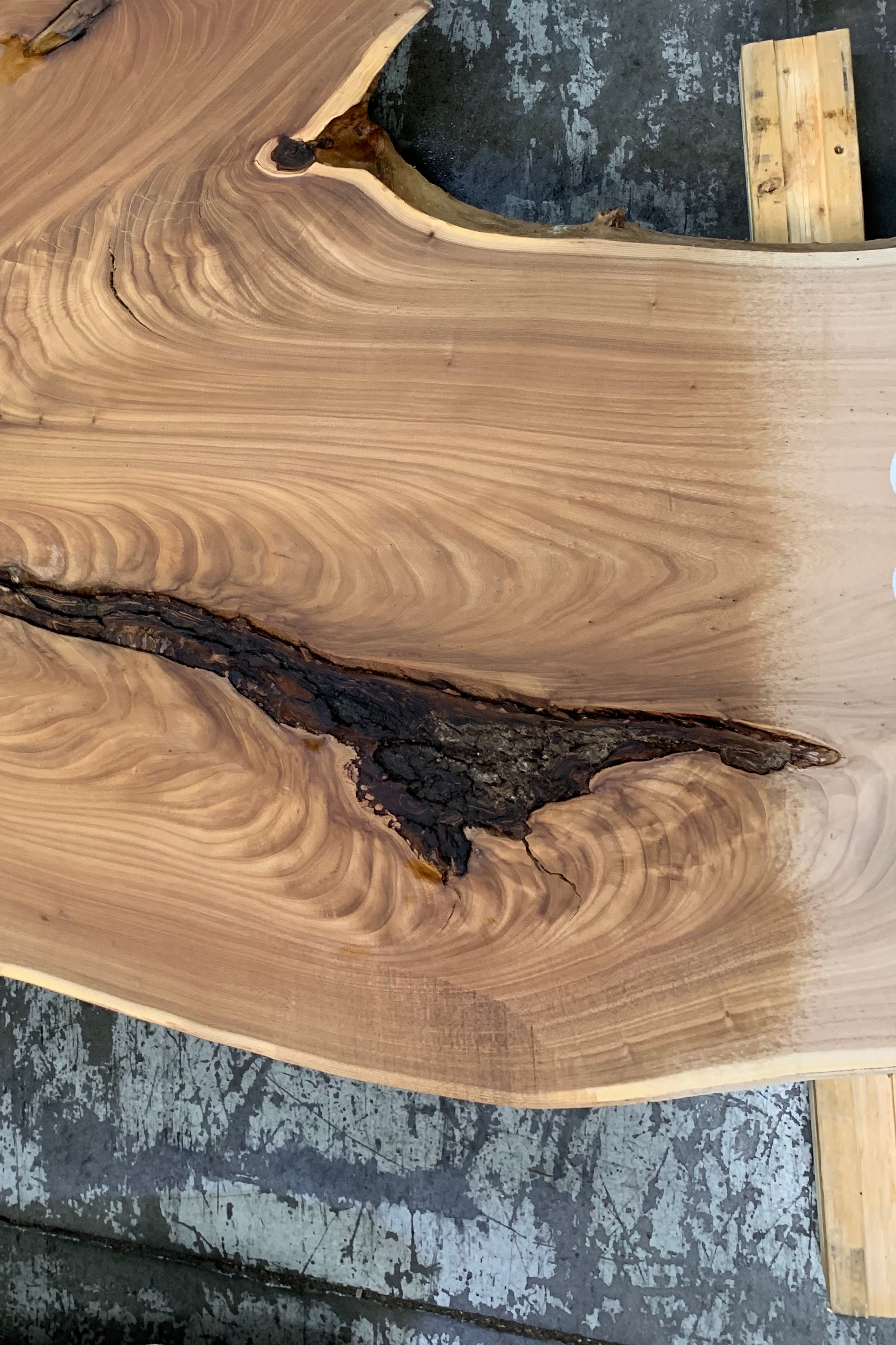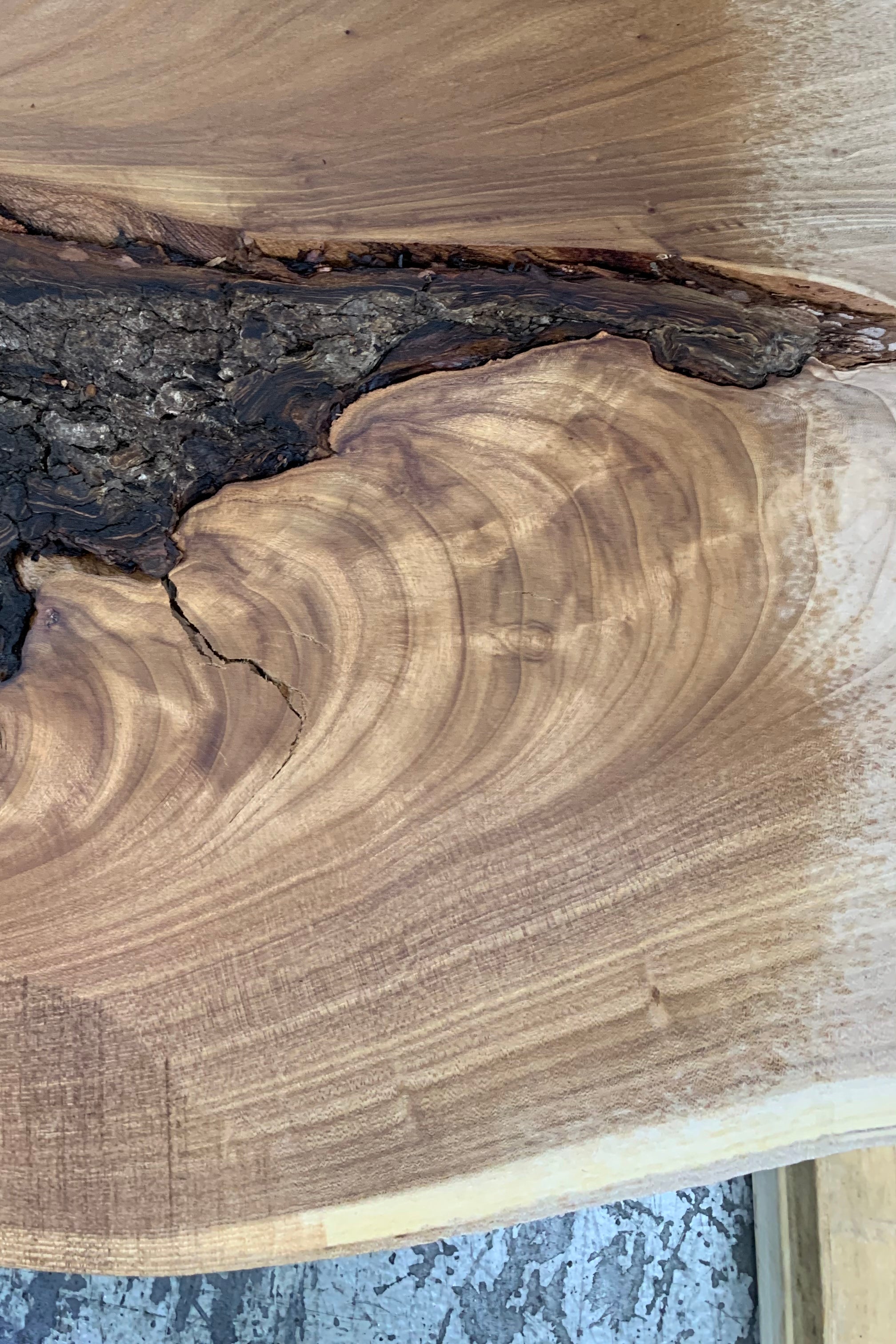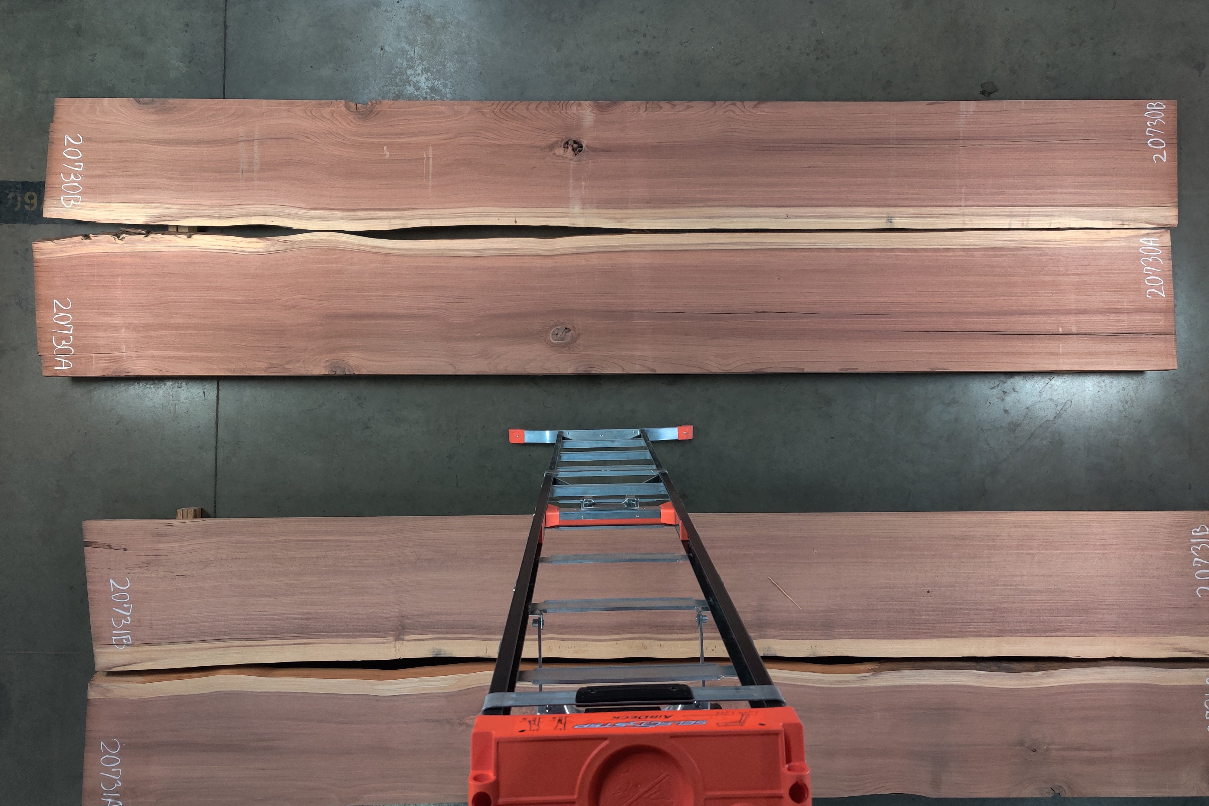 Bookmatched wood slabs are made by joining two slabs together and lining up their surfaces so that the grain of the wood reflects along a middle line. Usually, these pieces are cut from the same piece of wood. What makes the bookmatch effect more valuable is the variance from each half to the other, and the better the bookmatch, the more impressive it looks.