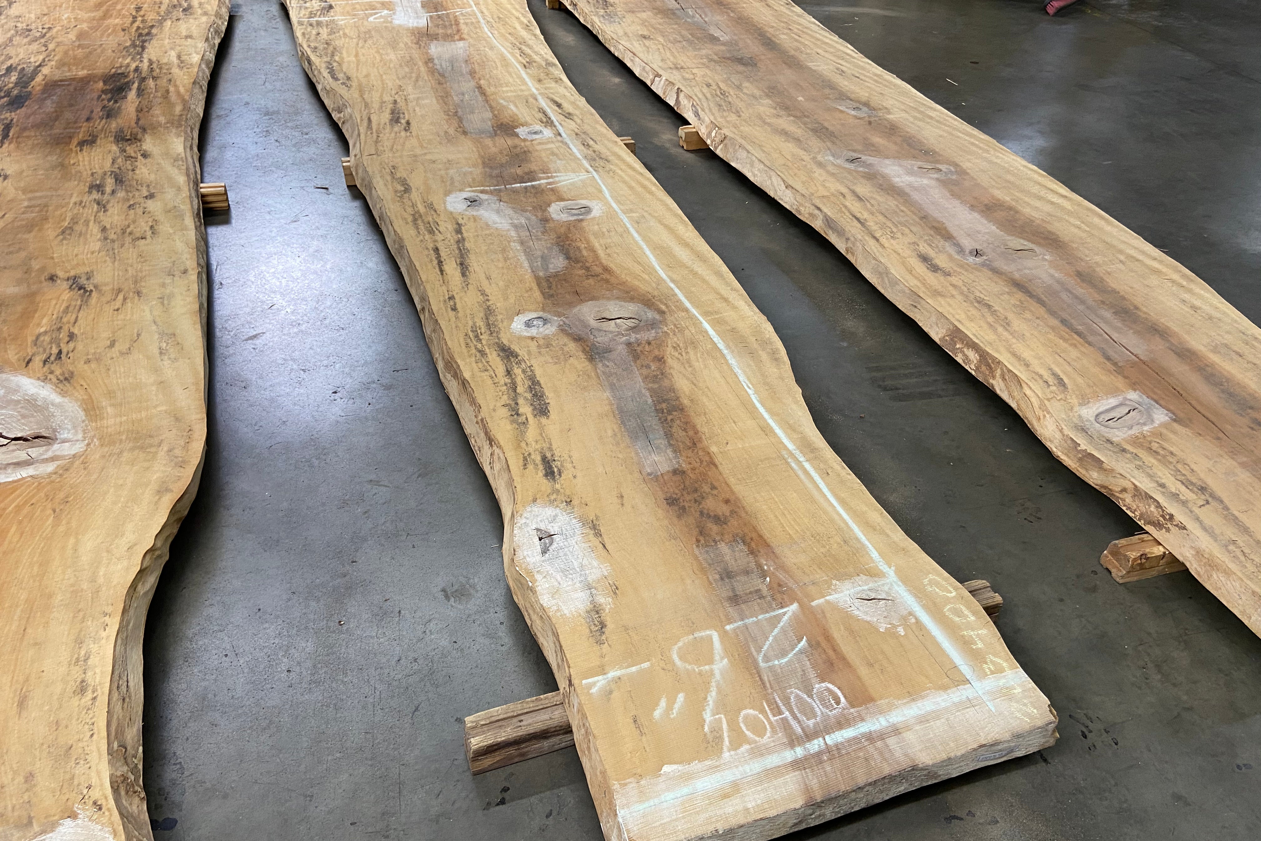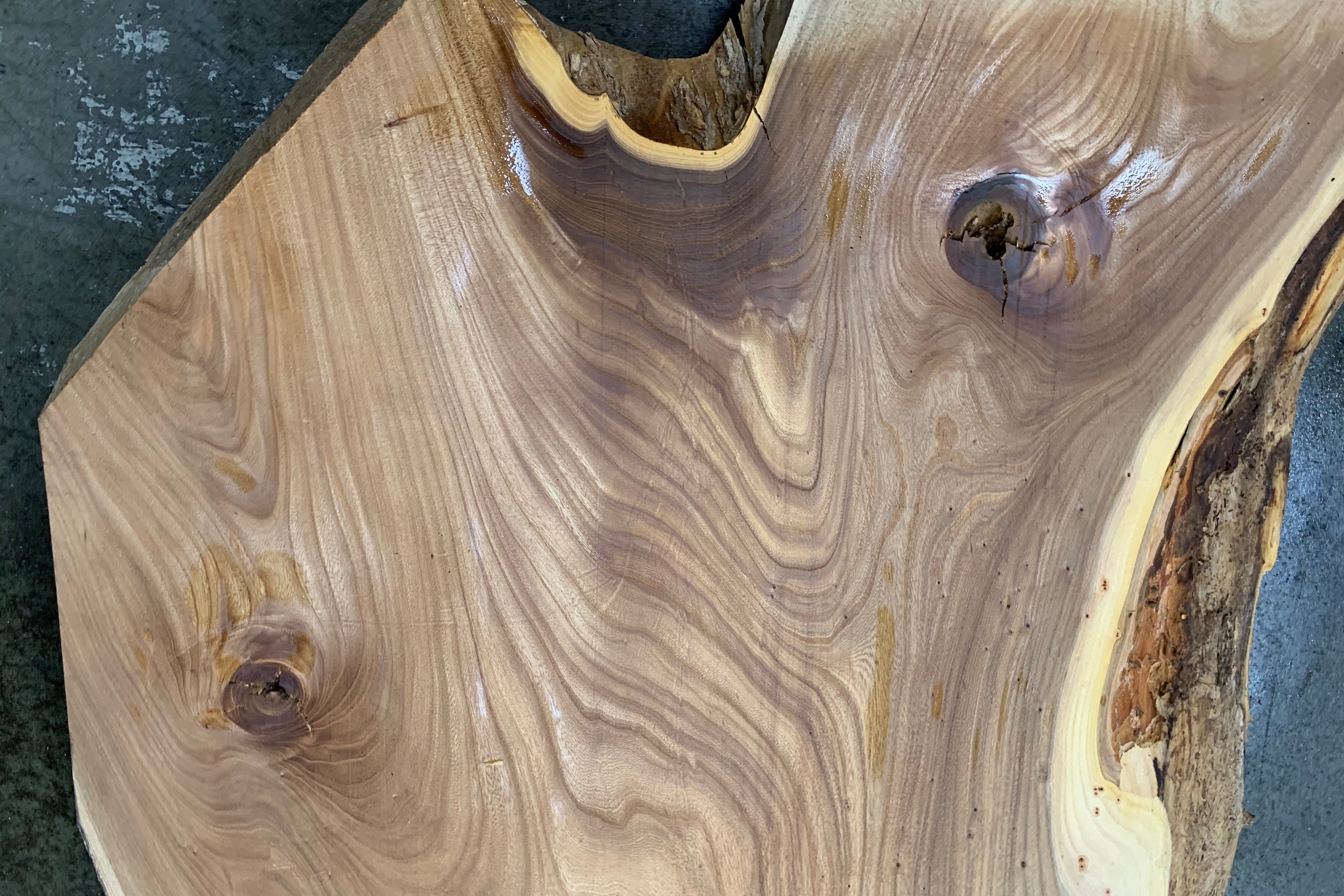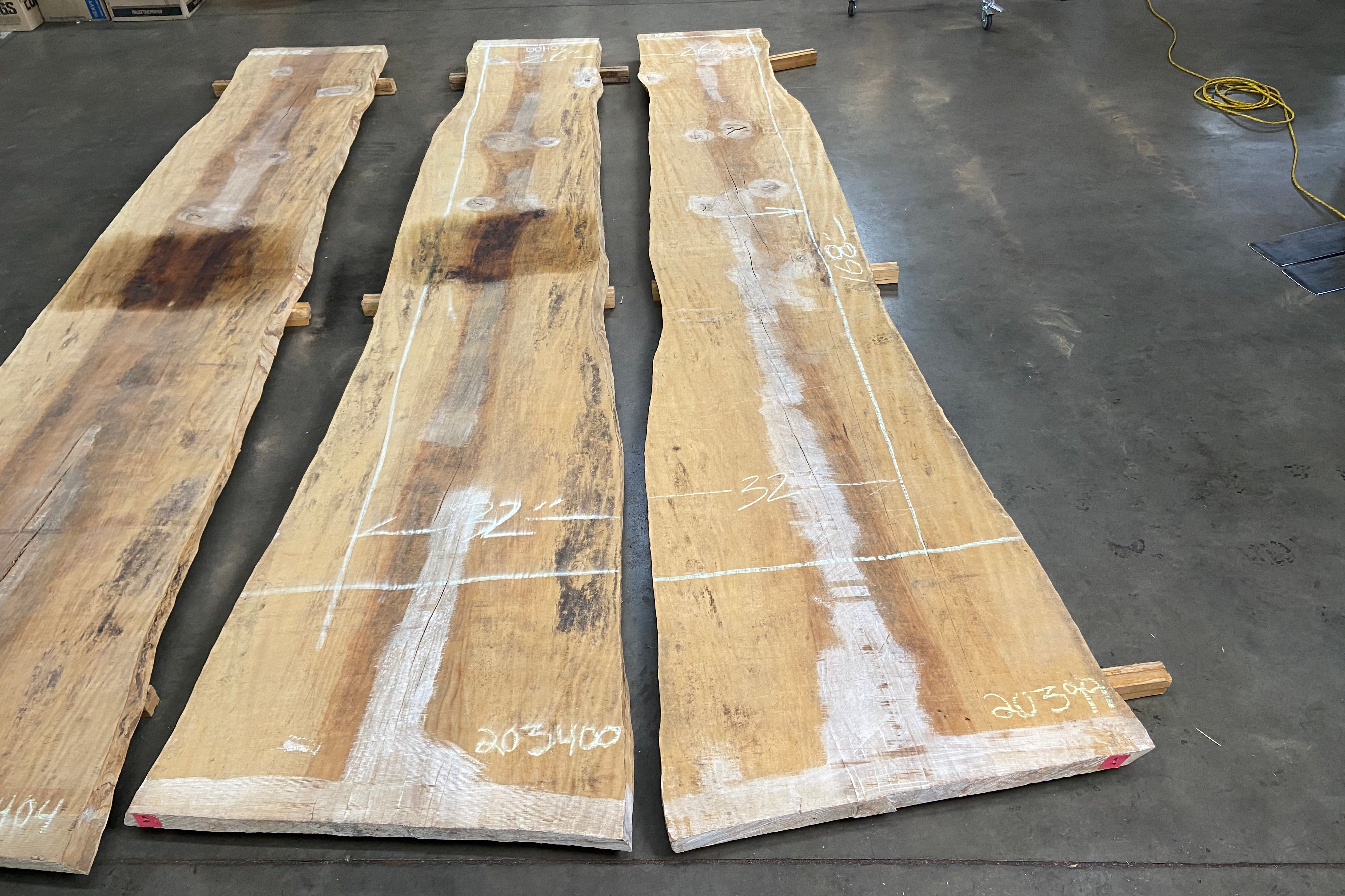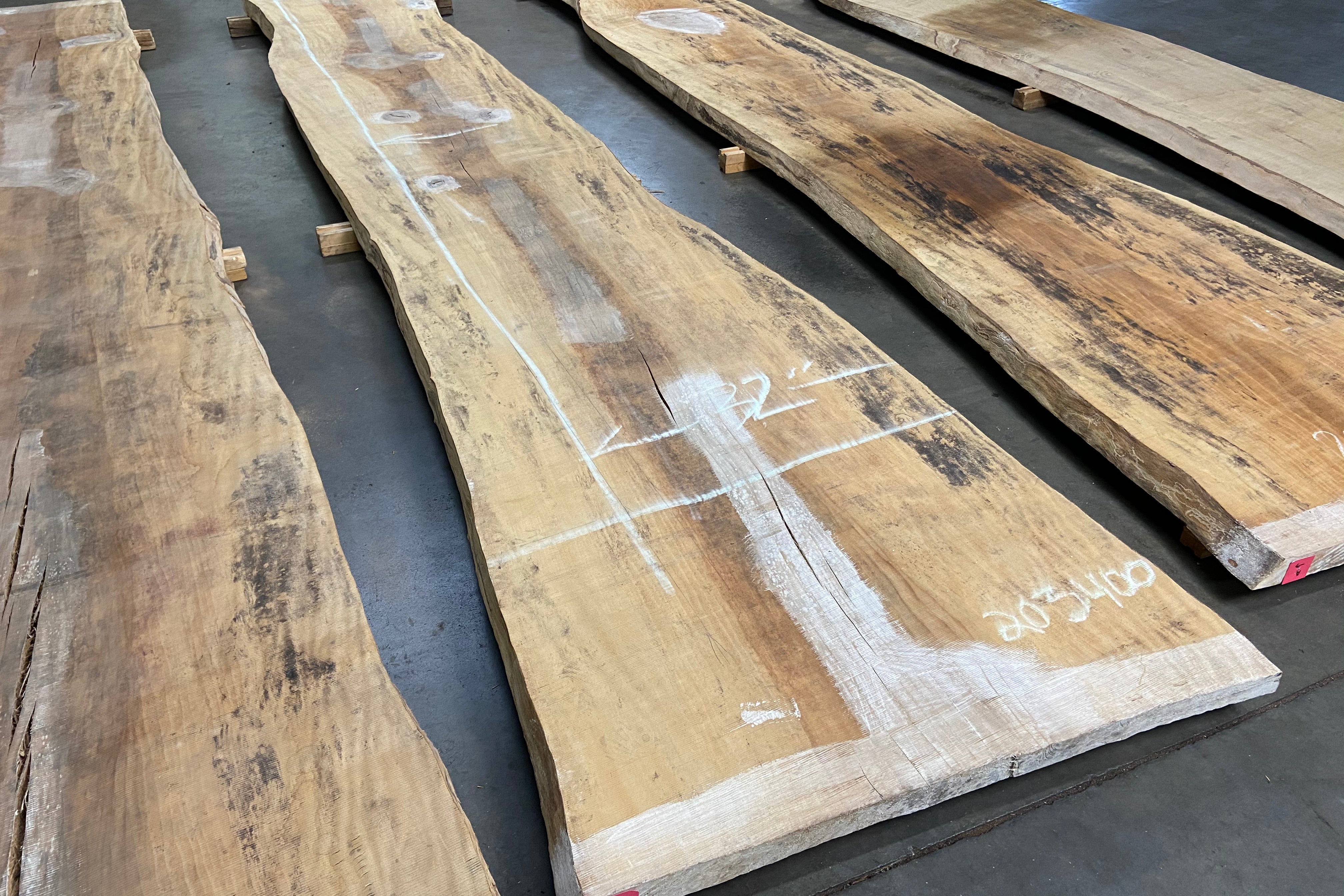 Bookmatched wood slabs are made by joining two slabs together and lining up their surfaces so that the grain of the wood reflects along a middle line. Usually, these pieces are cut from the same piece of wood. What makes the bookmatch effect more valuable is the variance from each half to the other, and the better the bookmatch, the more impressive it looks.
