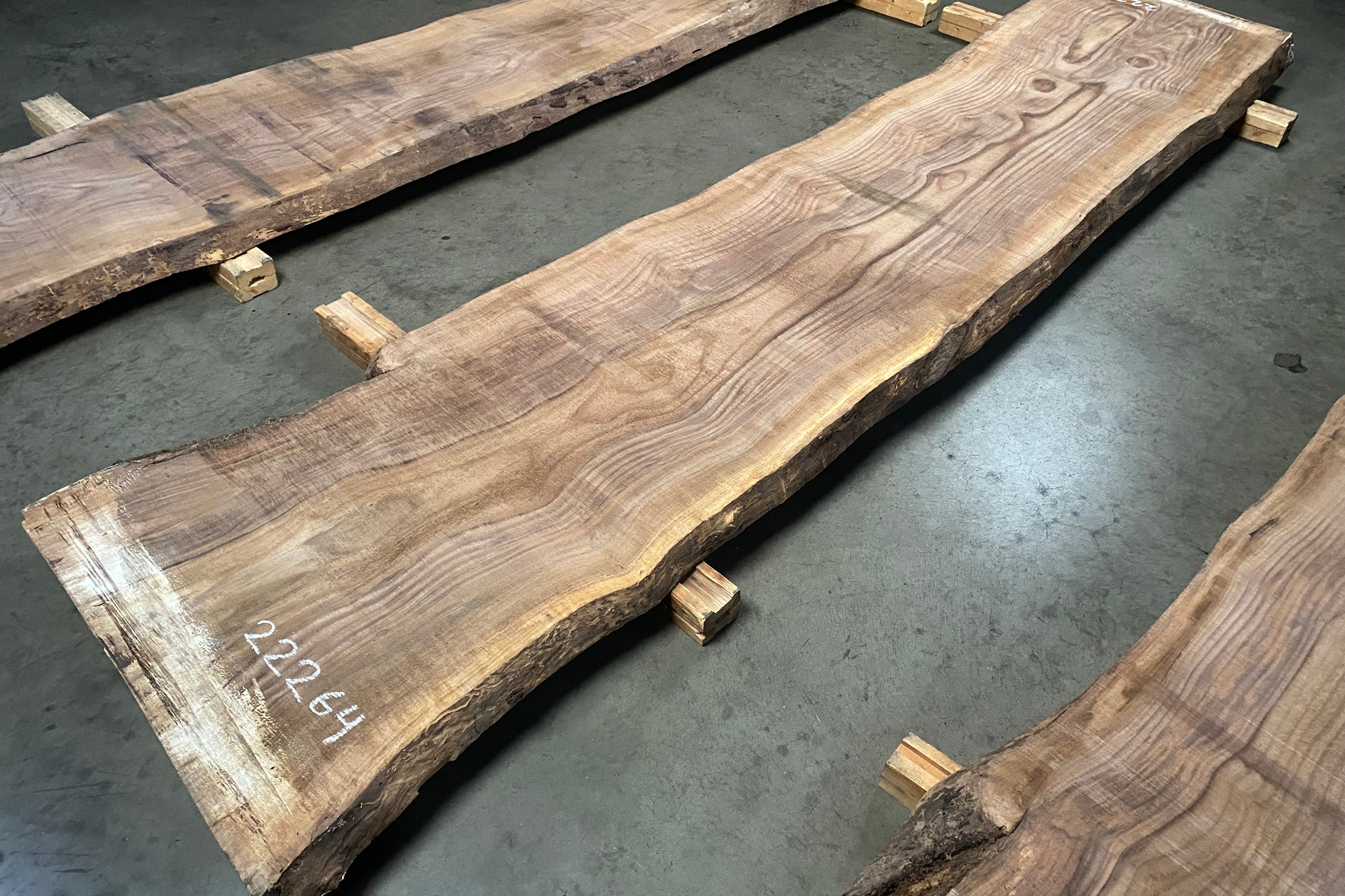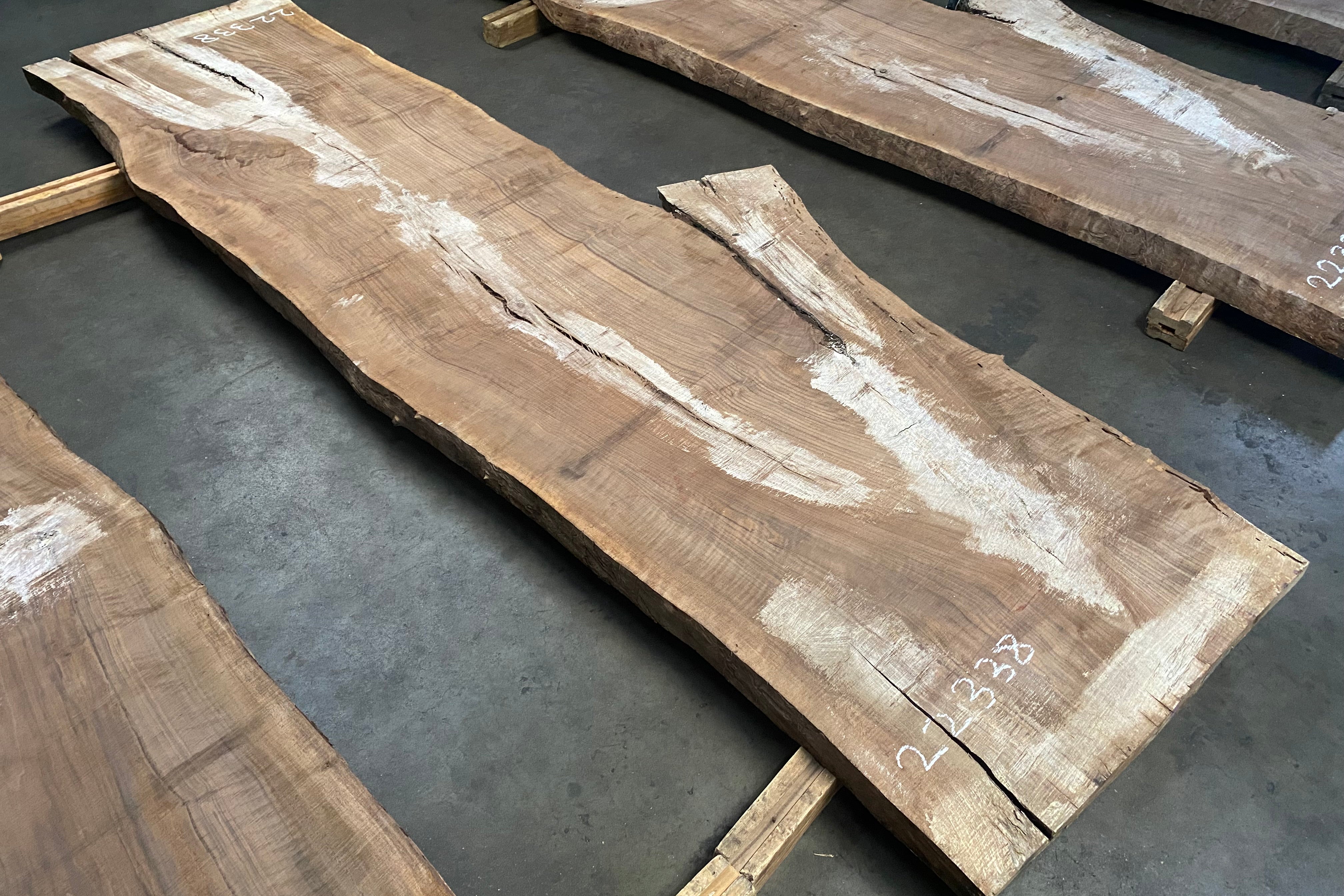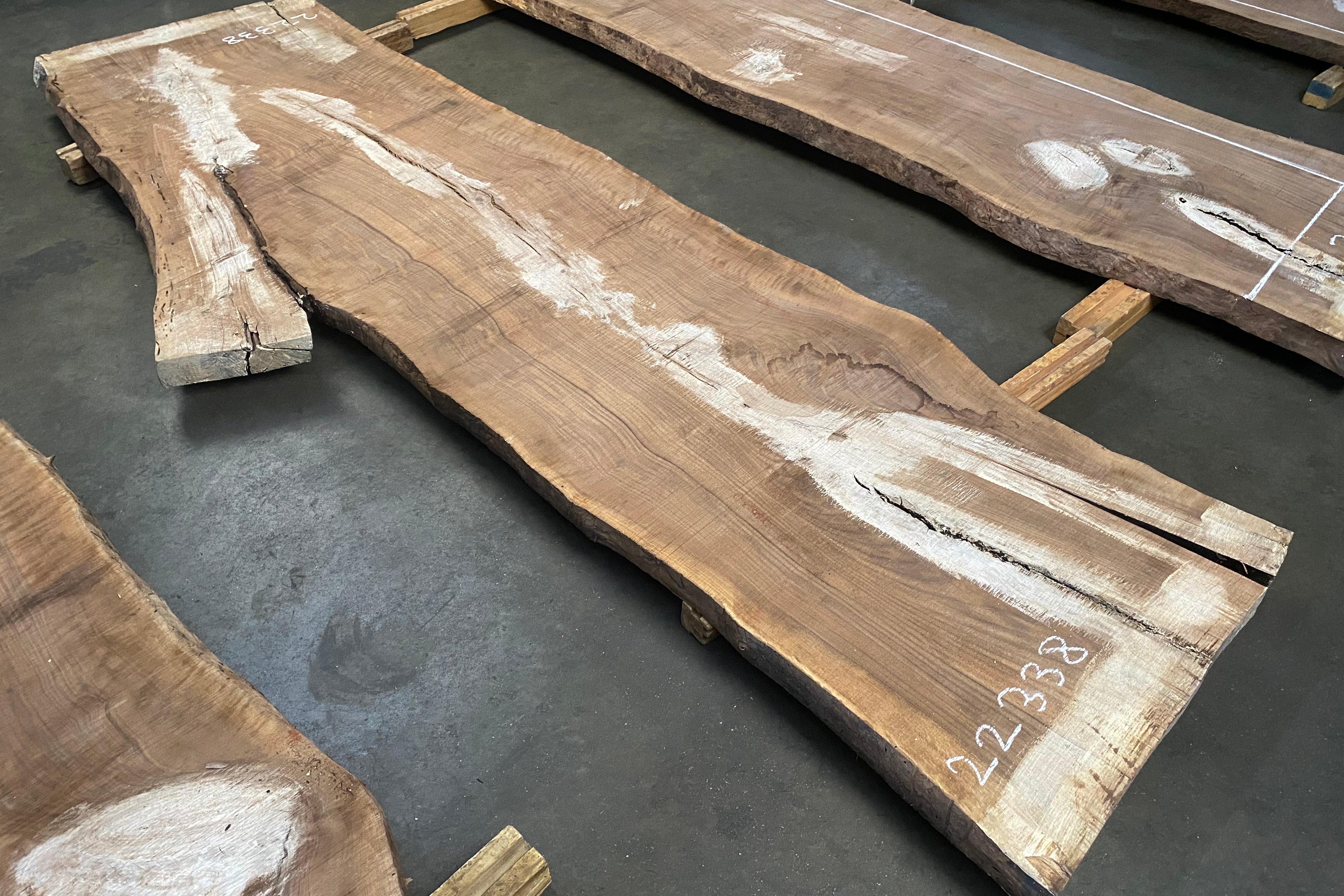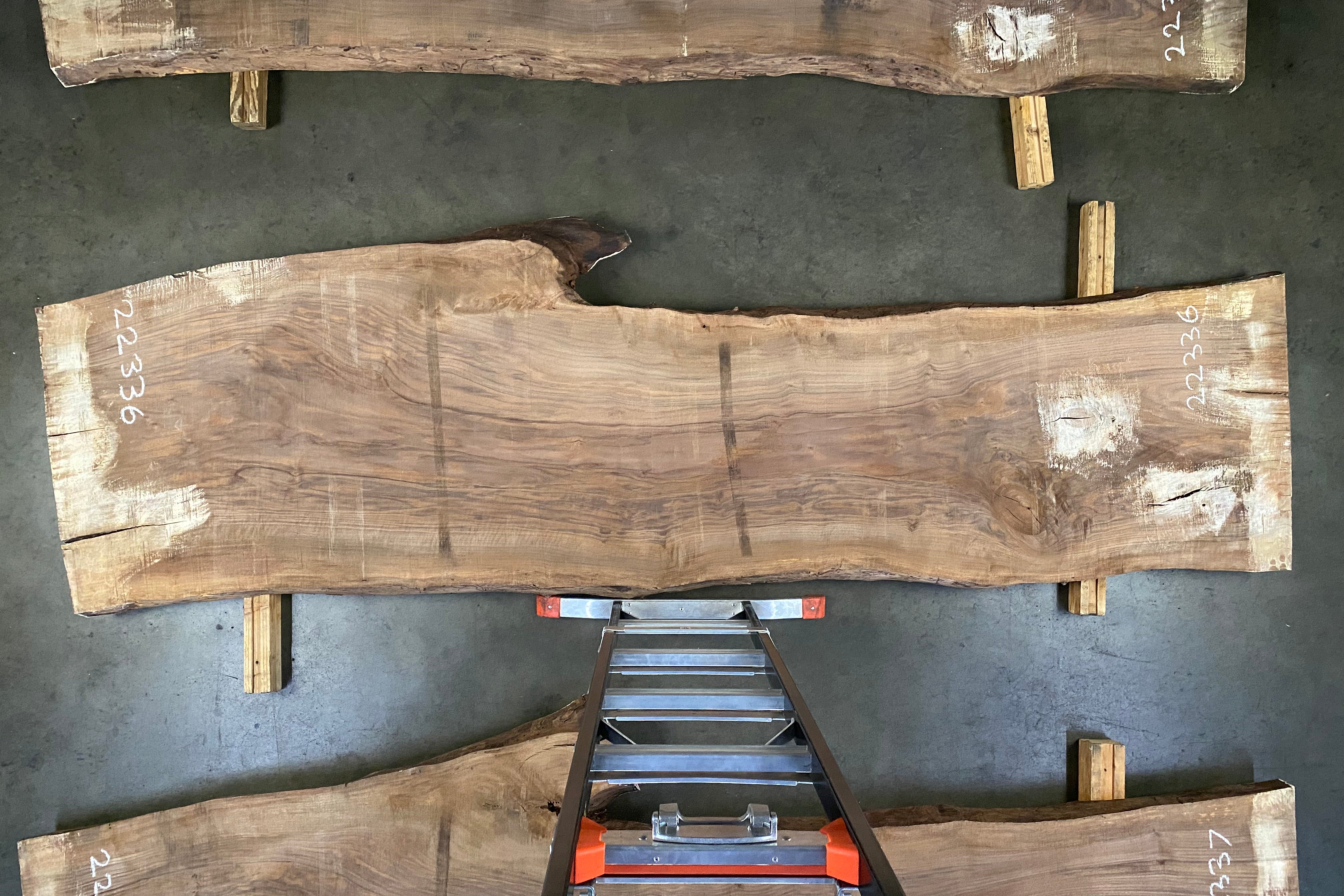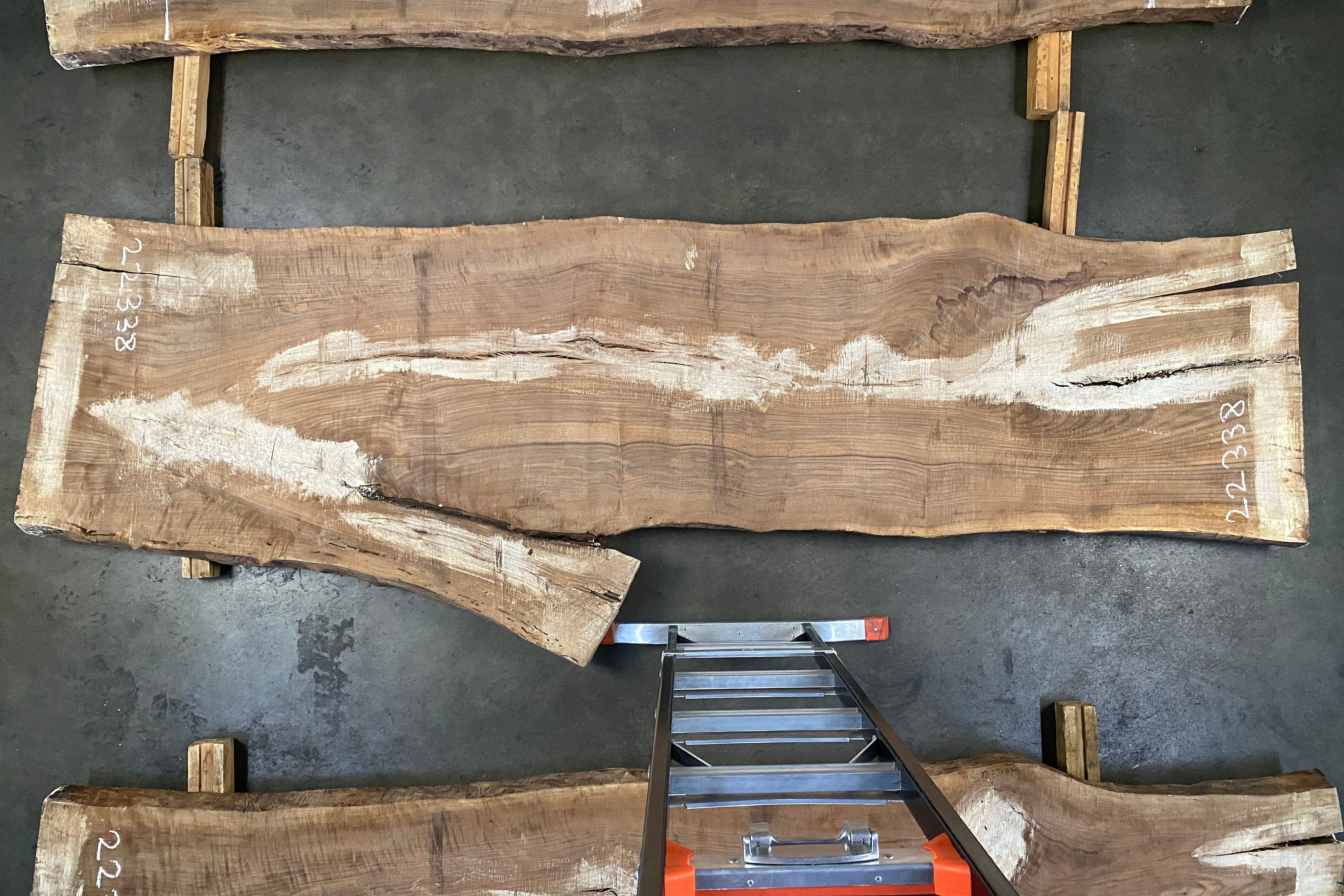 Bookmatched wood slabs are made by joining two slabs together and lining up their surfaces so that the grain of the wood reflects along a middle line. Usually, these pieces are cut from the same piece of wood. What makes the bookmatch effect more valuable is the variance from each half to the other, and the better the bookmatch, the more impressive it looks.