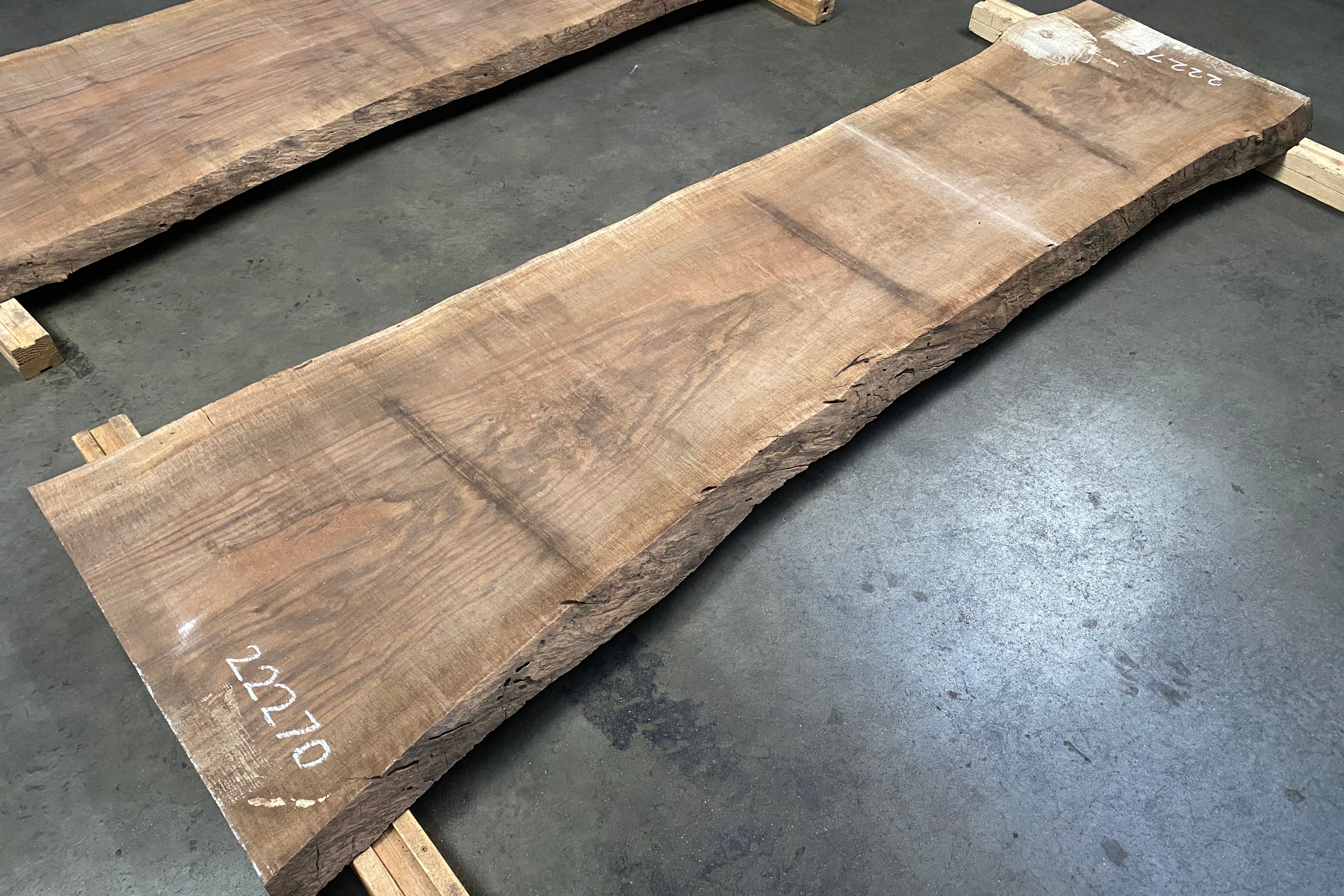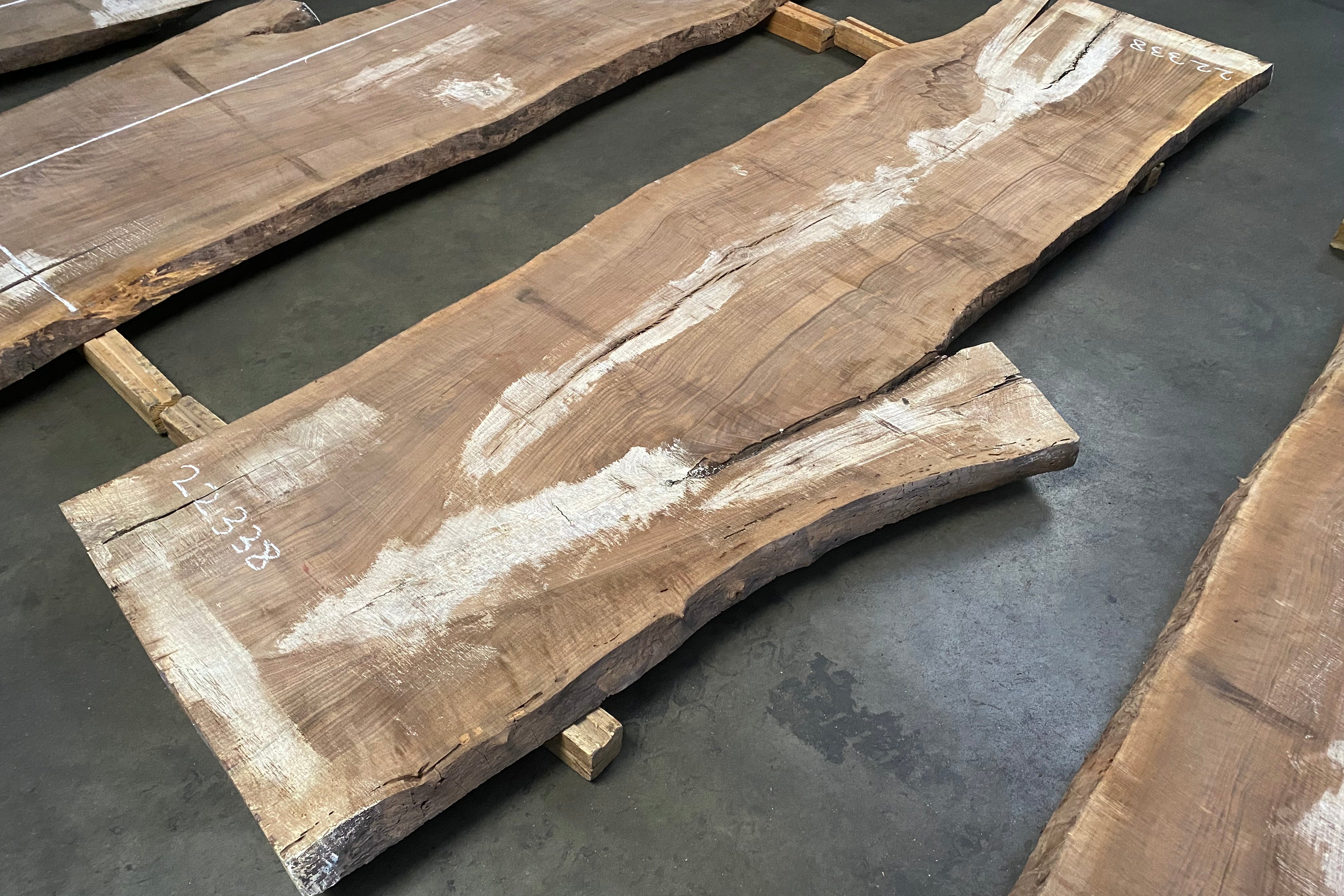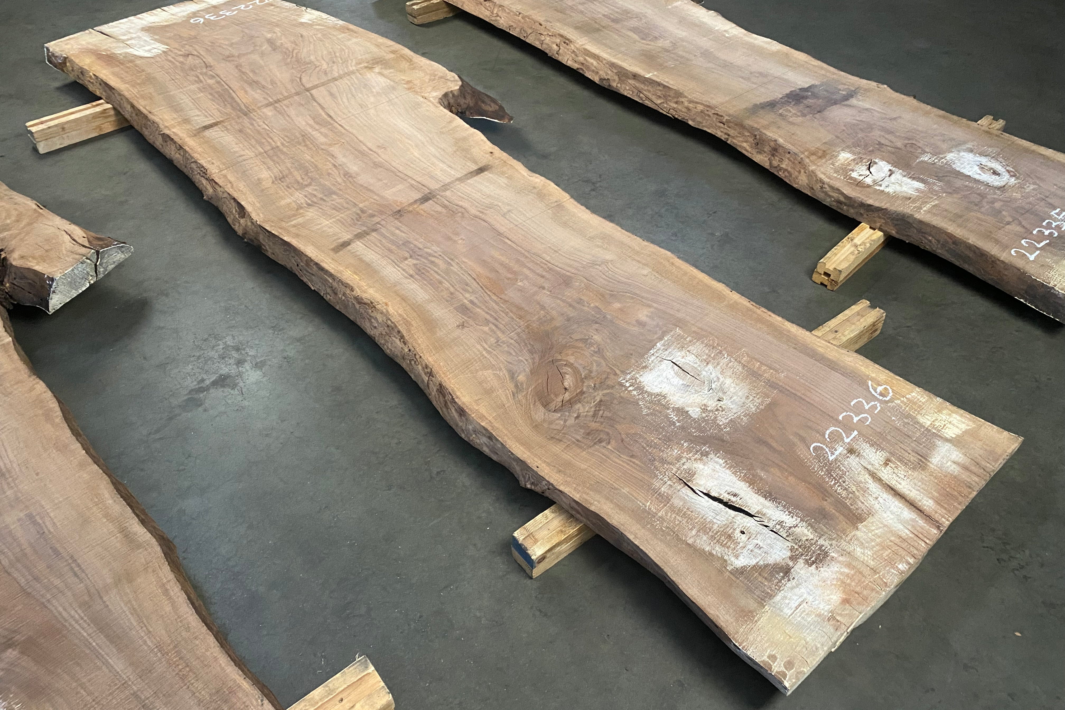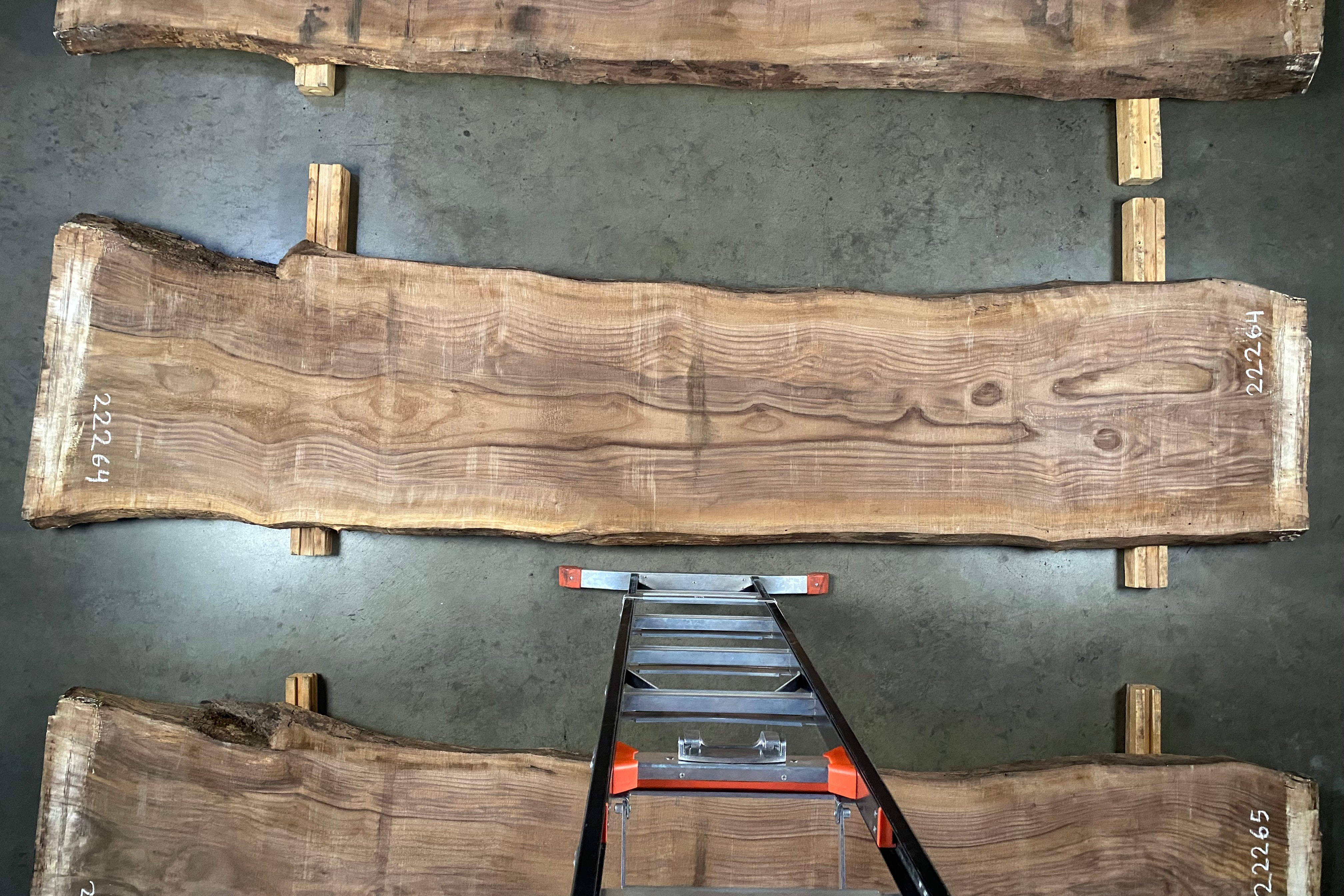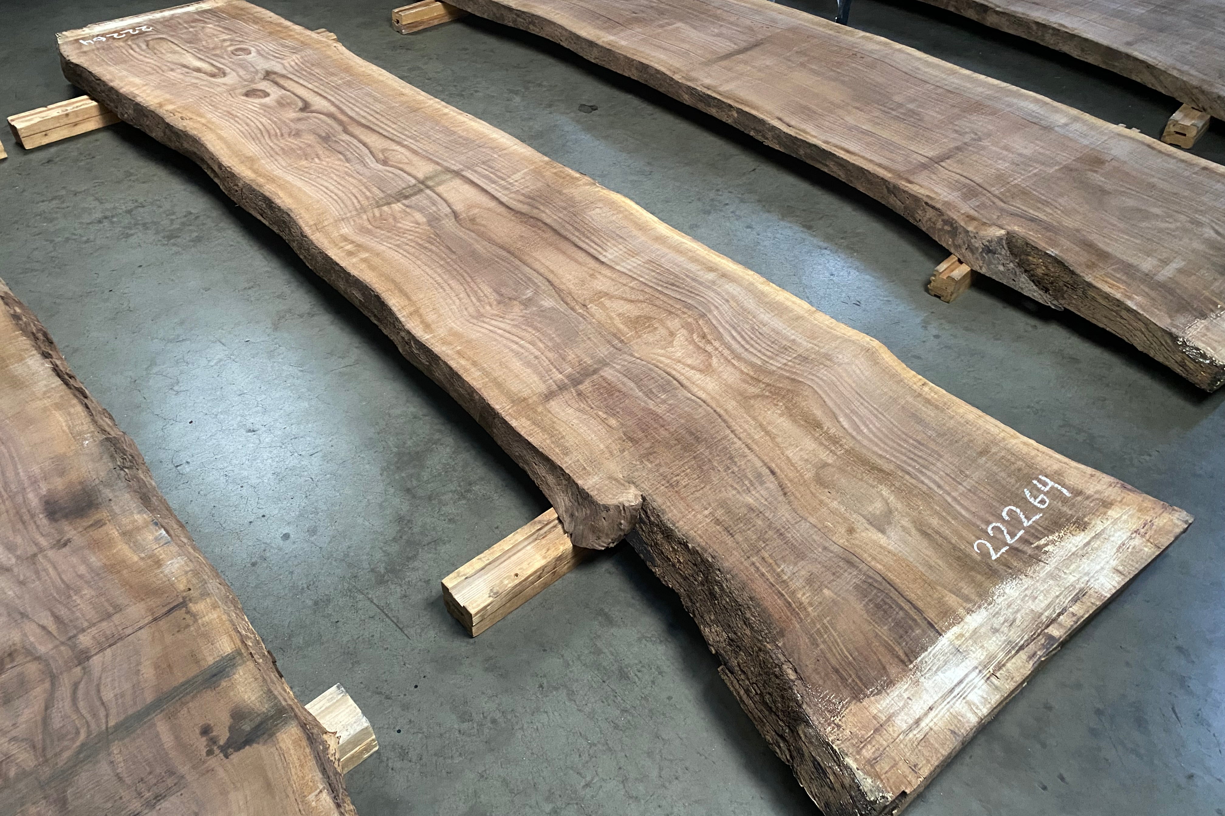 Bookmatched wood slabs are made by joining two slabs together and lining up their surfaces so that the grain of the wood reflects along a middle line. Usually, these pieces are cut from the same piece of wood. What makes the bookmatch effect more valuable is the variance from each half to the other, and the better the bookmatch, the more impressive it looks.
