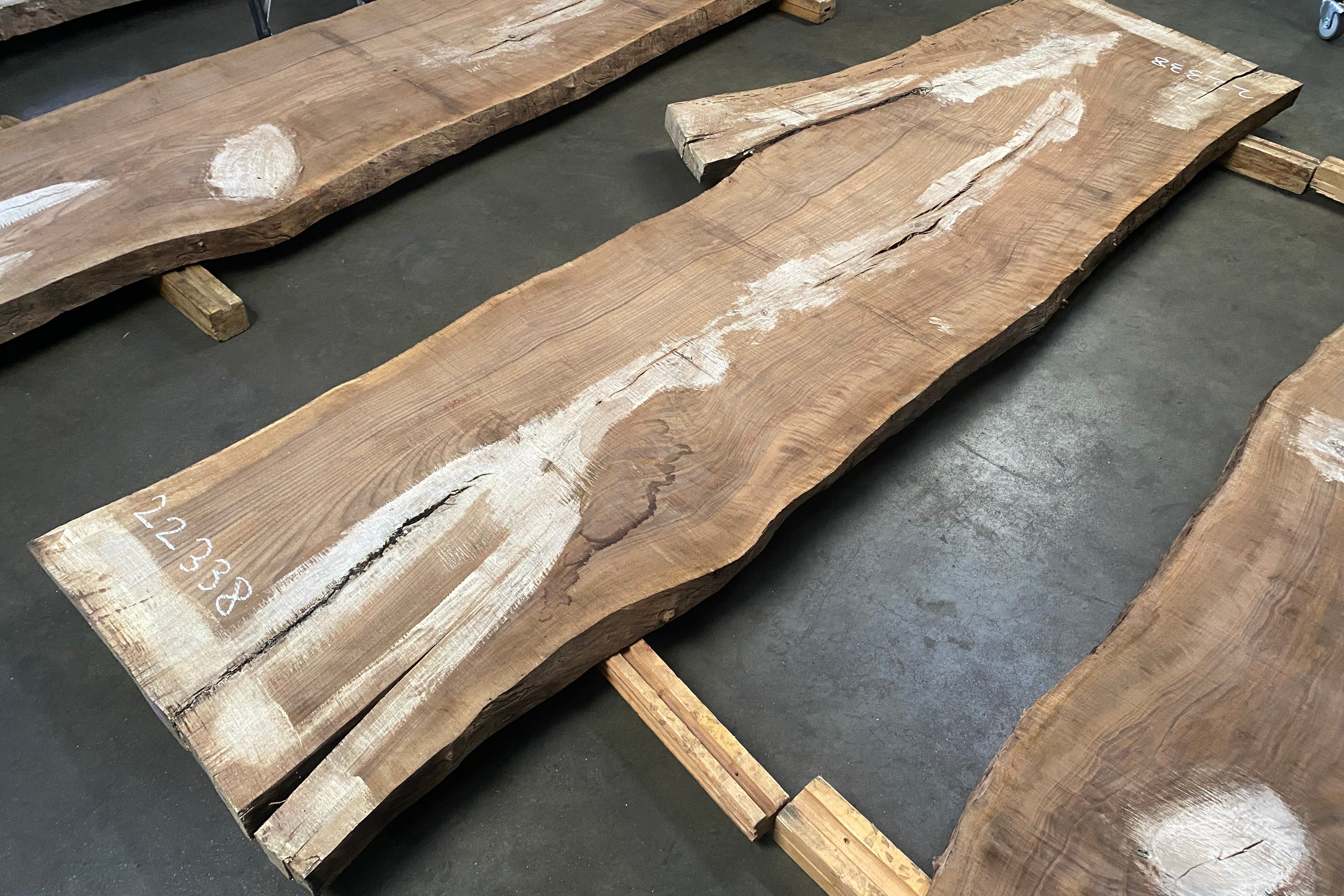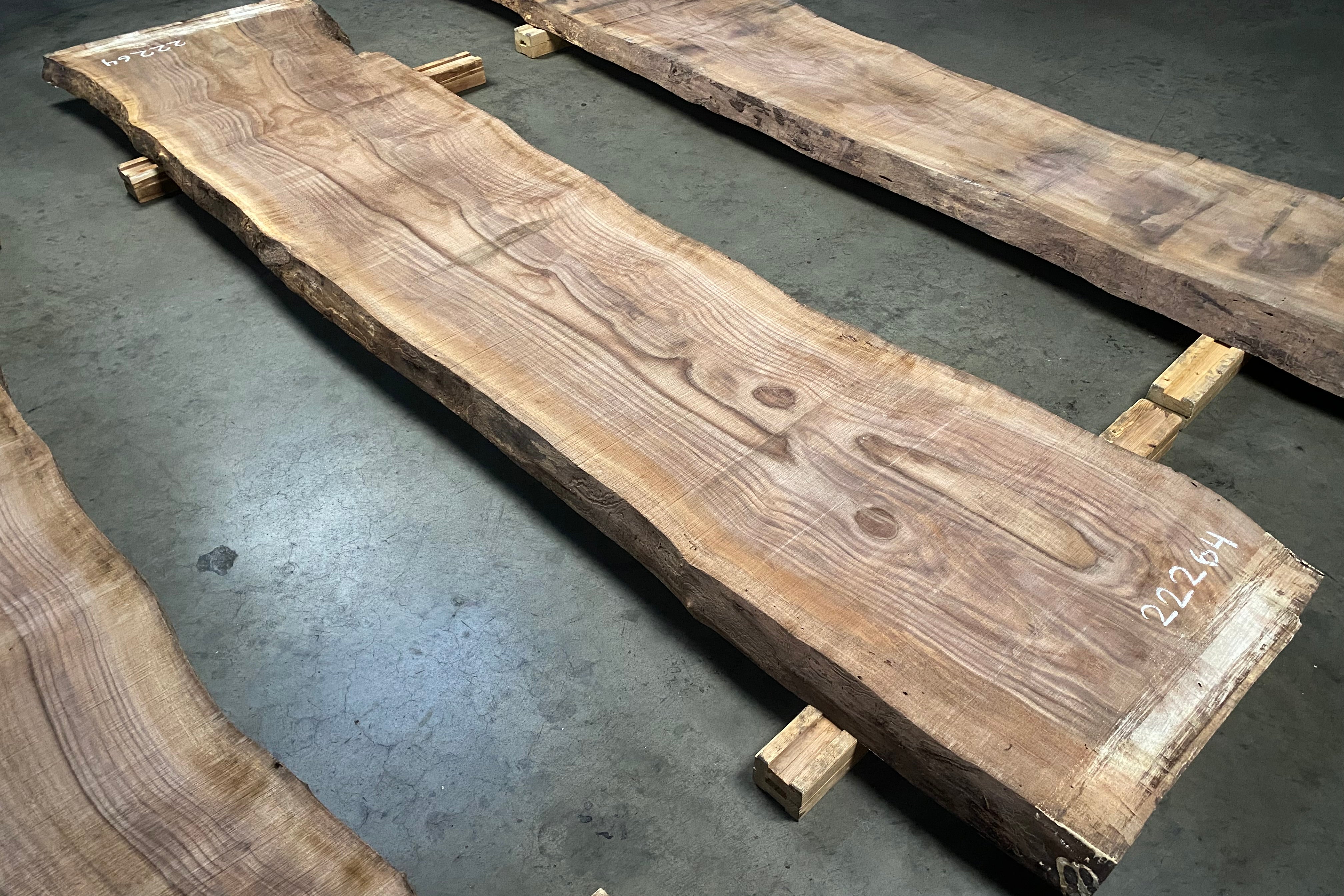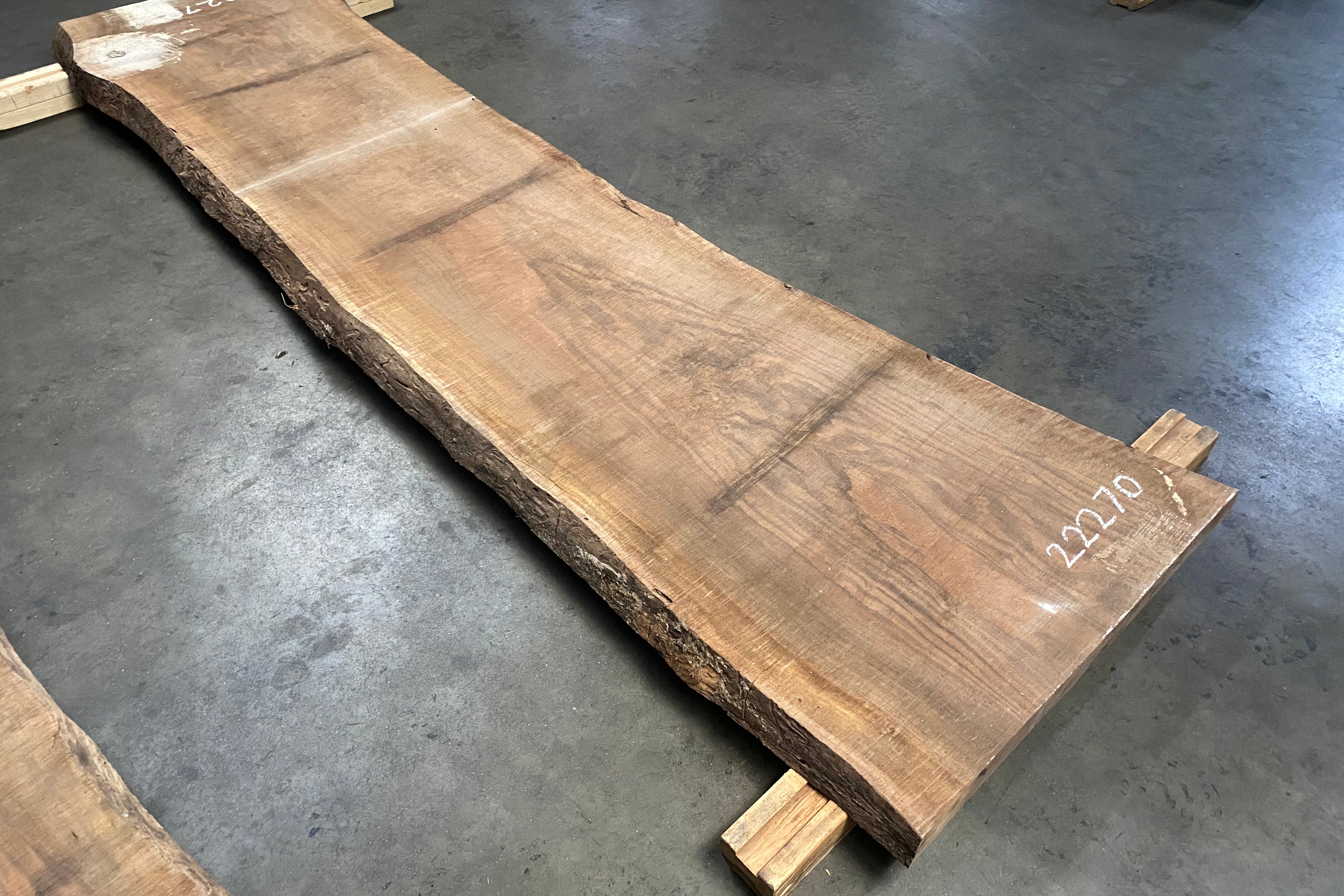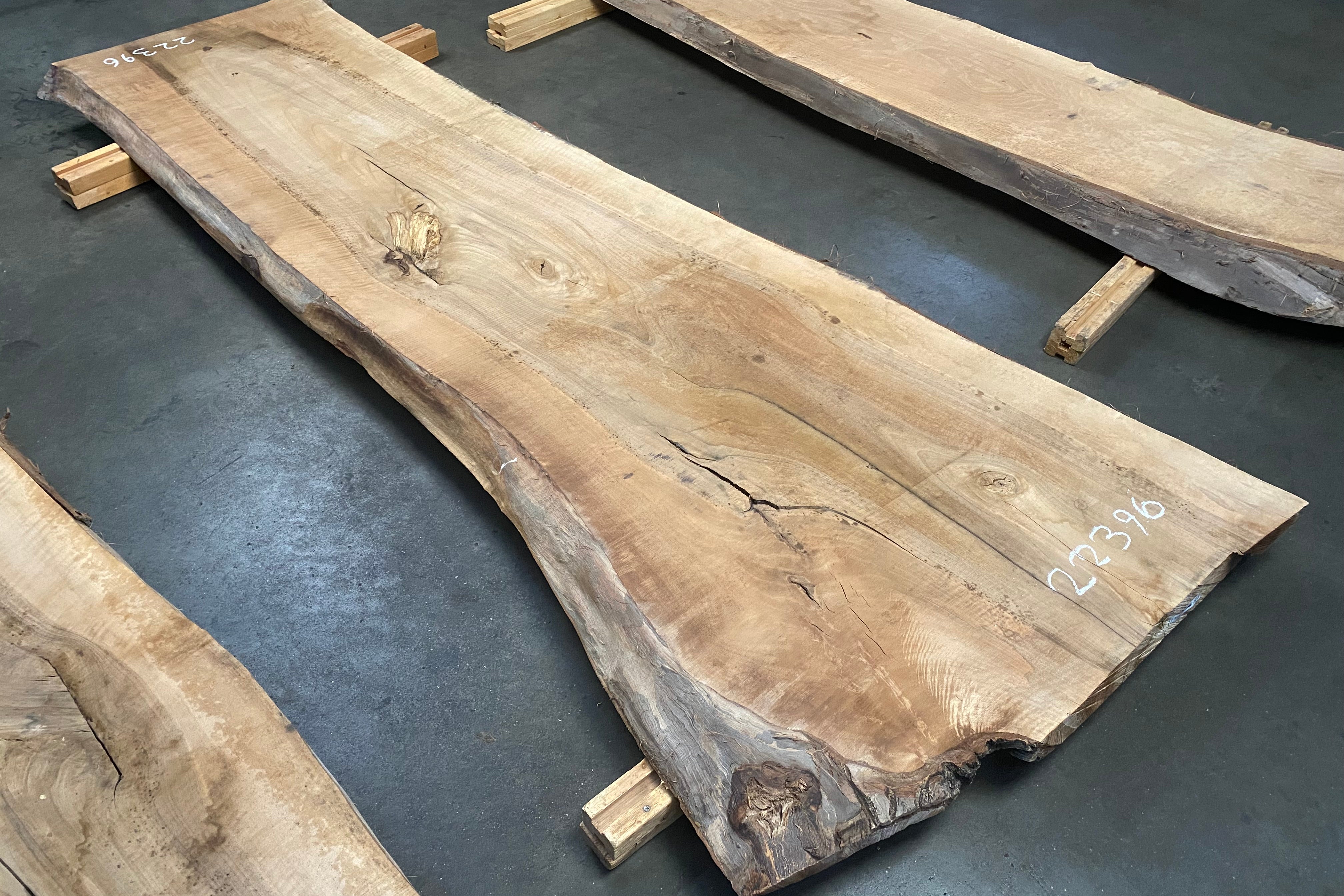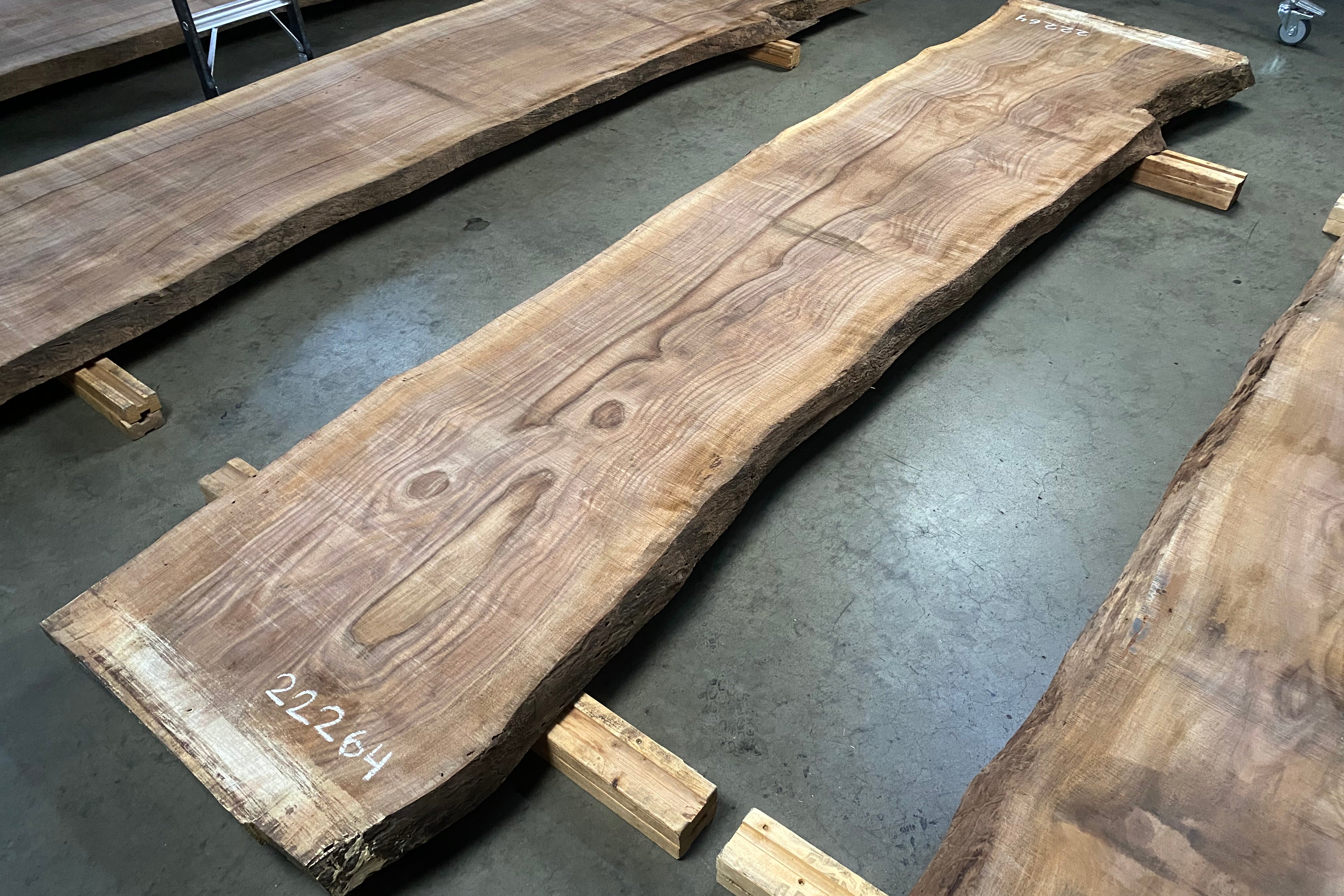 Bookmatched wood slabs are made by joining two slabs together and lining up their surfaces so that the grain of the wood reflects along a middle line. Usually, these pieces are cut from the same piece of wood. What makes the bookmatch effect more valuable is the variance from each half to the other, and the better the bookmatch, the more impressive it looks.
