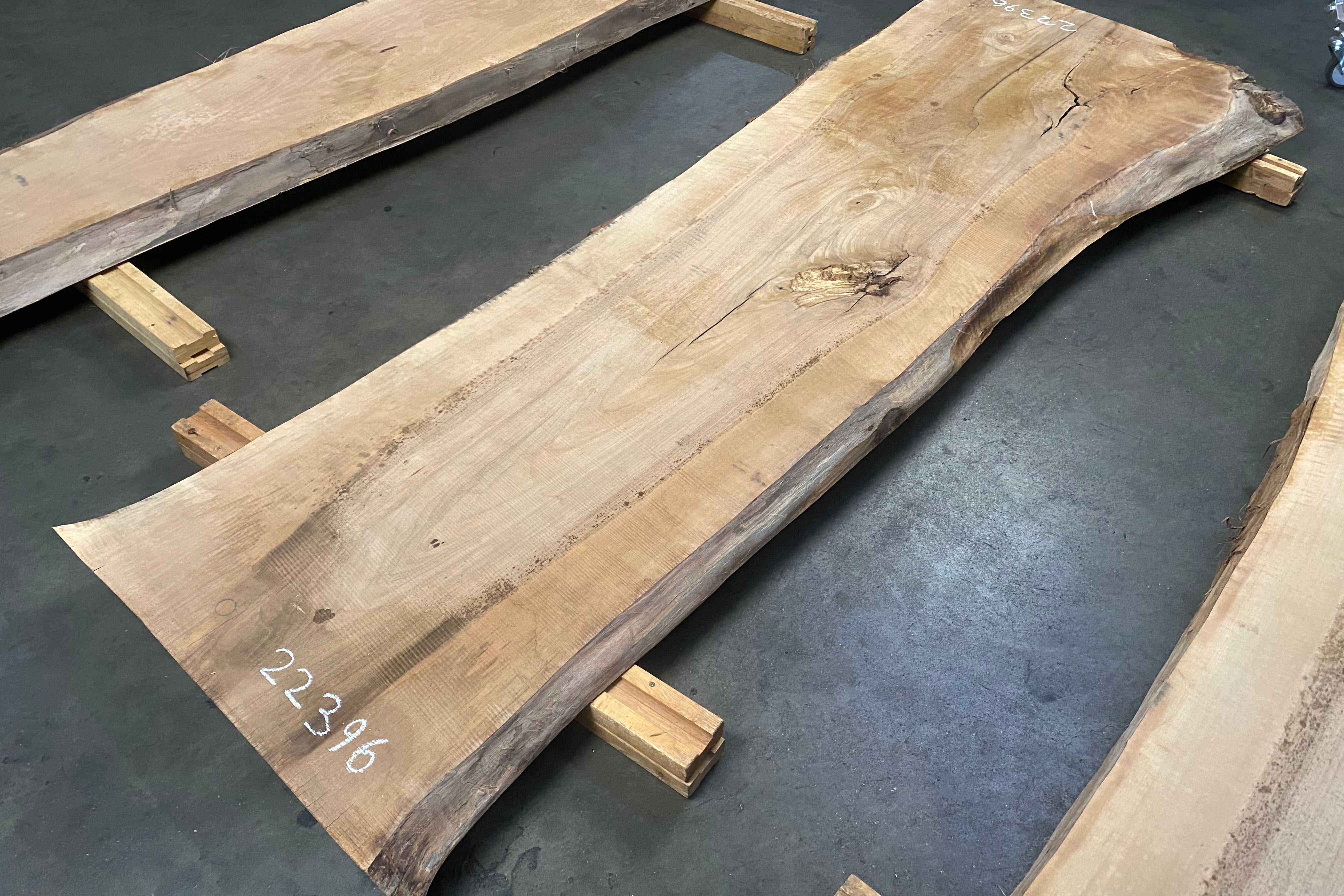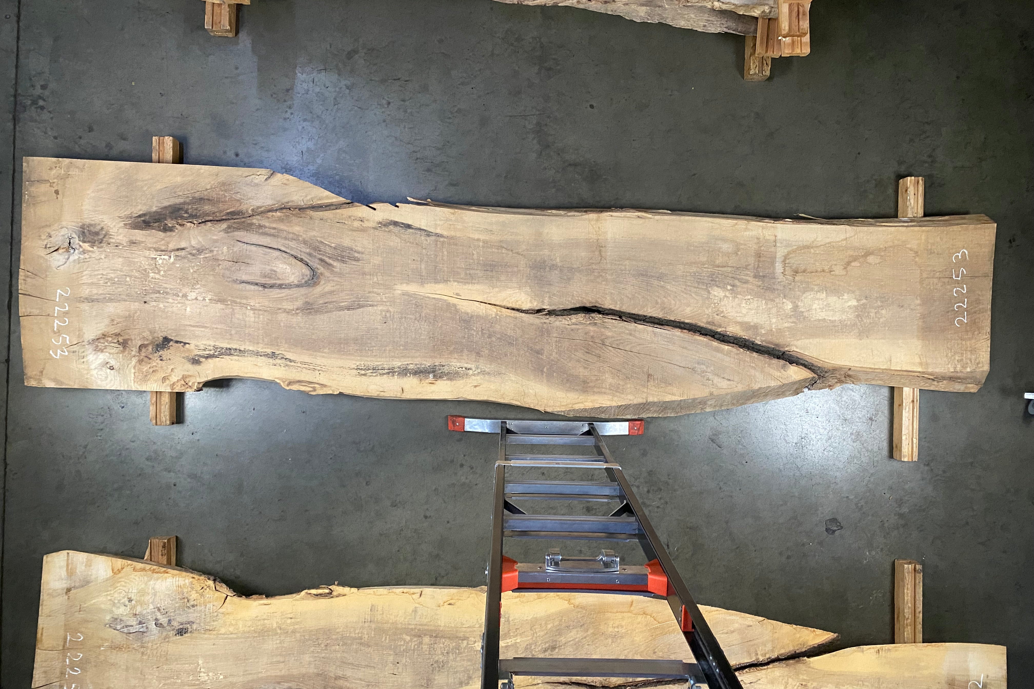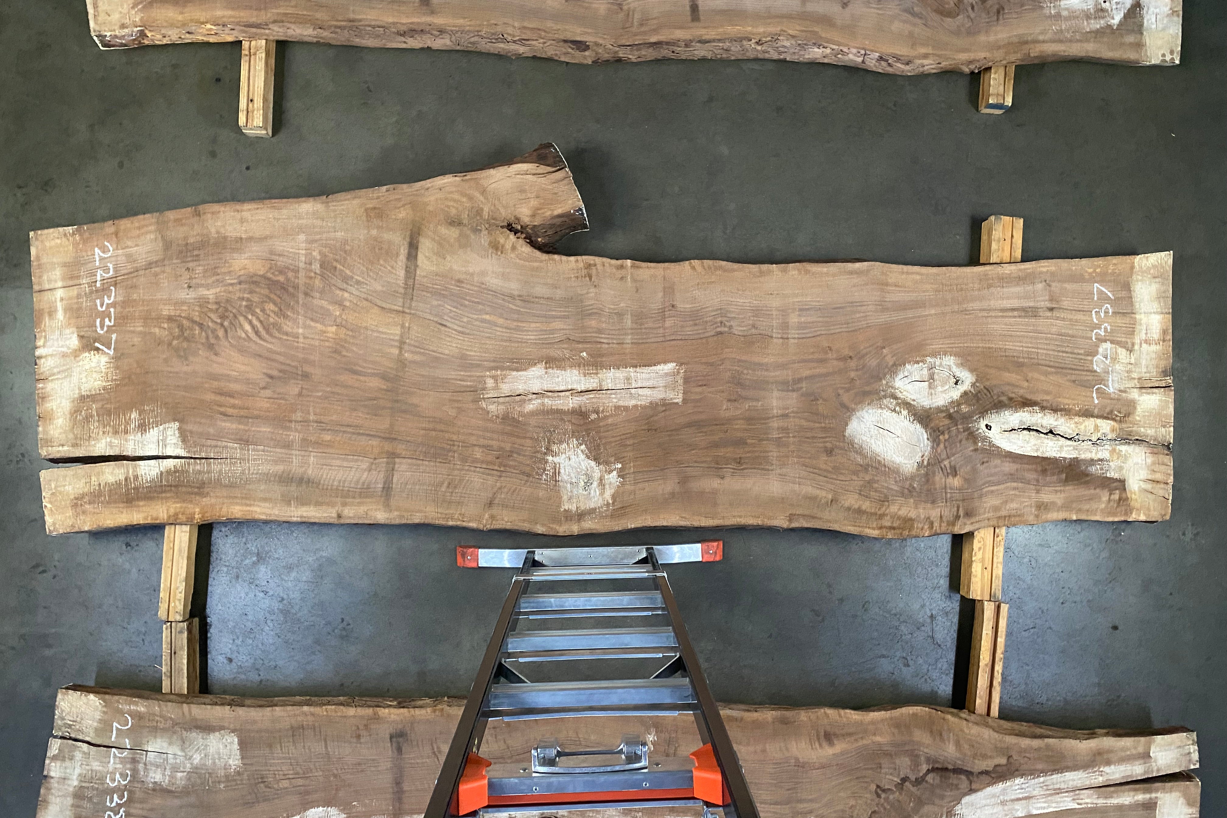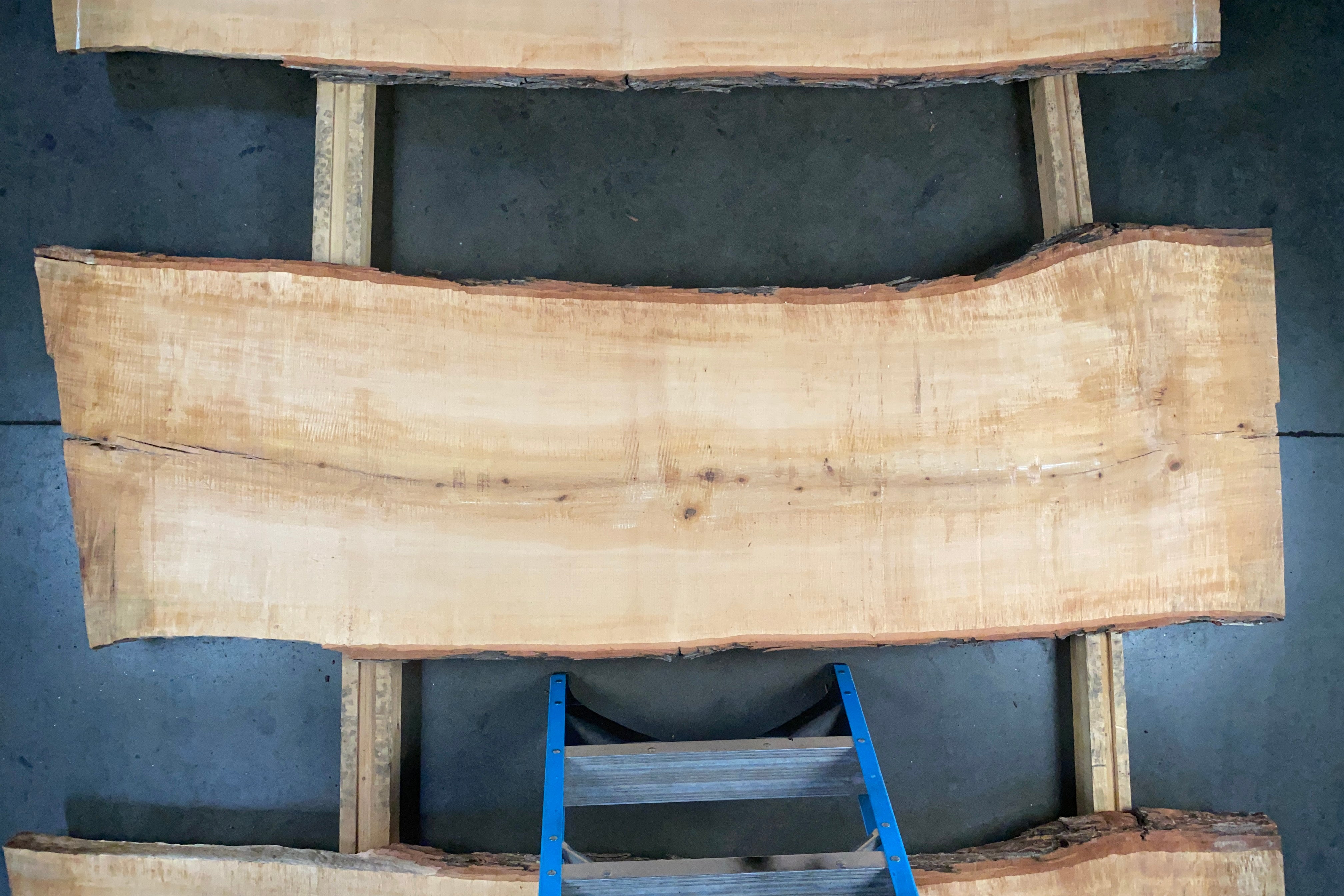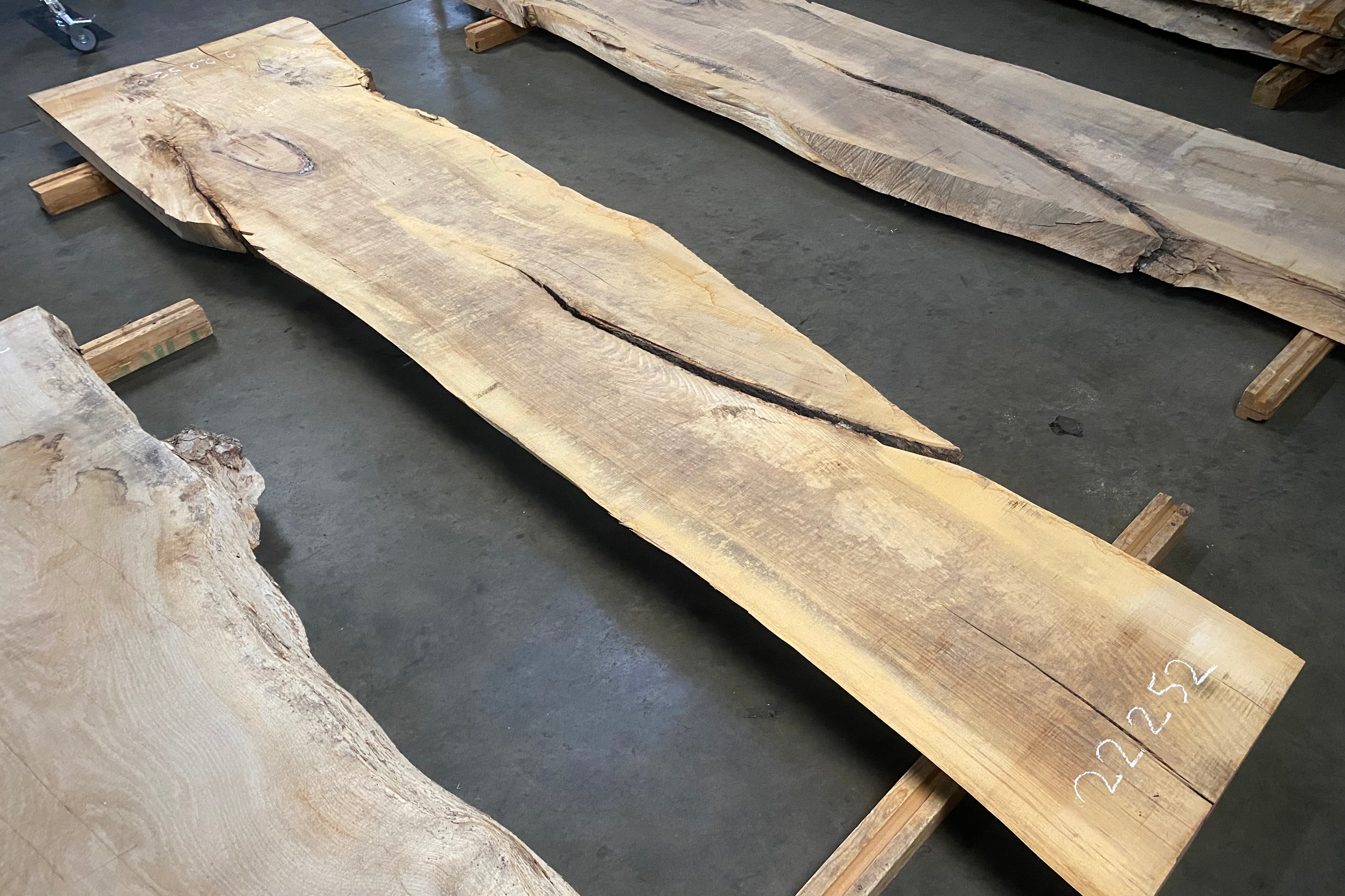 Bookmatched wood slabs are made by joining two slabs together and lining up their surfaces so that the grain of the wood reflects along a middle line. Usually, these pieces are cut from the same piece of wood. What makes the bookmatch effect more valuable is the variance from each half to the other, and the better the bookmatch, the more impressive it looks.