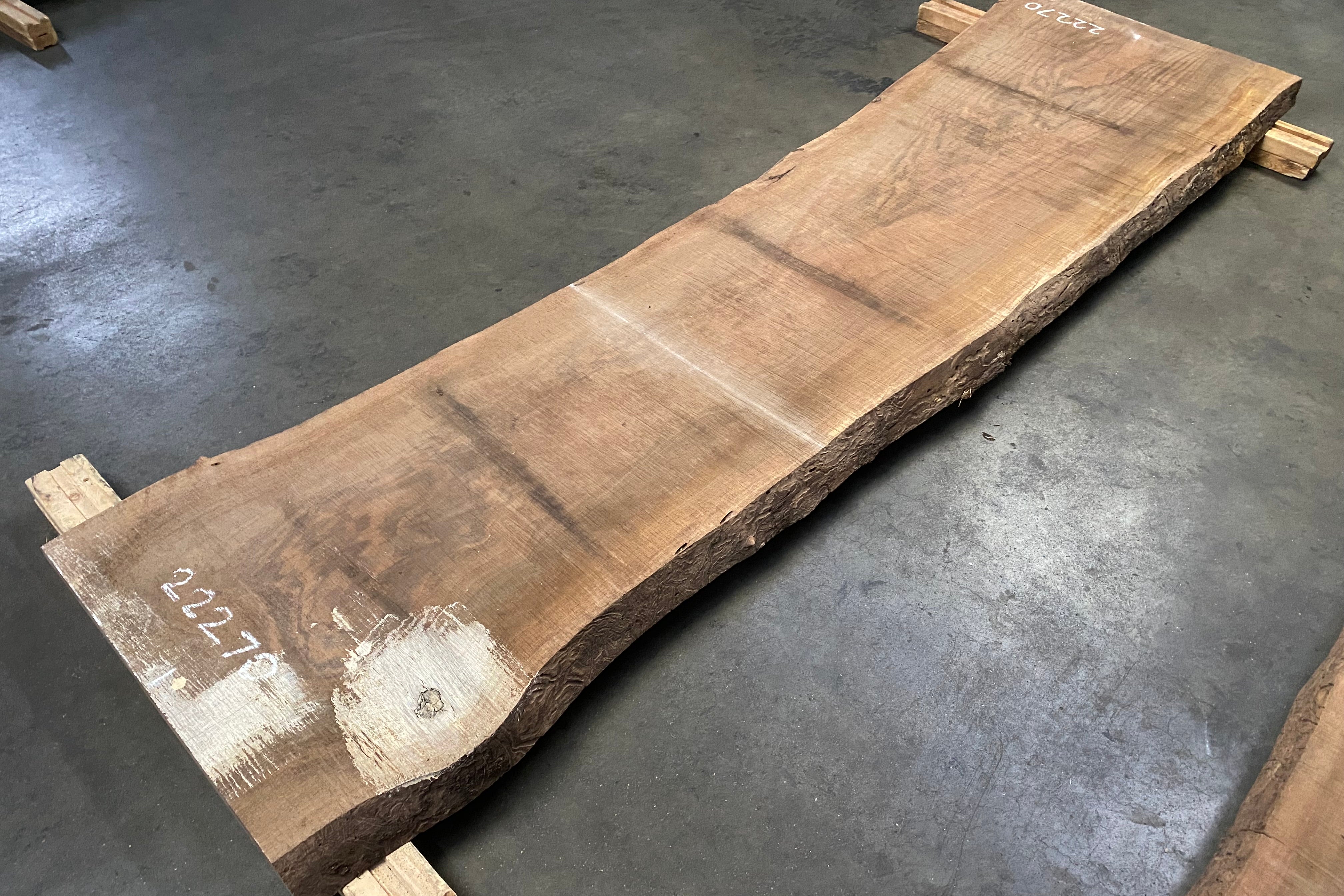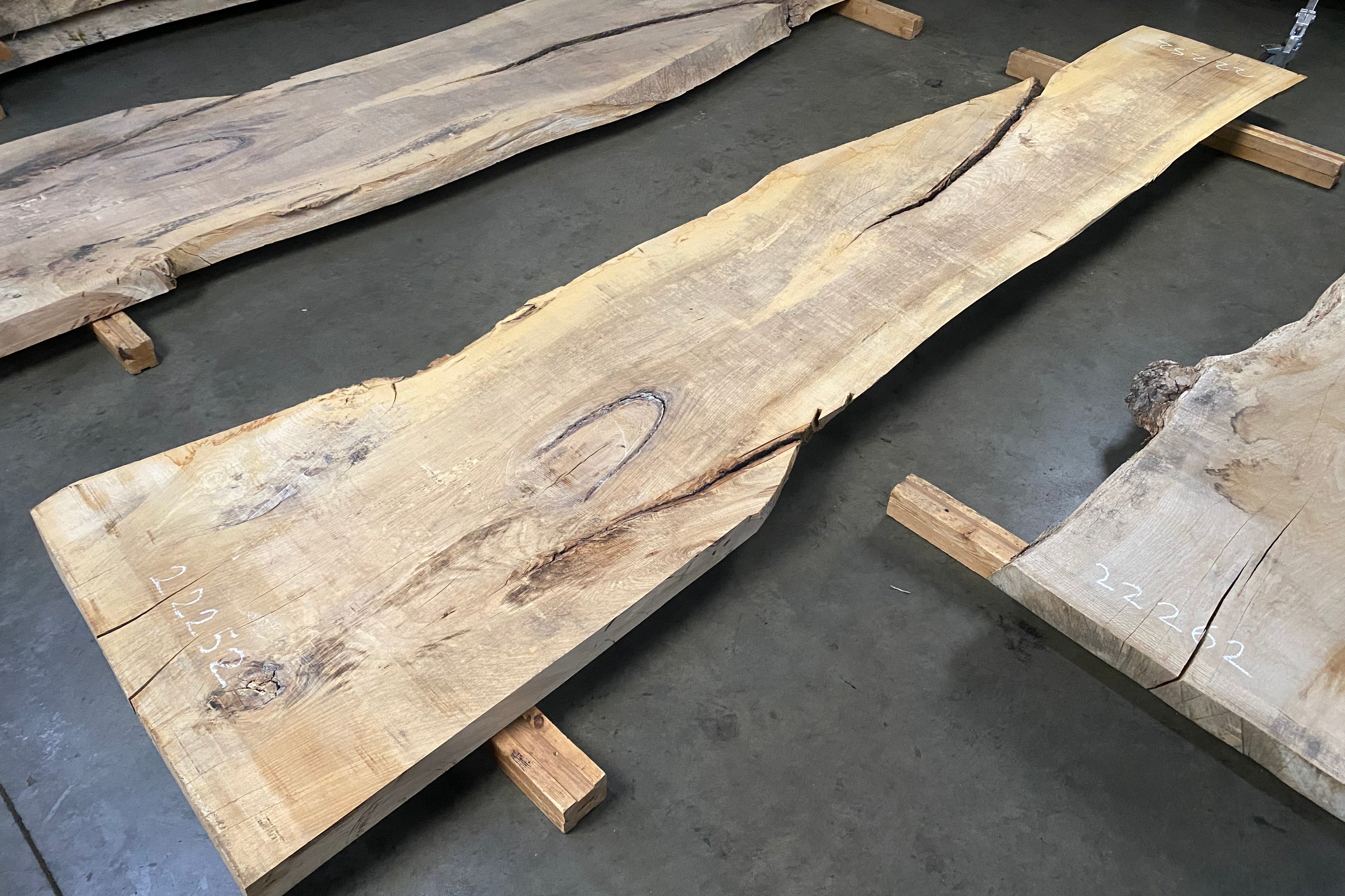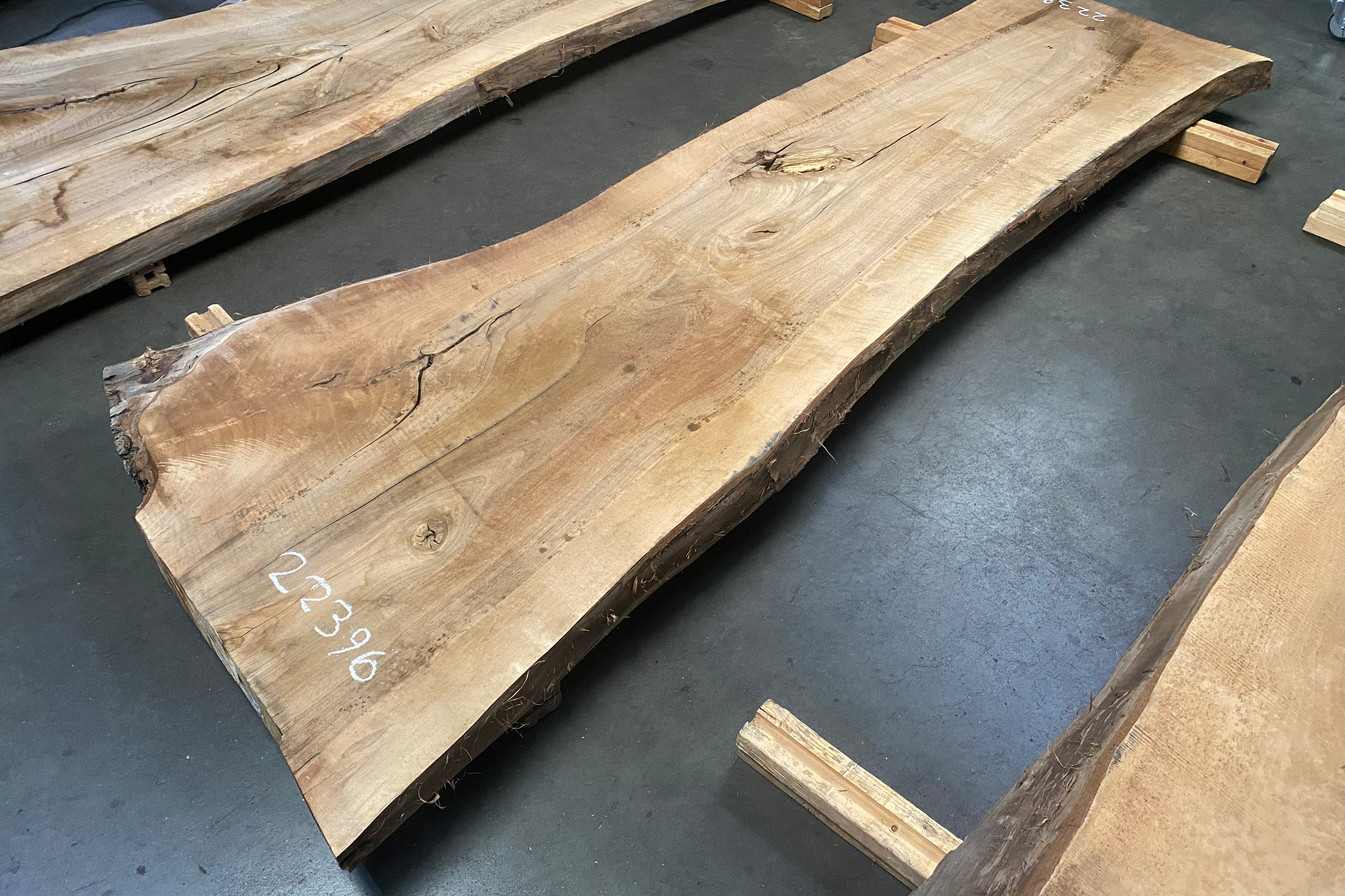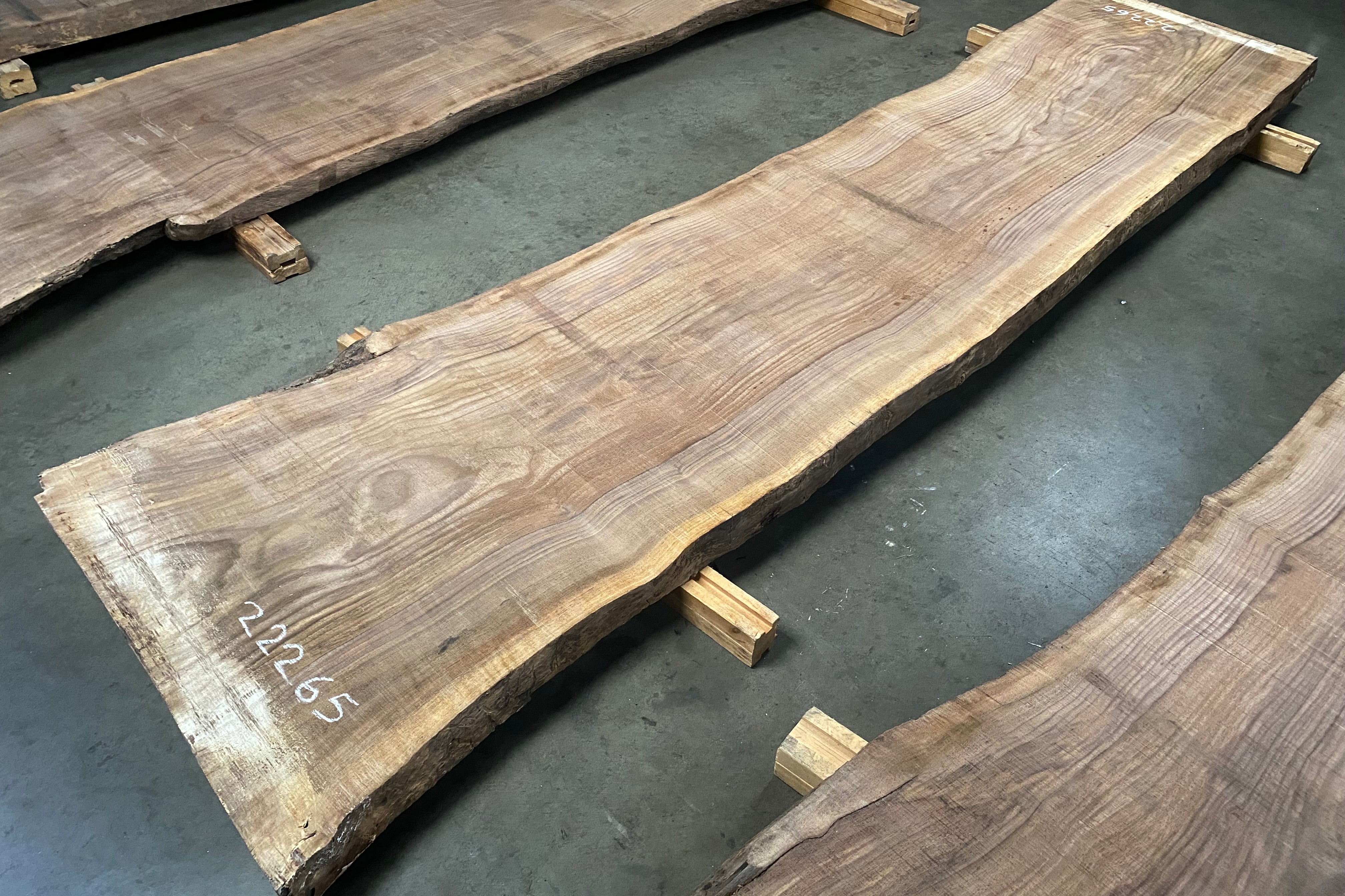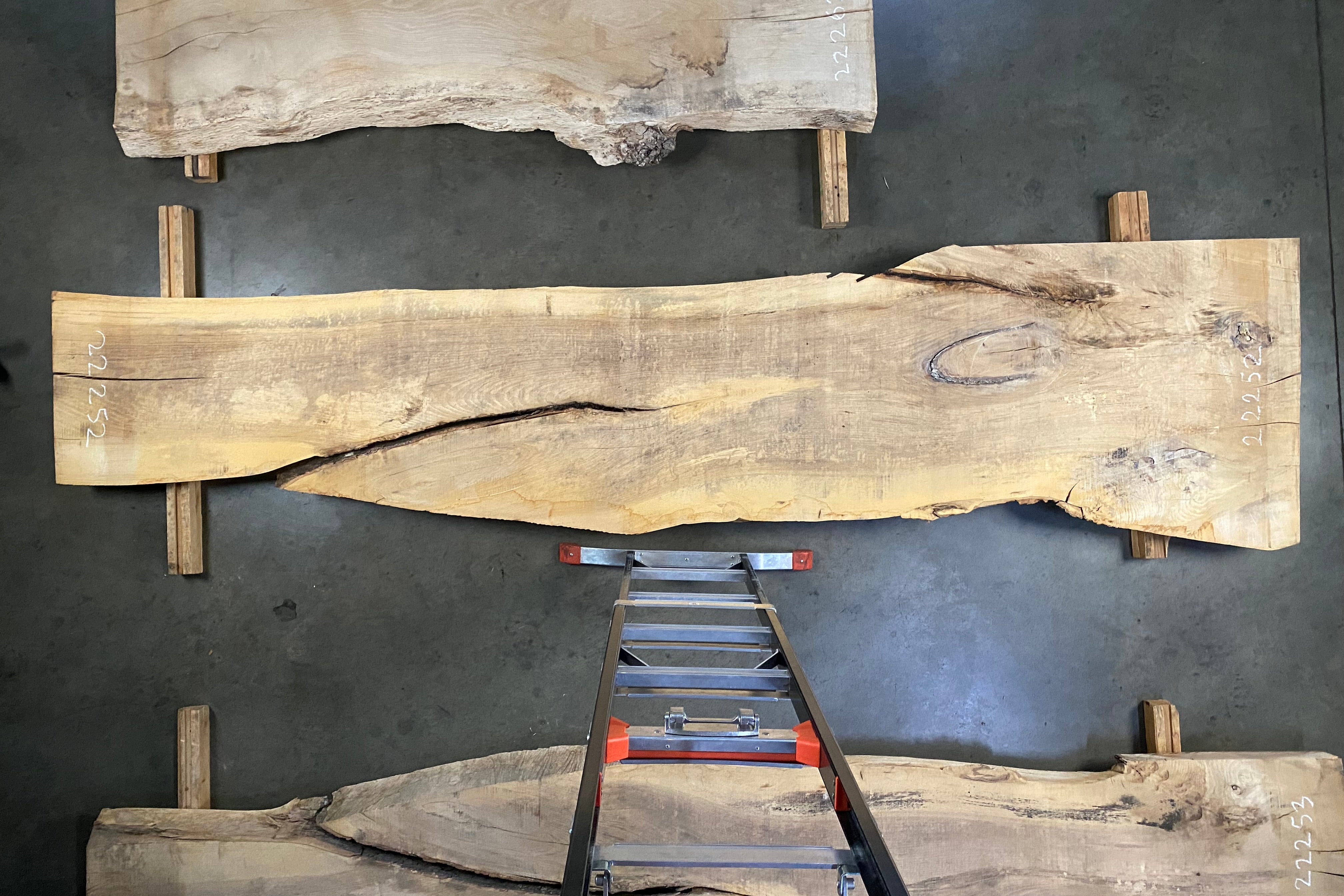 Bookmatched wood slabs are made by joining two slabs together and lining up their surfaces so that the grain of the wood reflects along a middle line. Usually, these pieces are cut from the same piece of wood. What makes the bookmatch effect more valuable is the variance from each half to the other, and the better the bookmatch, the more impressive it looks.