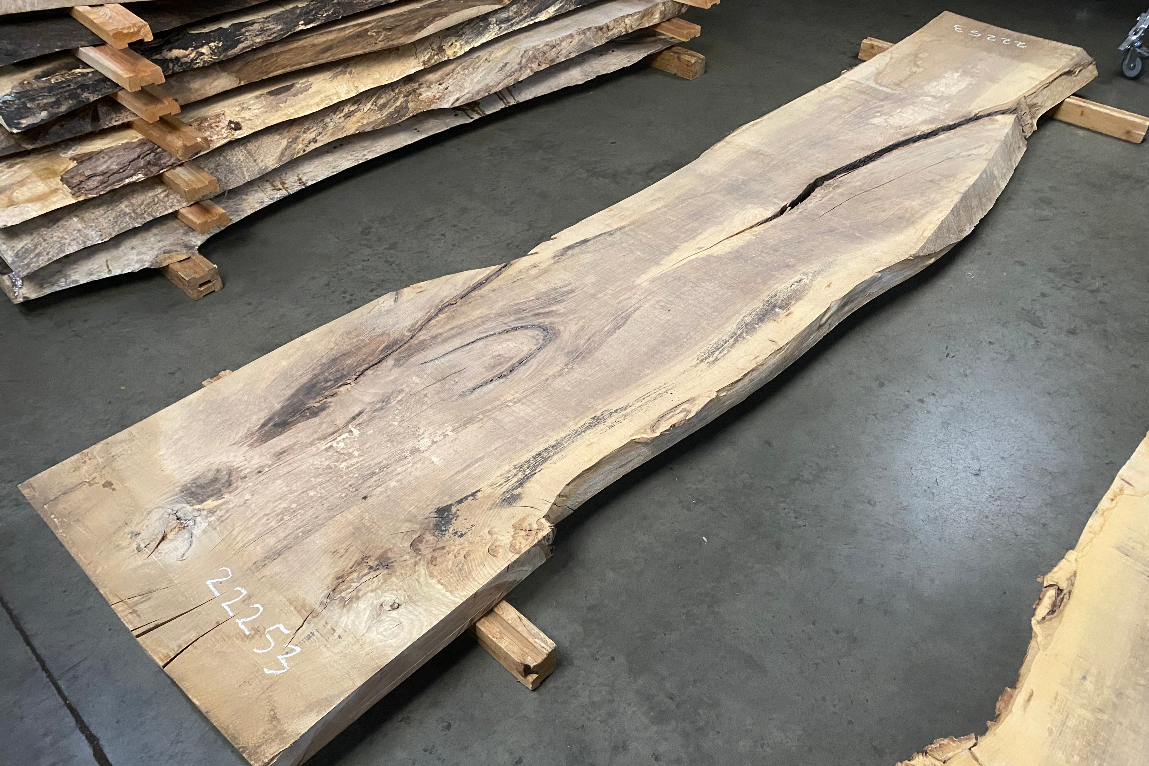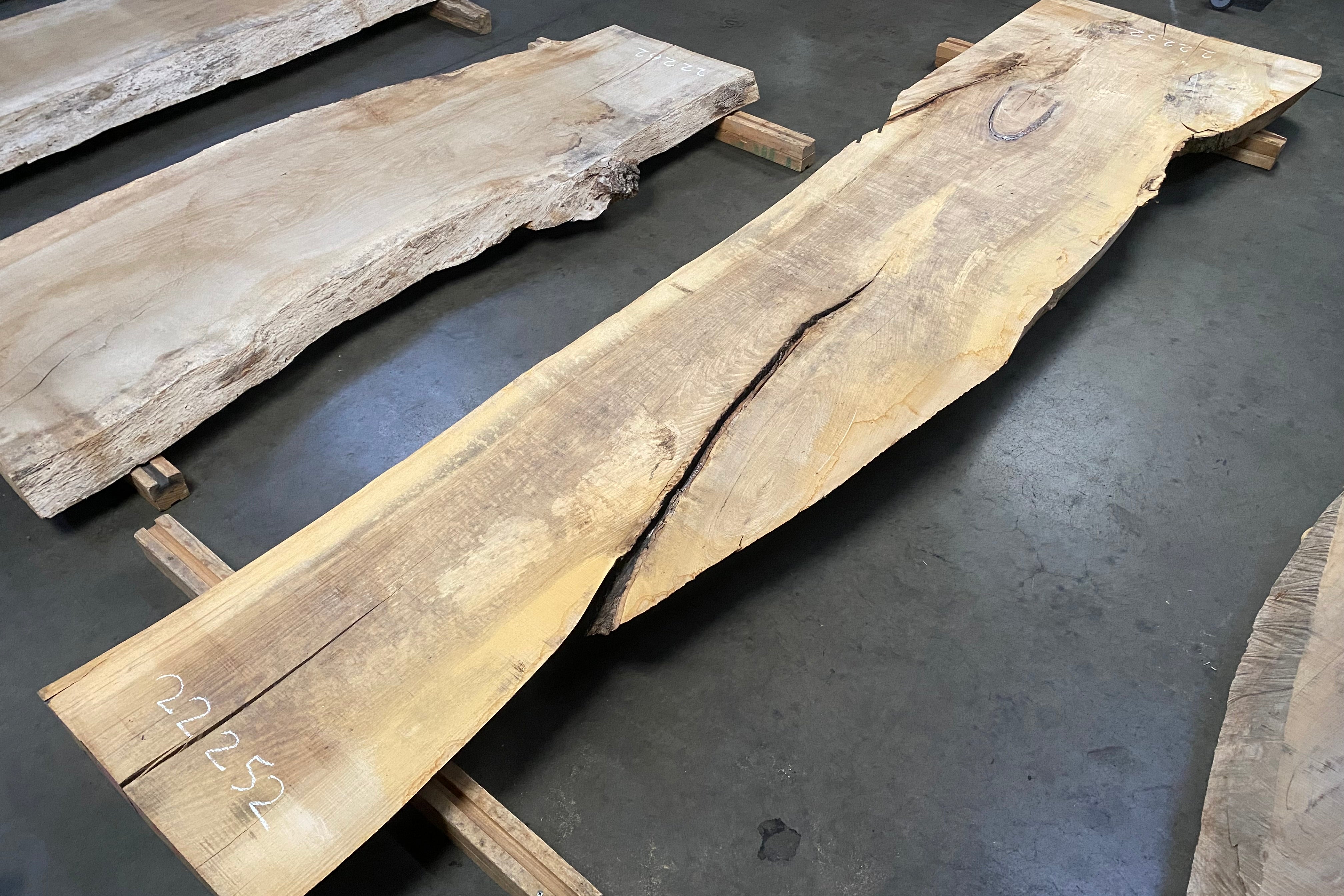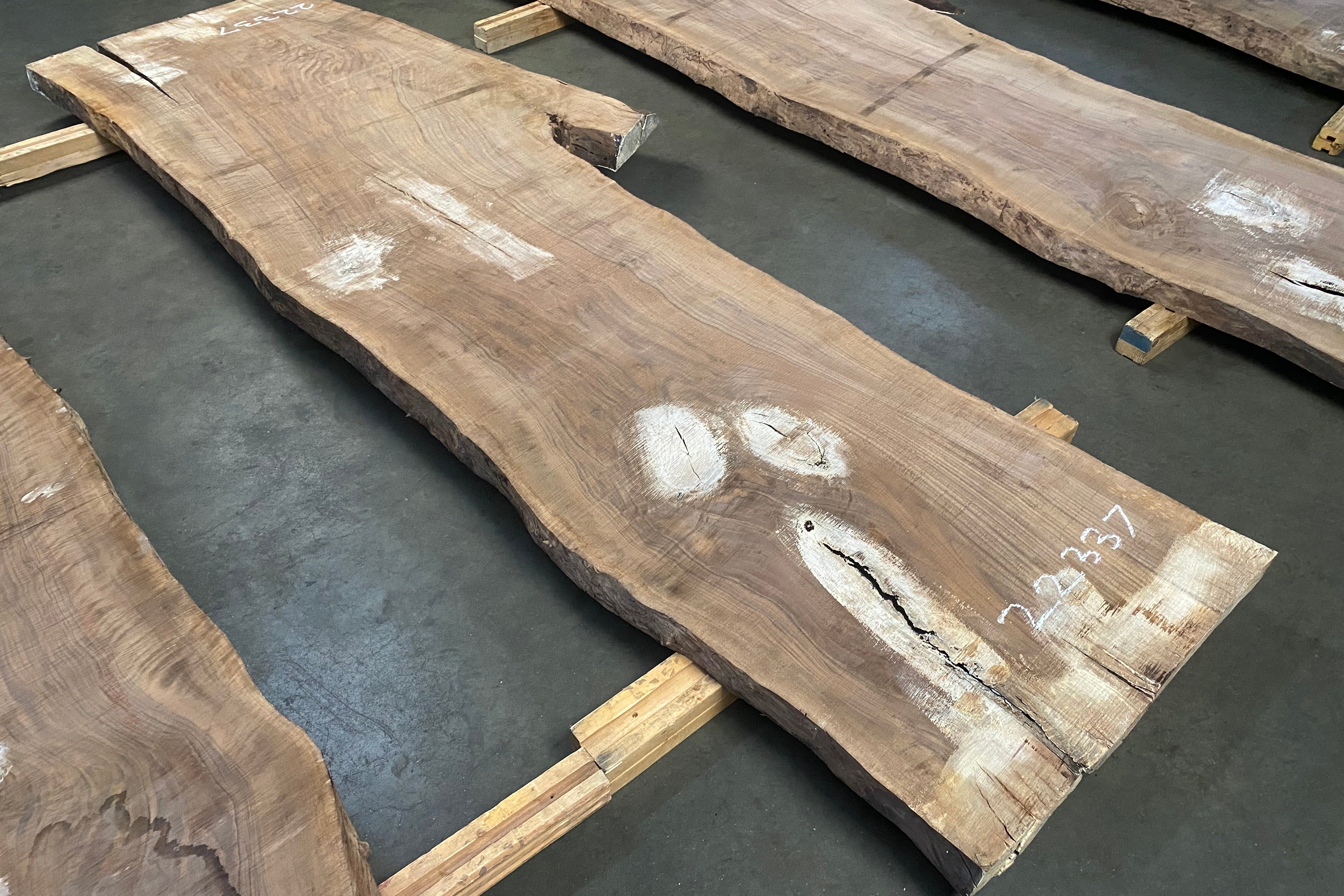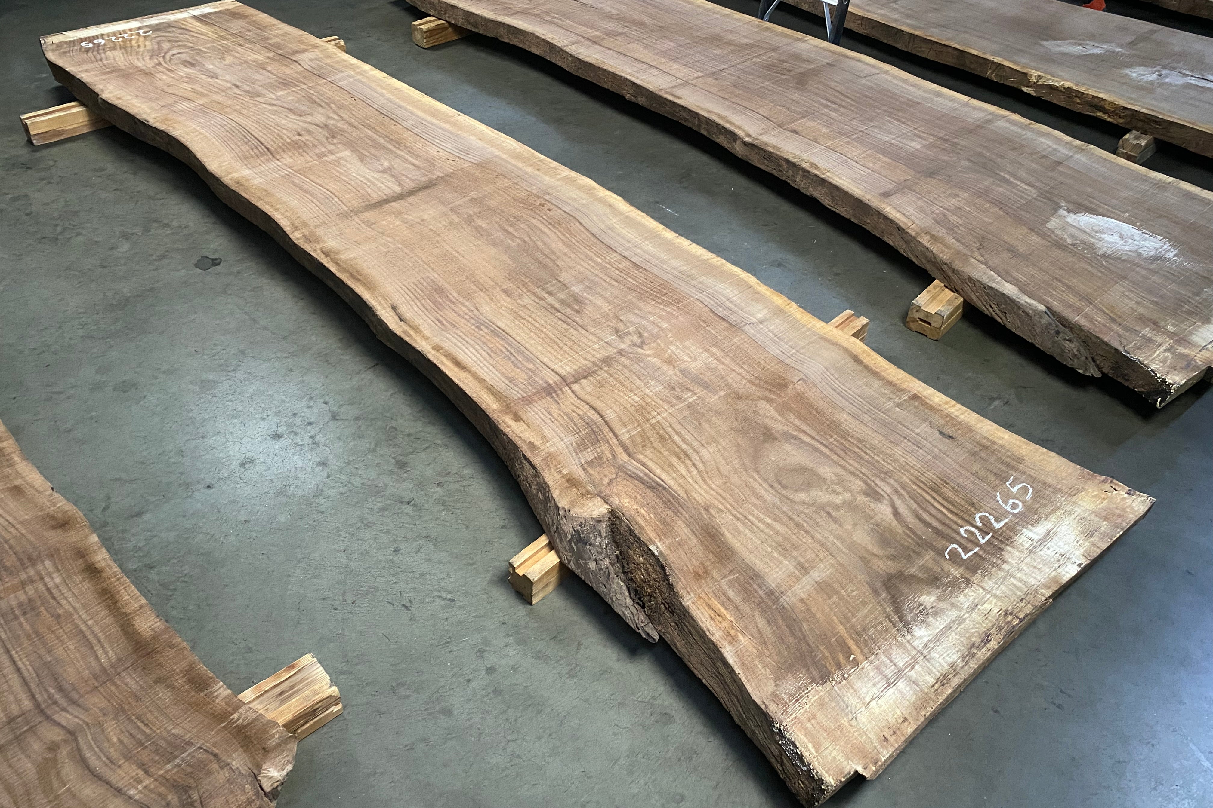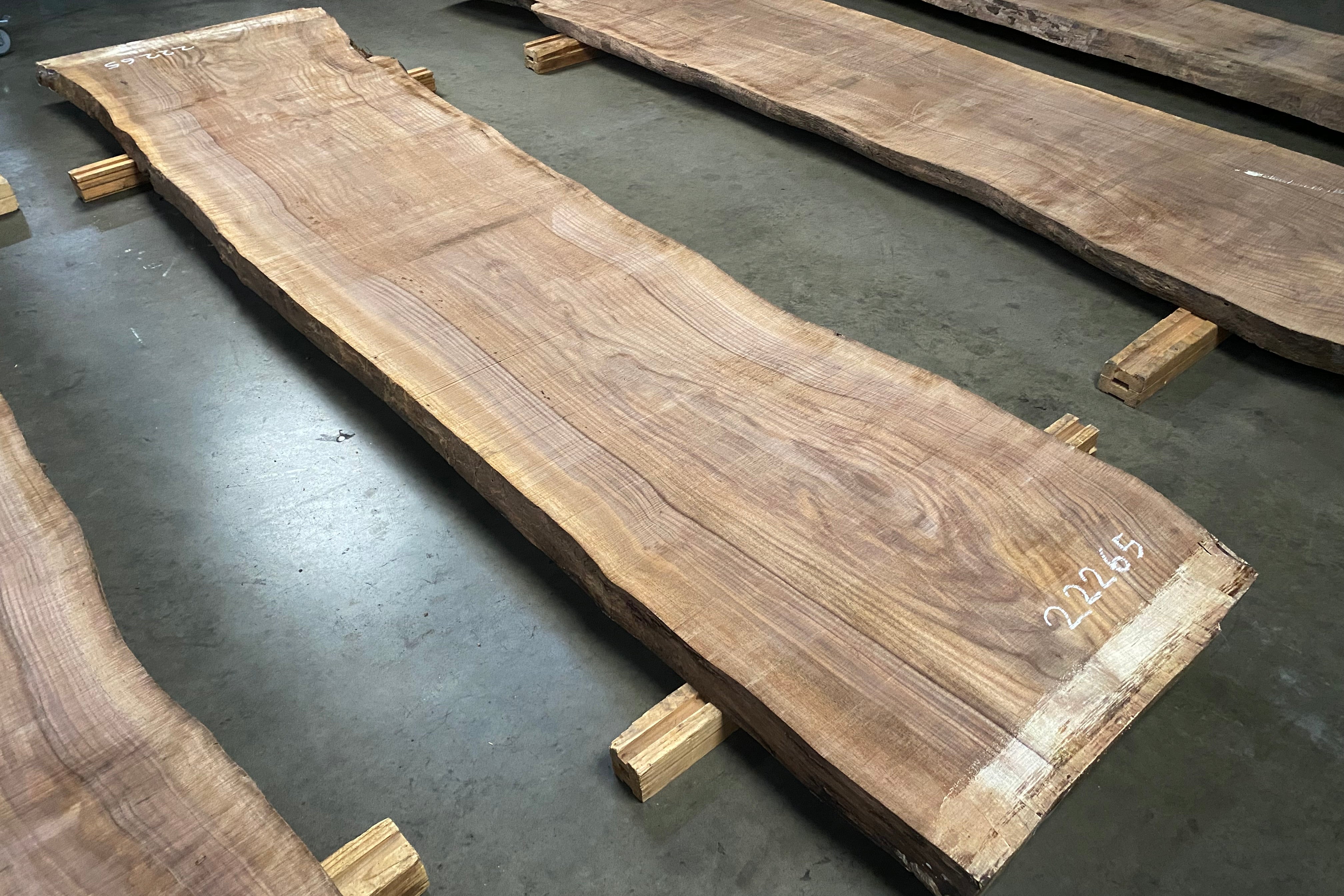 Bookmatched wood slabs are made by joining two slabs together and lining up their surfaces so that the grain of the wood reflects along a middle line. Usually, these pieces are cut from the same piece of wood. What makes the bookmatch effect more valuable is the variance from each half to the other, and the better the bookmatch, the more impressive it looks.