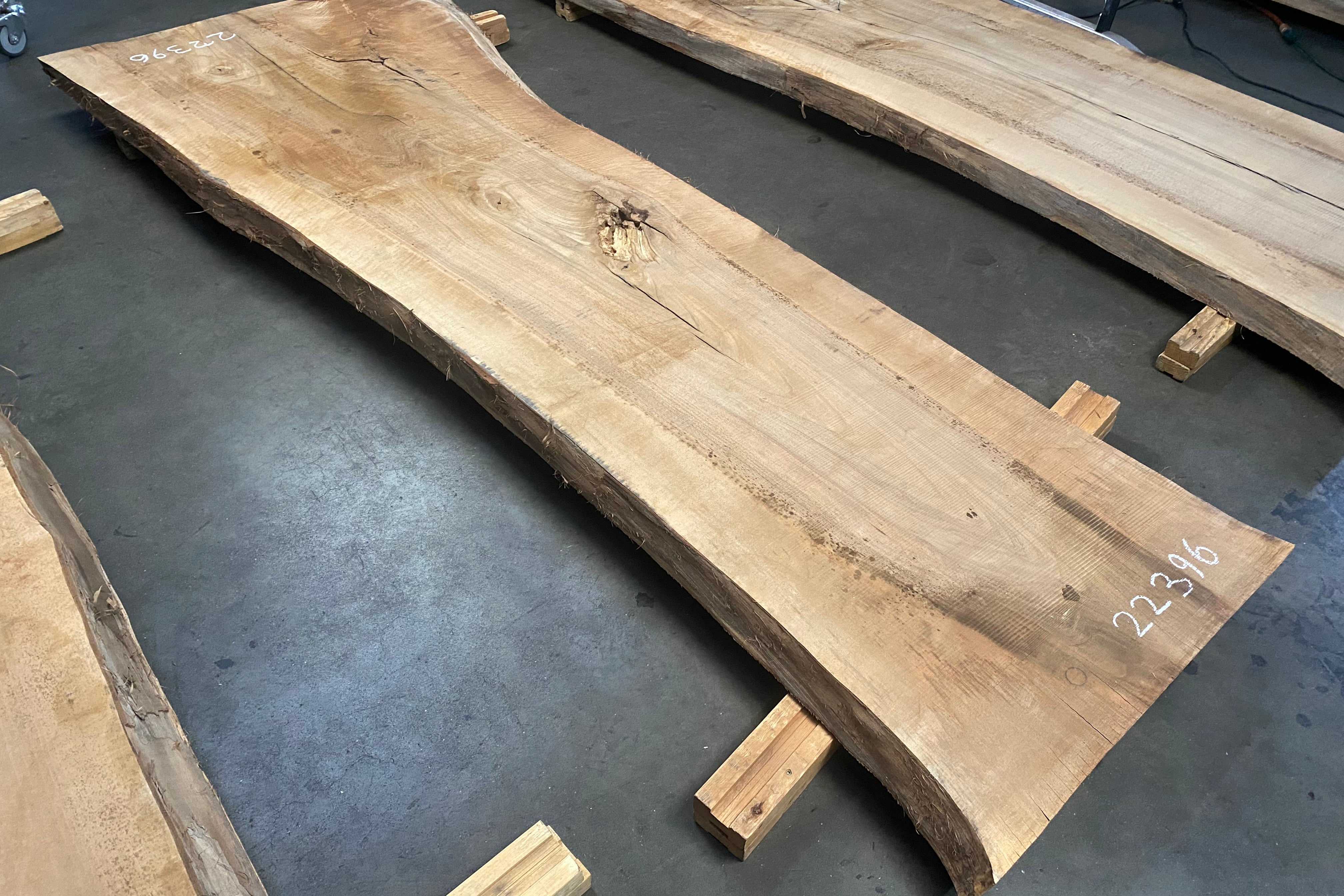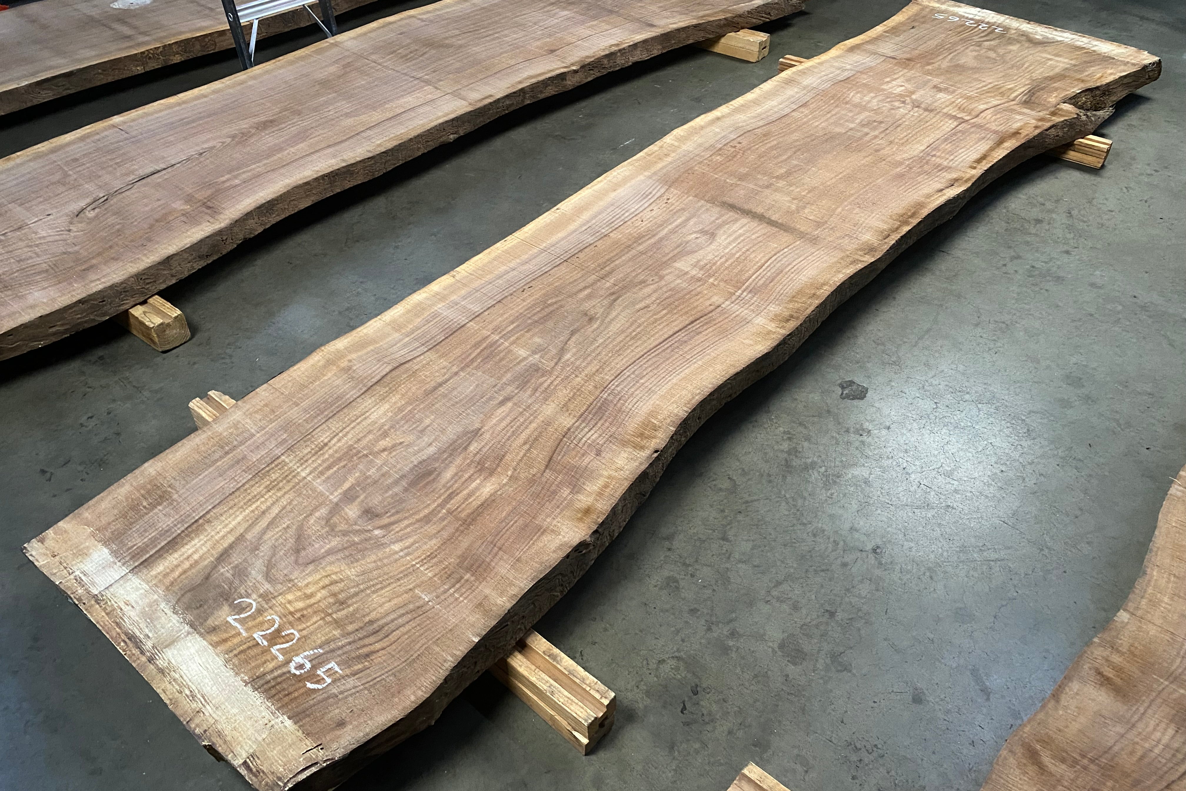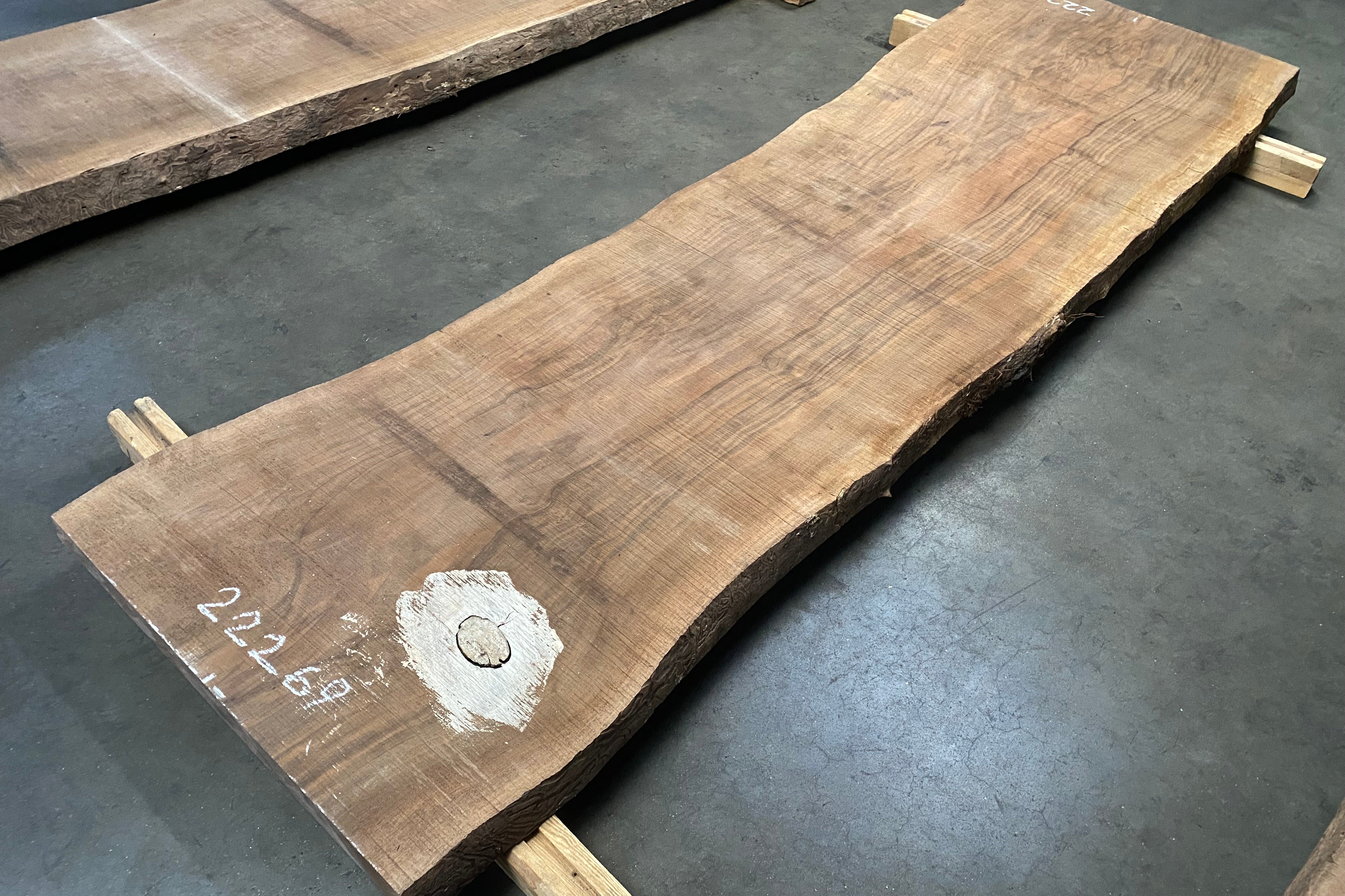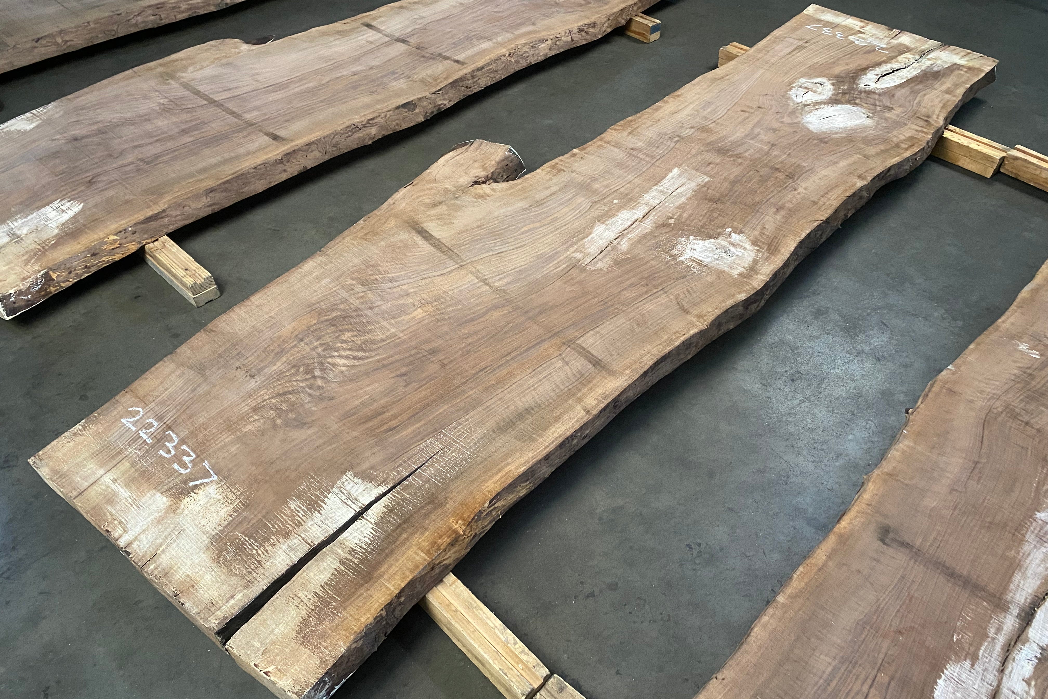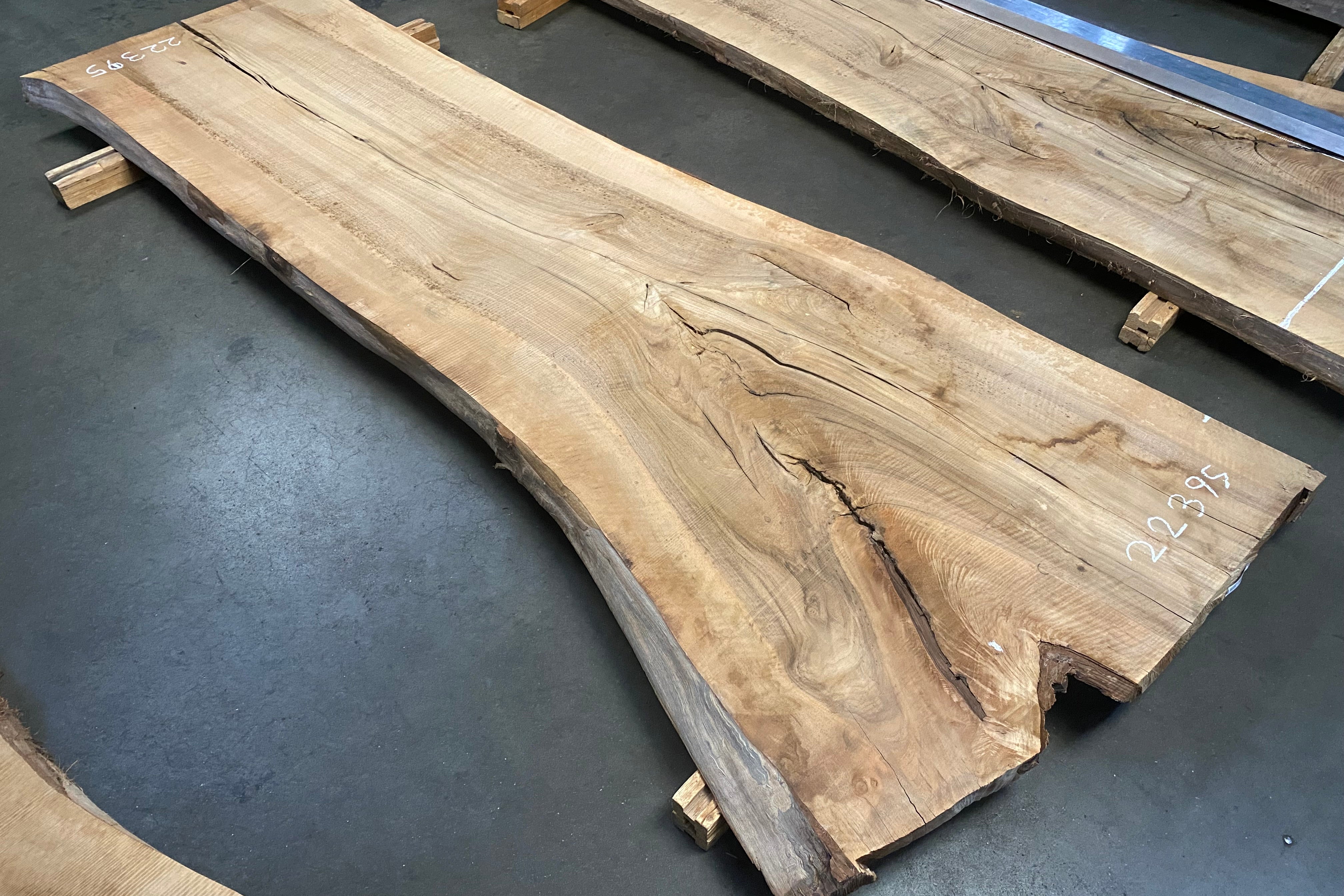 Bookmatched wood slabs are made by joining two slabs together and lining up their surfaces so that the grain of the wood reflects along a middle line. Usually, these pieces are cut from the same piece of wood. What makes the bookmatch effect more valuable is the variance from each half to the other, and the better the bookmatch, the more impressive it looks.