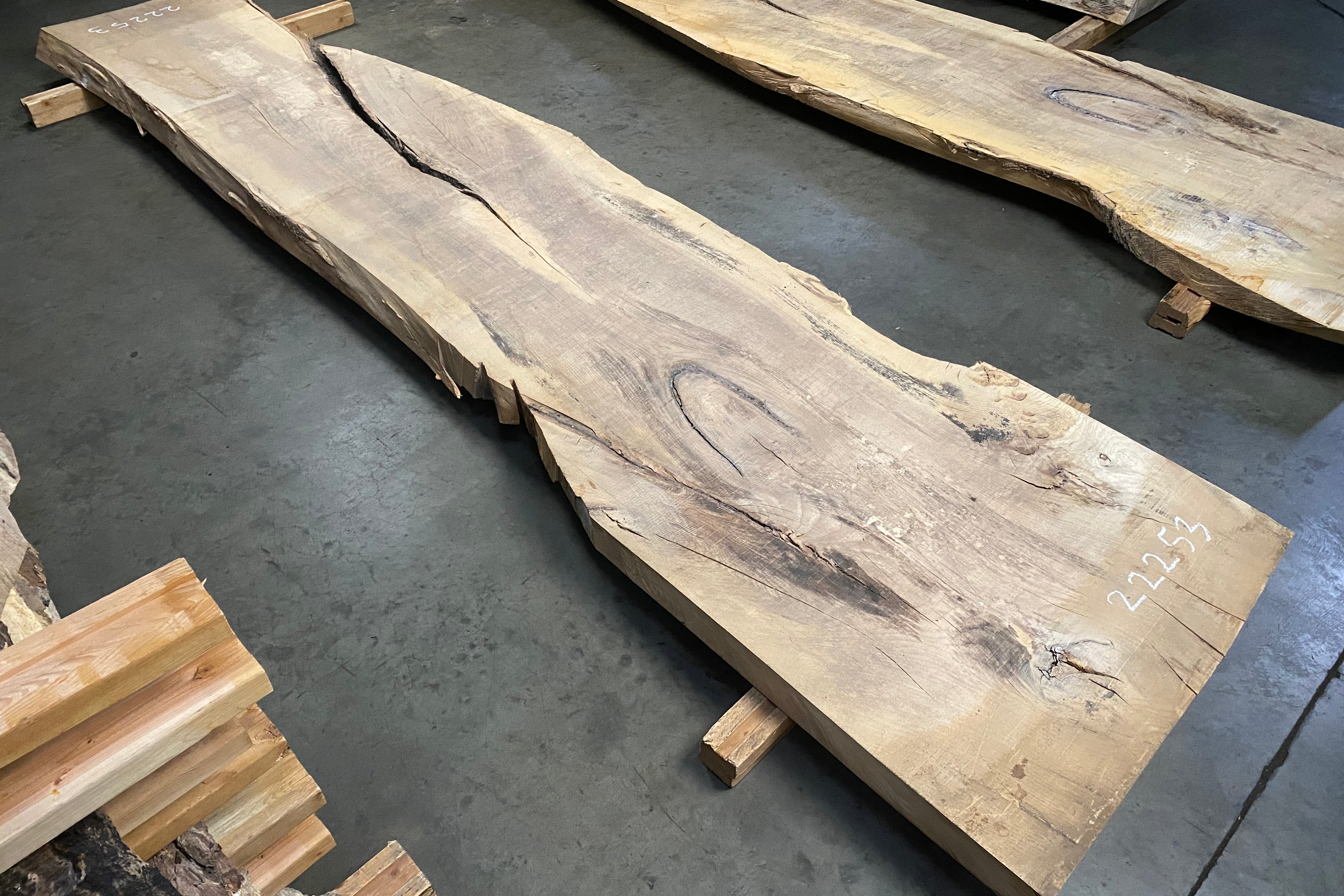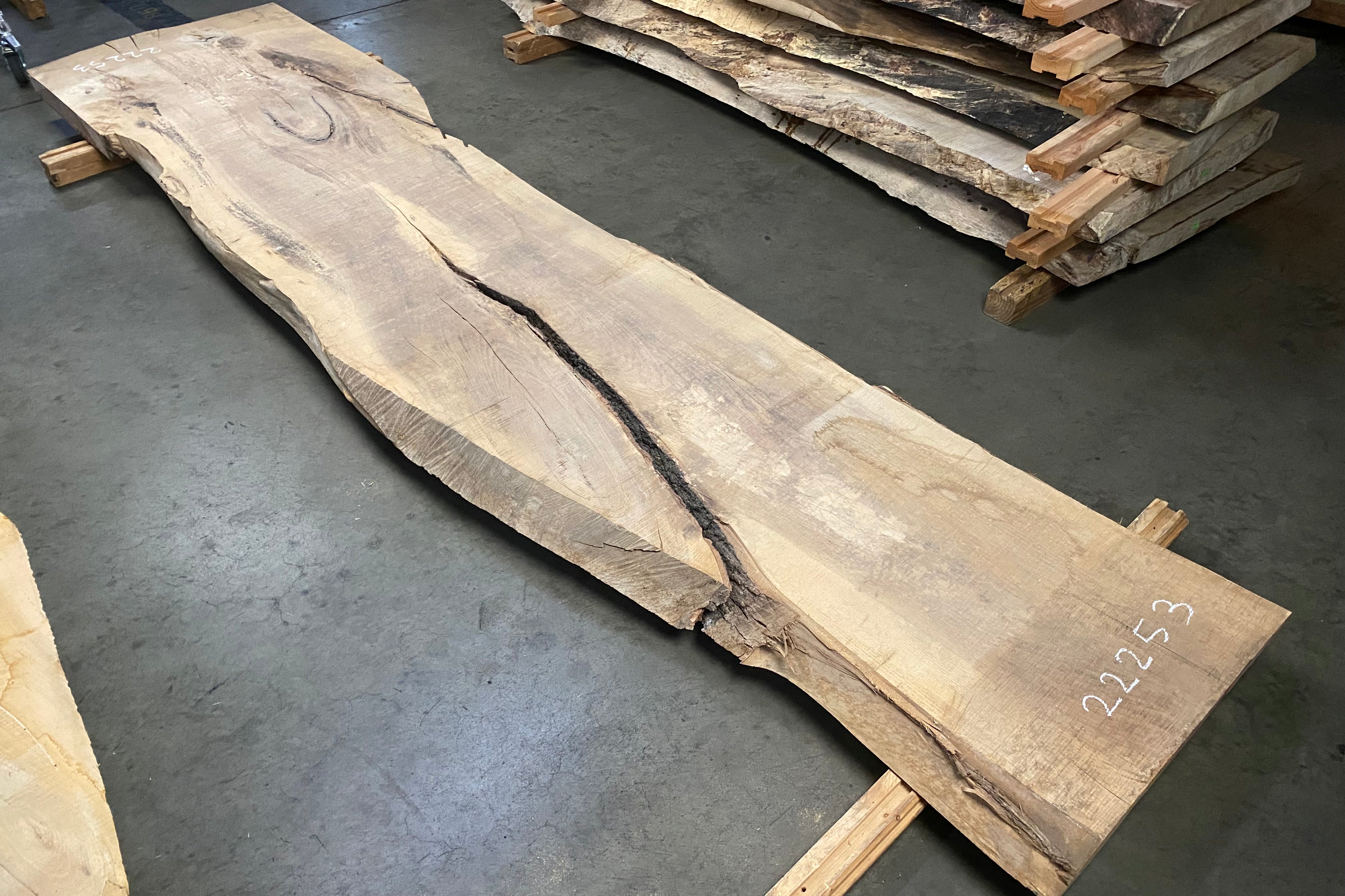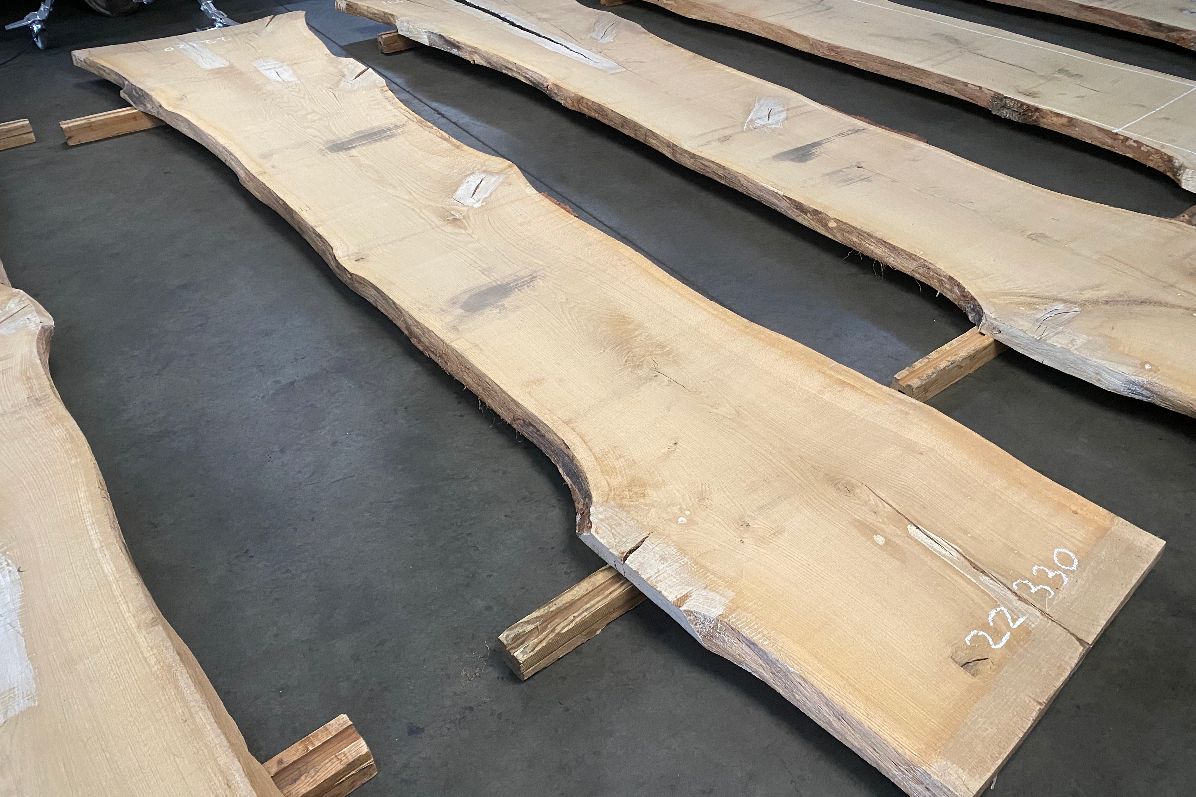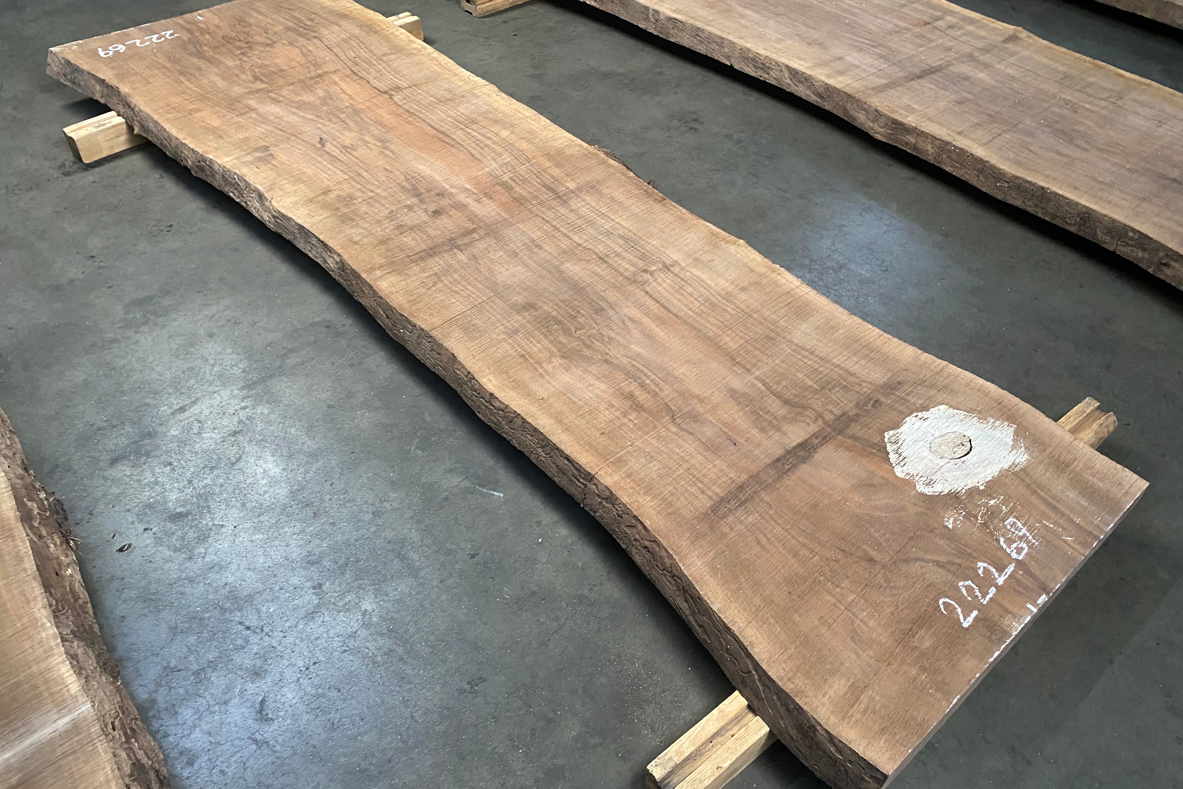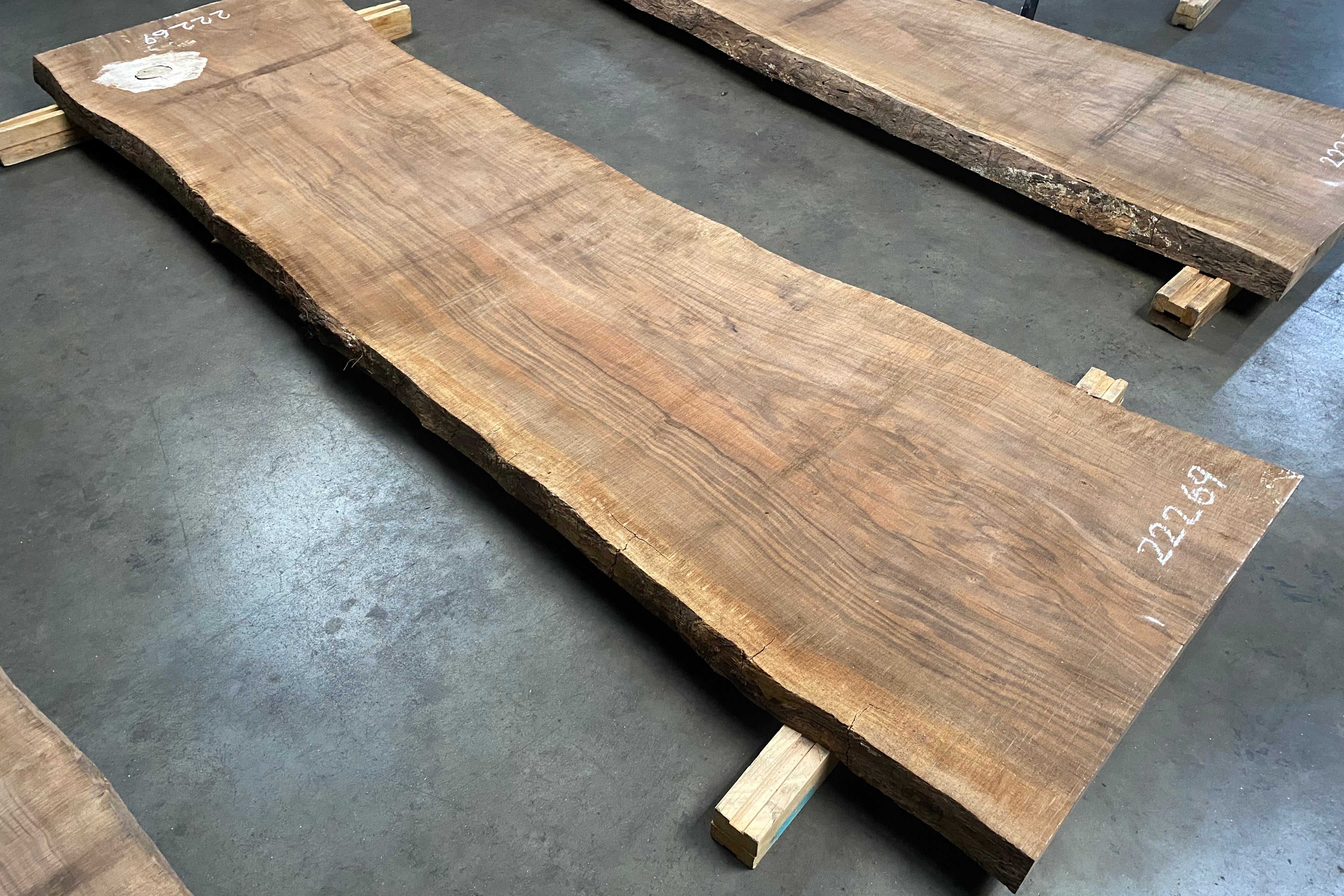 Bookmatched wood slabs are made by joining two slabs together and lining up their surfaces so that the grain of the wood reflects along a middle line. Usually, these pieces are cut from the same piece of wood. What makes the bookmatch effect more valuable is the variance from each half to the other, and the better the bookmatch, the more impressive it looks.