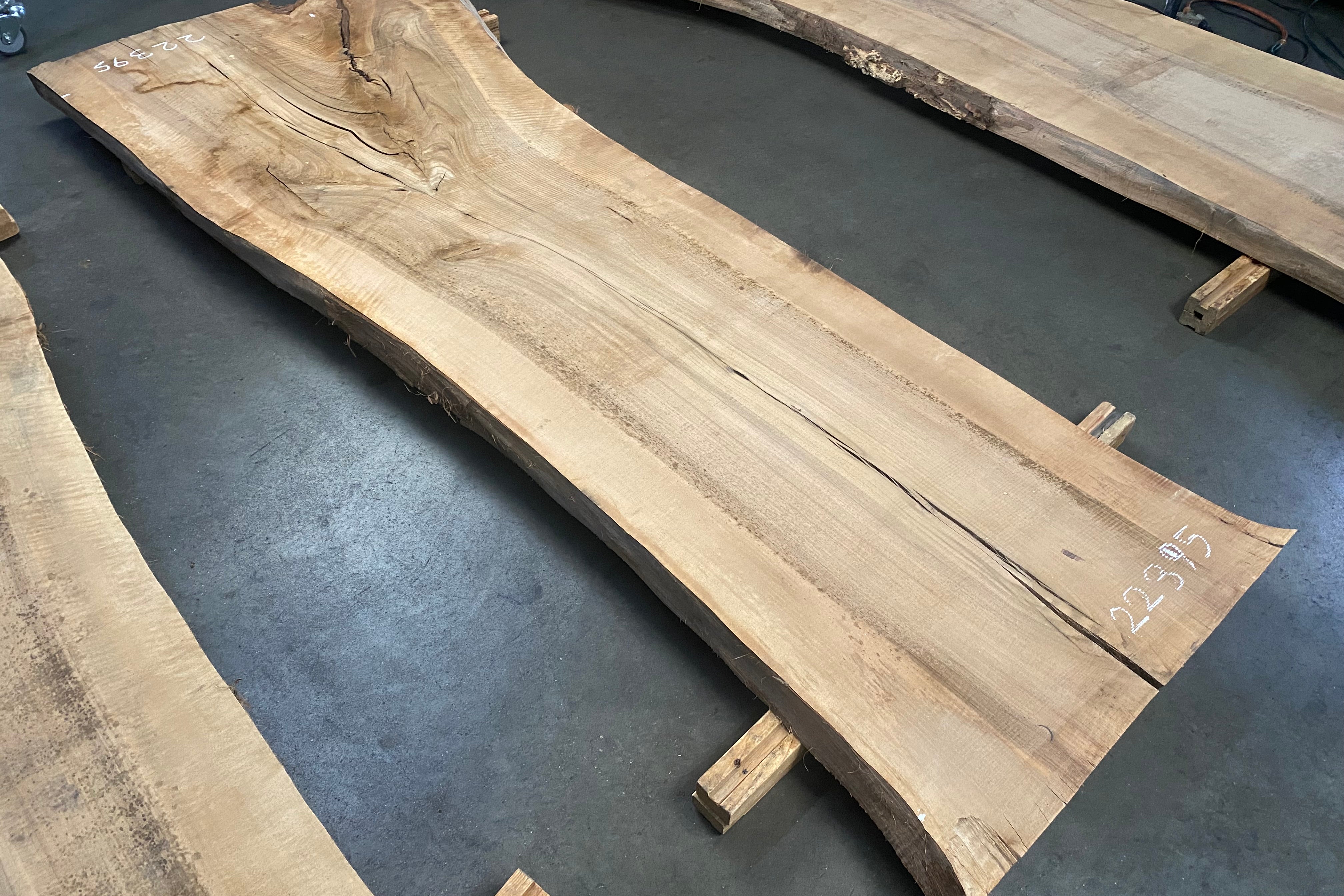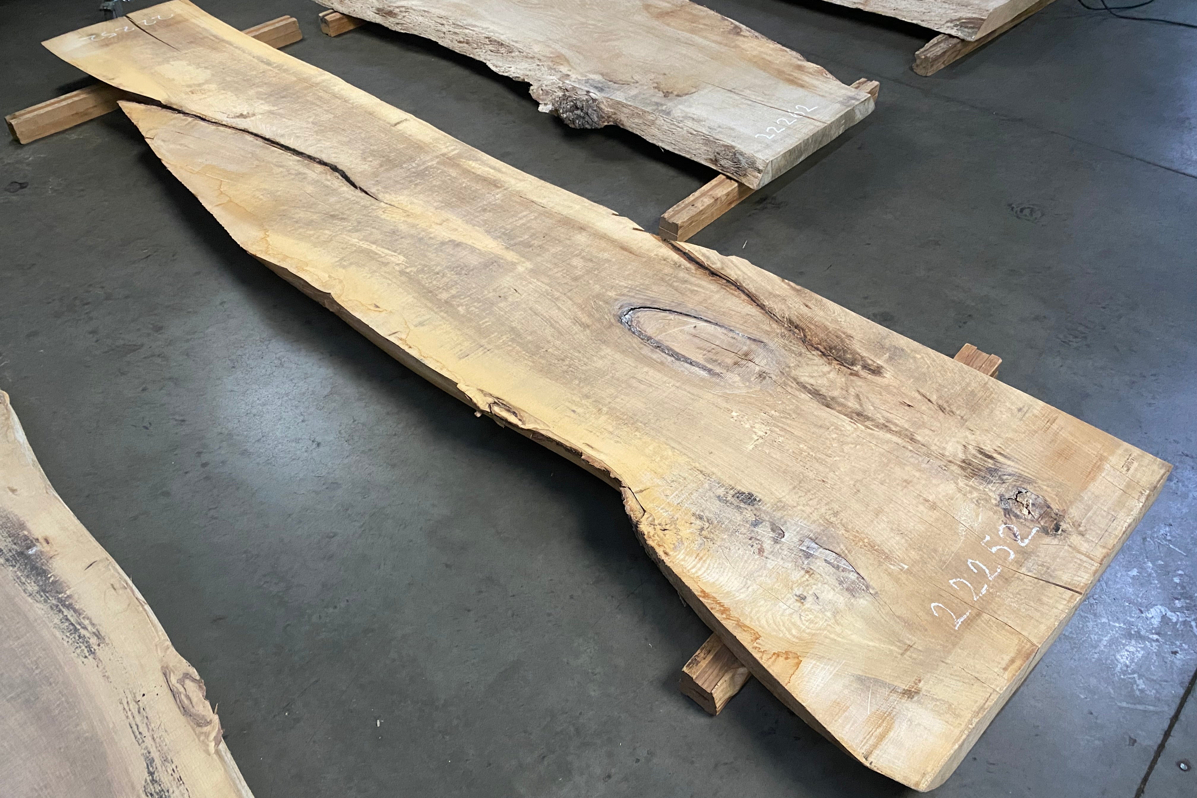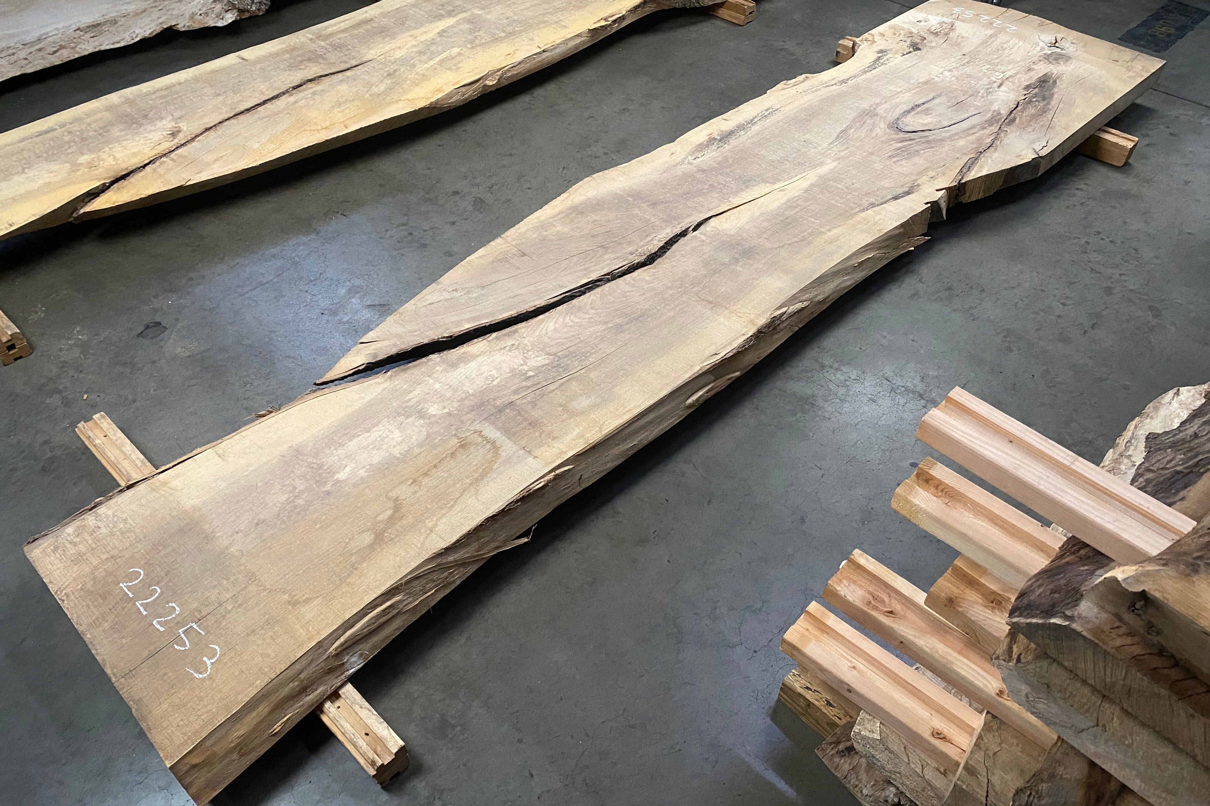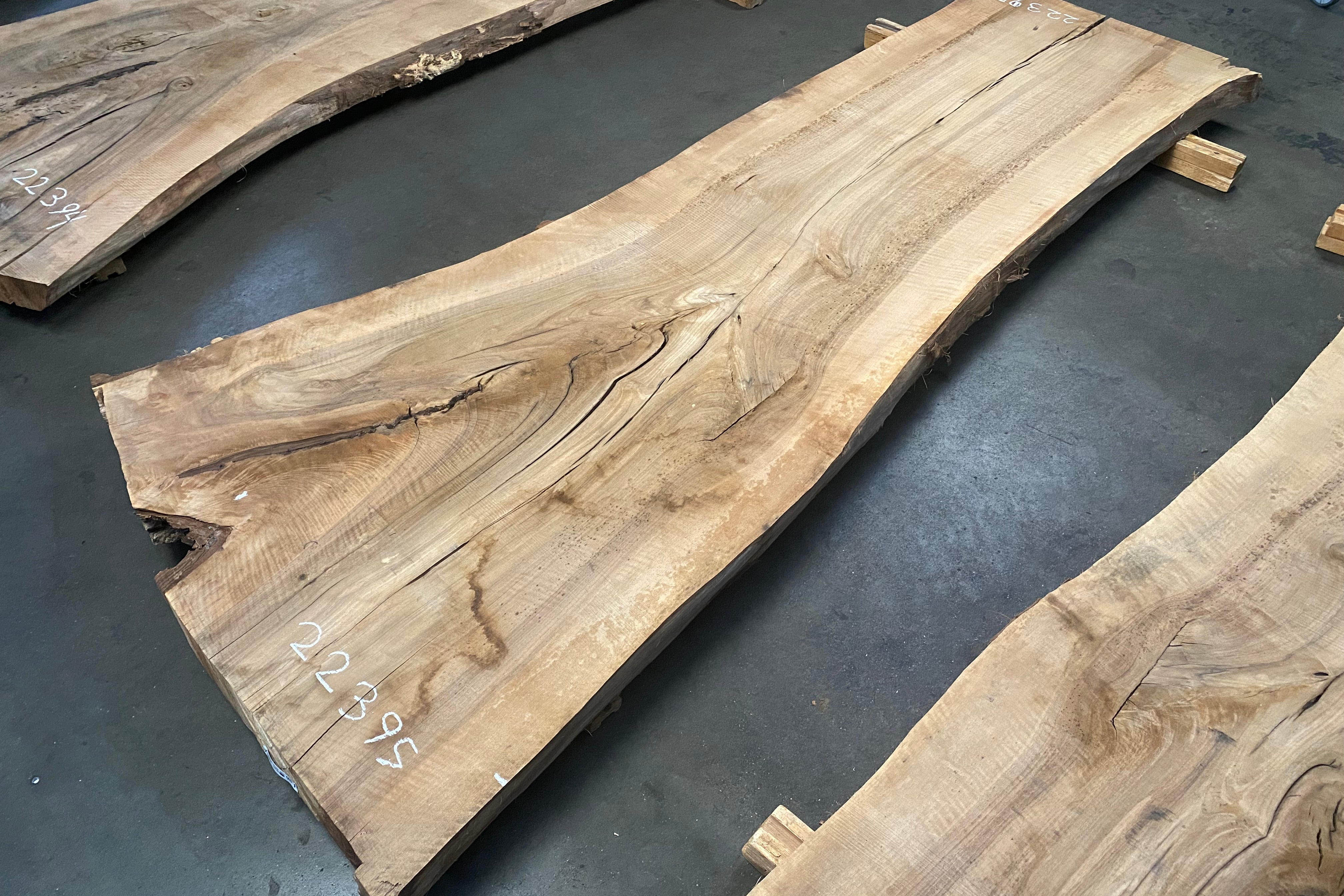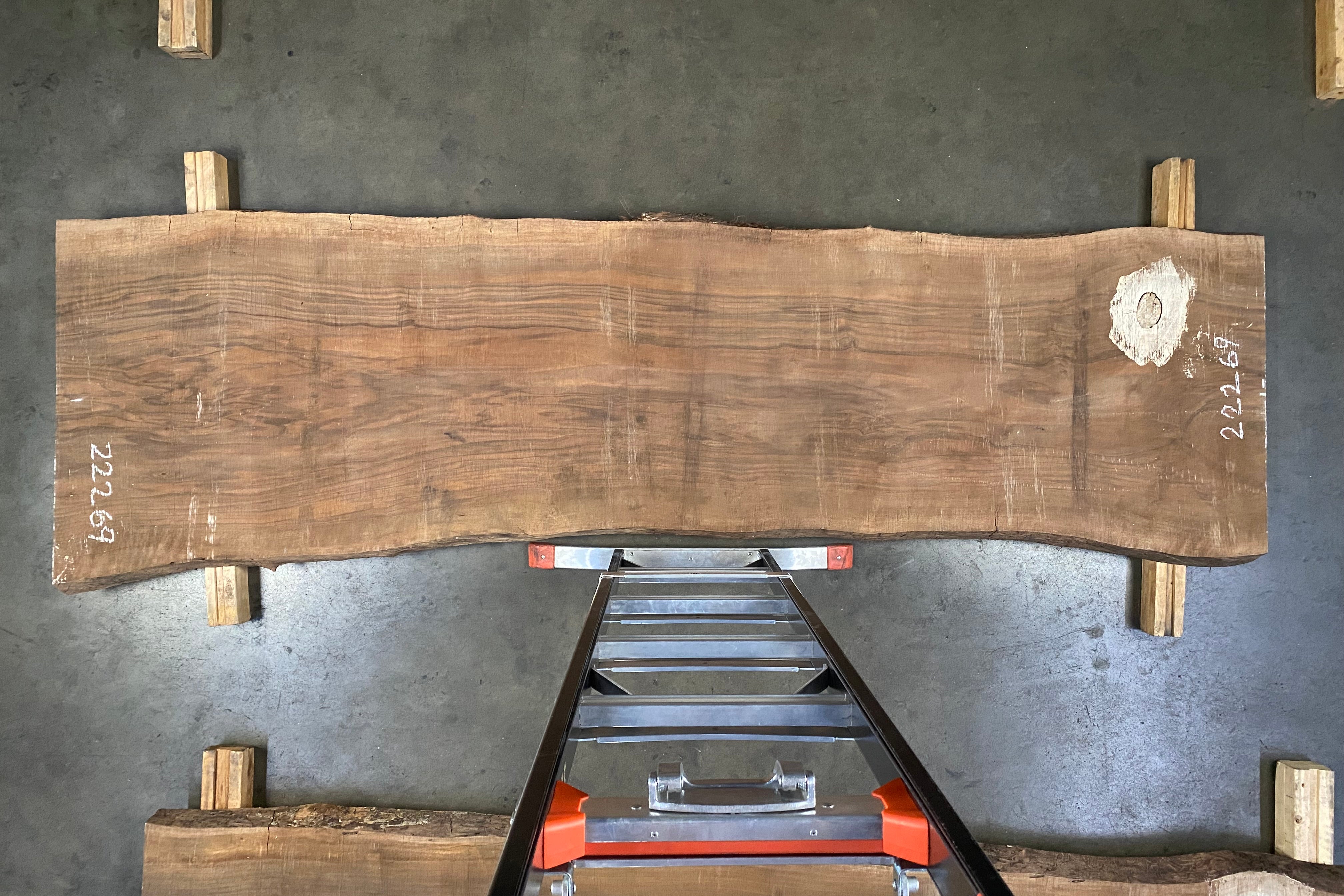 Bookmatched wood slabs are made by joining two slabs together and lining up their surfaces so that the grain of the wood reflects along a middle line. Usually, these pieces are cut from the same piece of wood. What makes the bookmatch effect more valuable is the variance from each half to the other, and the better the bookmatch, the more impressive it looks.