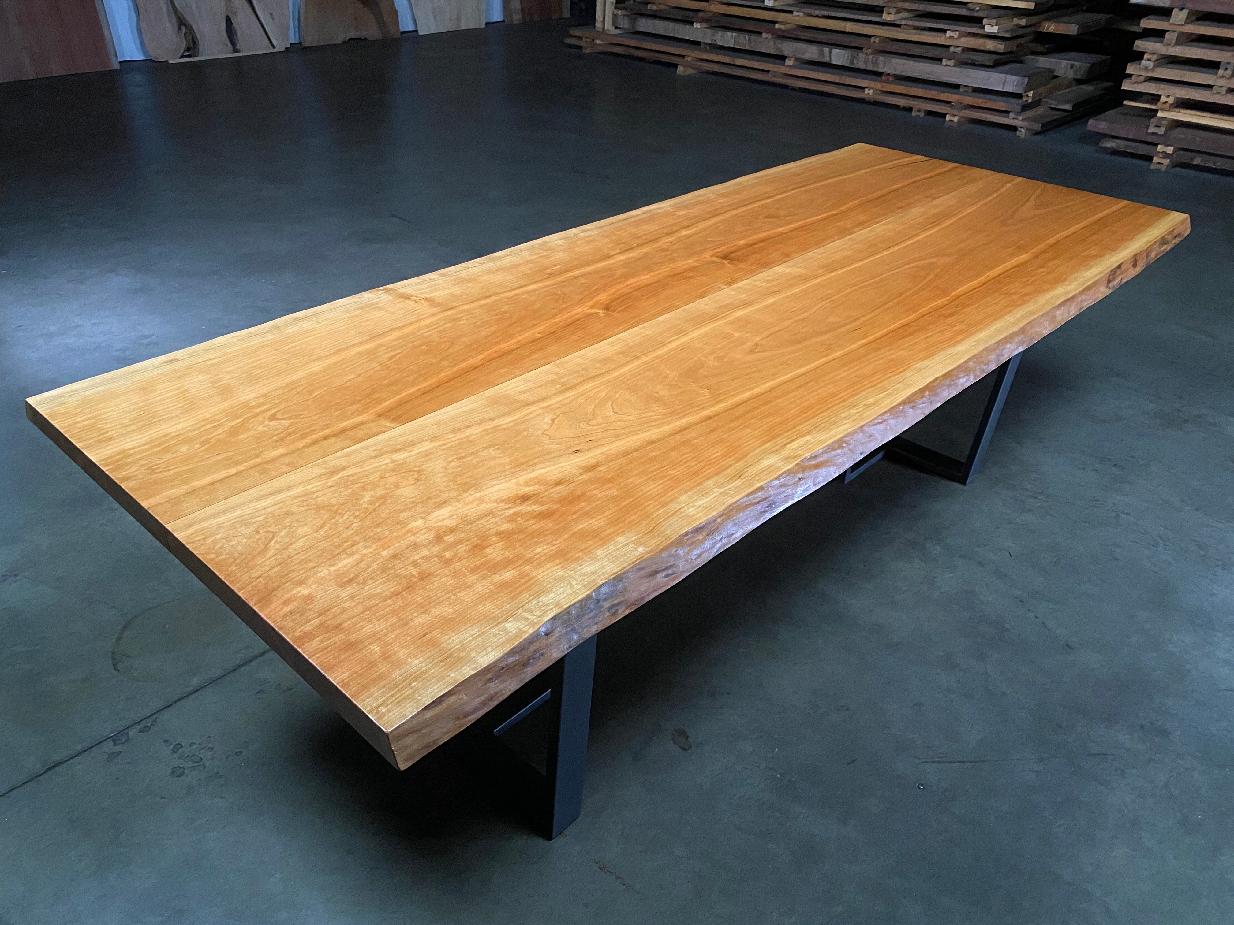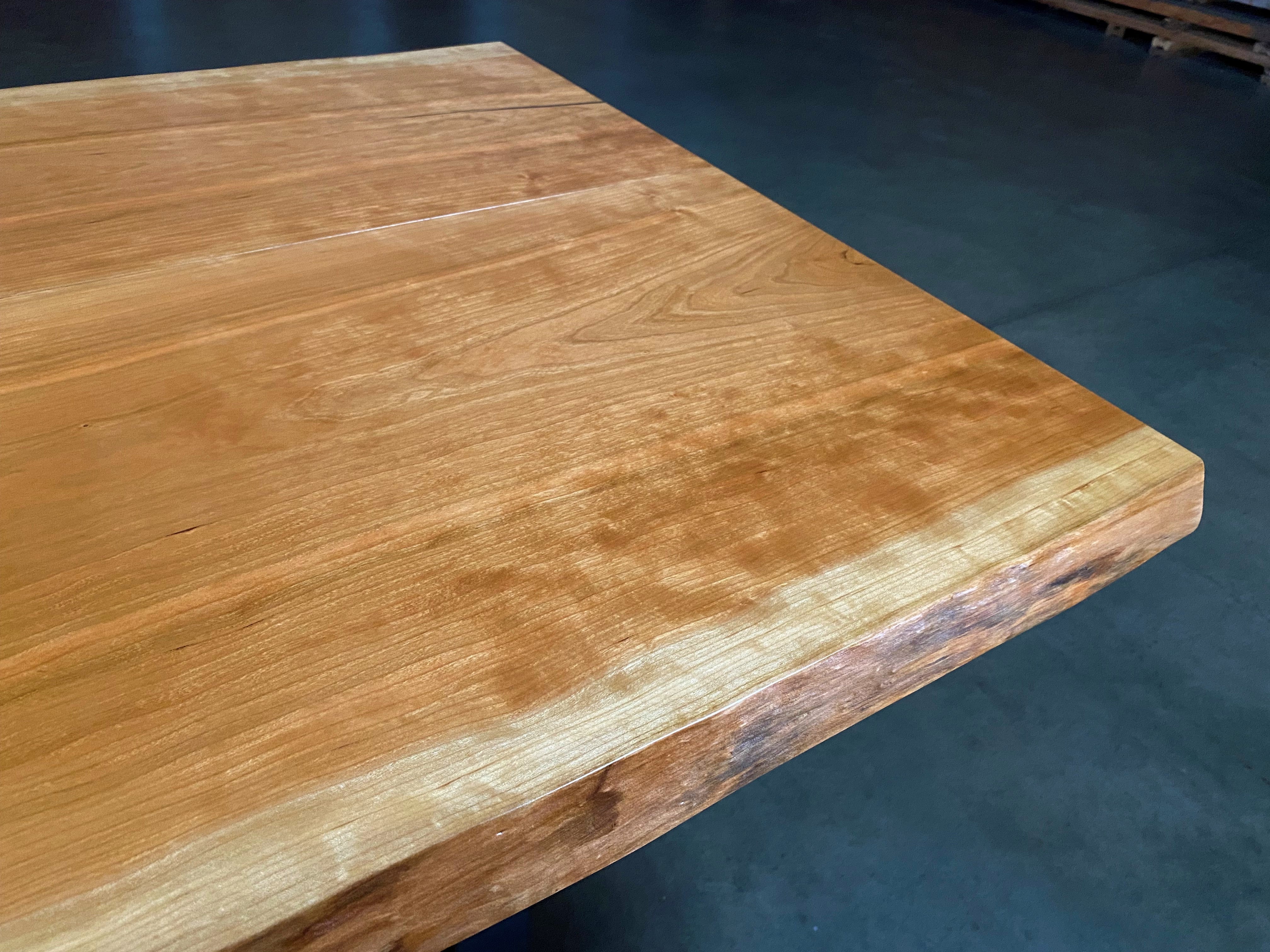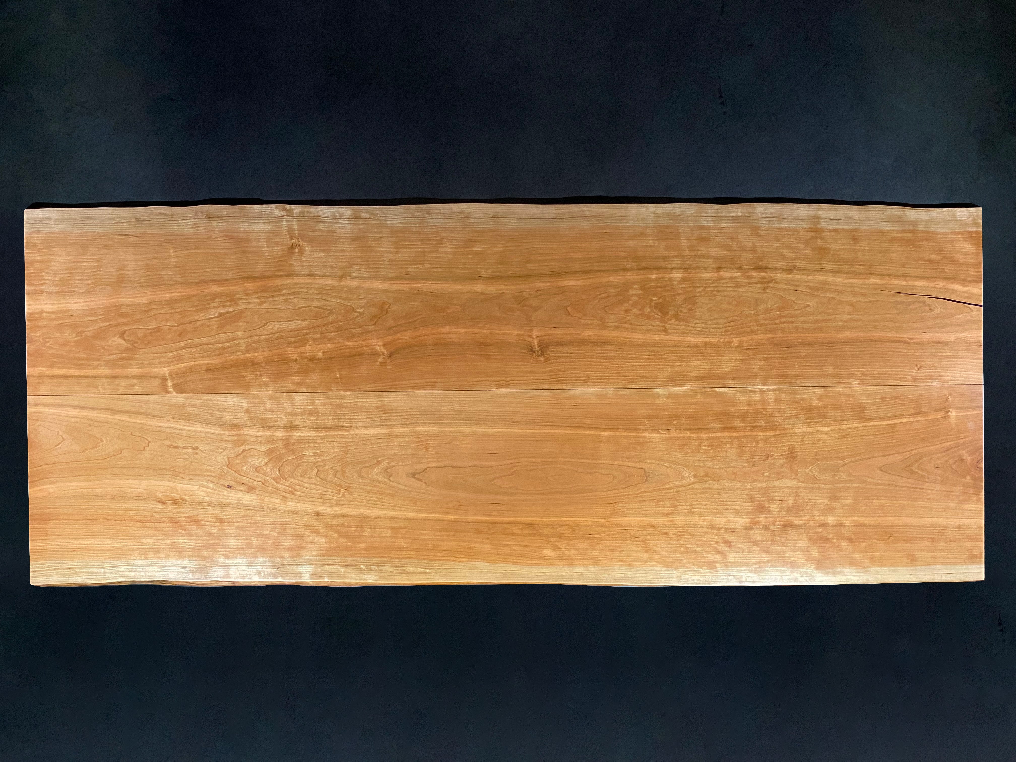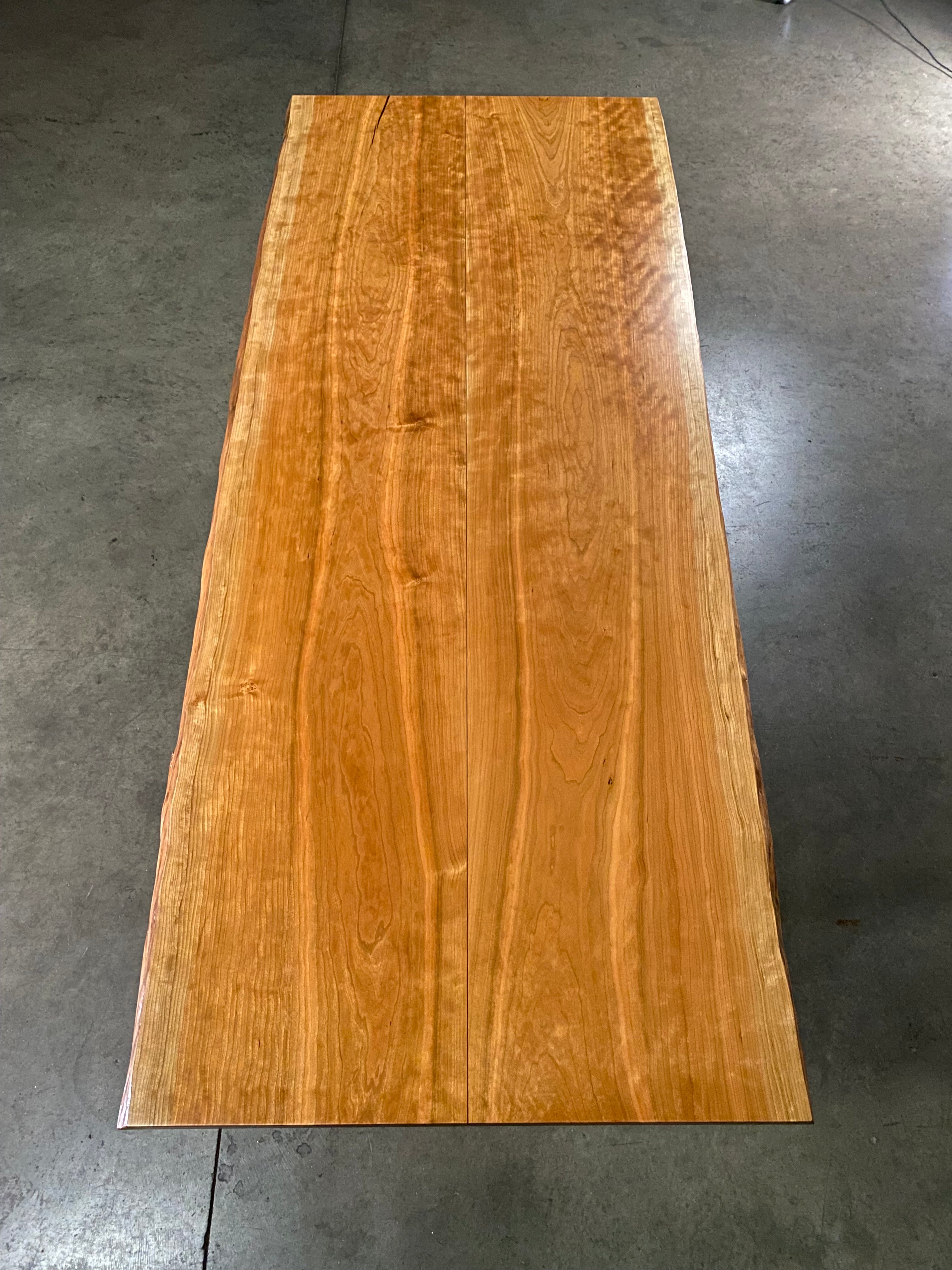 - Description: Two log mate slabs with center reveal. Square cut ends with natural live edges. Classic figured cherry with some ripple and ribbon.
