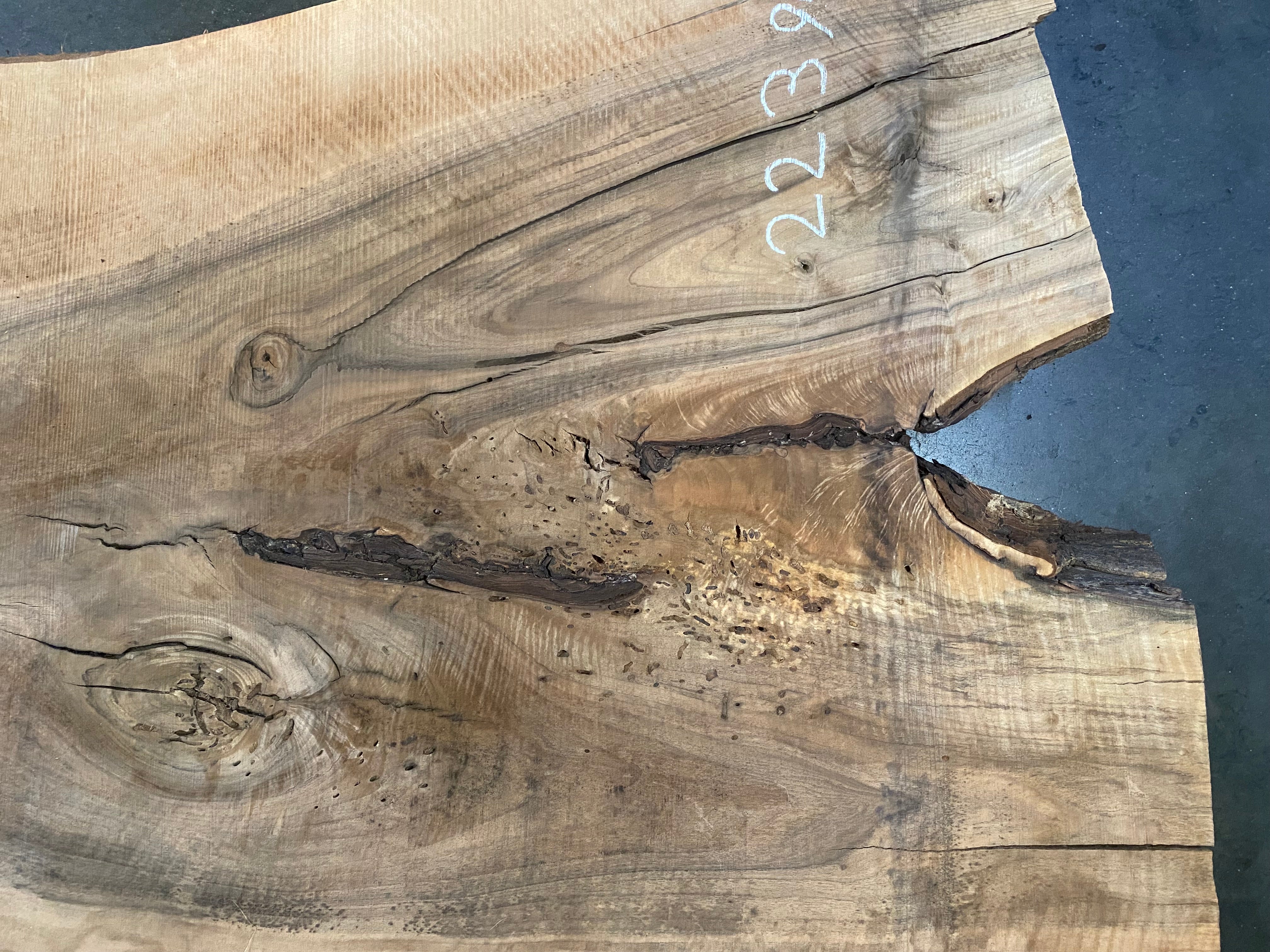 ● Rough sawn, end splits, bark inclusion, open knots, bug holes, figure