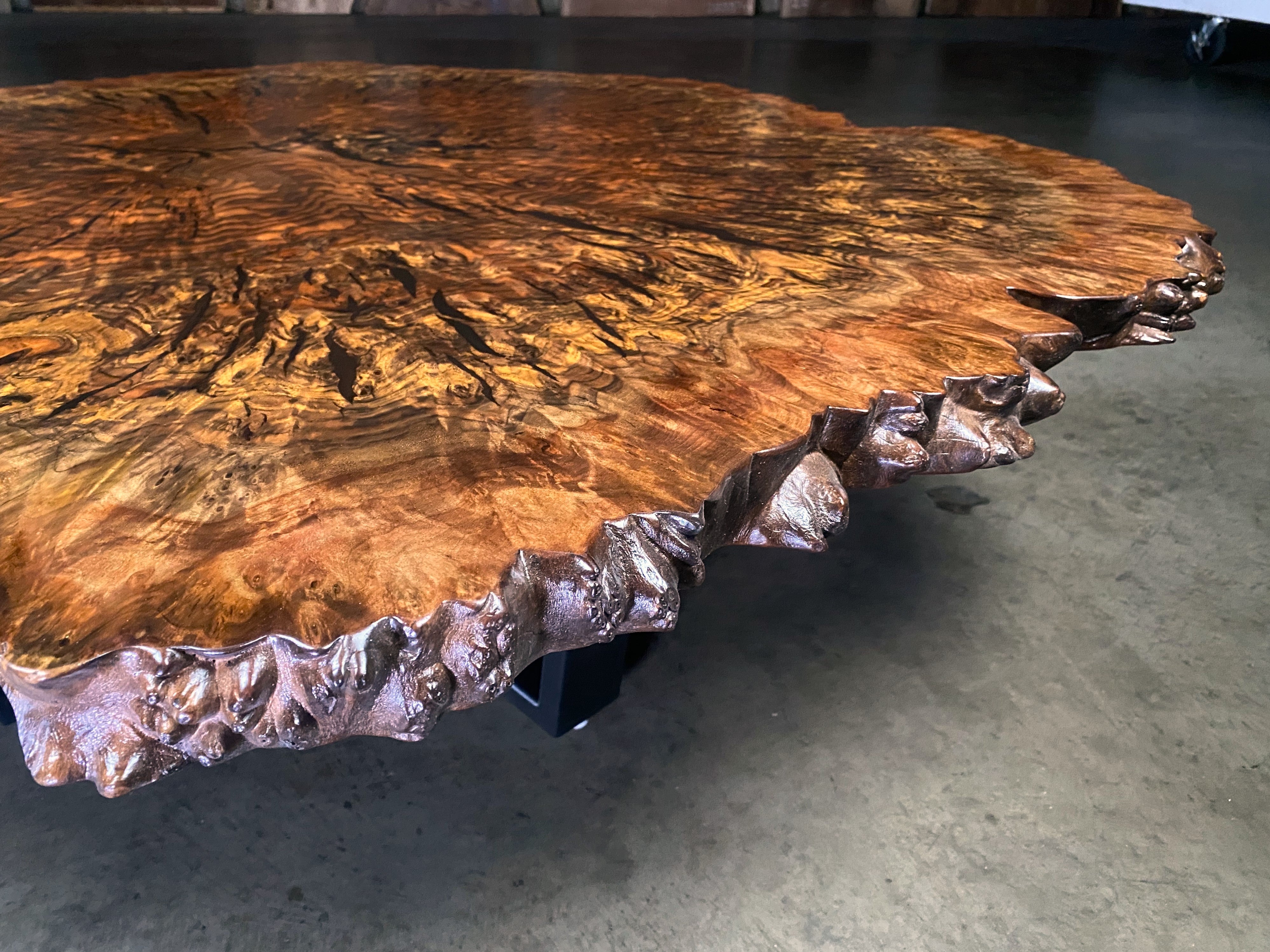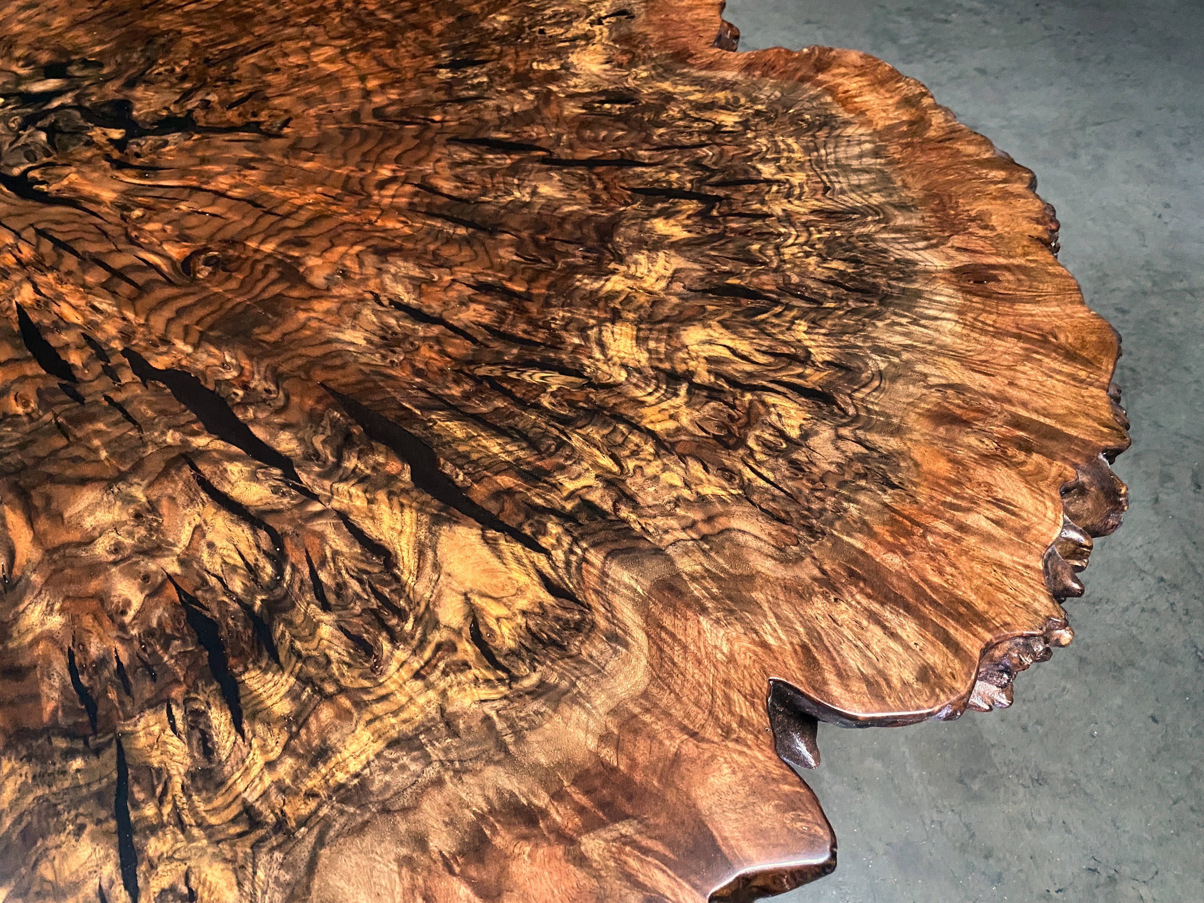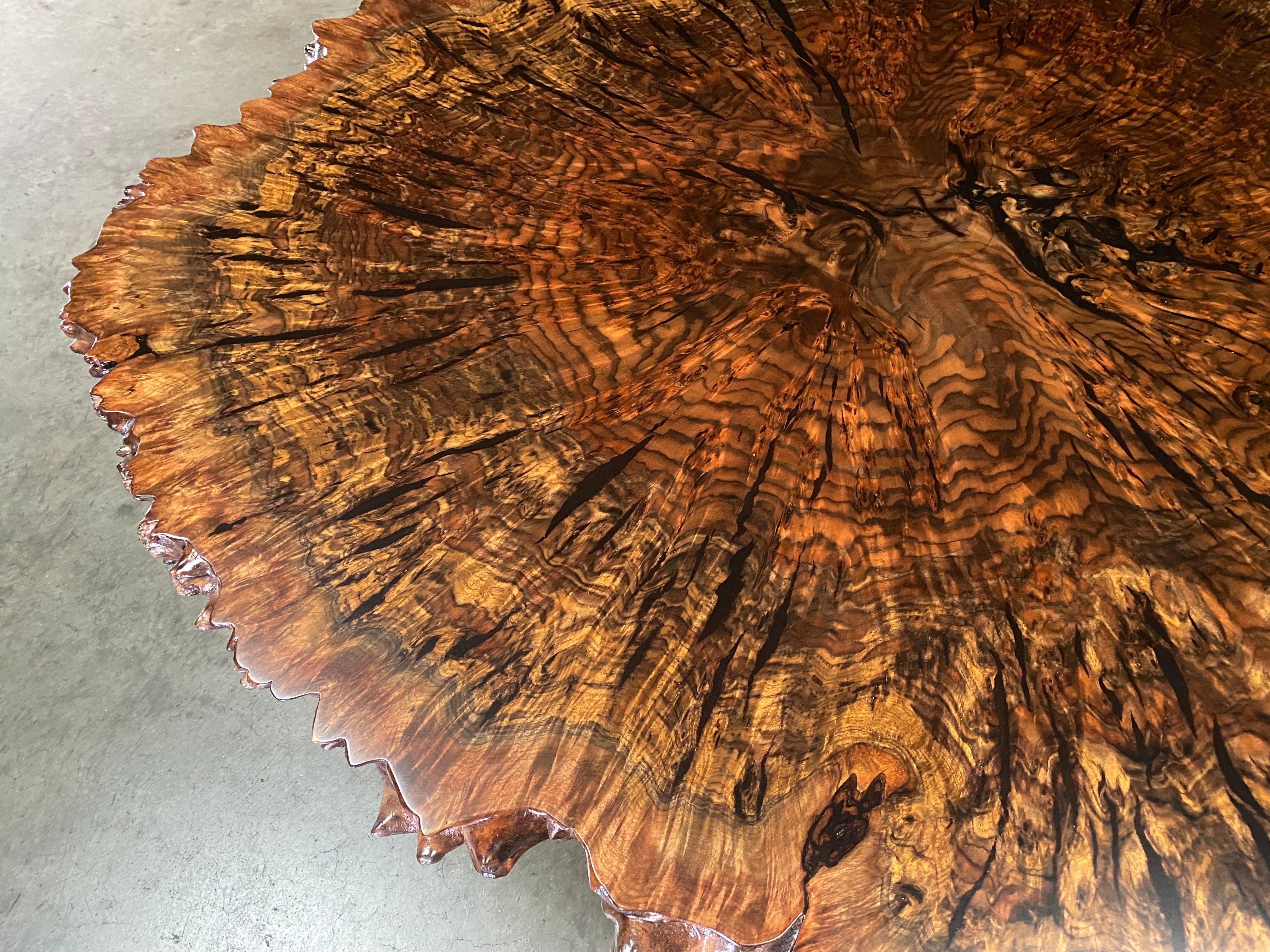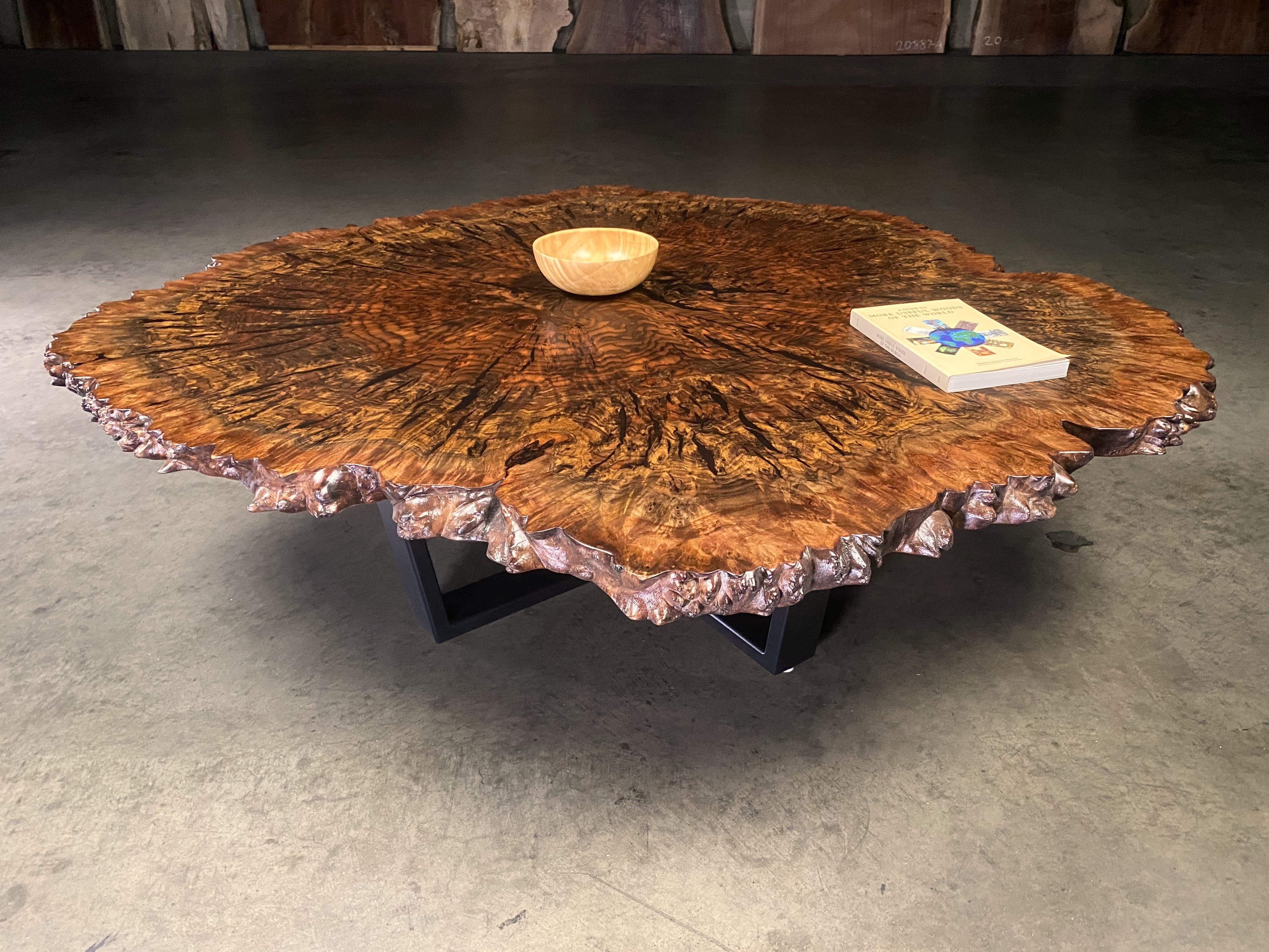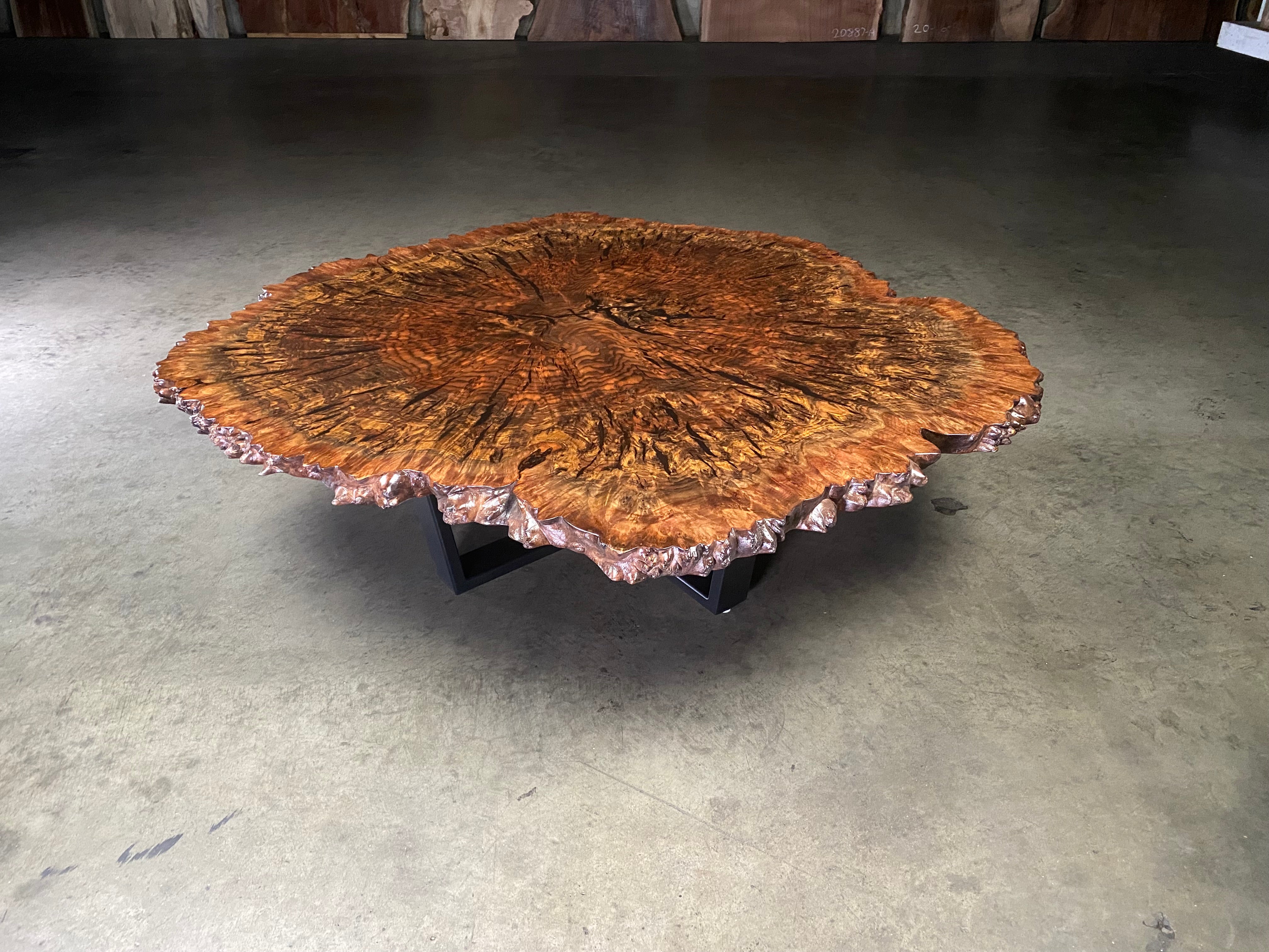 - Wood: Reclaimed Claro walnut orchard tree -"cookie" - cut through and through the trunk