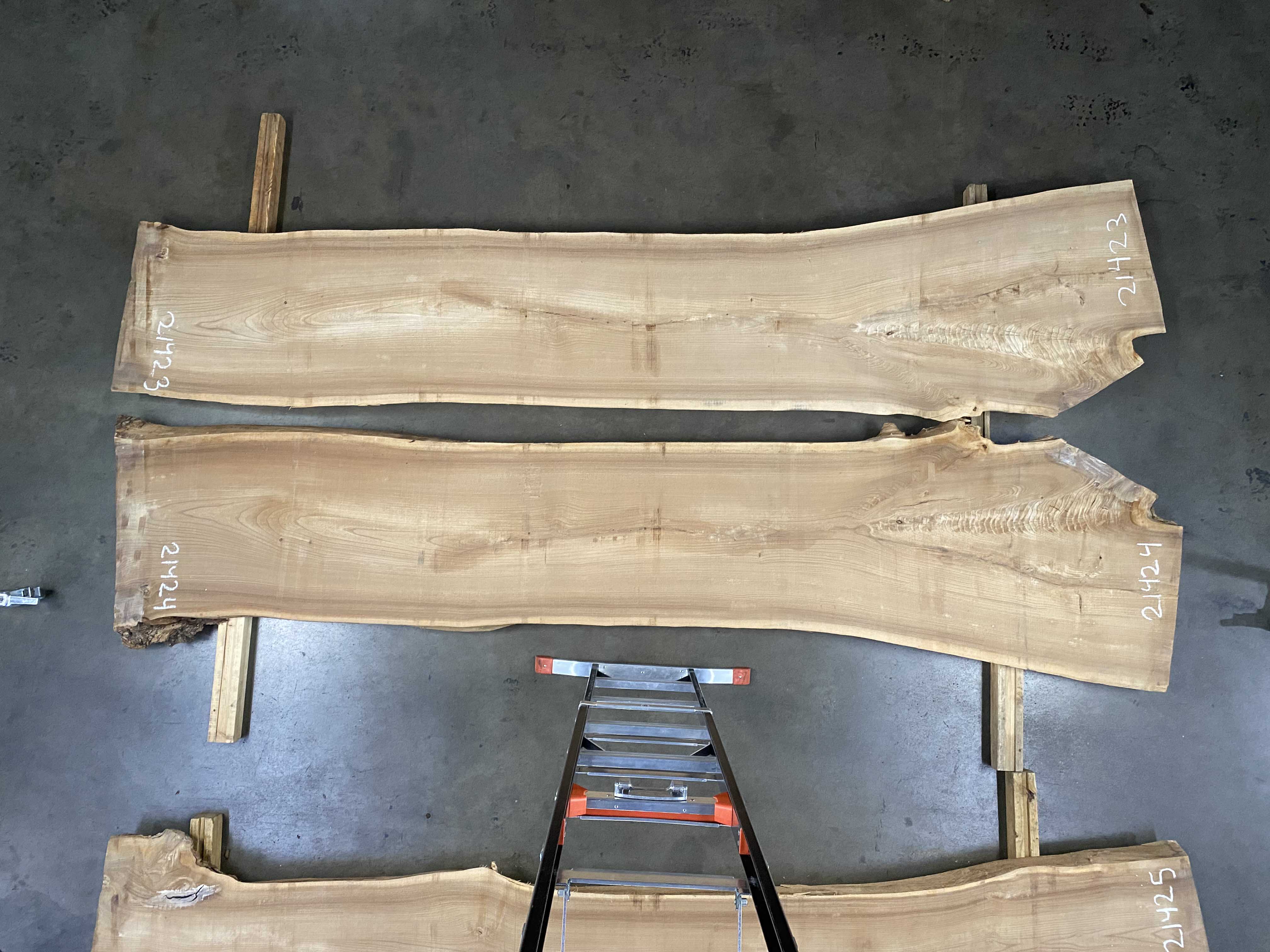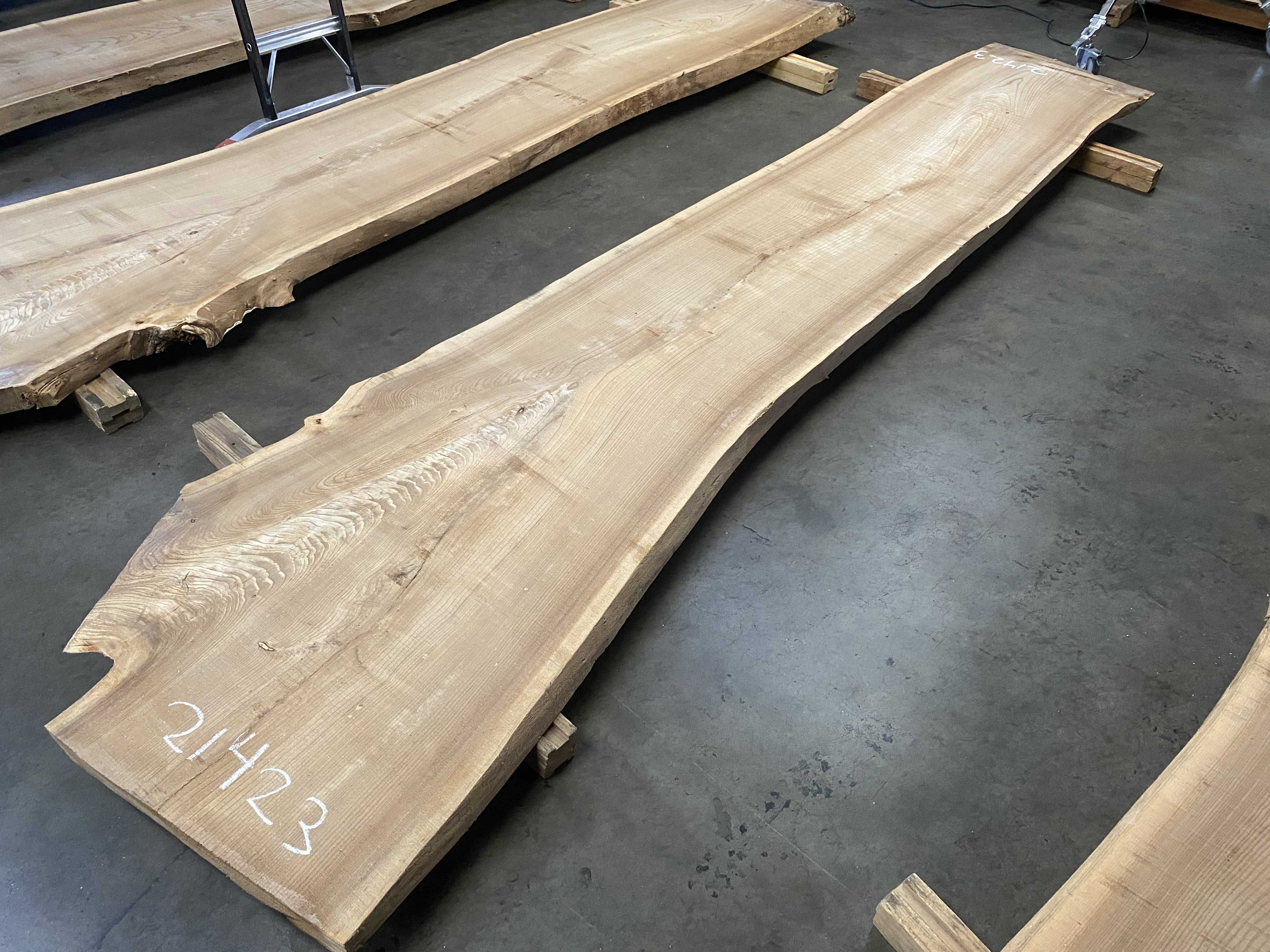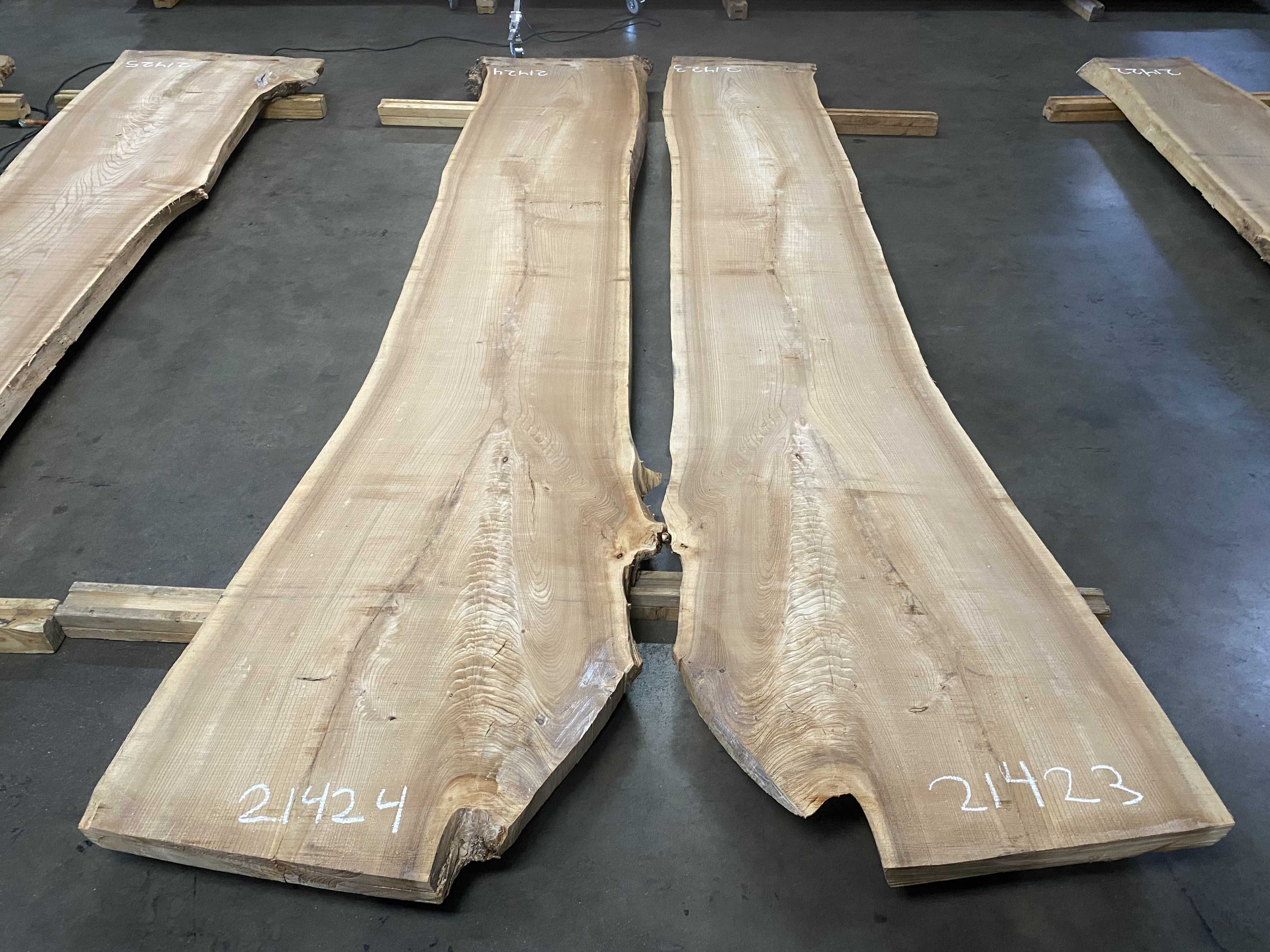 - Rough sawn, thickness drops to 2.25, slight cup & twist, surface checks