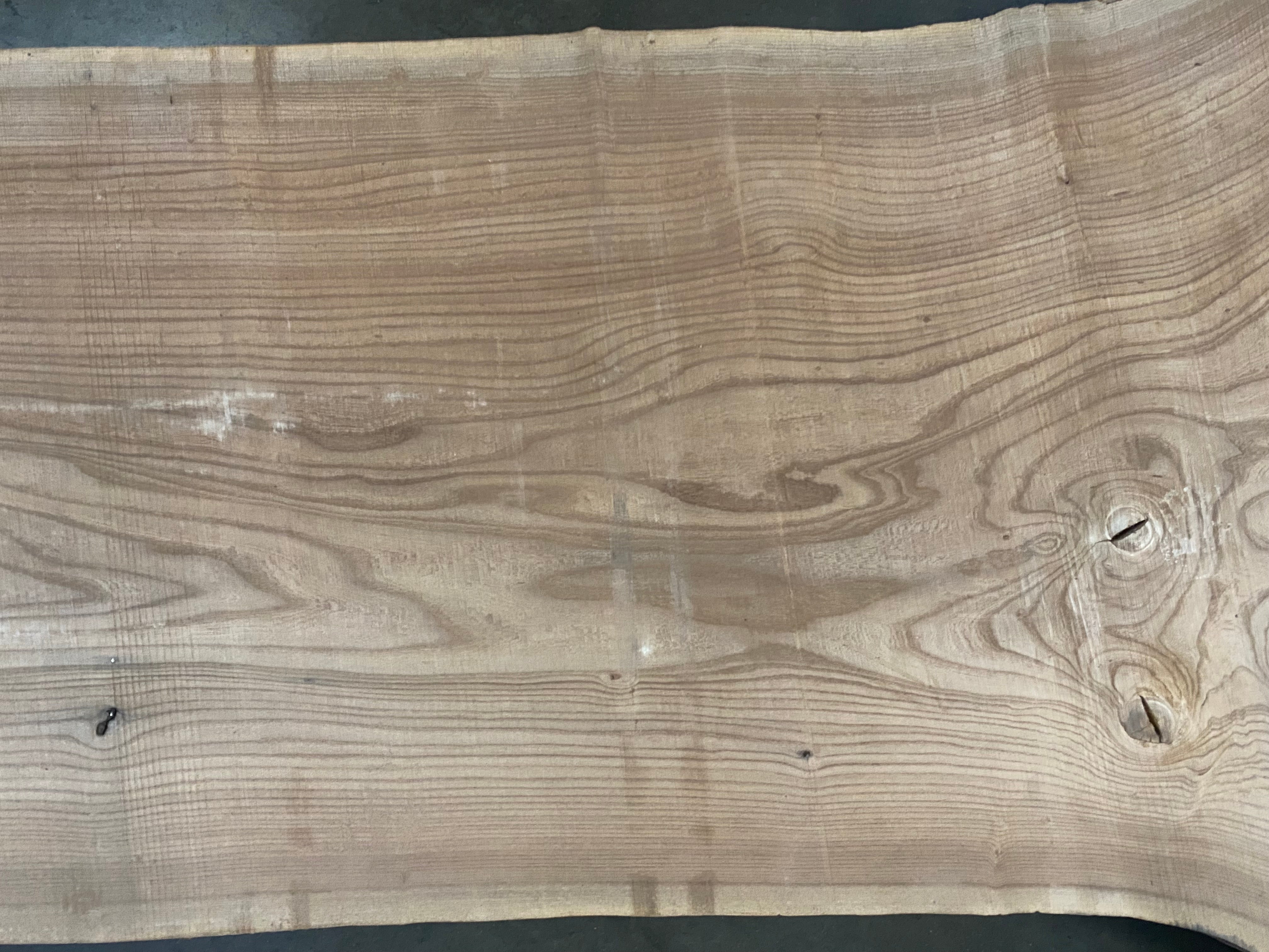 - Rough sawn, 32" end split, open knots, large surface voids, surface checks, hardware