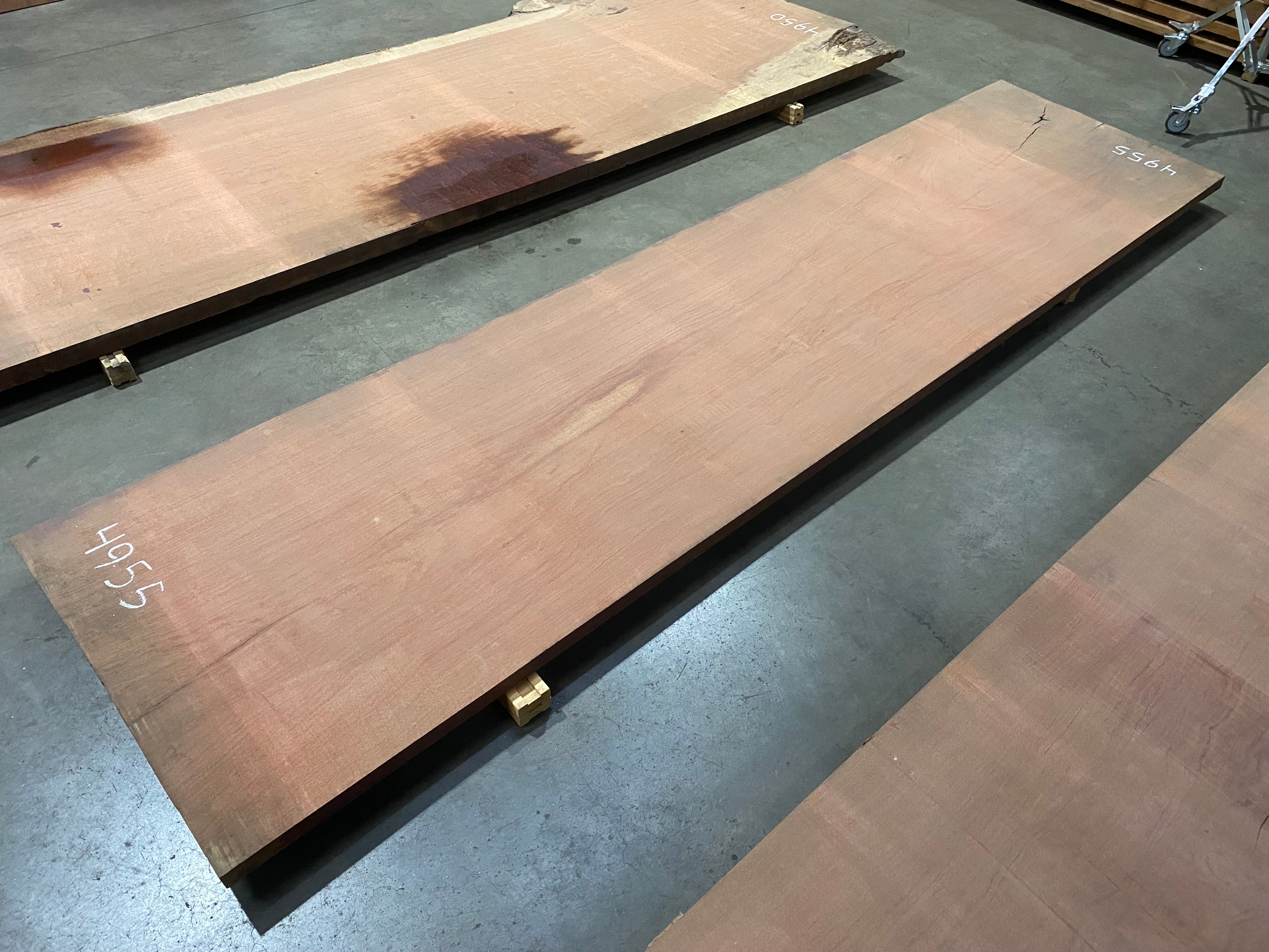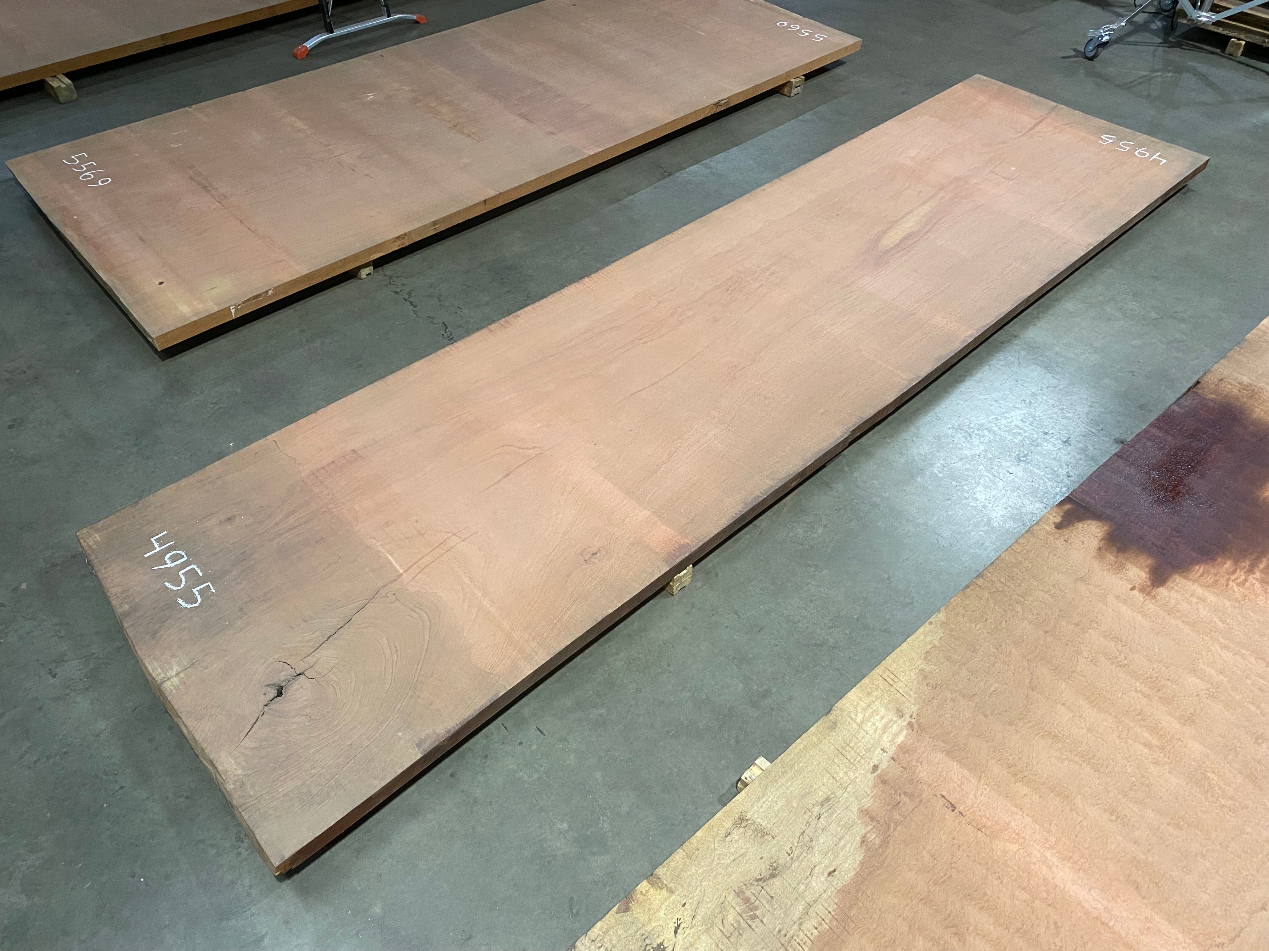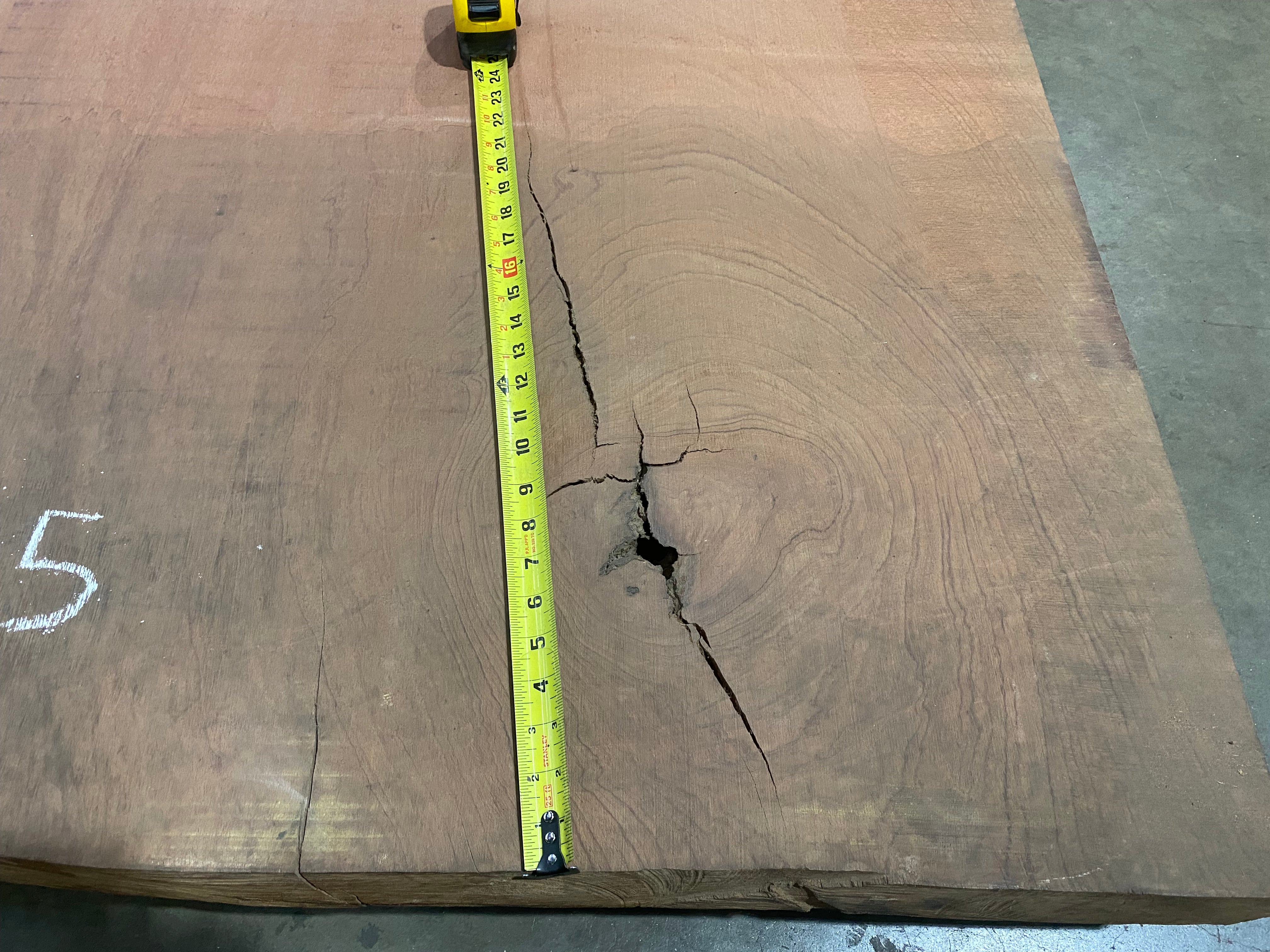 - Small area of discoloration, minor end checks and surface checks, small open void at one end, figured