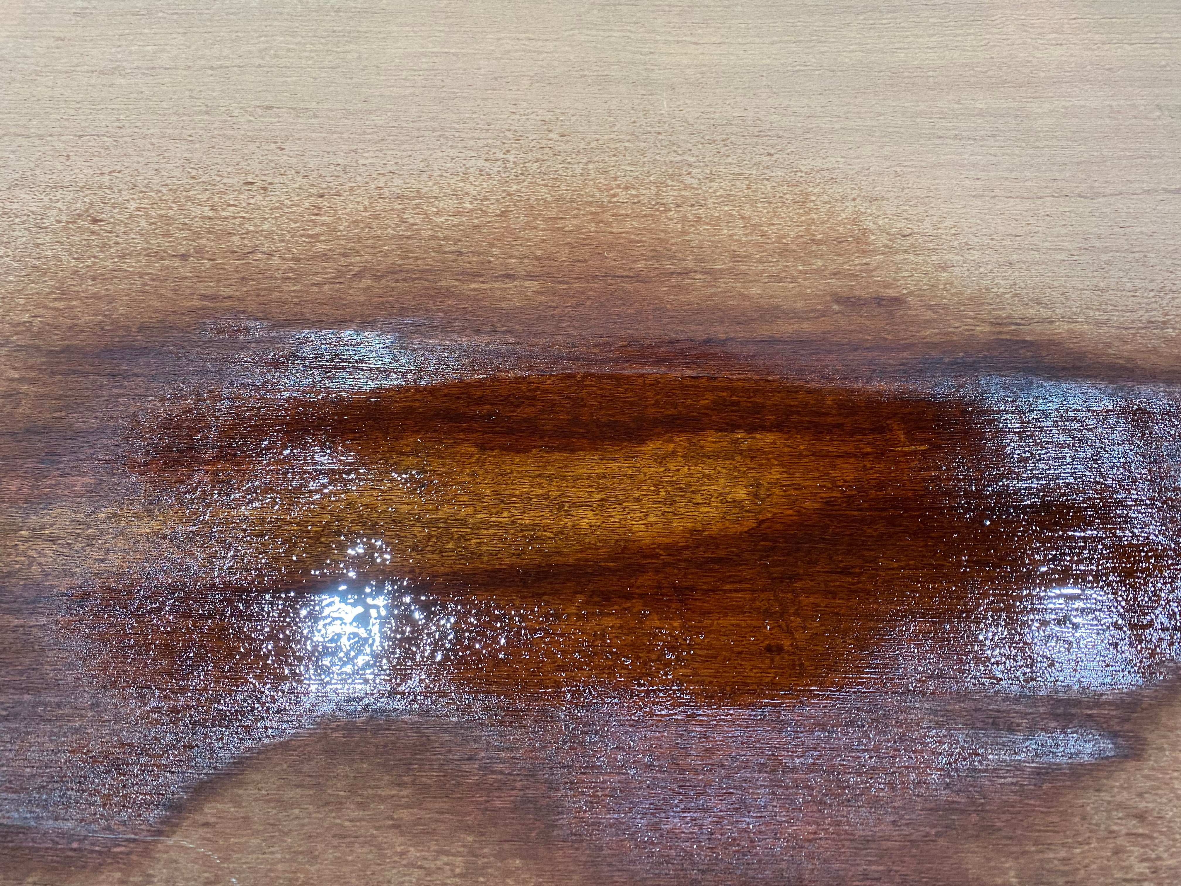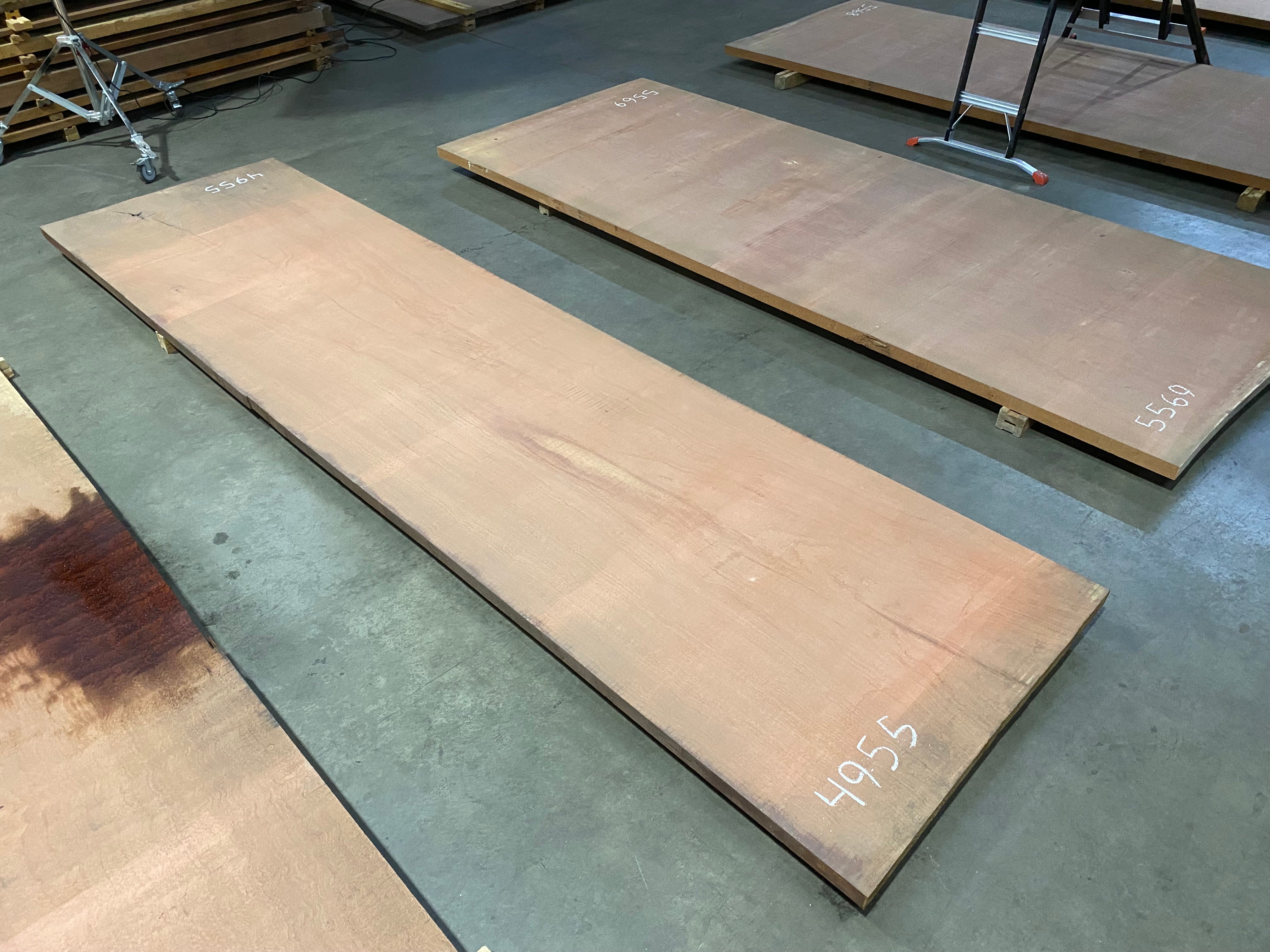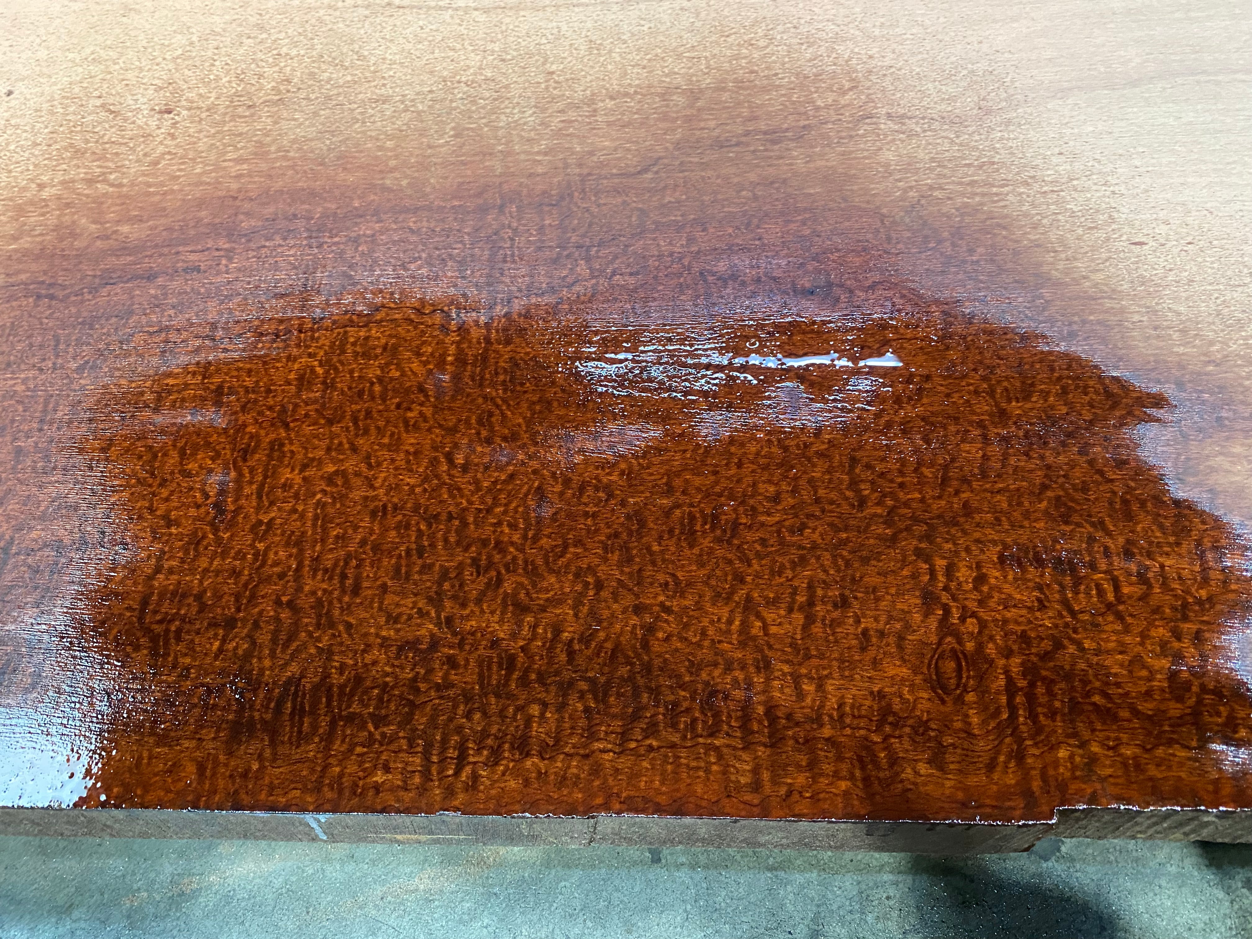 - Small area of discoloration, minor end checks and surface checks, small open void at one end, figured