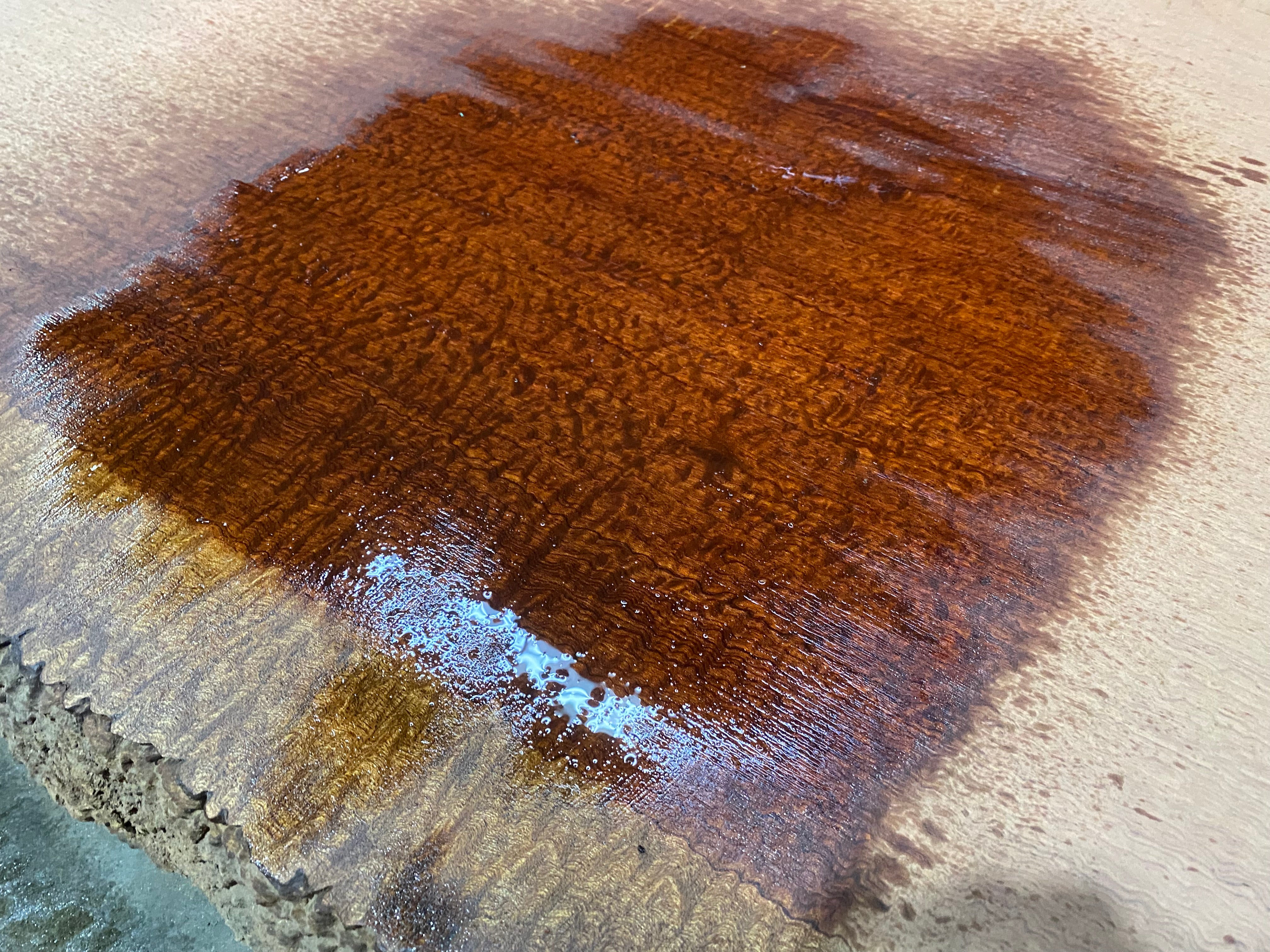 - Single live edge with minor banding damage, 42" & 22" end splits, figured