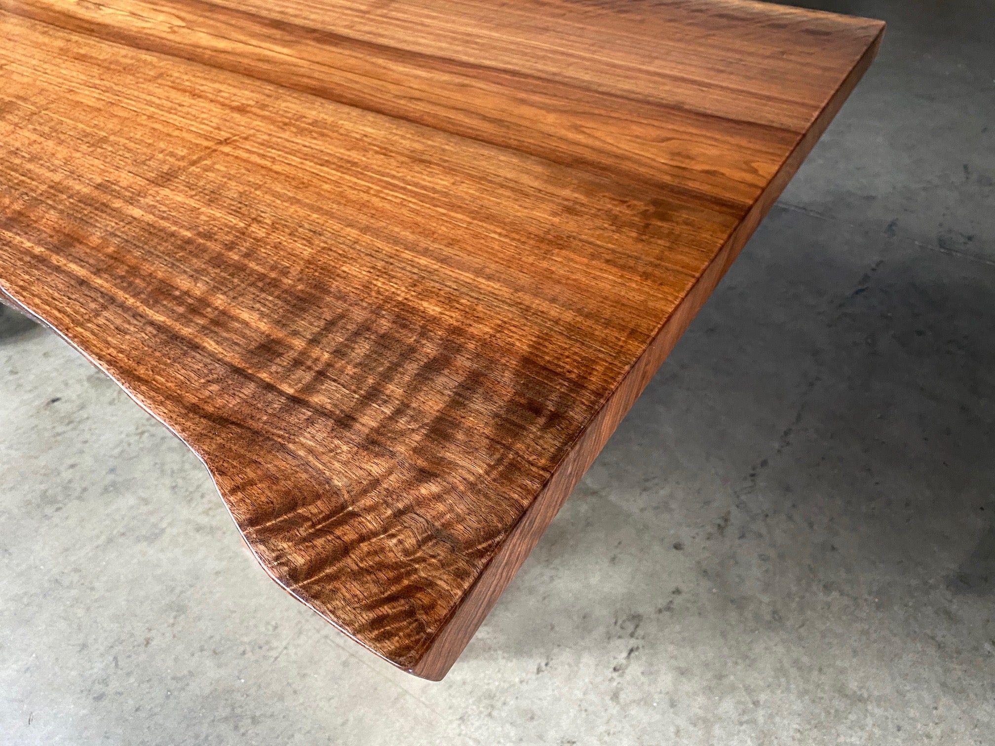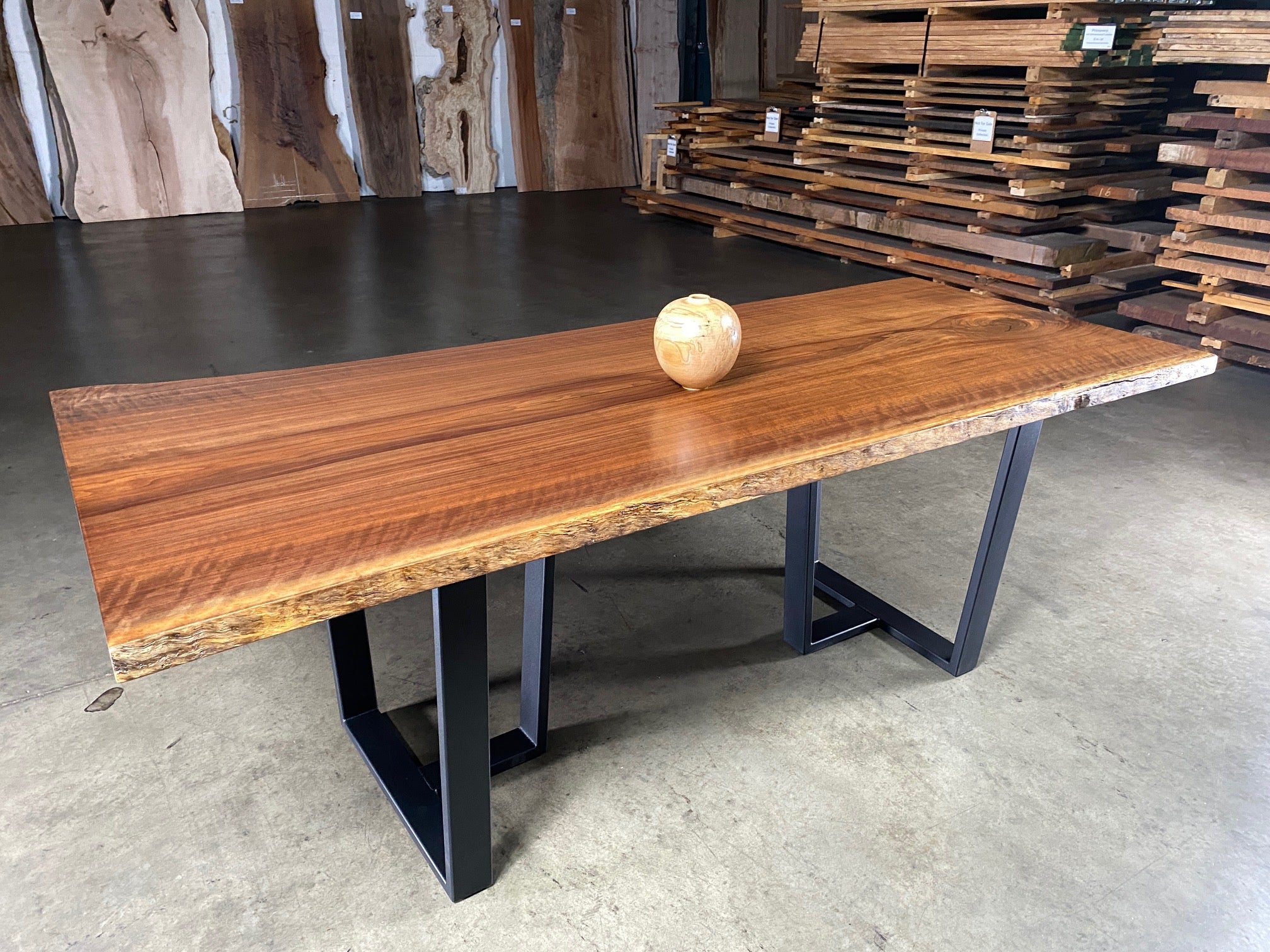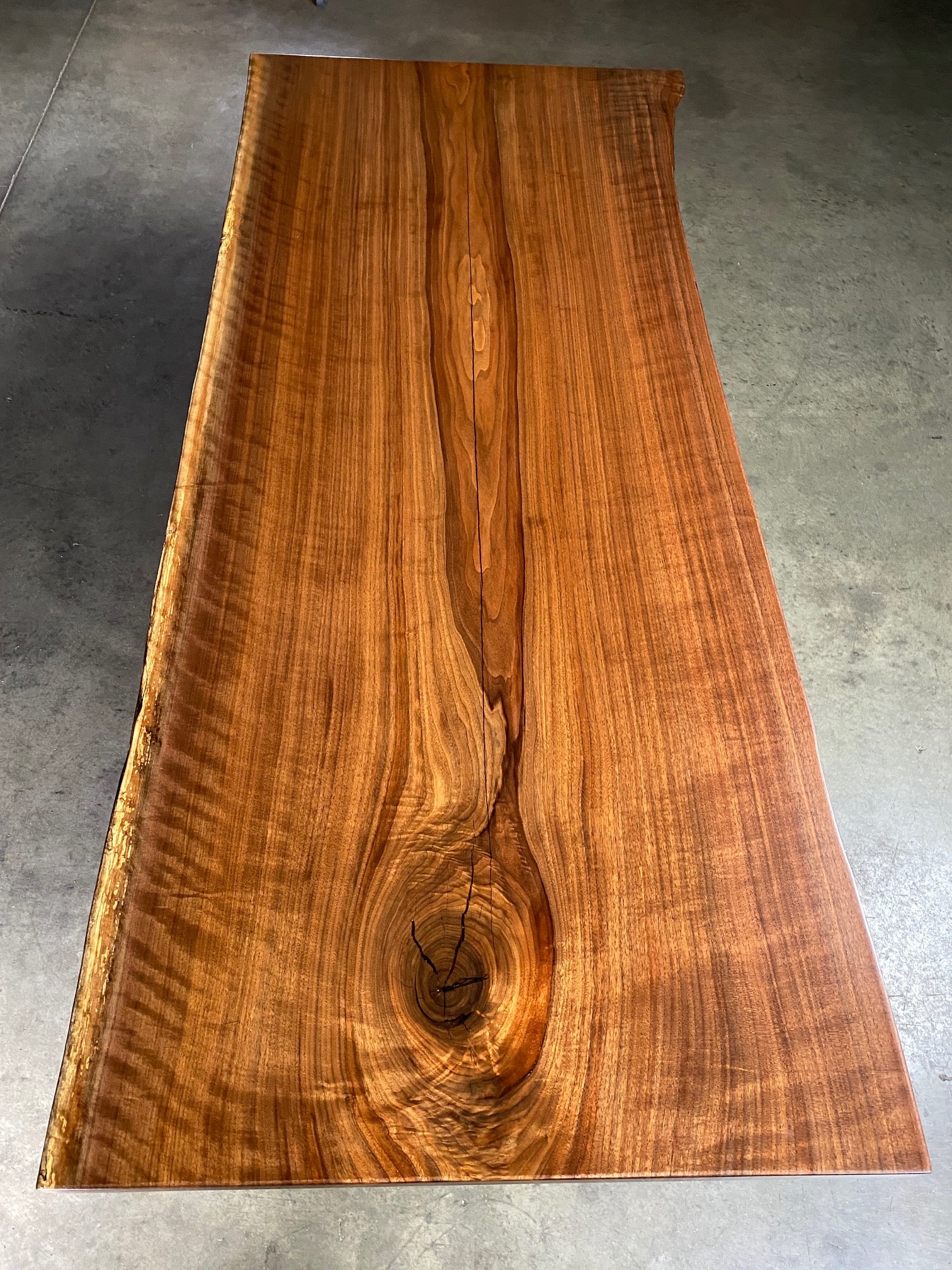 - Description: Small Dining Top - two live edges, one with no sapwood. Beautiful curly figured grain.