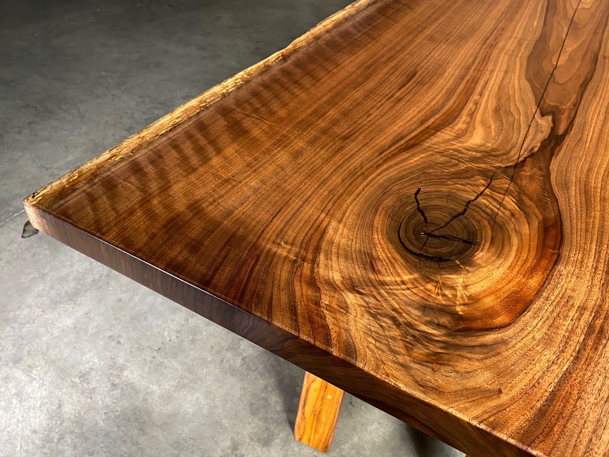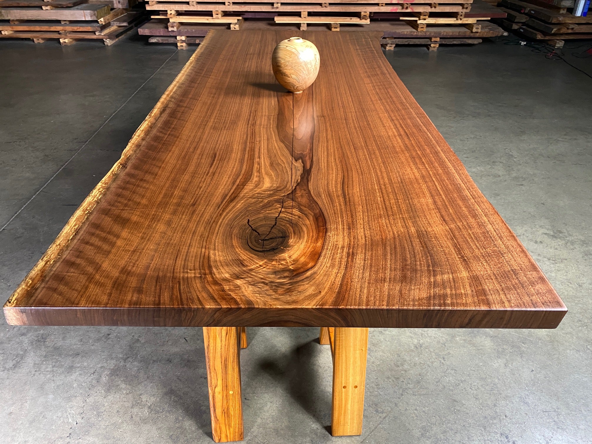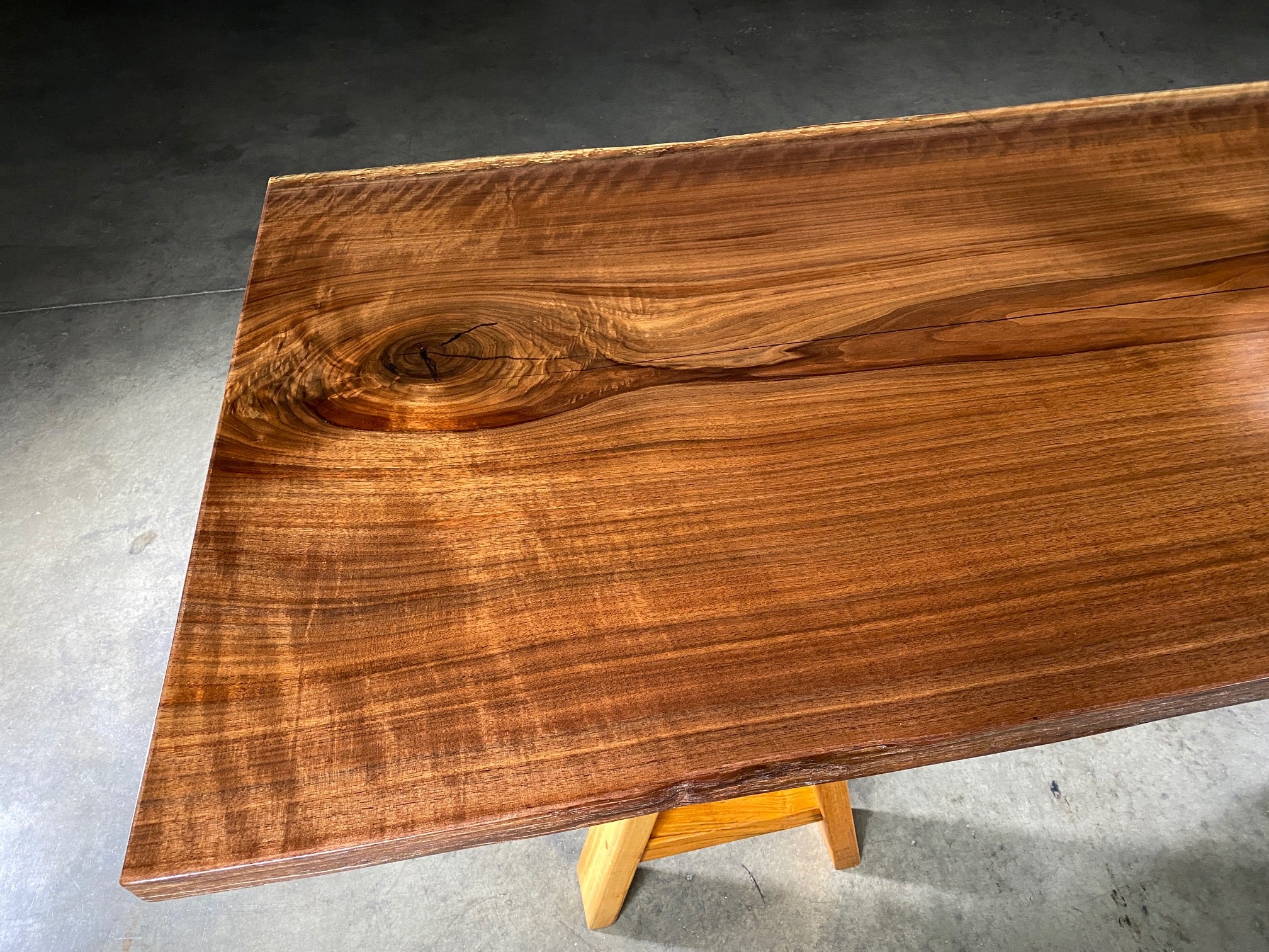 - Description: Small Dining Top - two live edges, one with no sapwood. Beautiful curly figured grain.