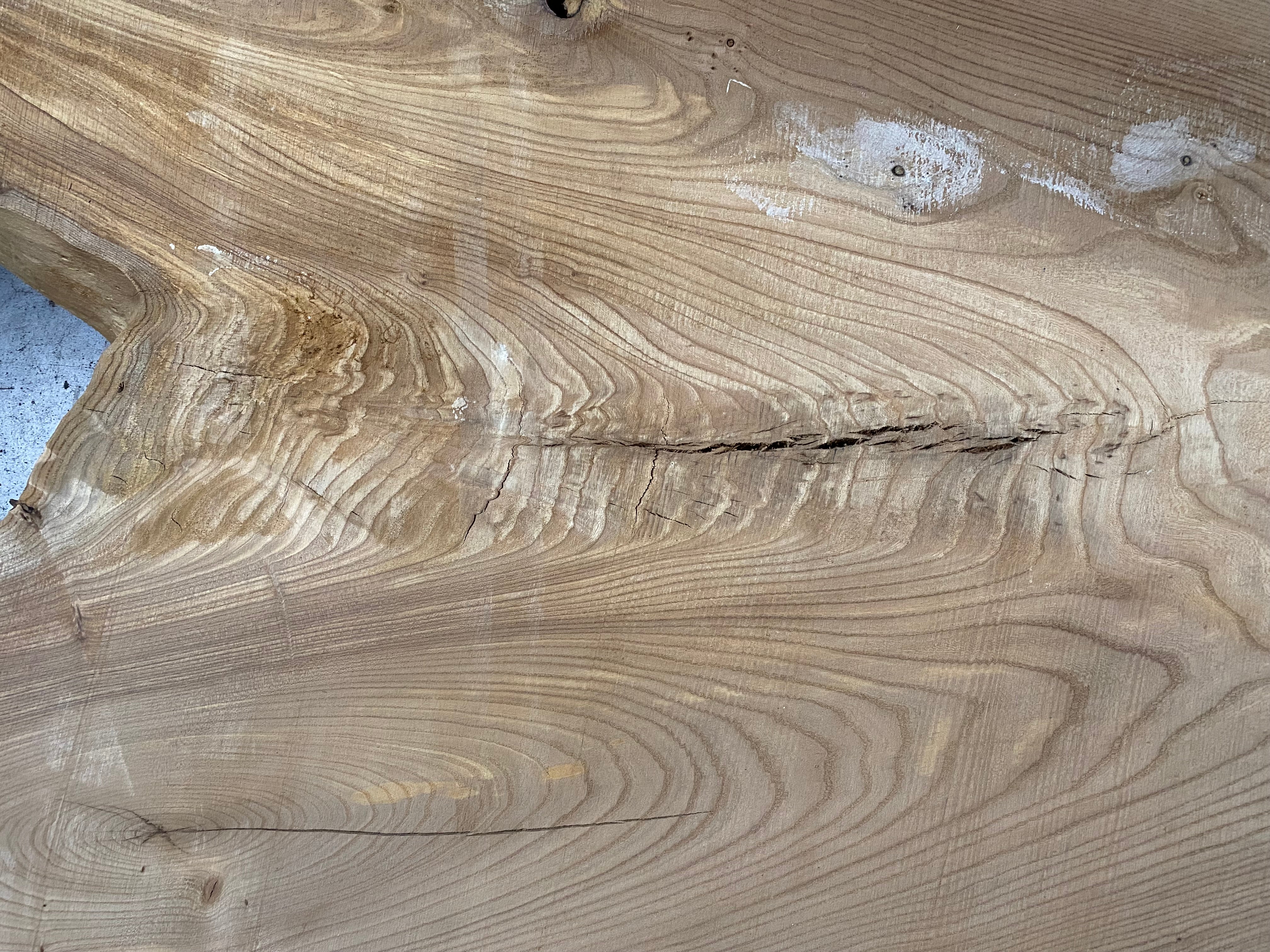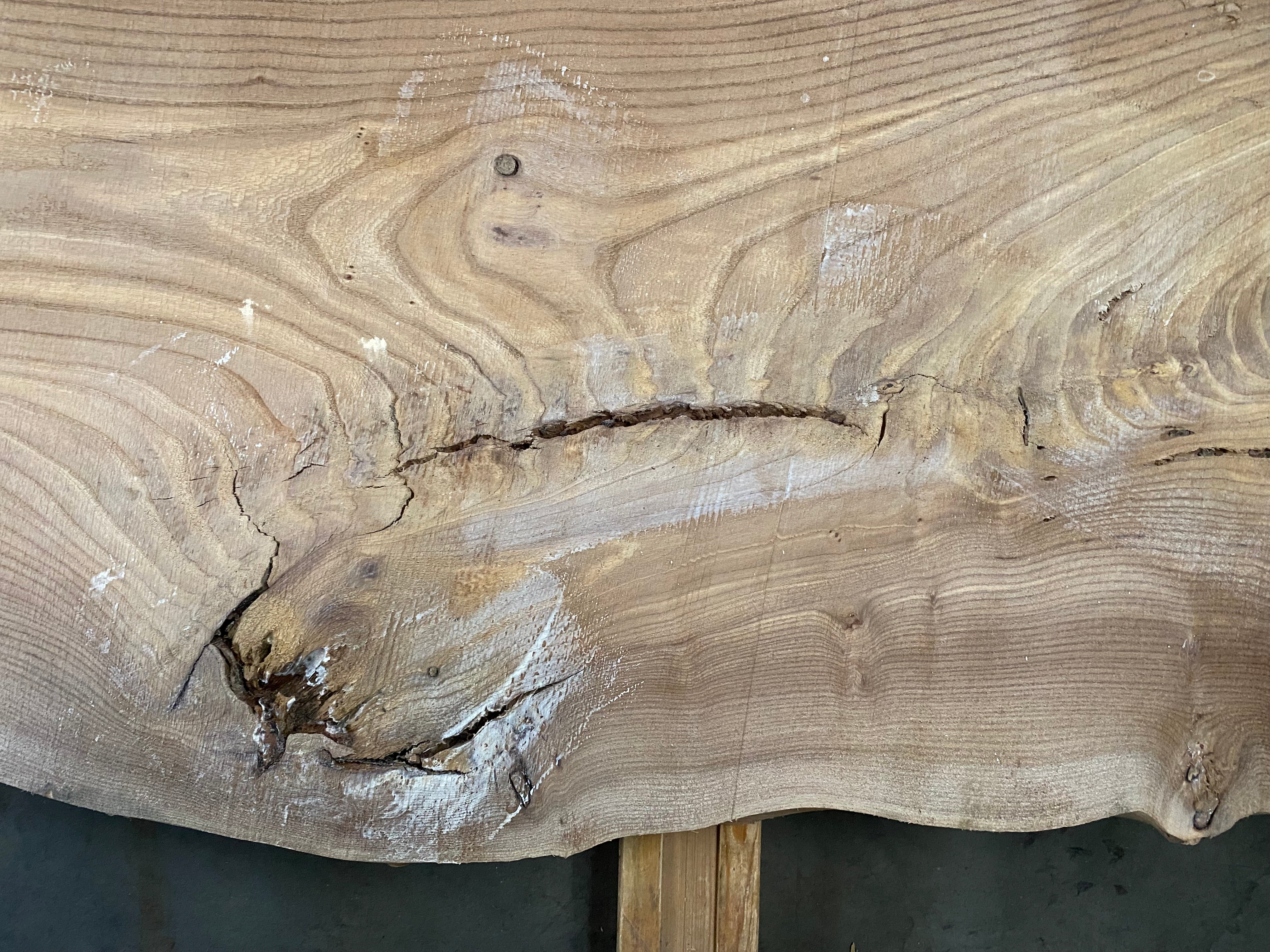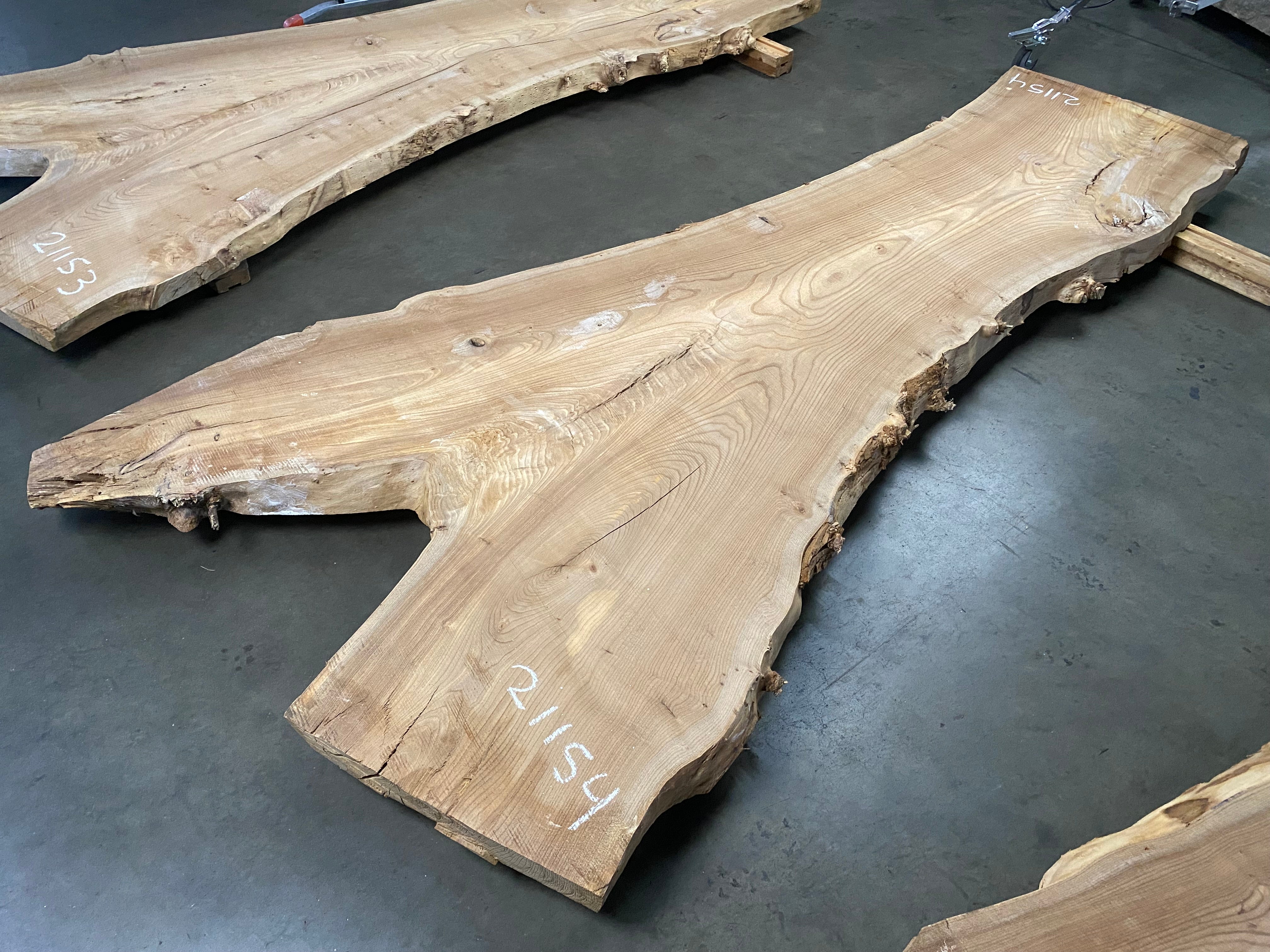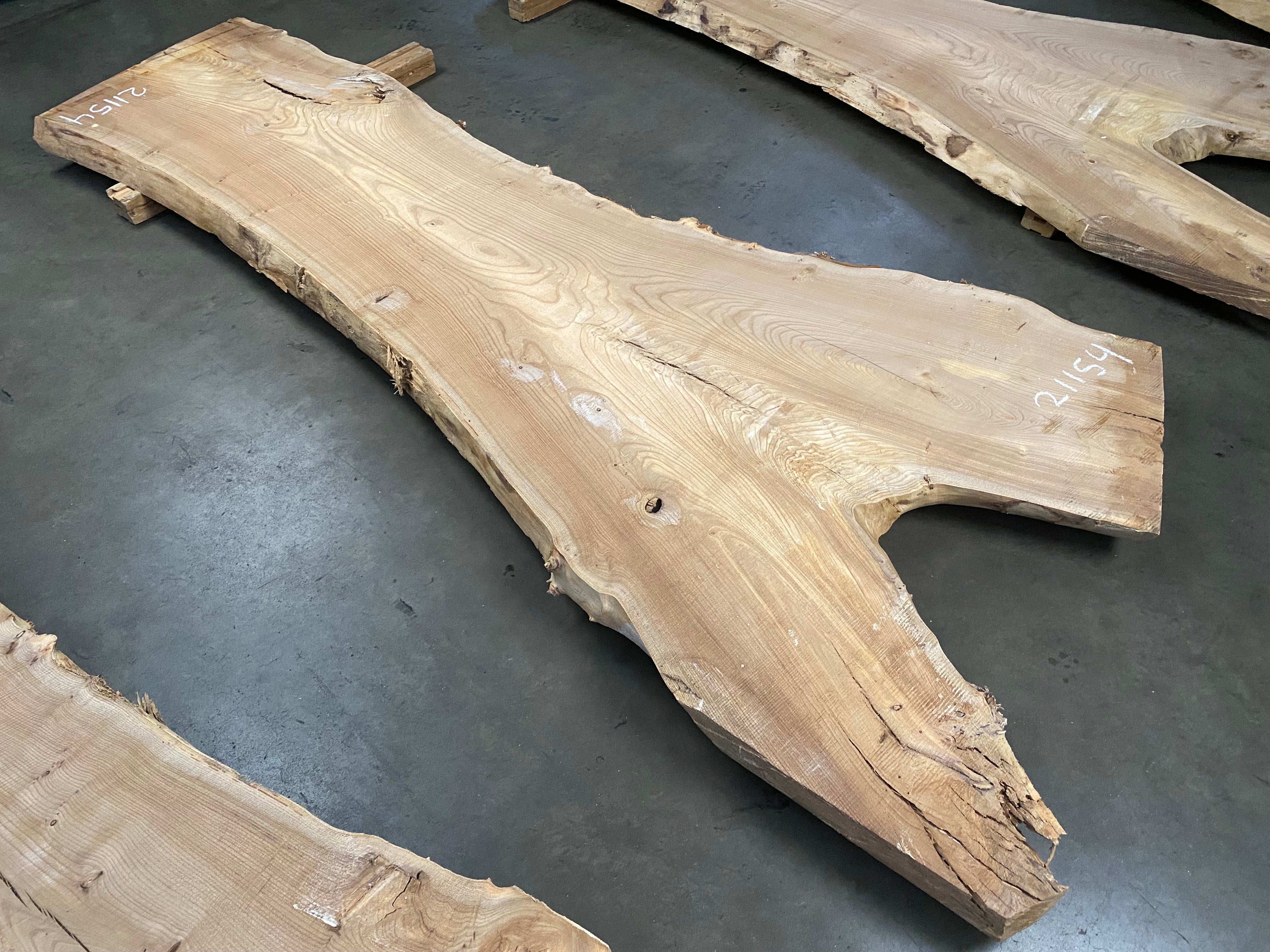 - Rough sawn, 96" to crotch, surface checks, minor edge damage, imbedded limb