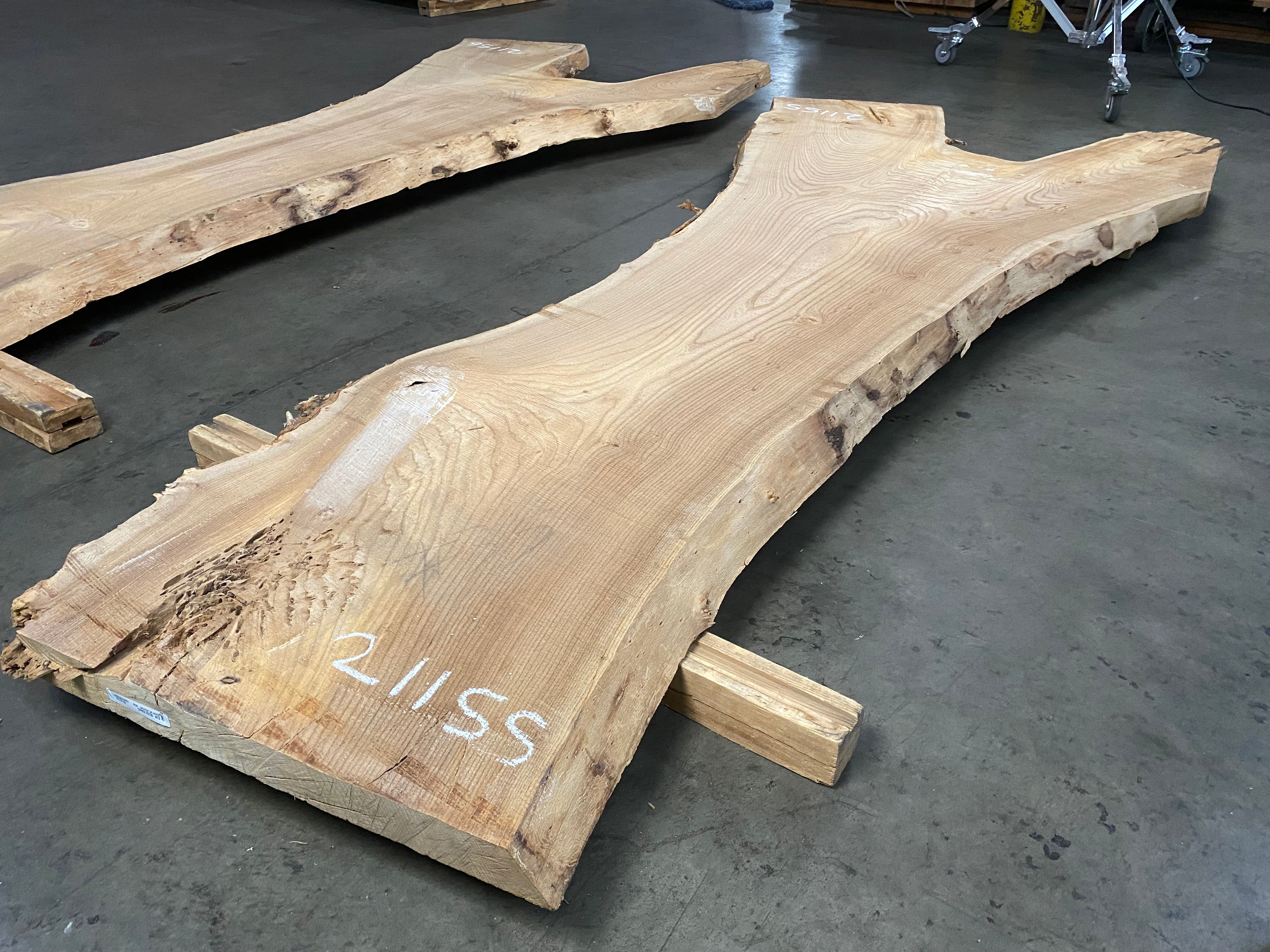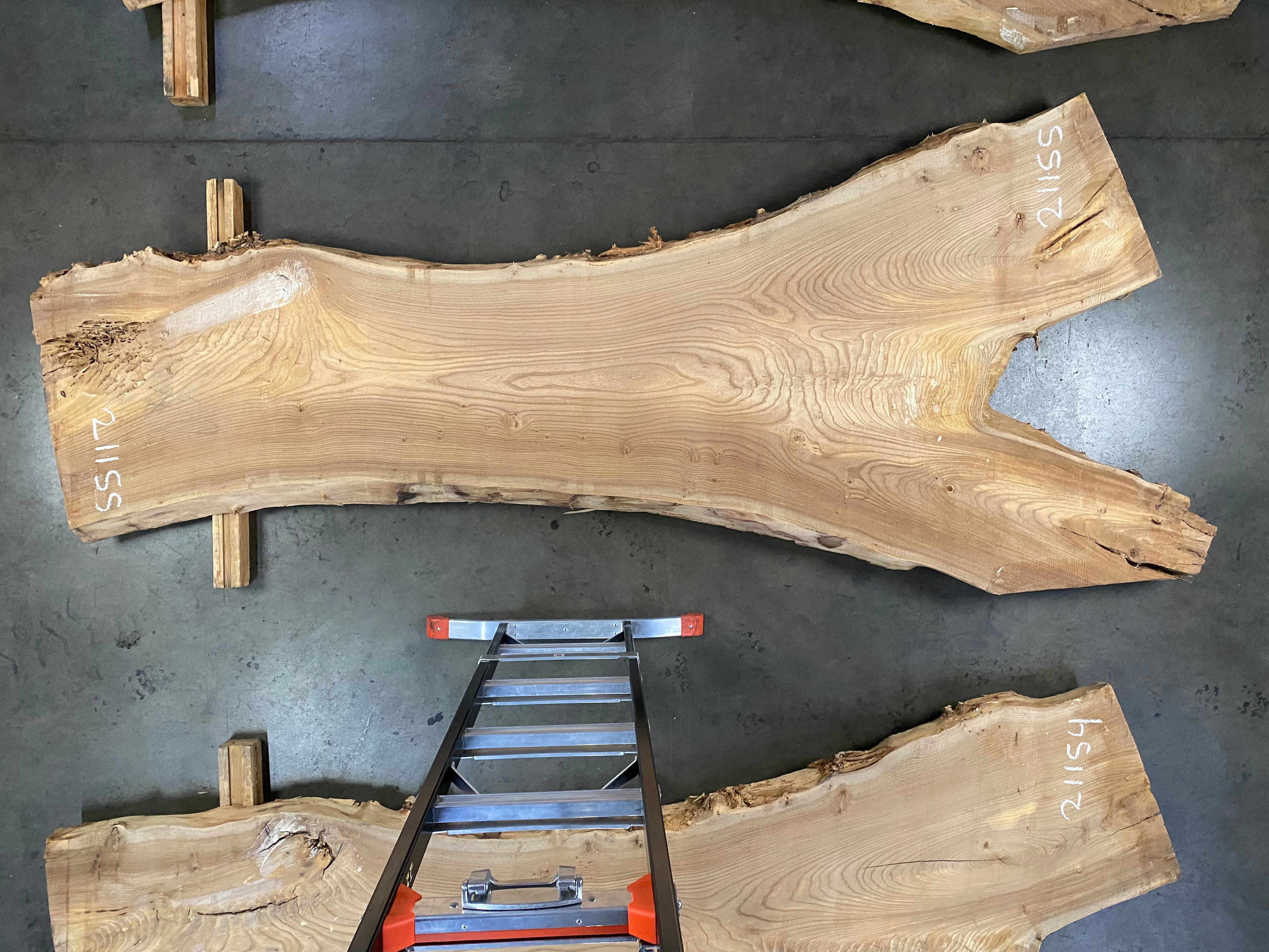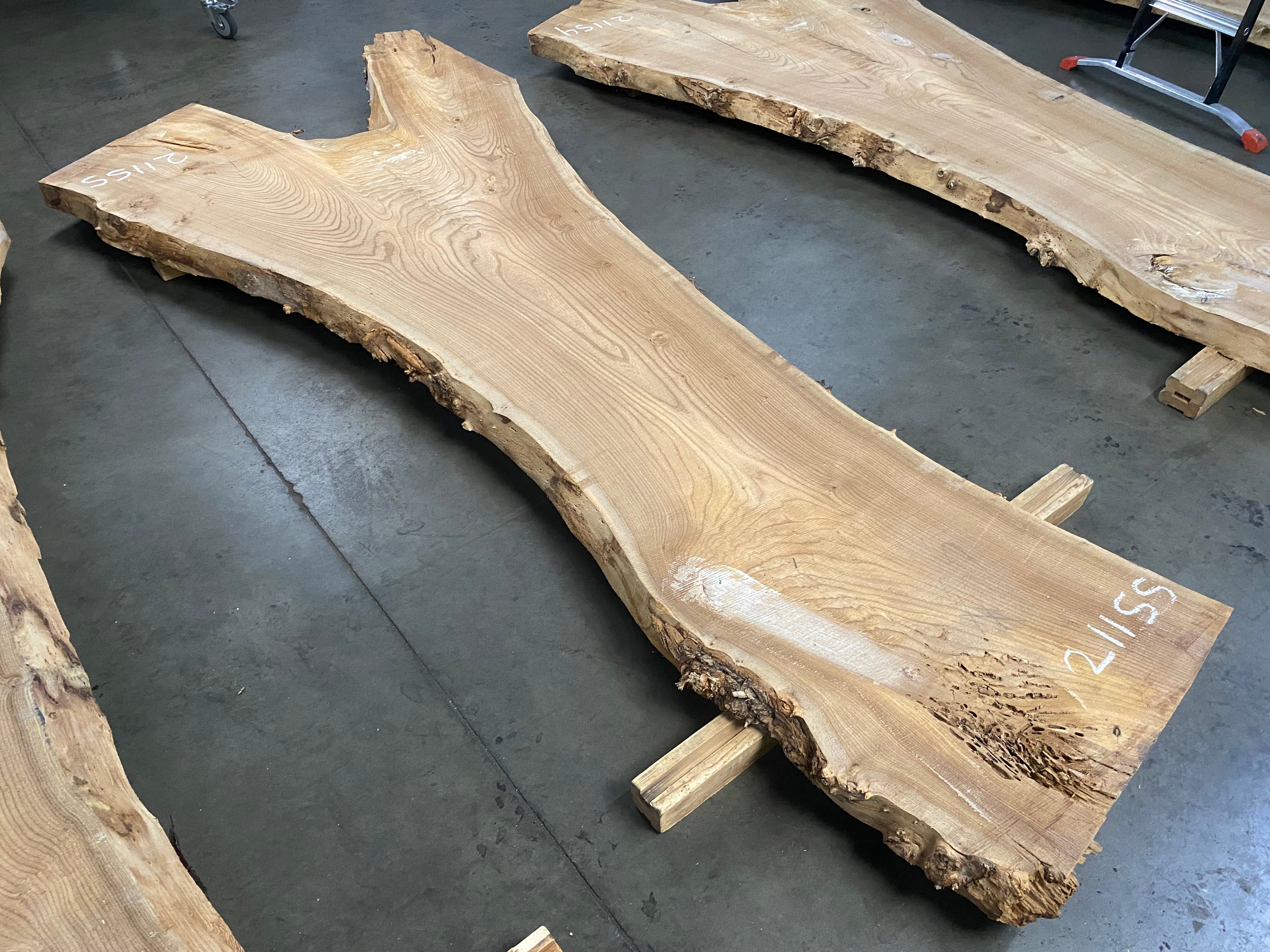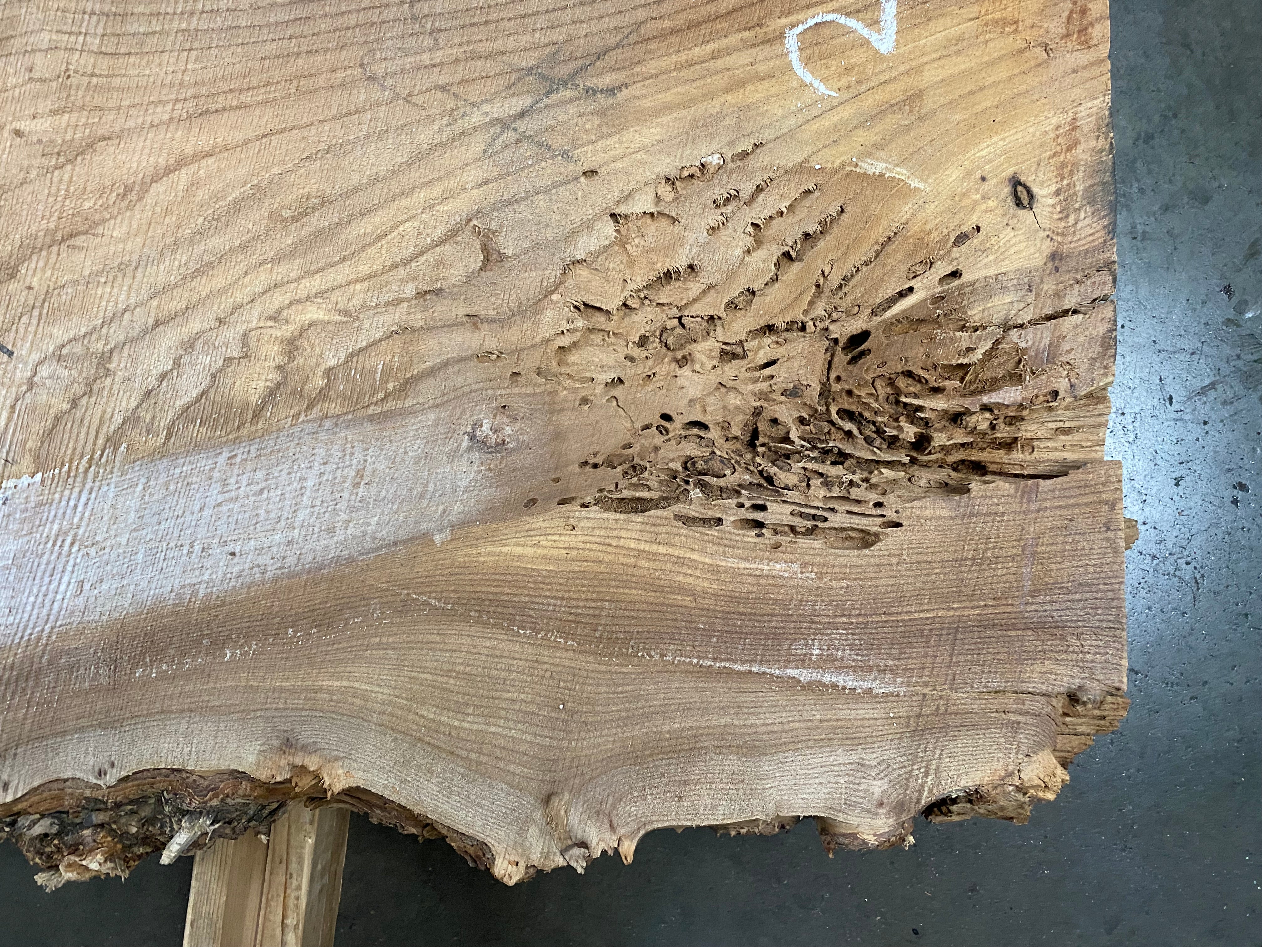 - Rough sawn, 95" to crotch, minor edge damage, imbedded limb, worm holes on butt end, discoloration