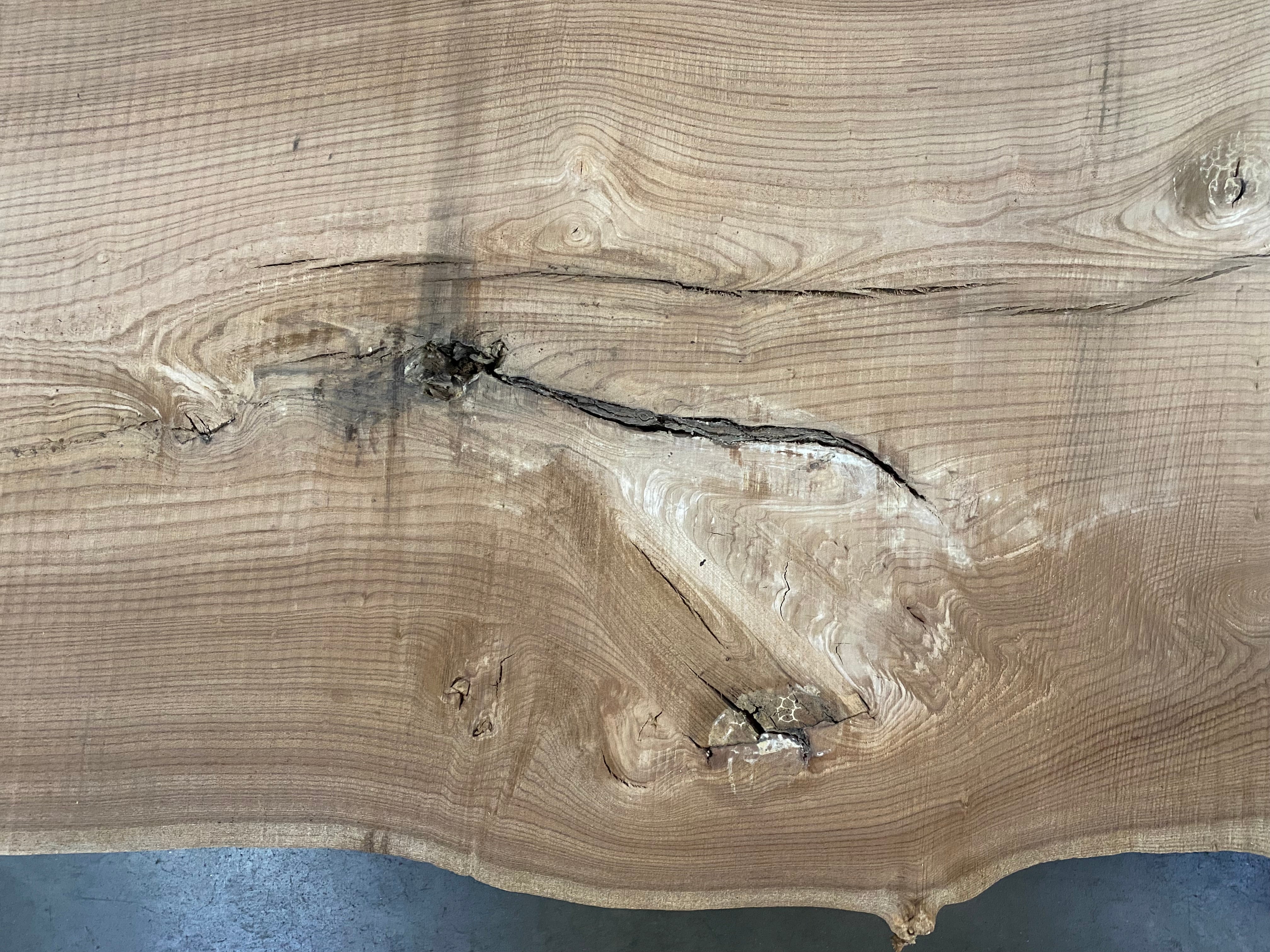 - Rough sawn, bark inclusion, 30" end splits, knots, imbedded limb, heart check
