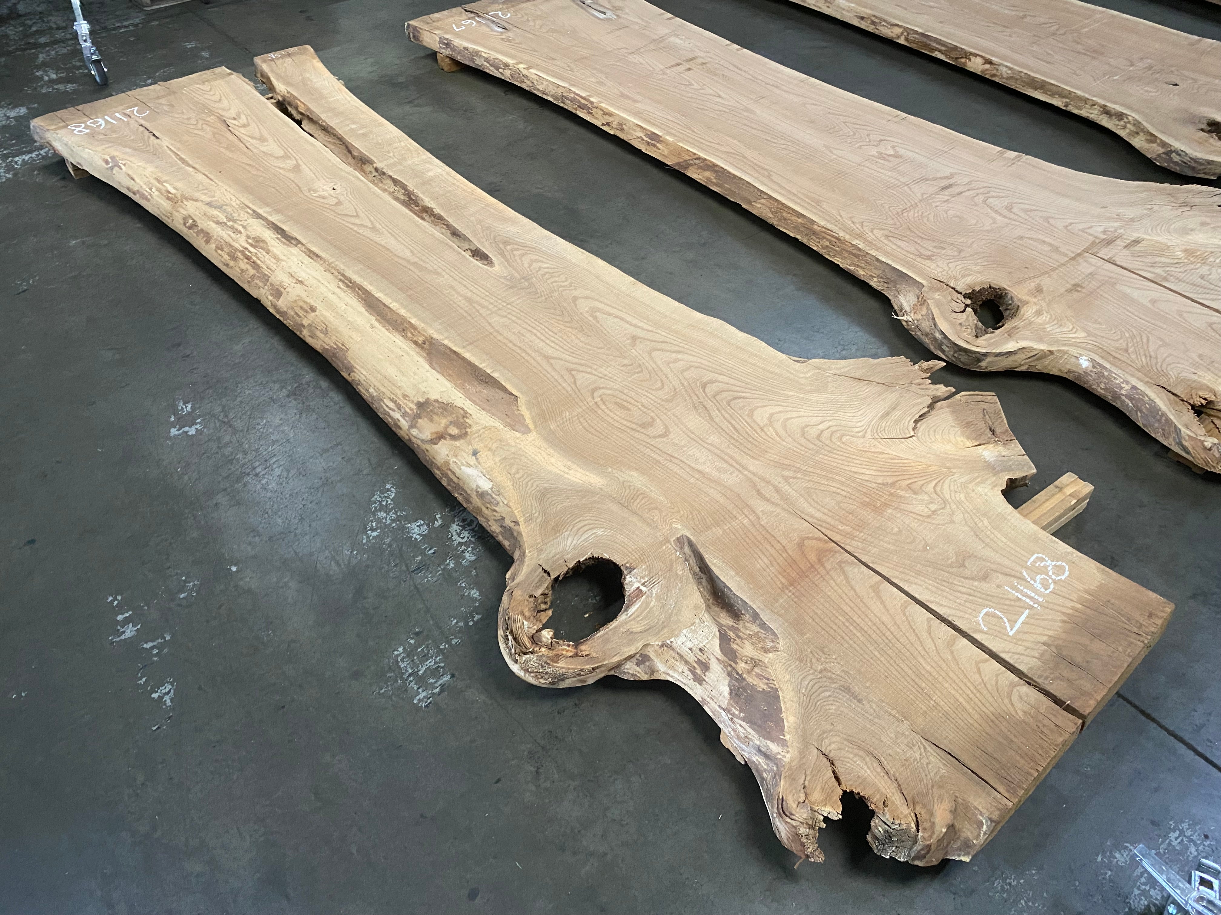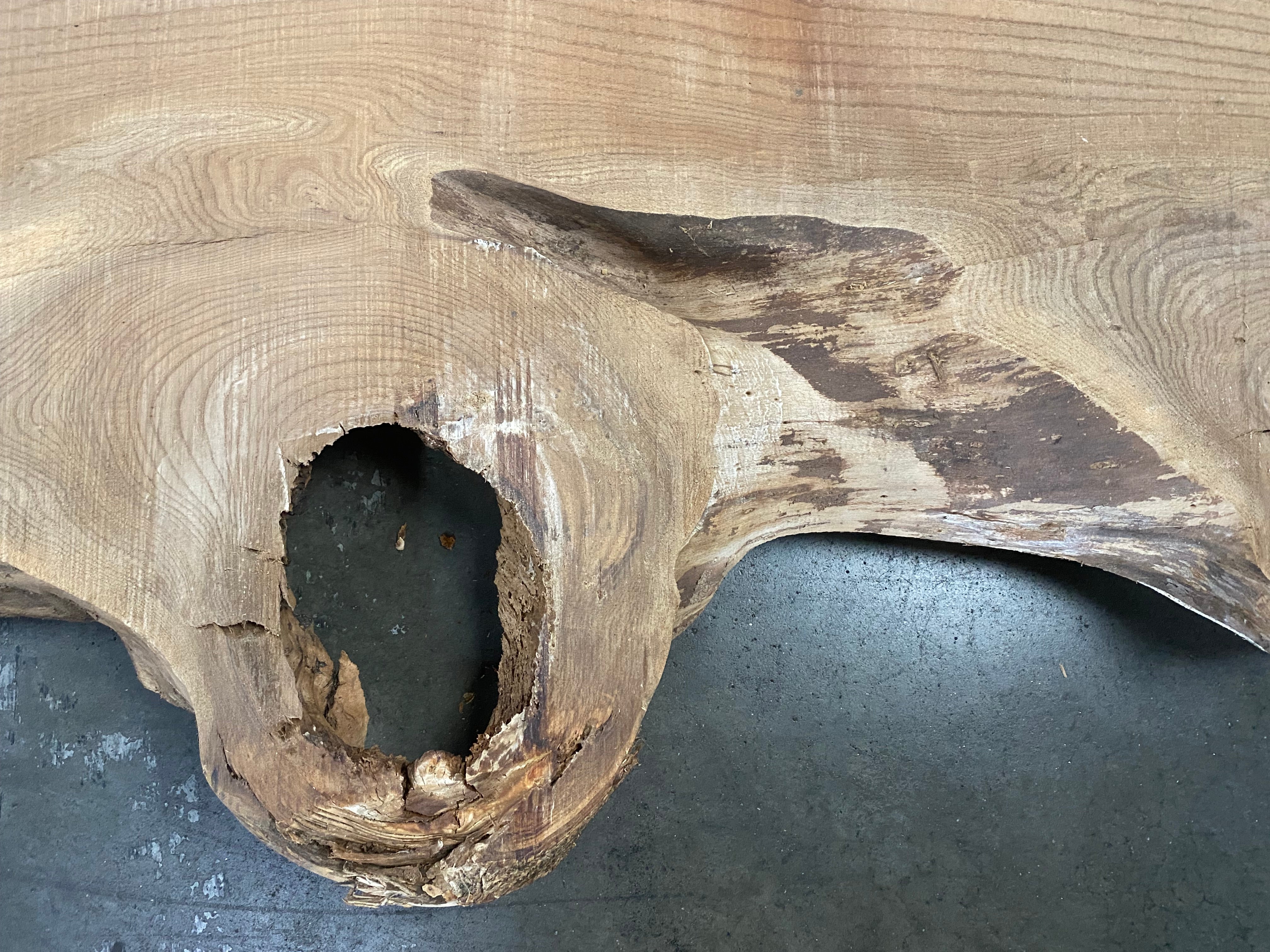 - Rough sawn, 24" end split, 67" surface void, wayning live edge