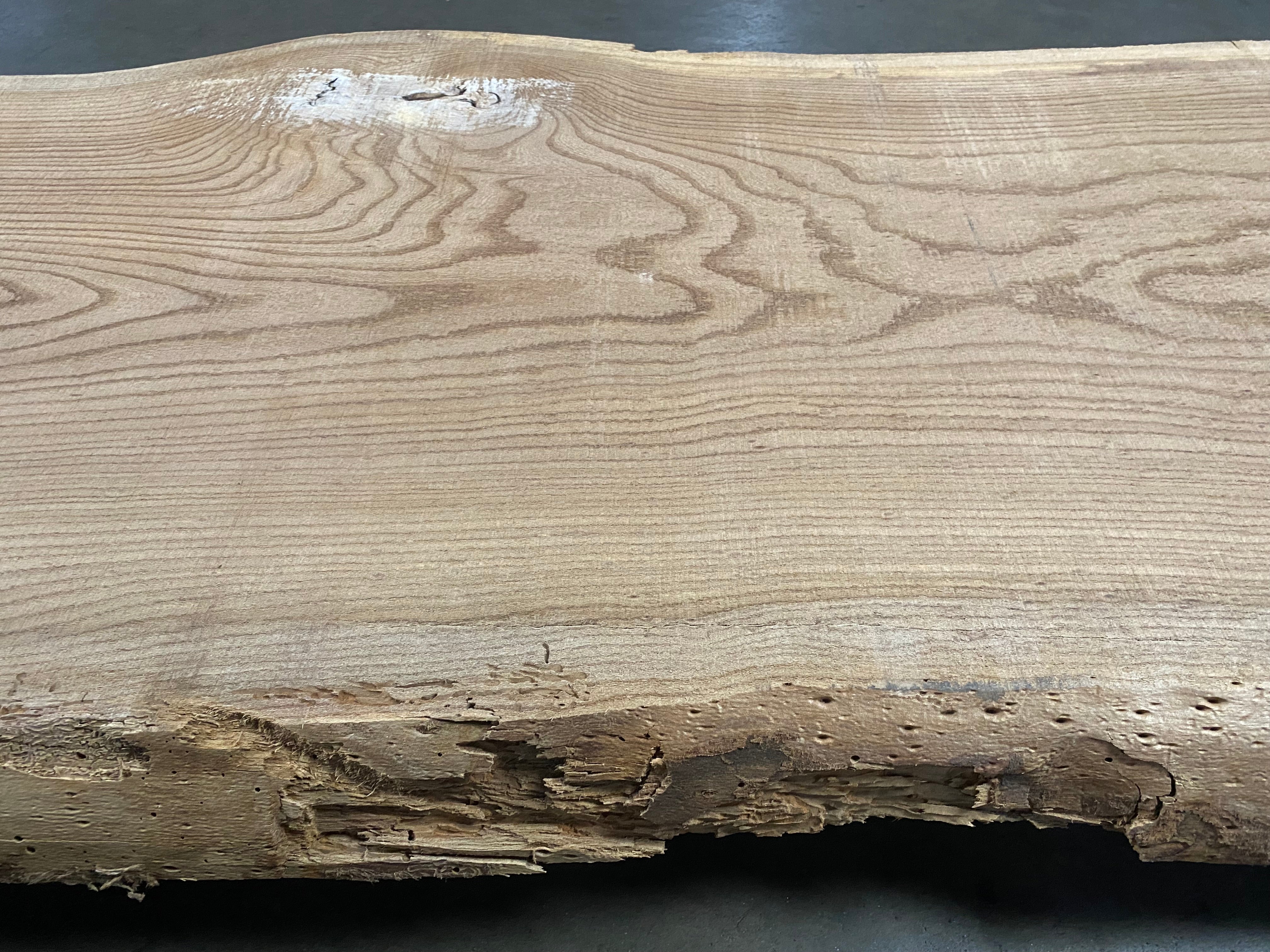 - Rough sawn, 123" to crotch, minor edge damage, minor end checks, small bark inclusions