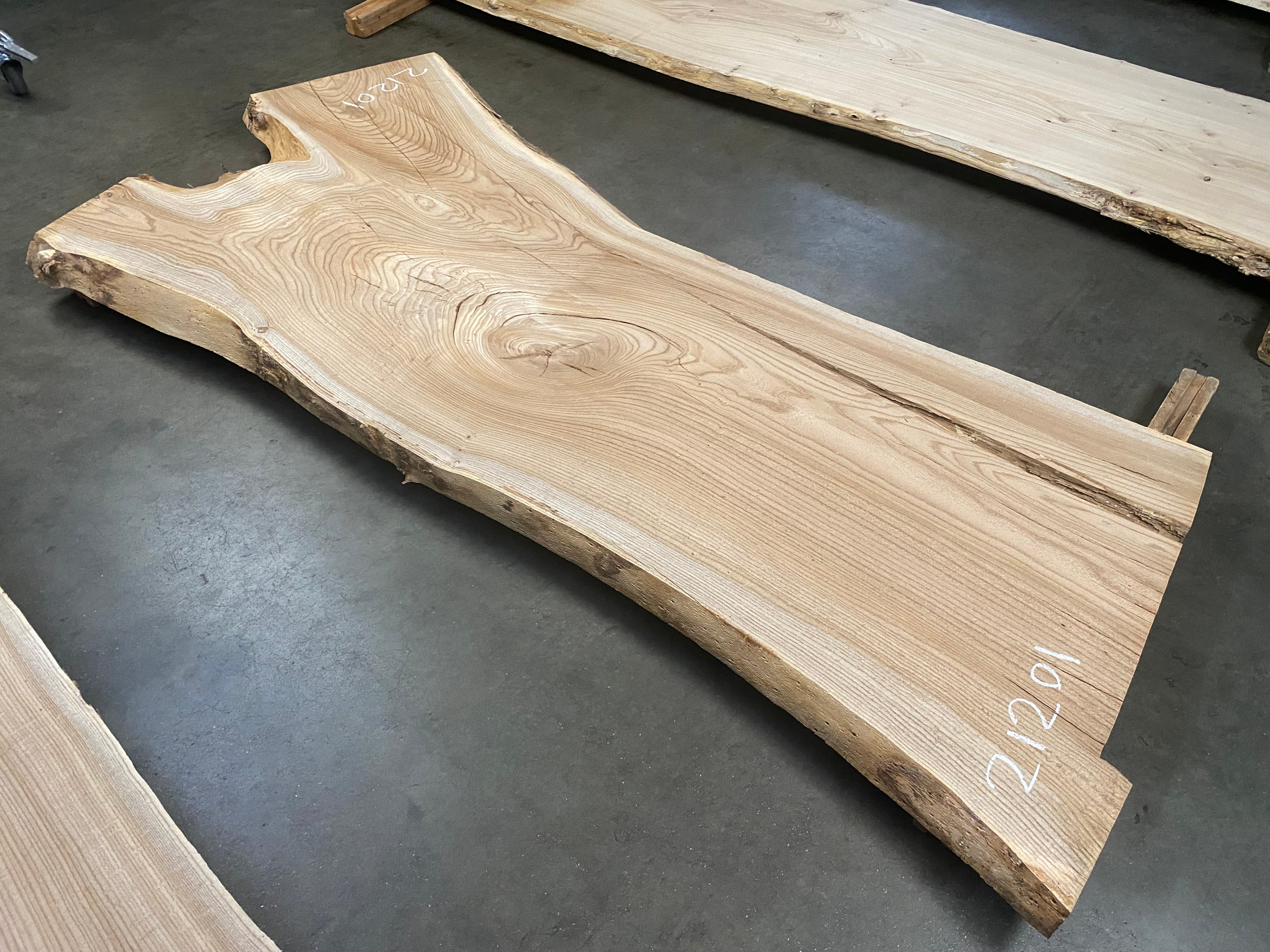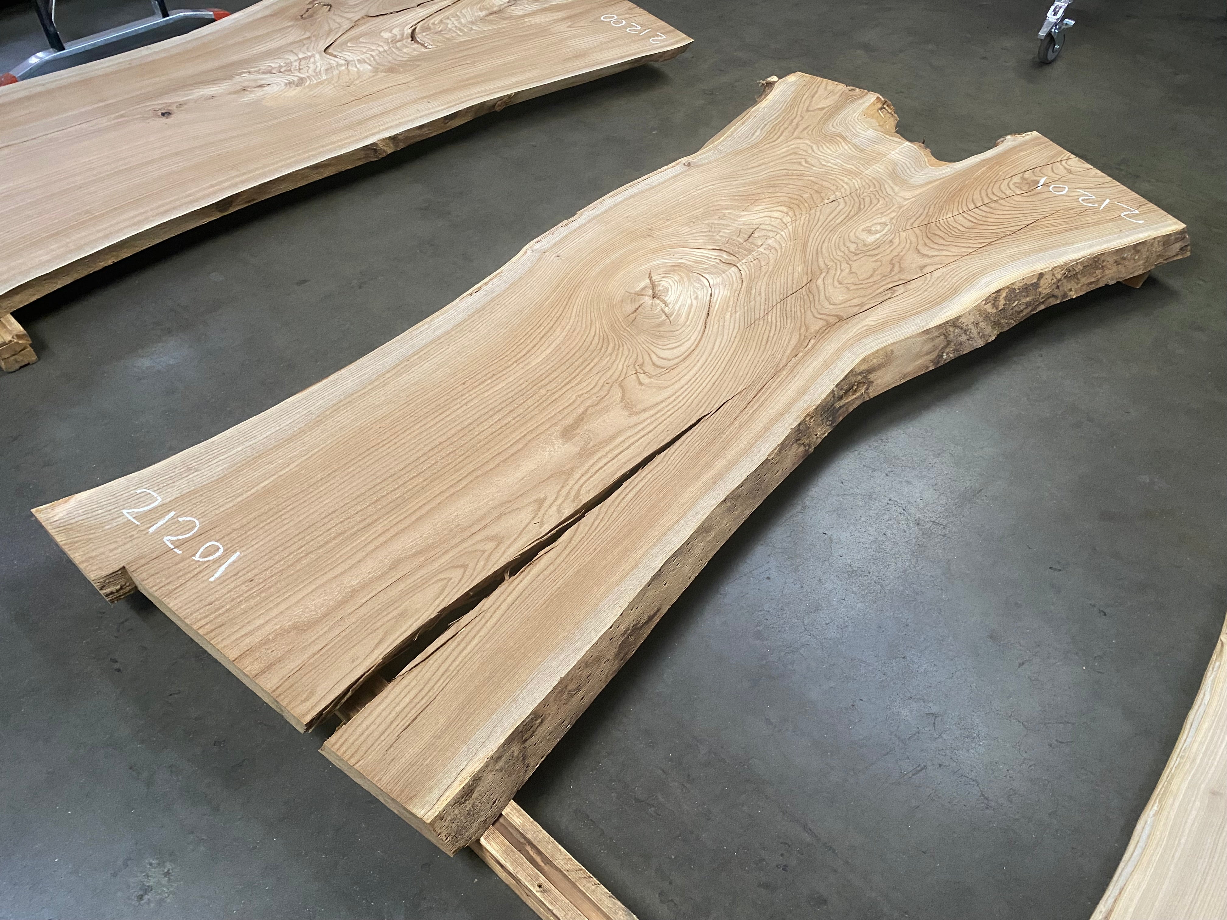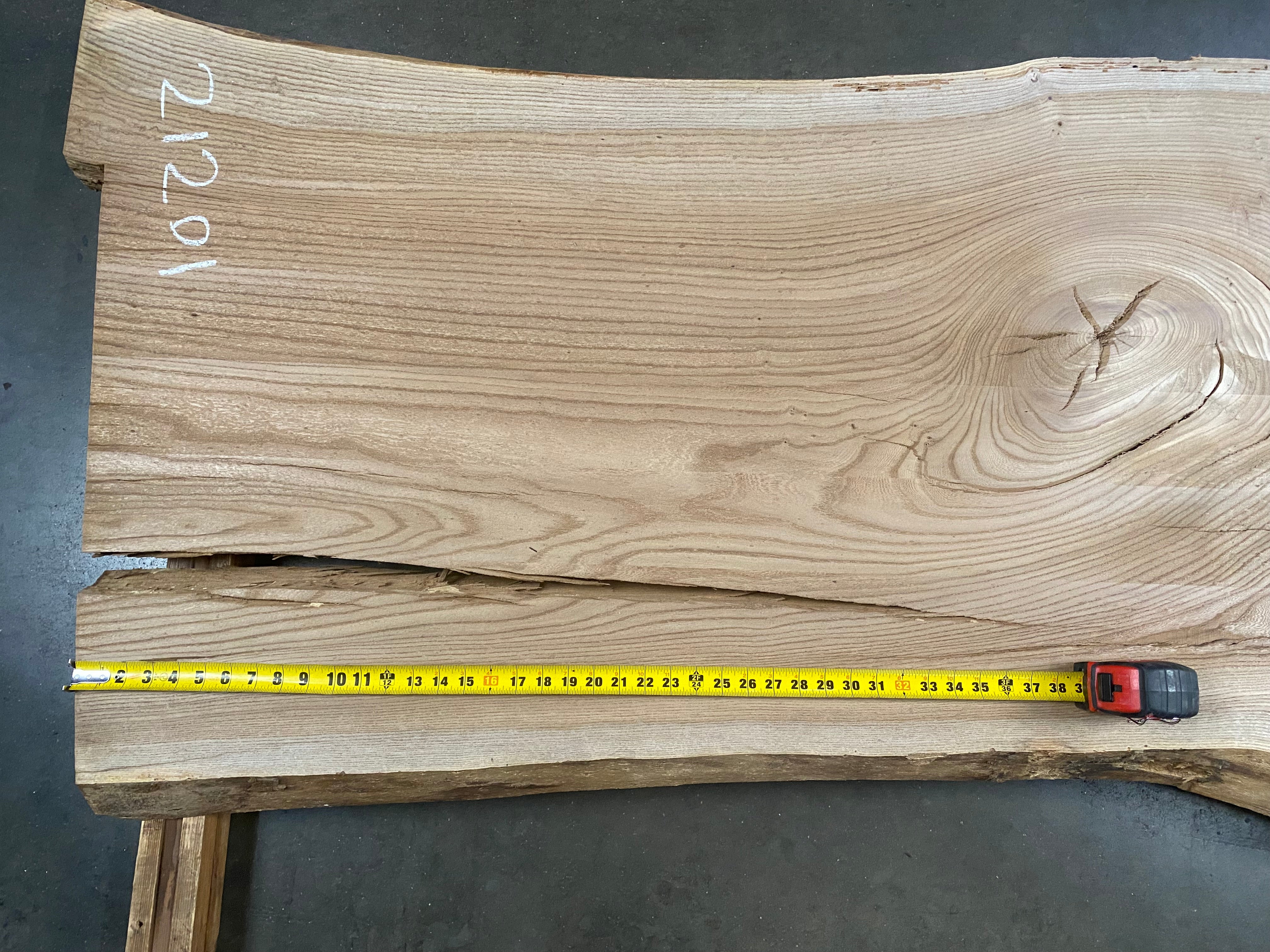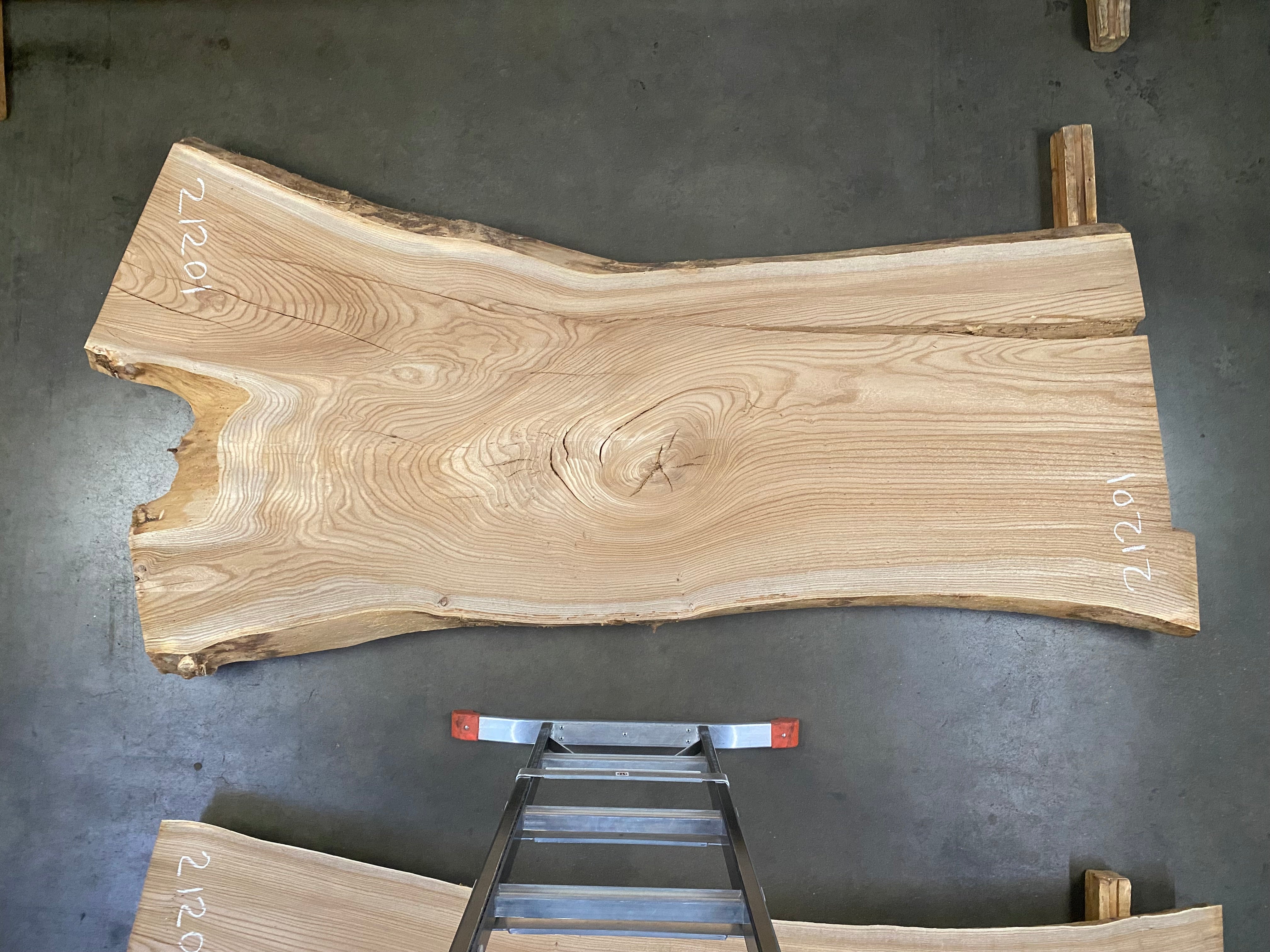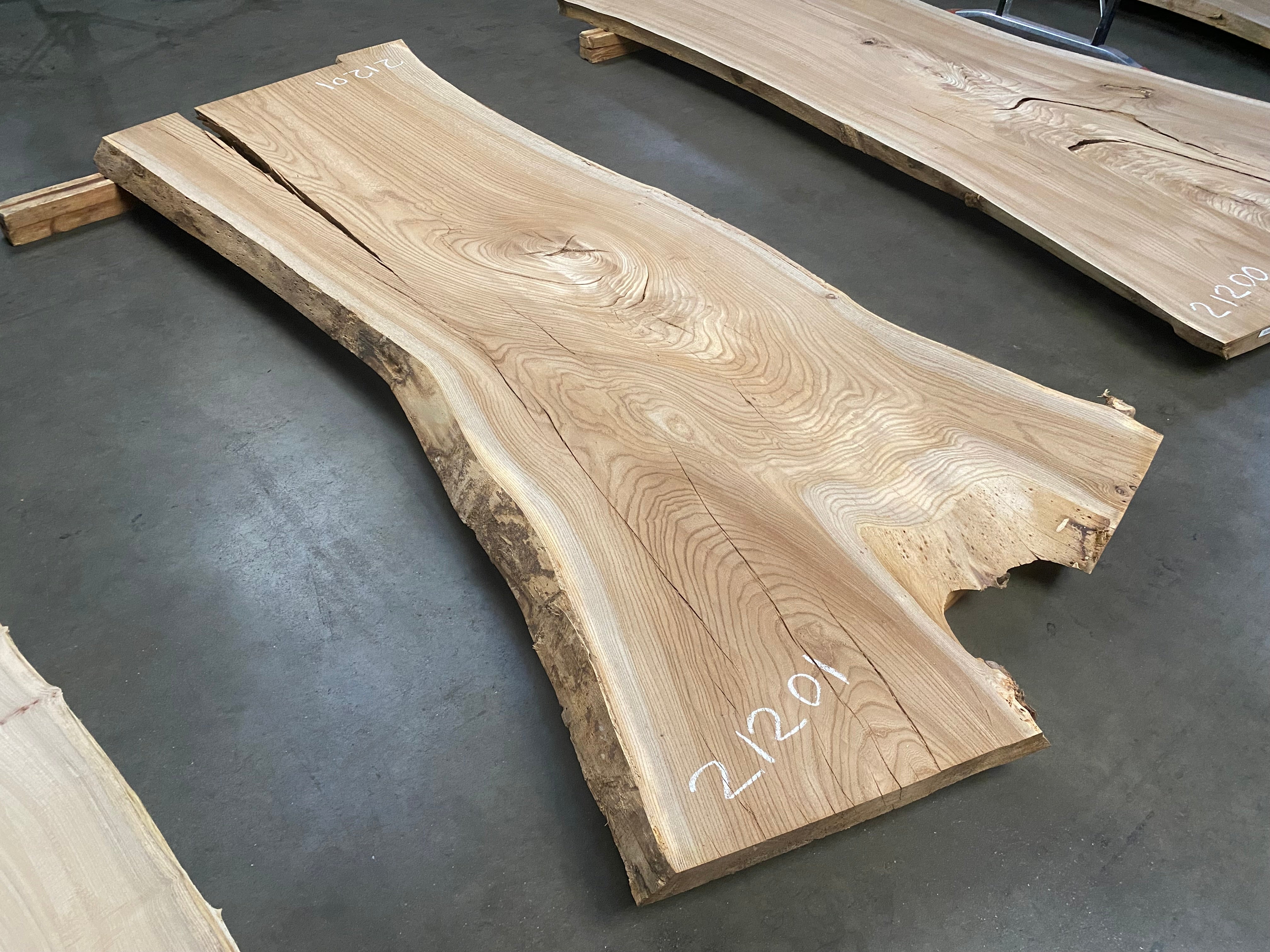 - Leveled & Gauged, minor edge damage, 35" end split, large single knot, surface checks, dimple figure