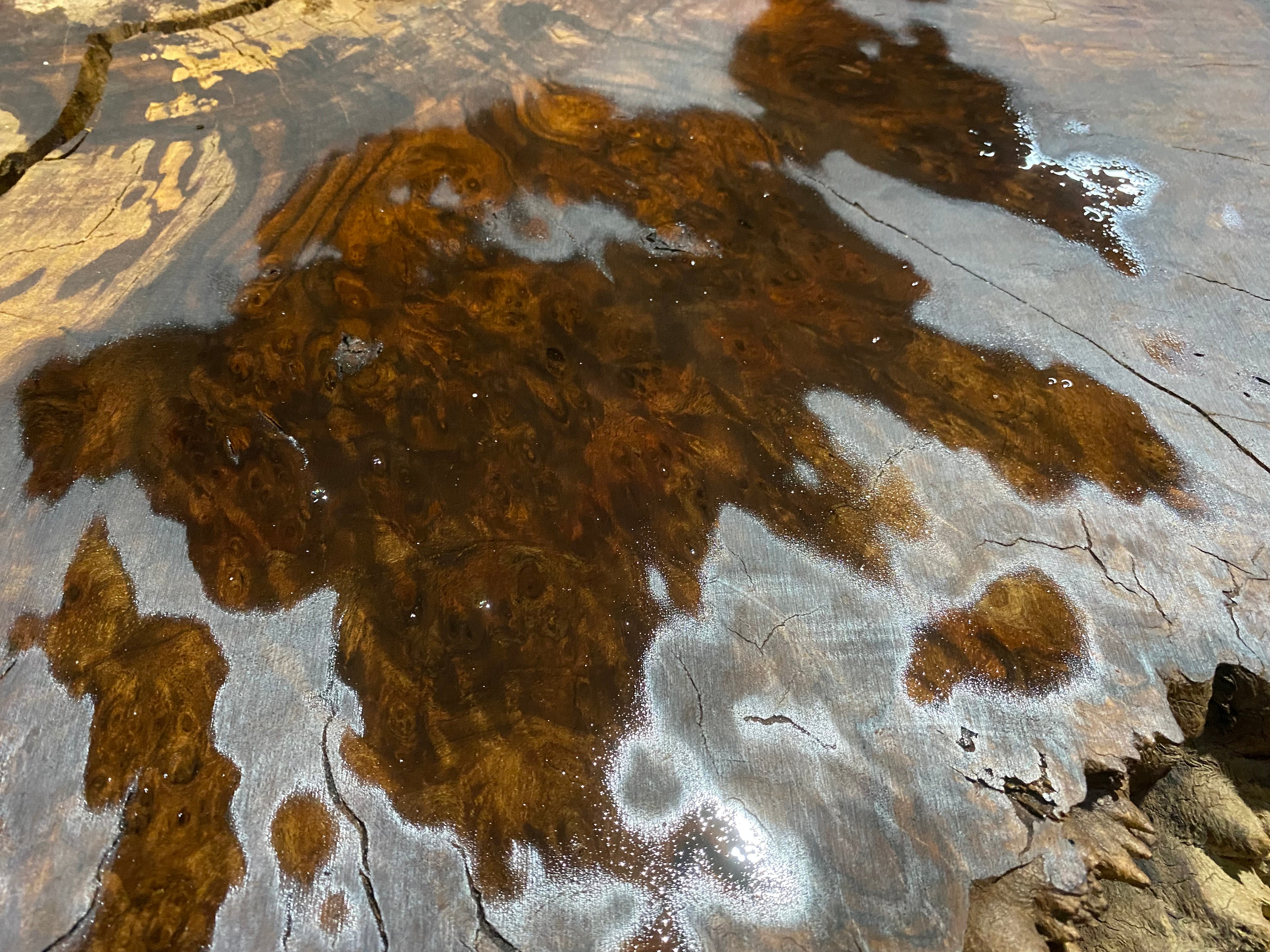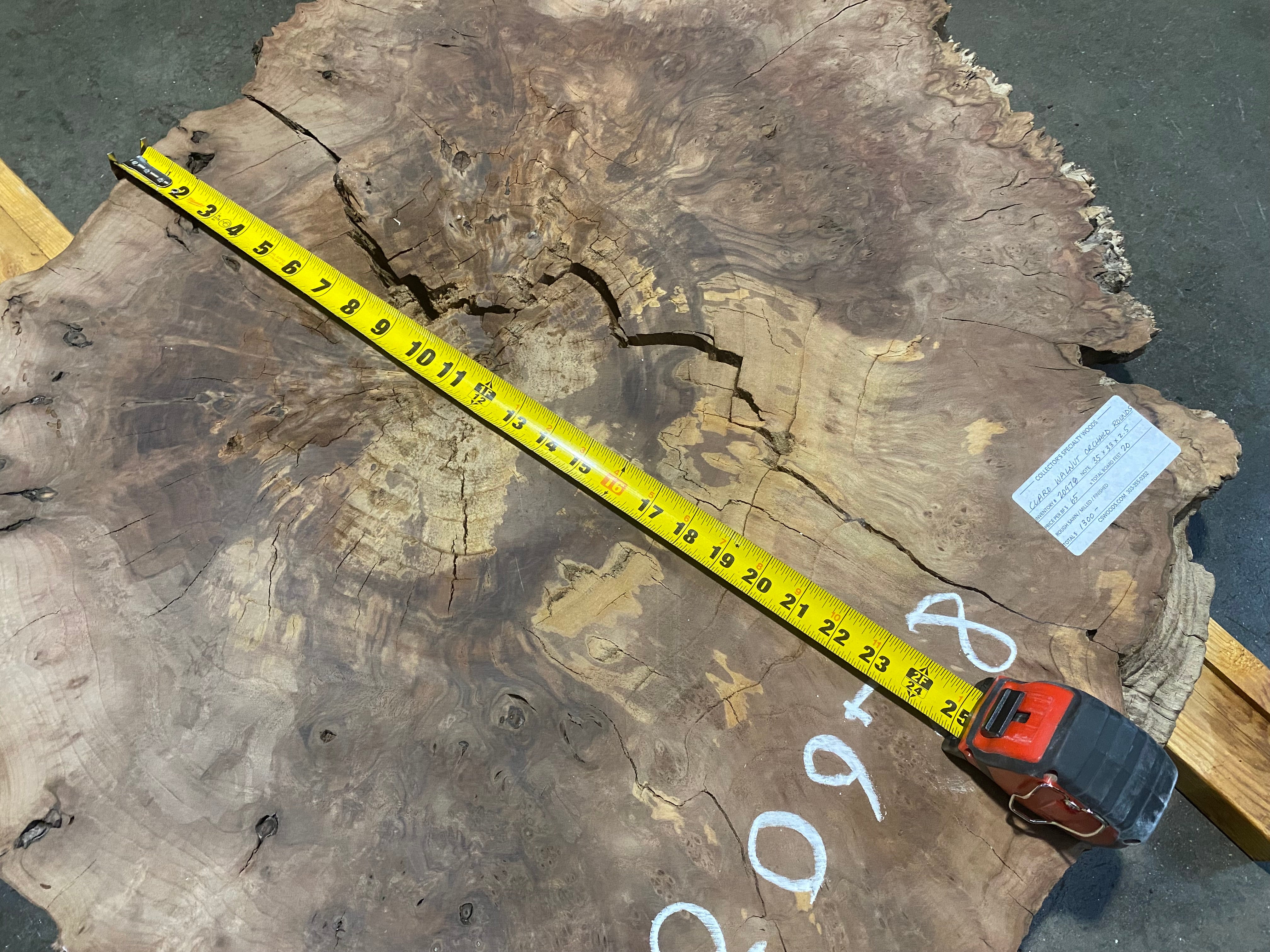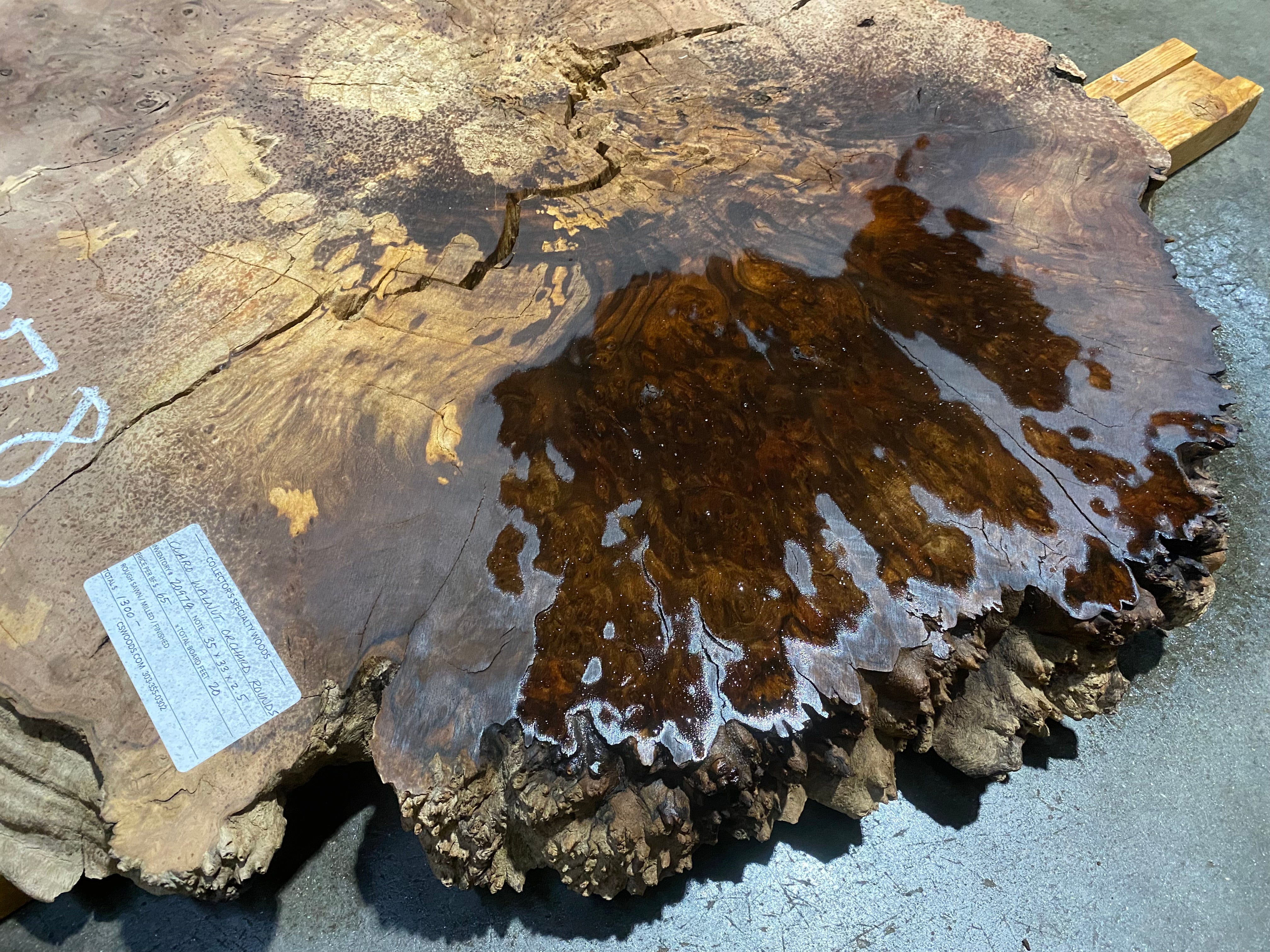 - Leveled and gauged, large split that needs stabilizing, punky discoloration, figured
