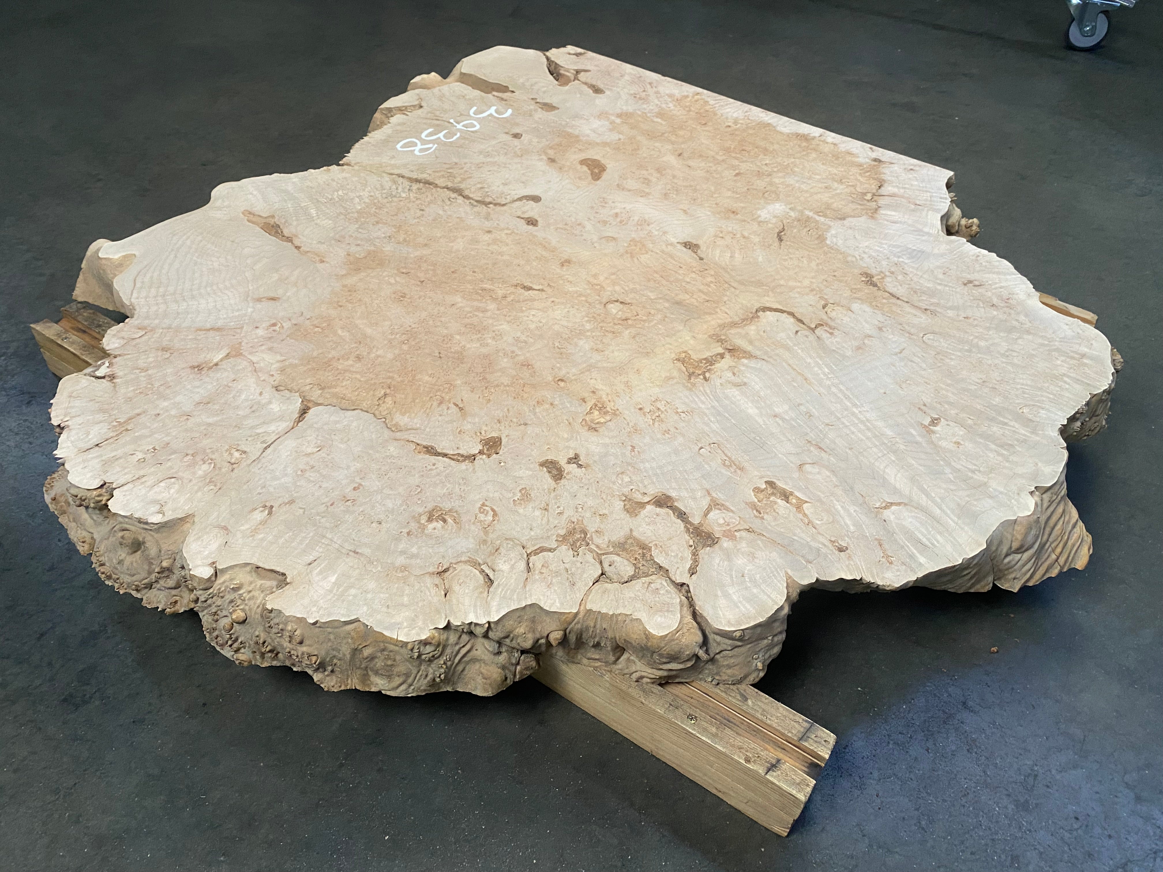 - Leveled and gauged, sanded one side, bark inclusions, high figure