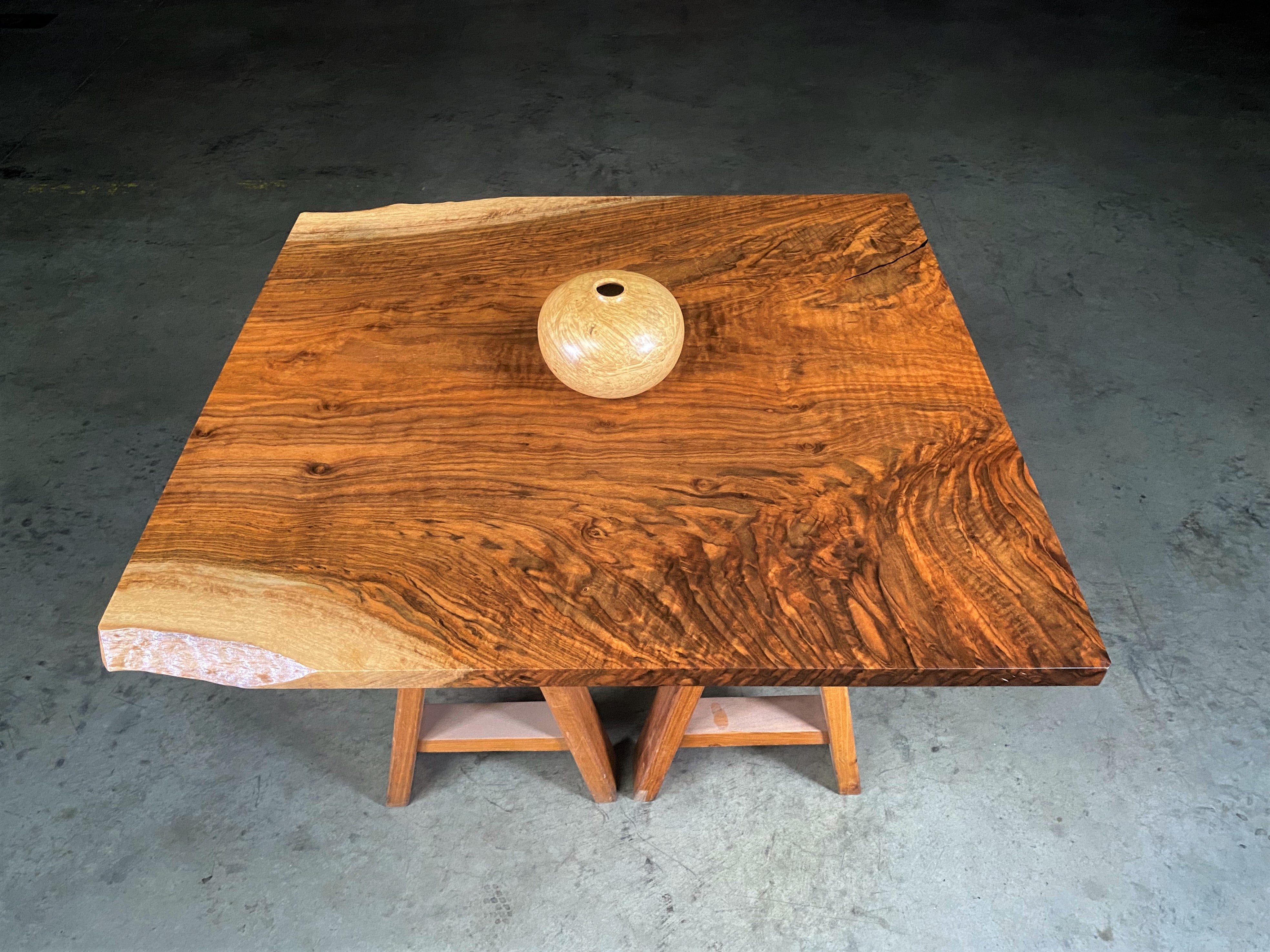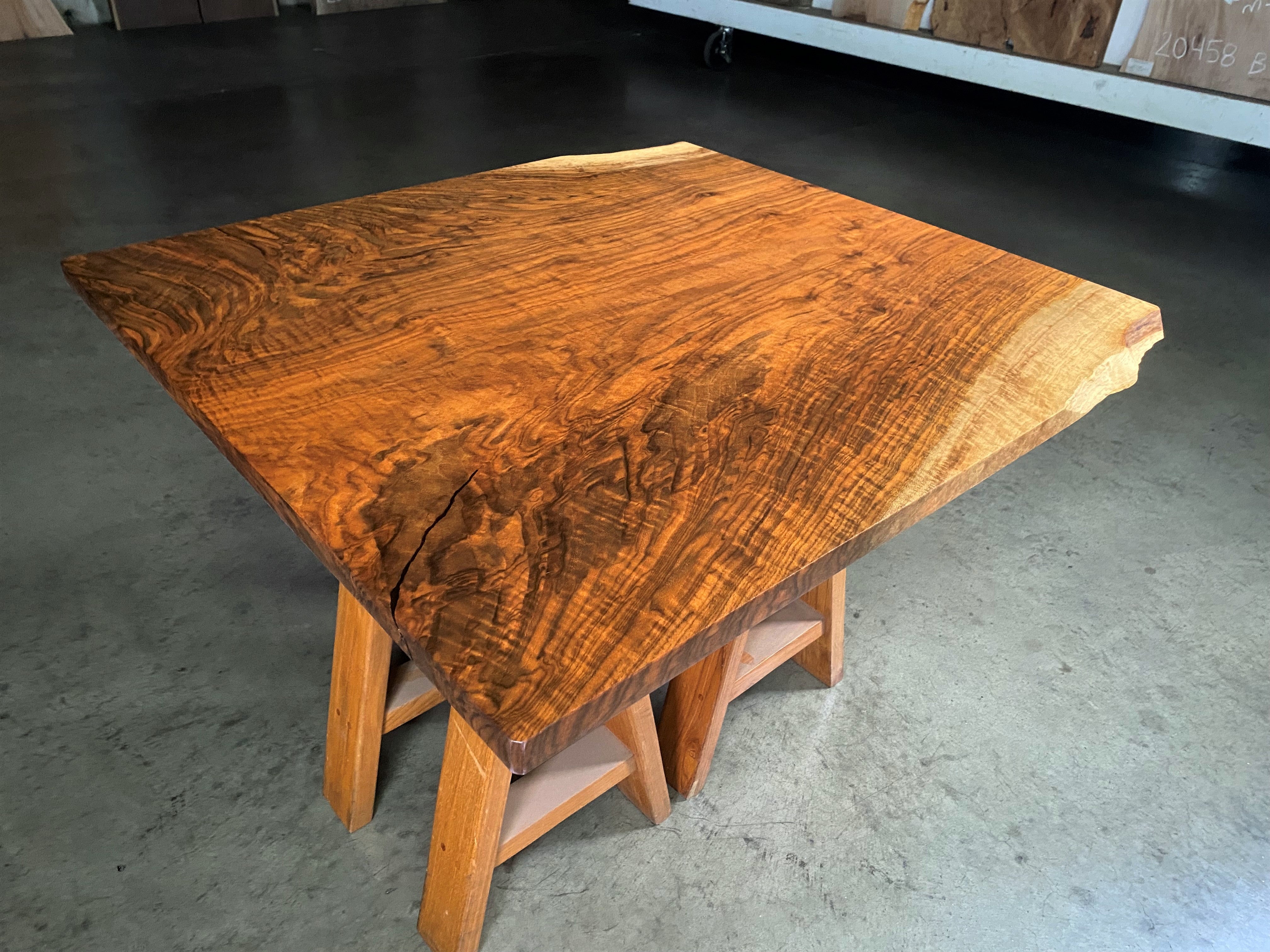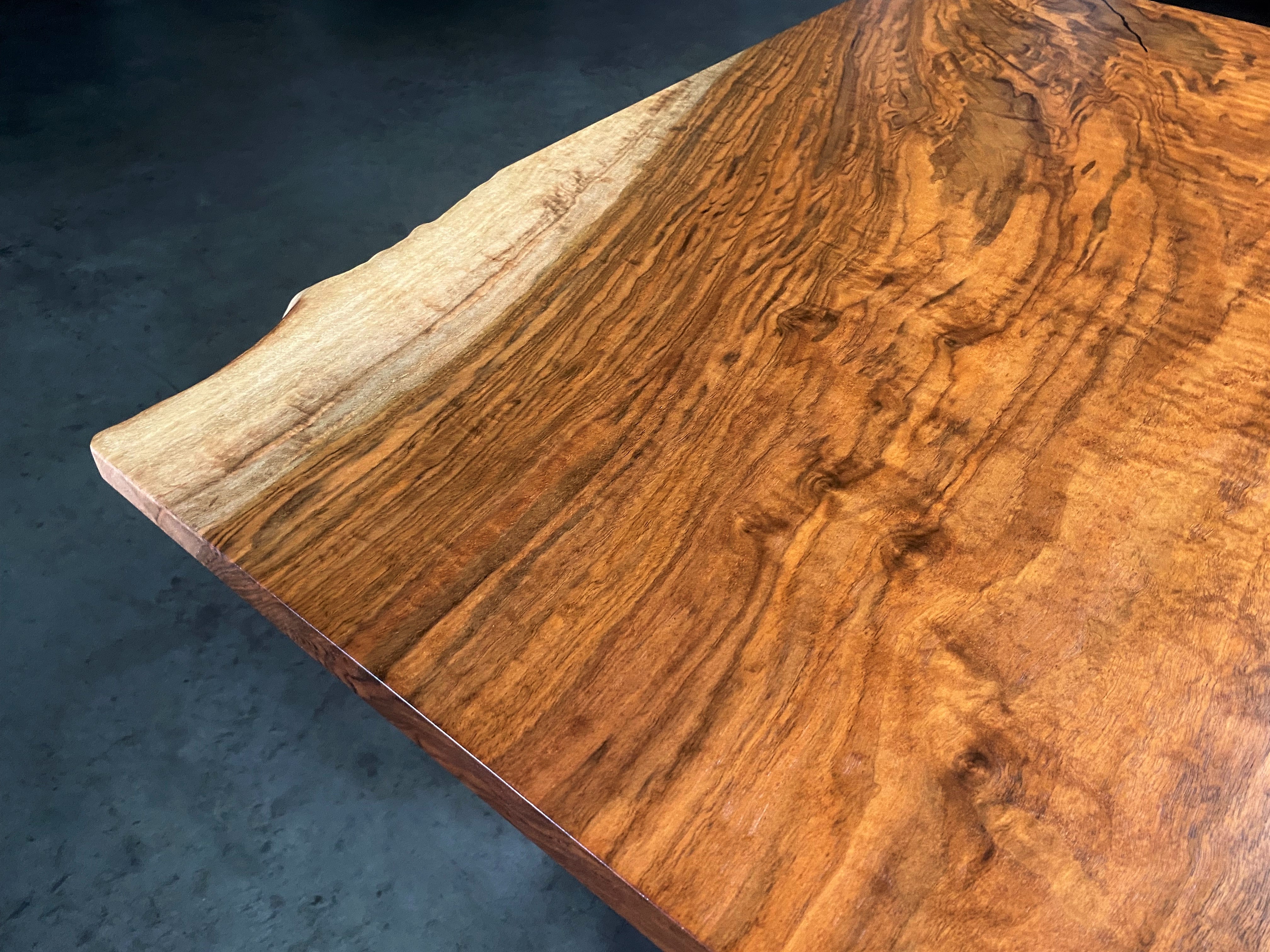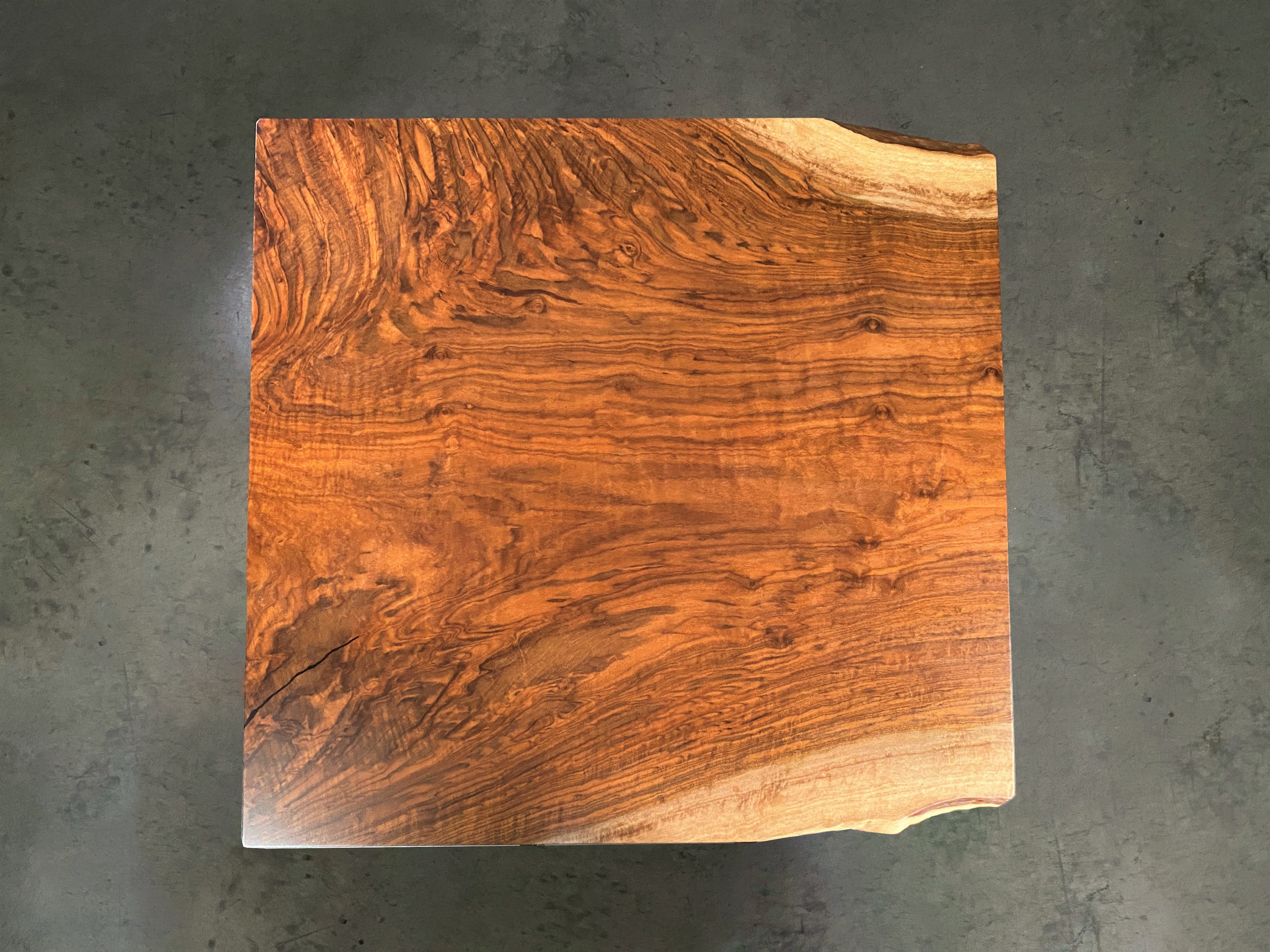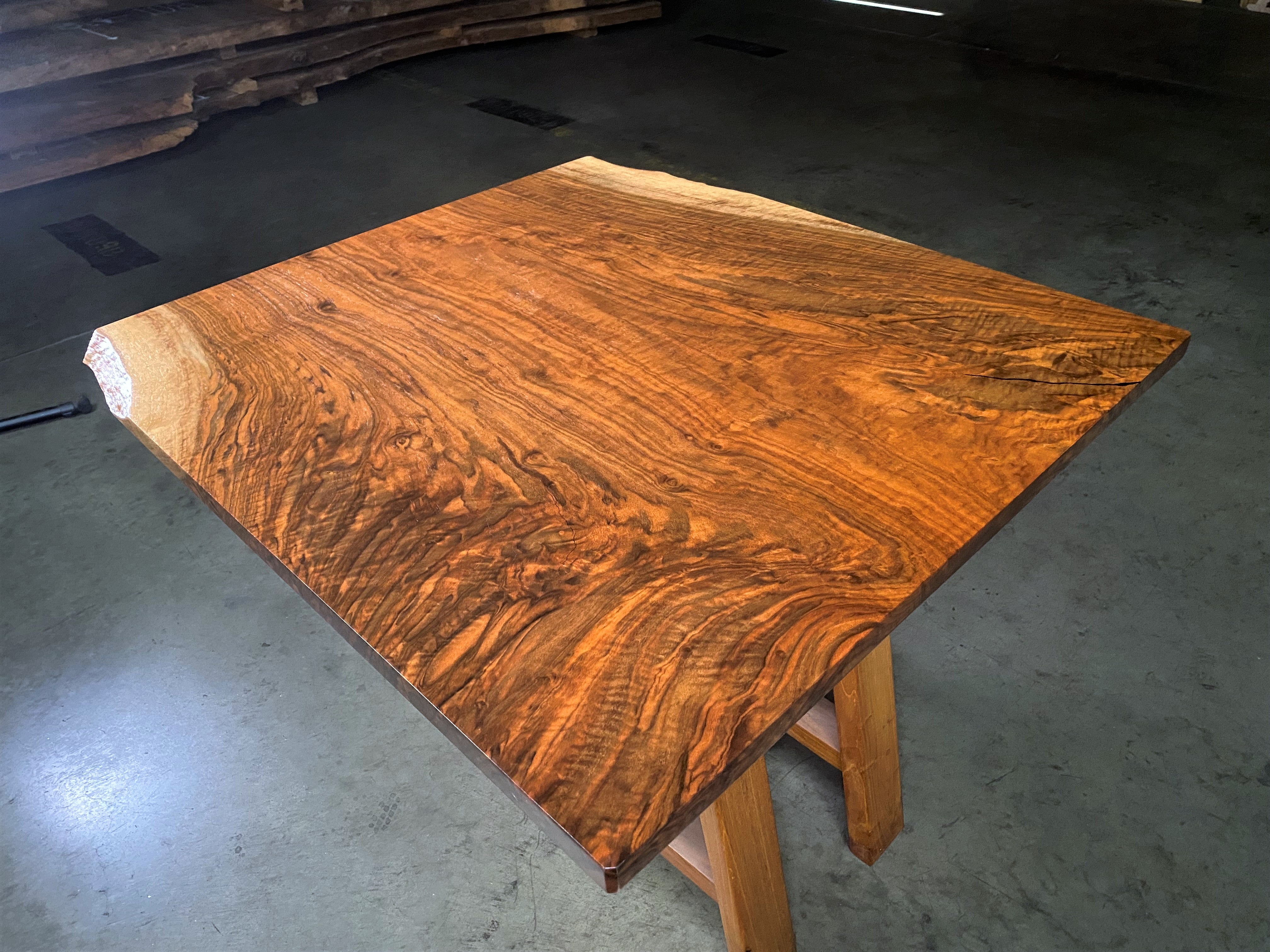 - Description: Single slab, live edge on two corners, with figure and small dark fill. This piece would make a great small table top or coffee table.