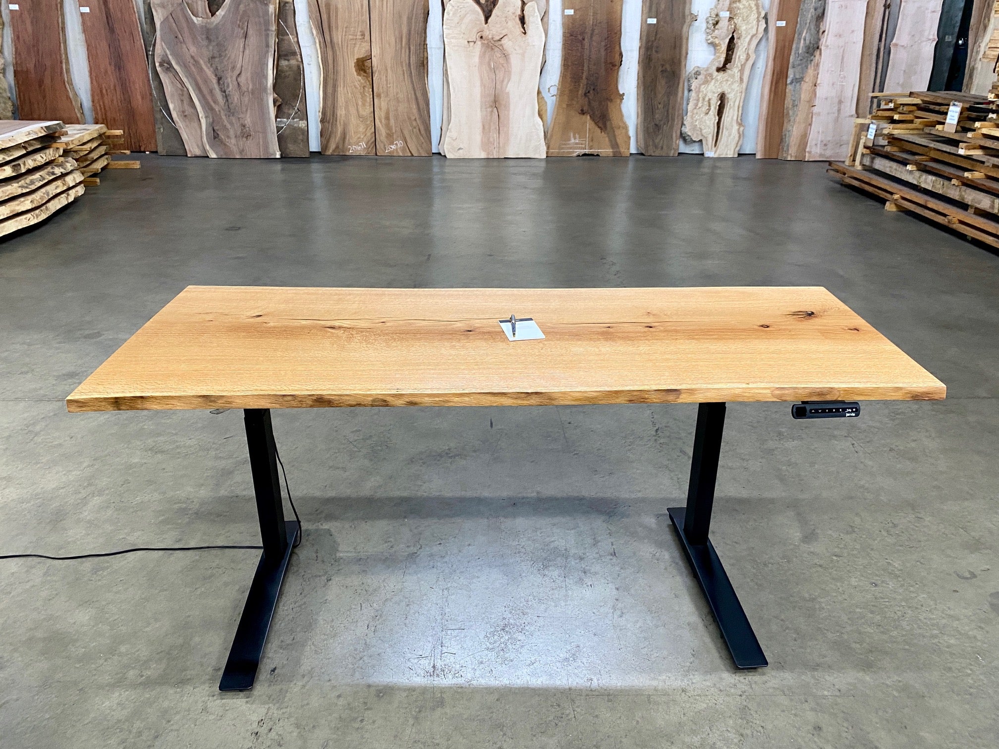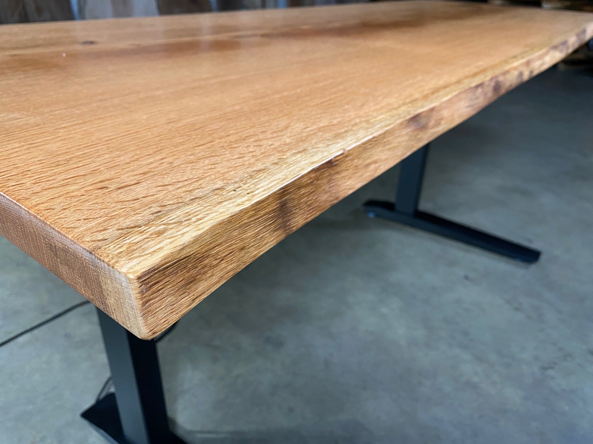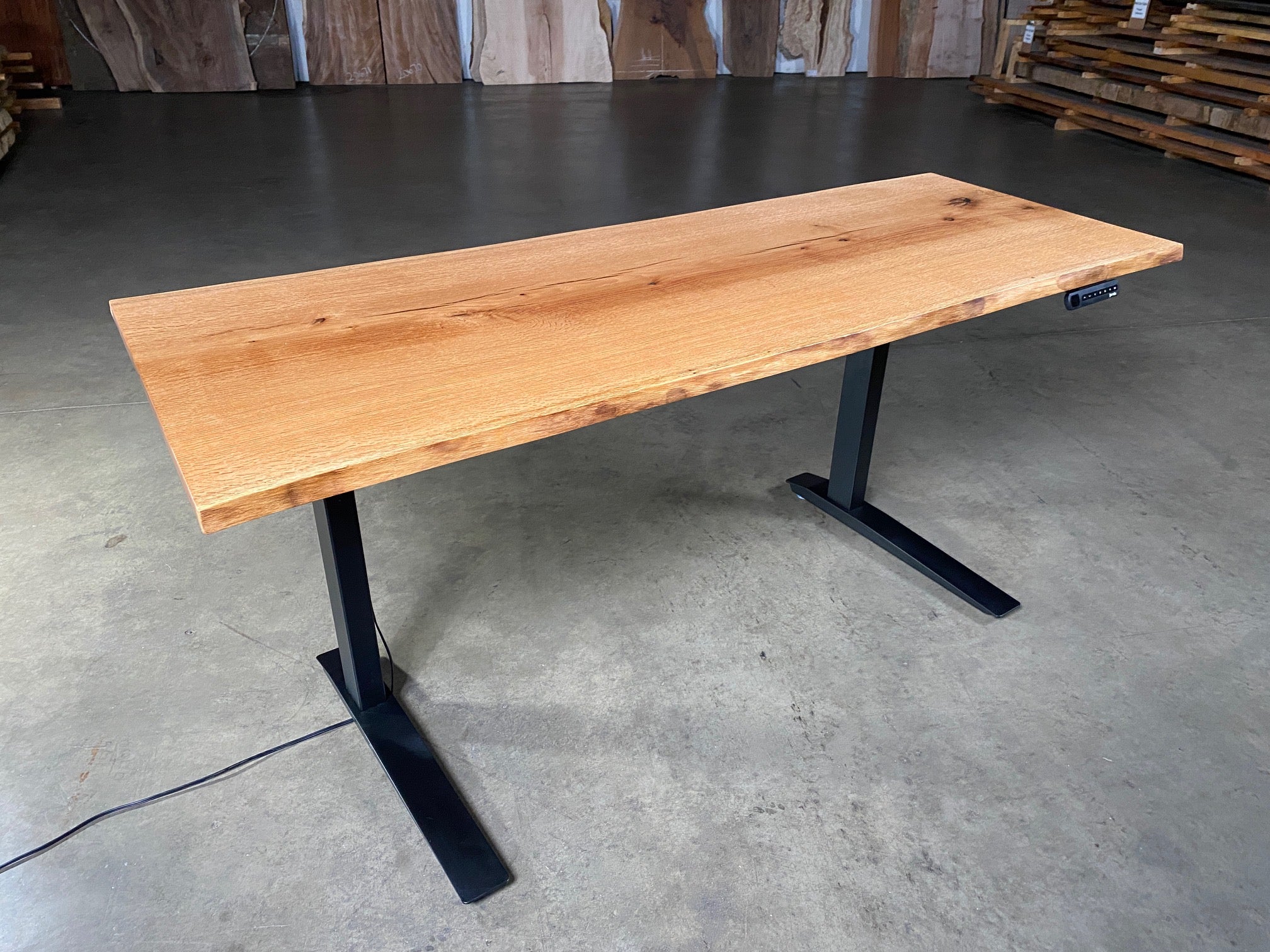 This Red Oak Sit-Stand Desk is sold! If you are interested in a similar desk, we would love to create one for you. Give us a call!