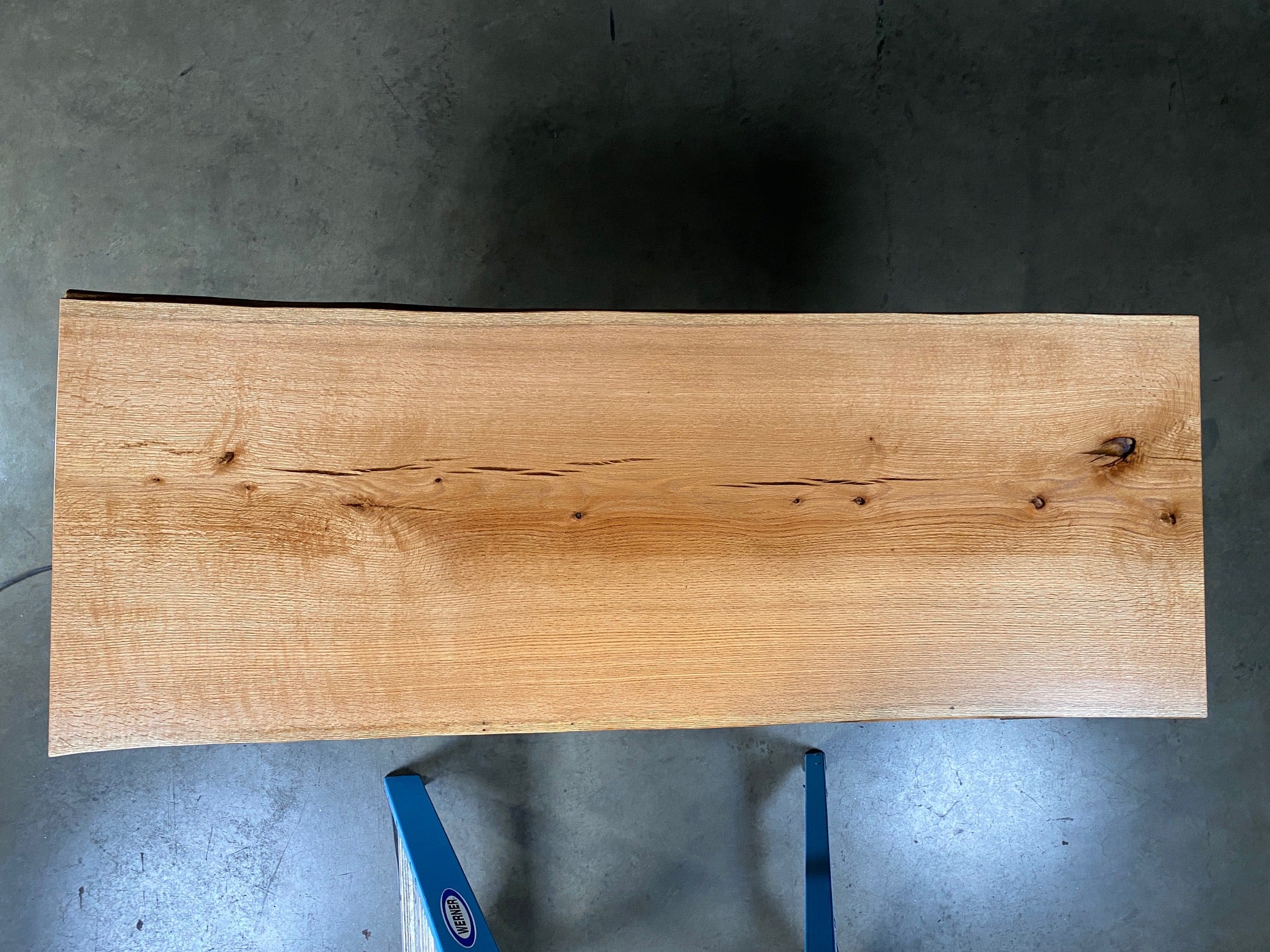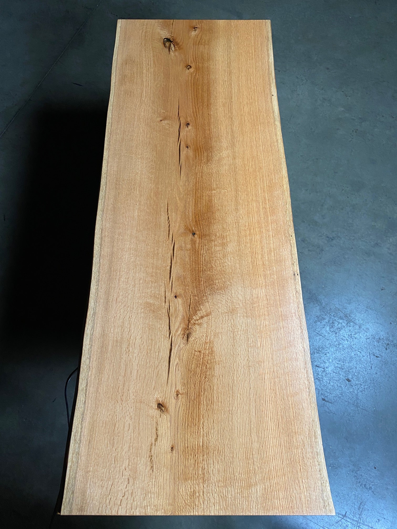 - Description: One live edge with beautiful quarter cut fleck figure. This is a center cut slab.